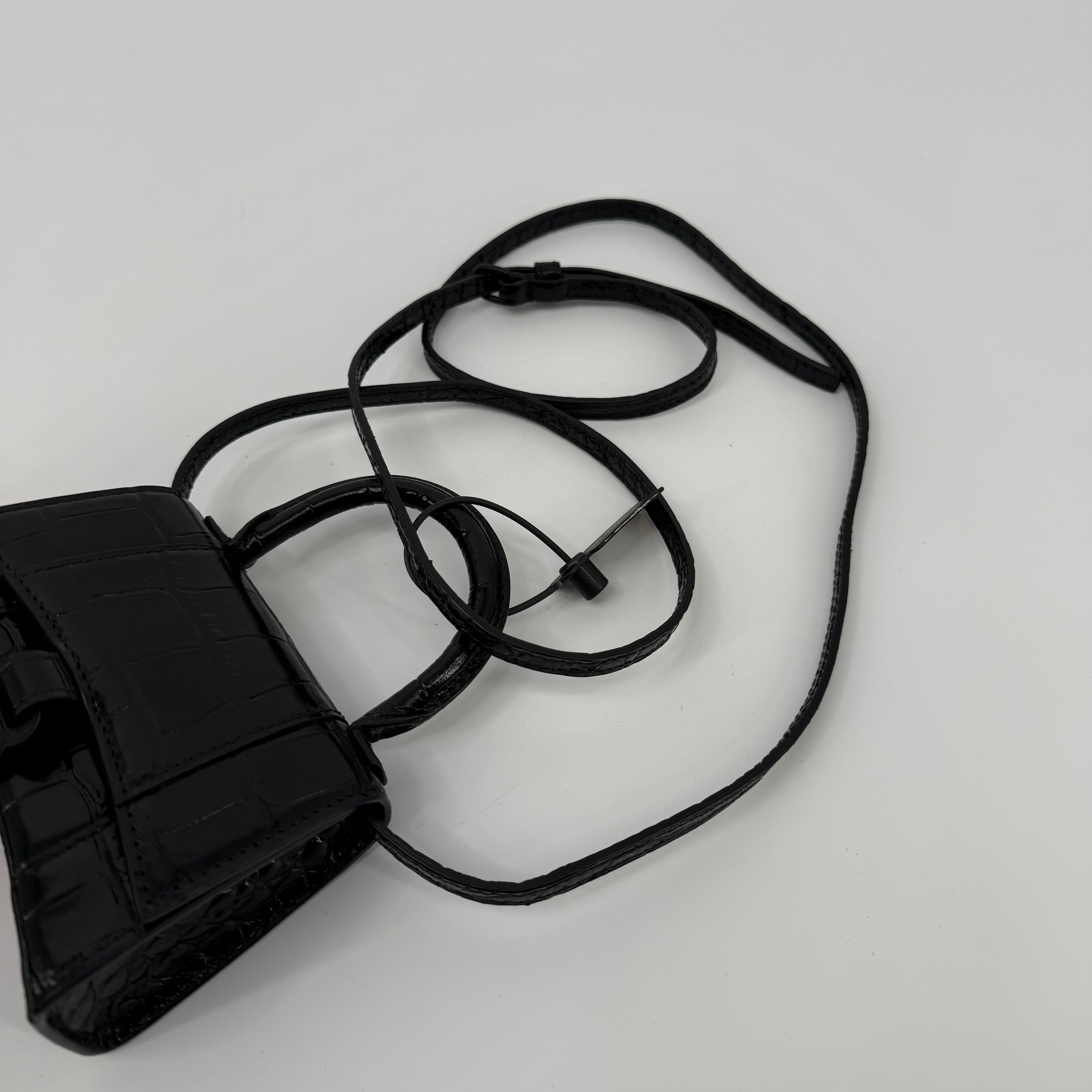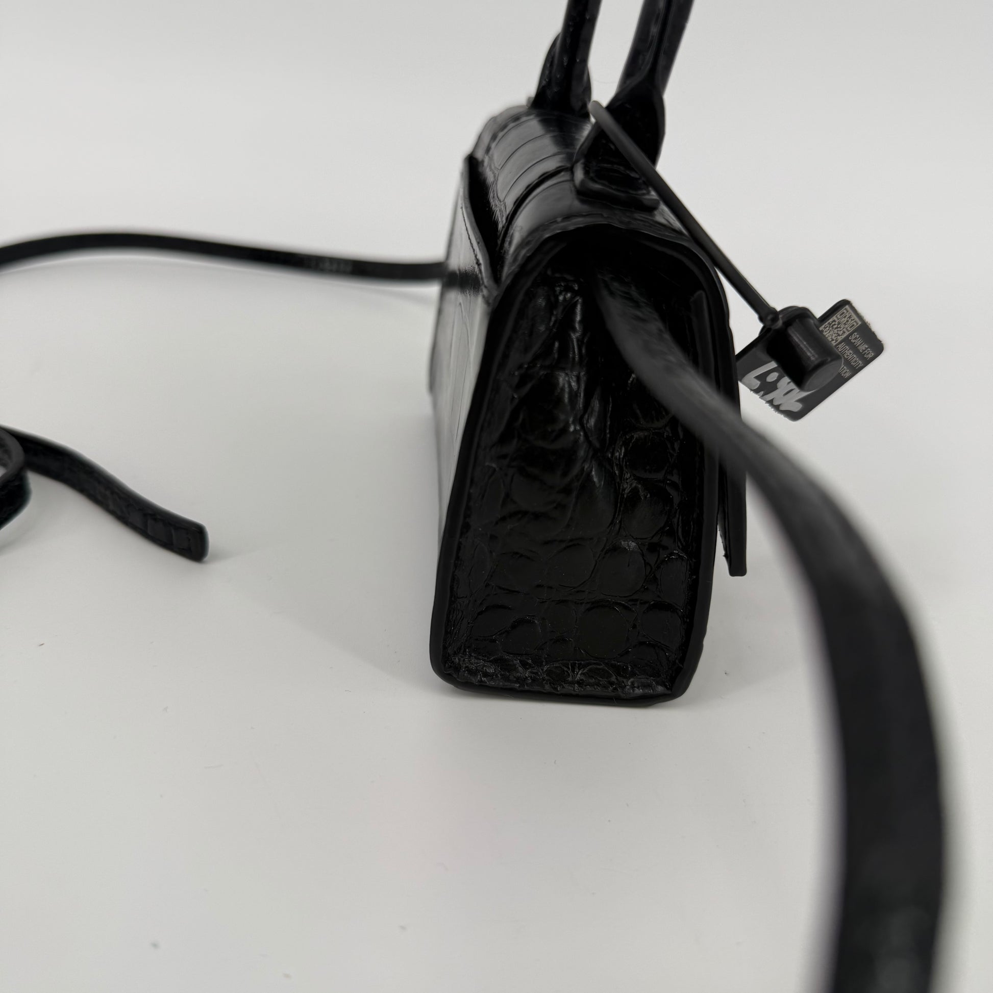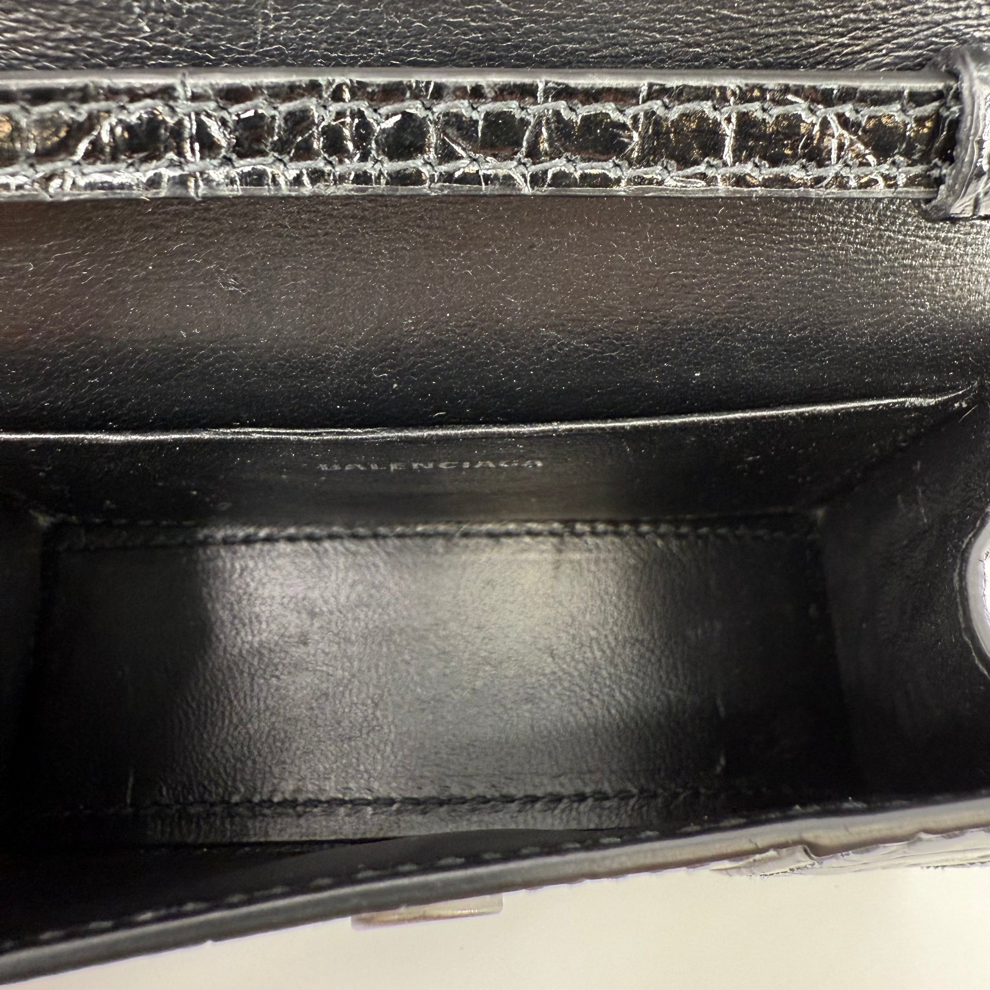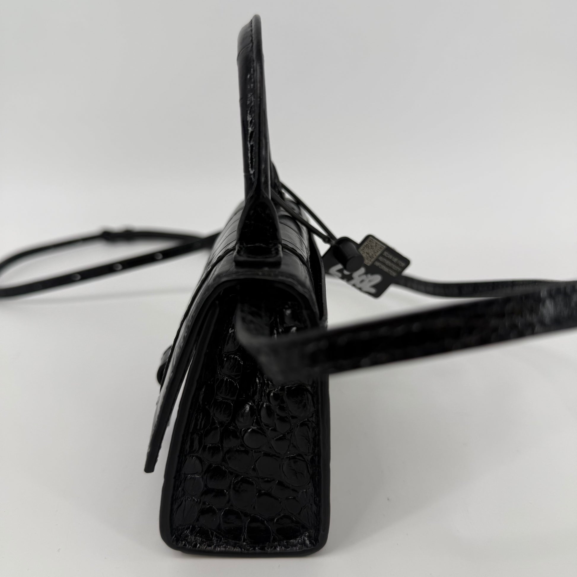 Balenciaga Black Croc Mini Hourglass Top Handle Crossbody Bag (L-302)