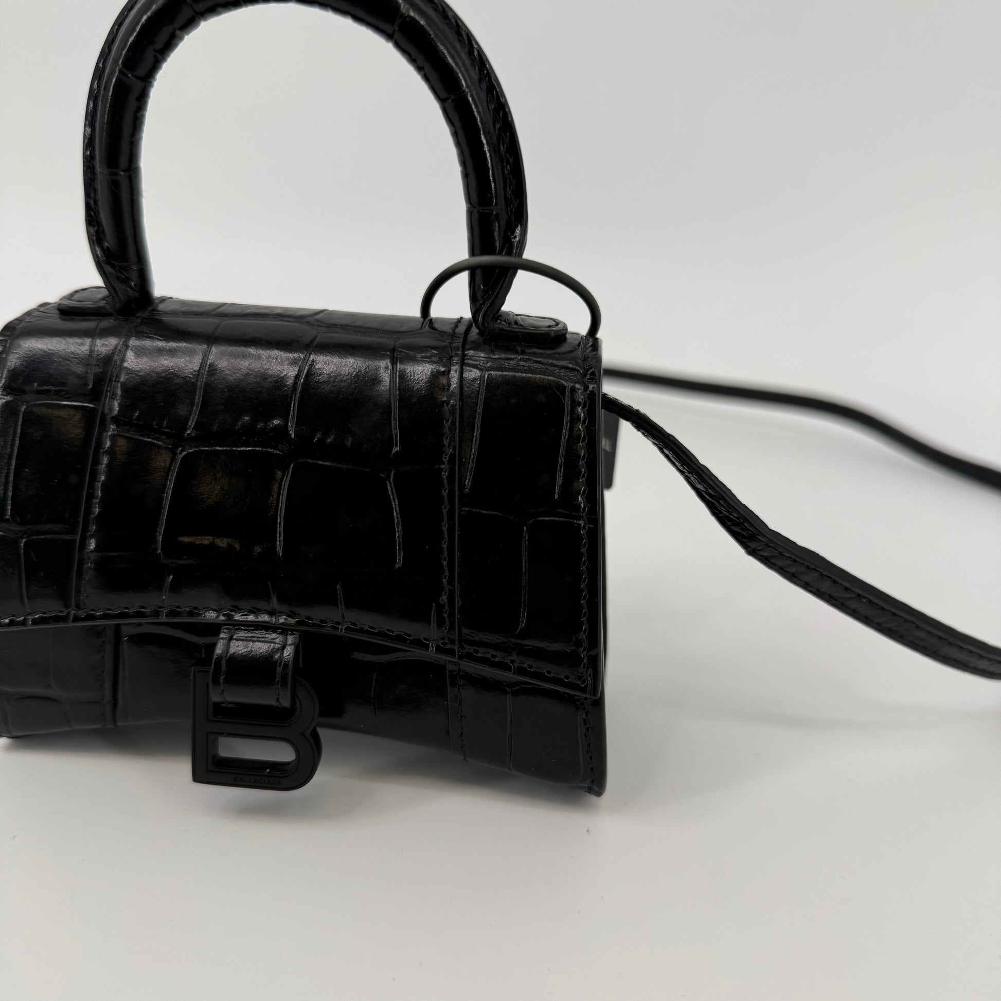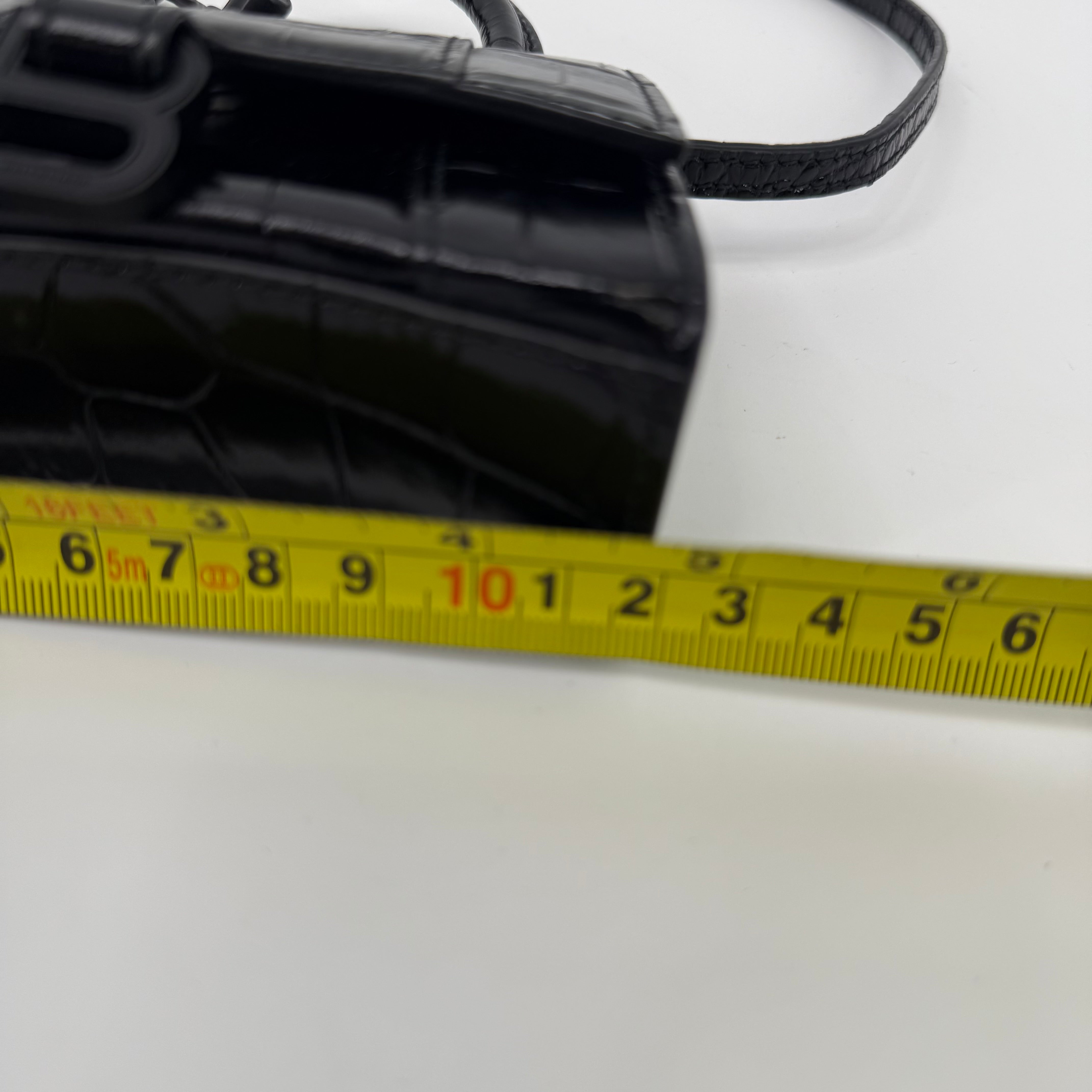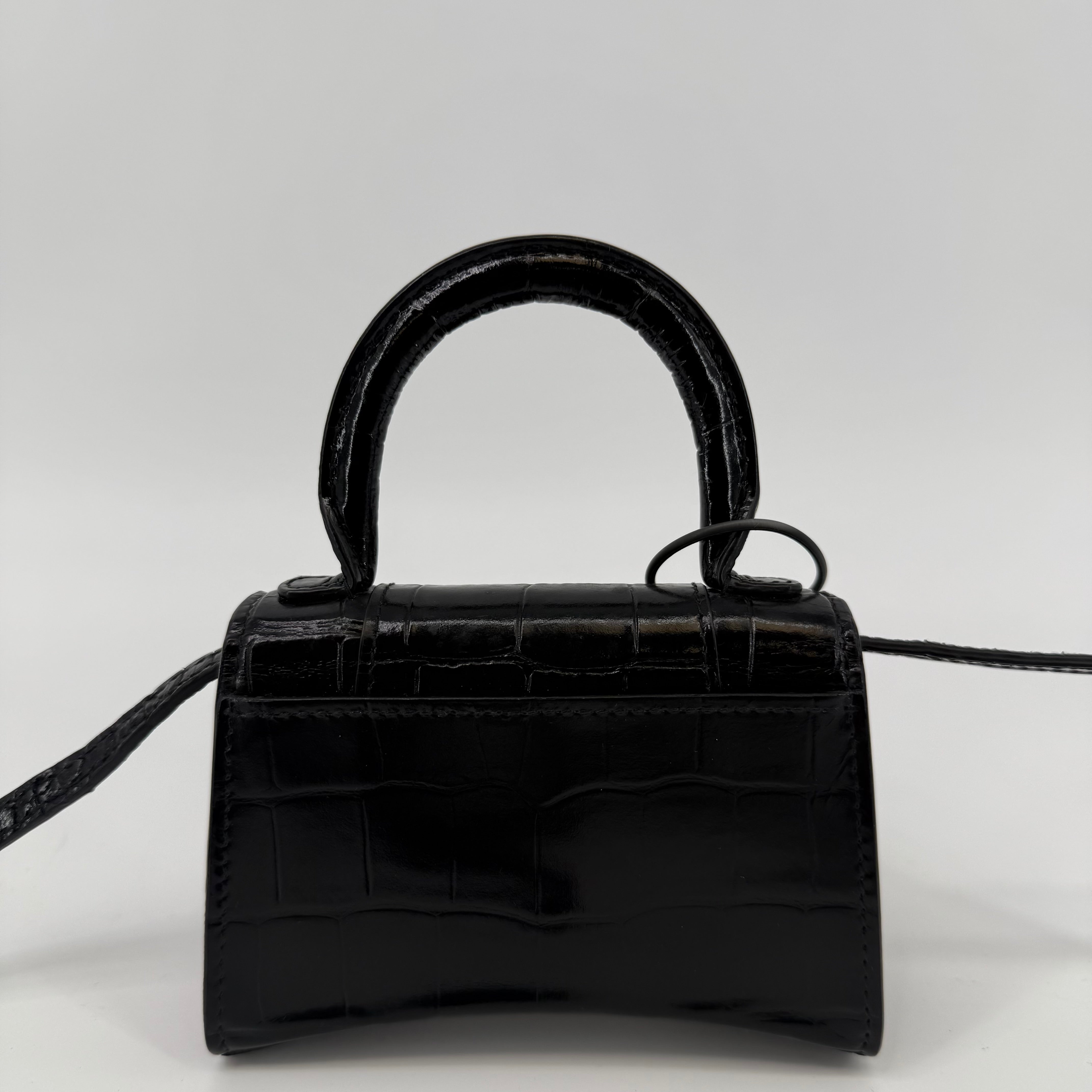 Balenciaga Black Croc Mini Hourglass Top Handle Crossbody Bag (L-302)