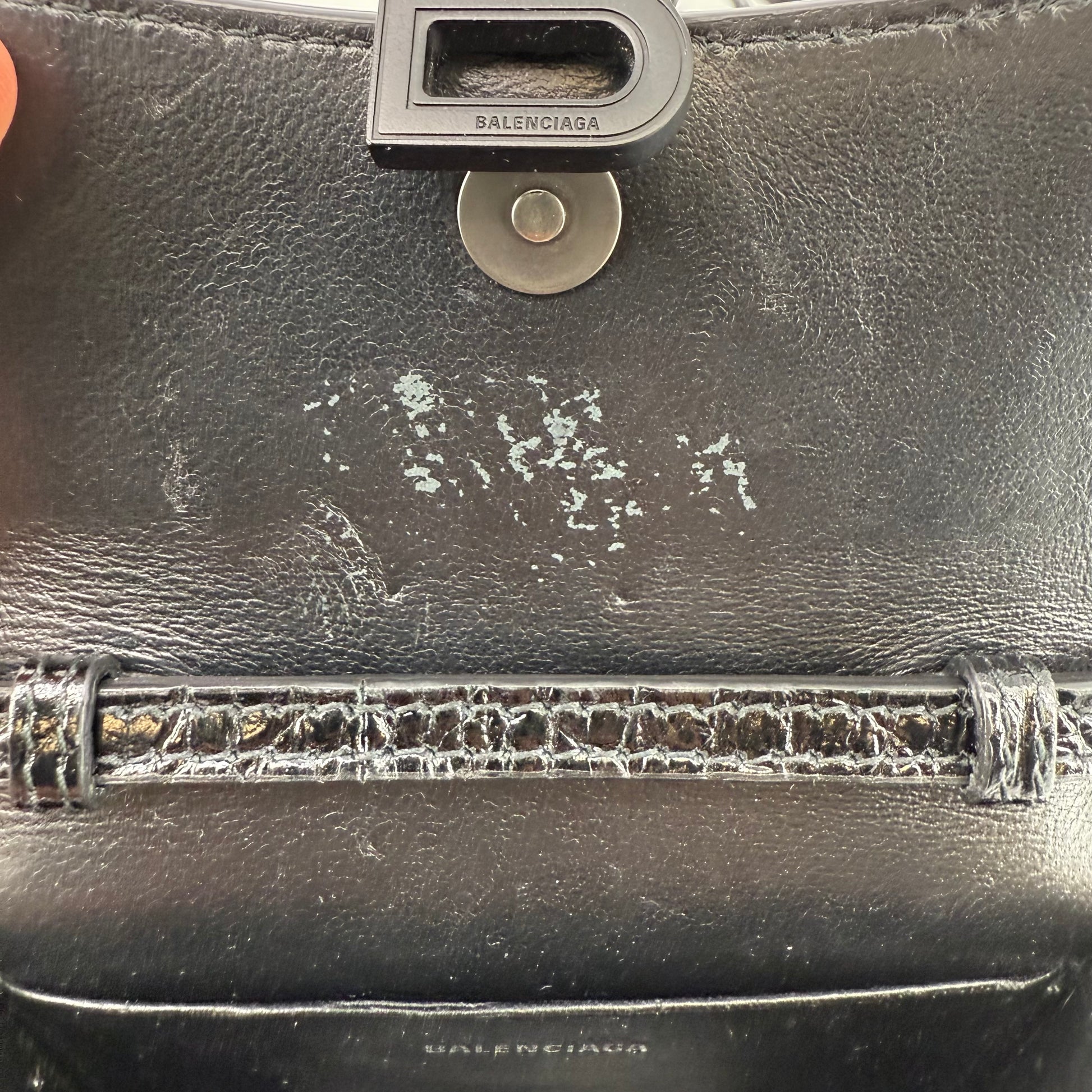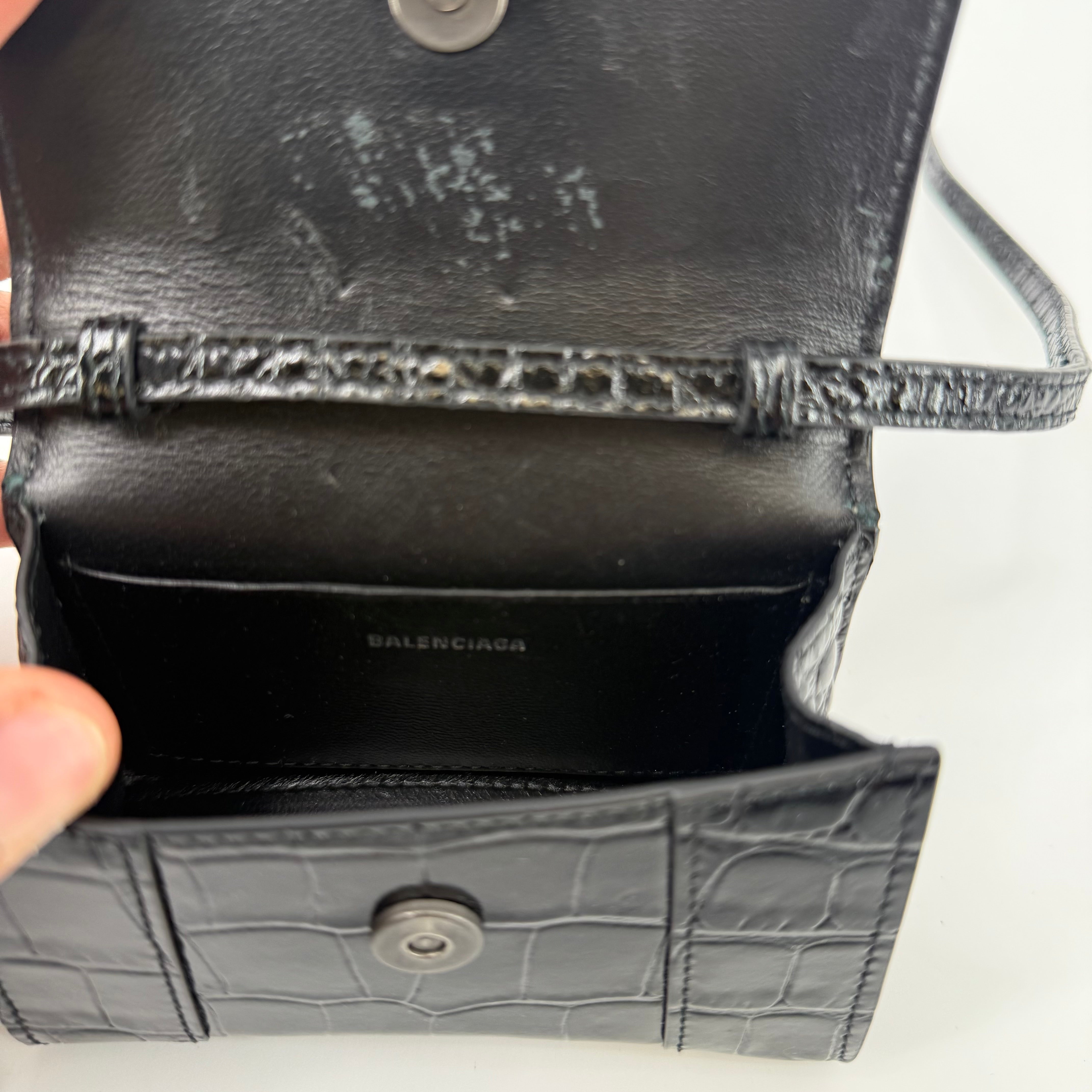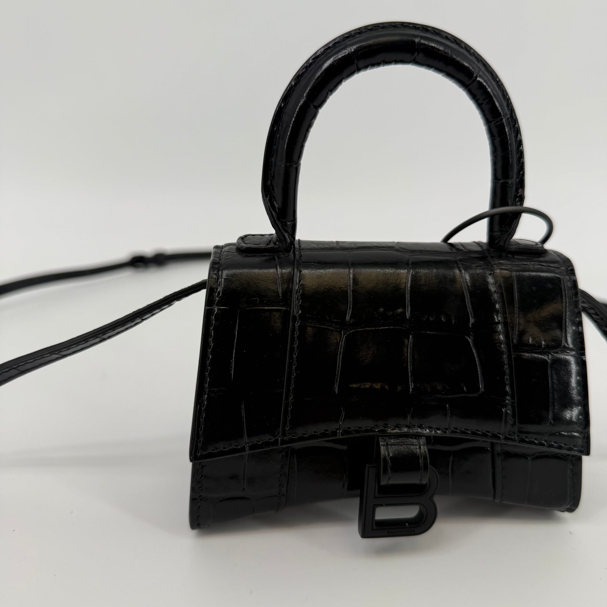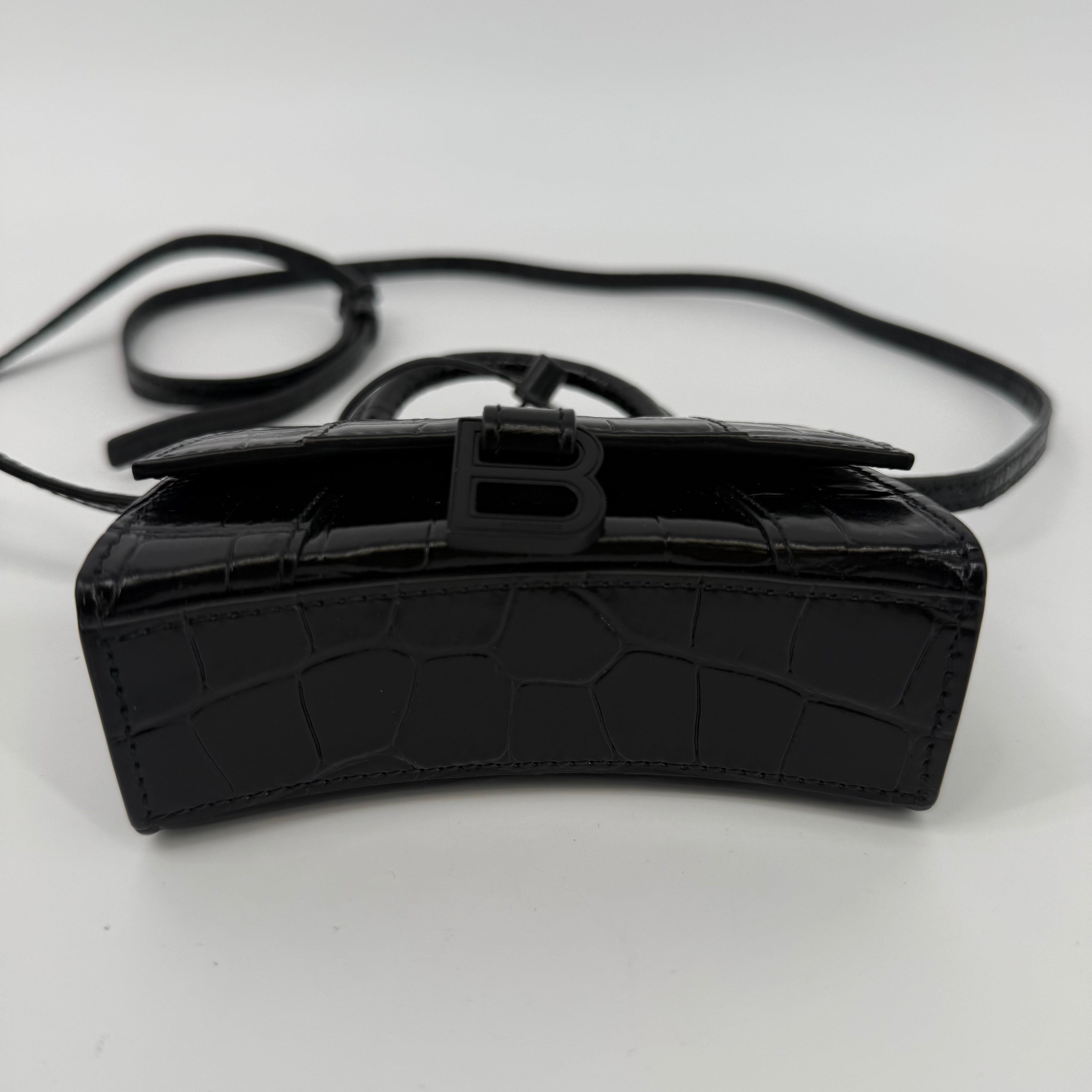 Balenciaga Black Croc Mini Hourglass Top Handle Crossbody Bag (L-302)