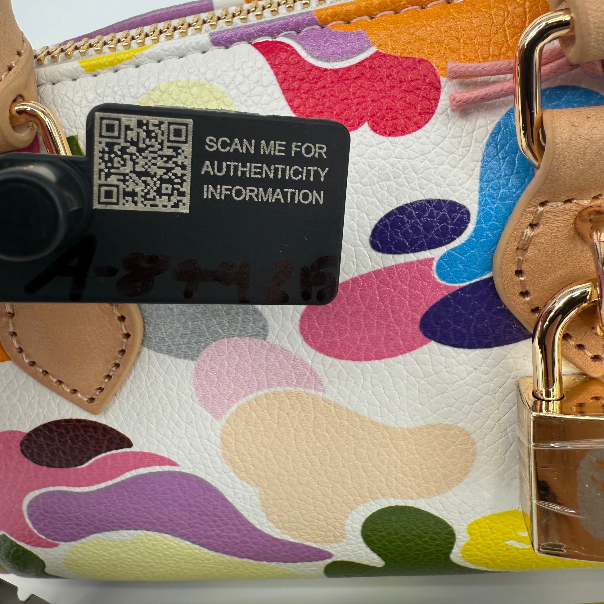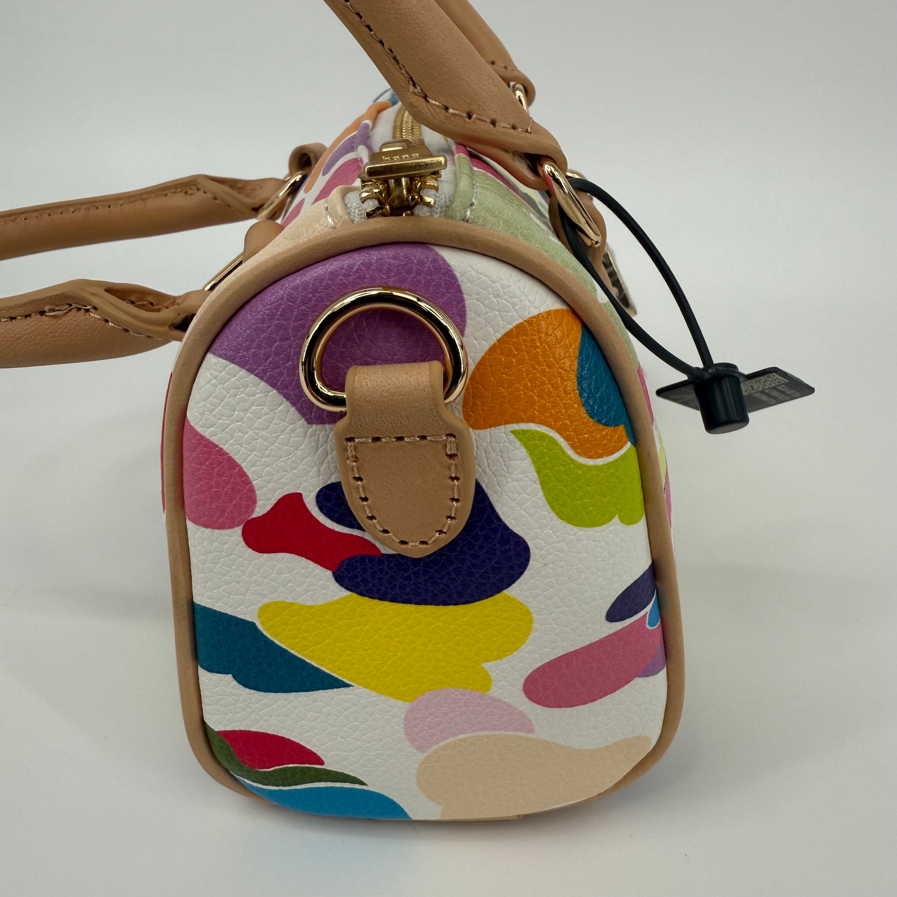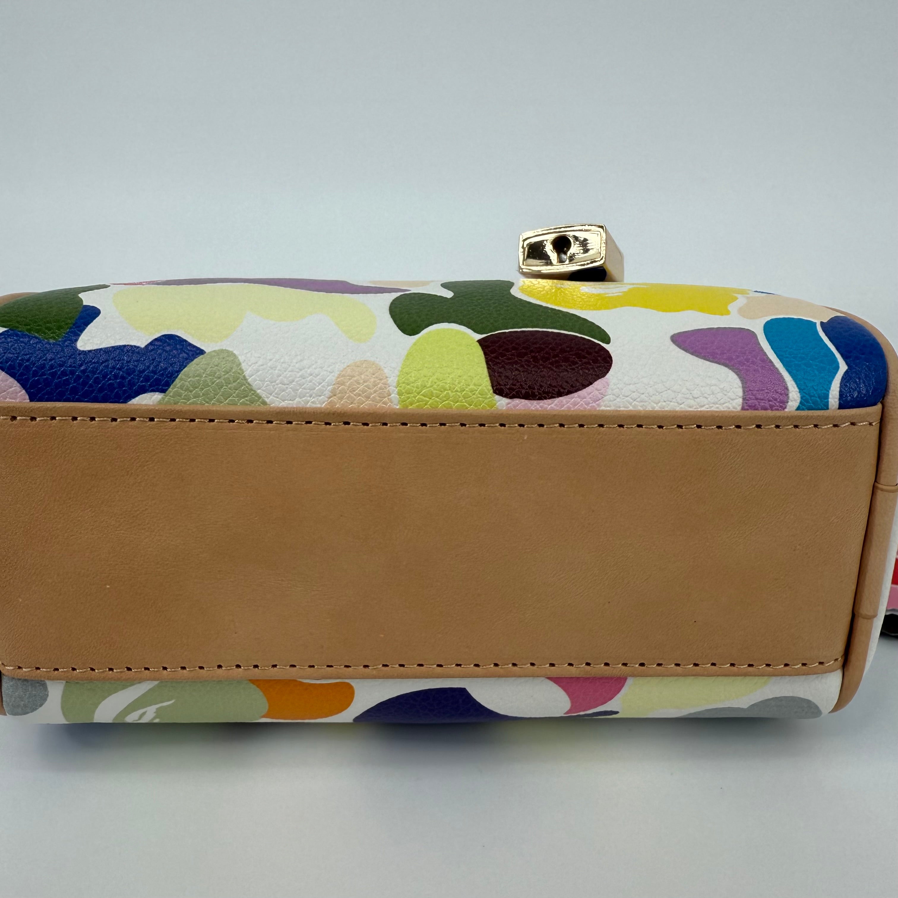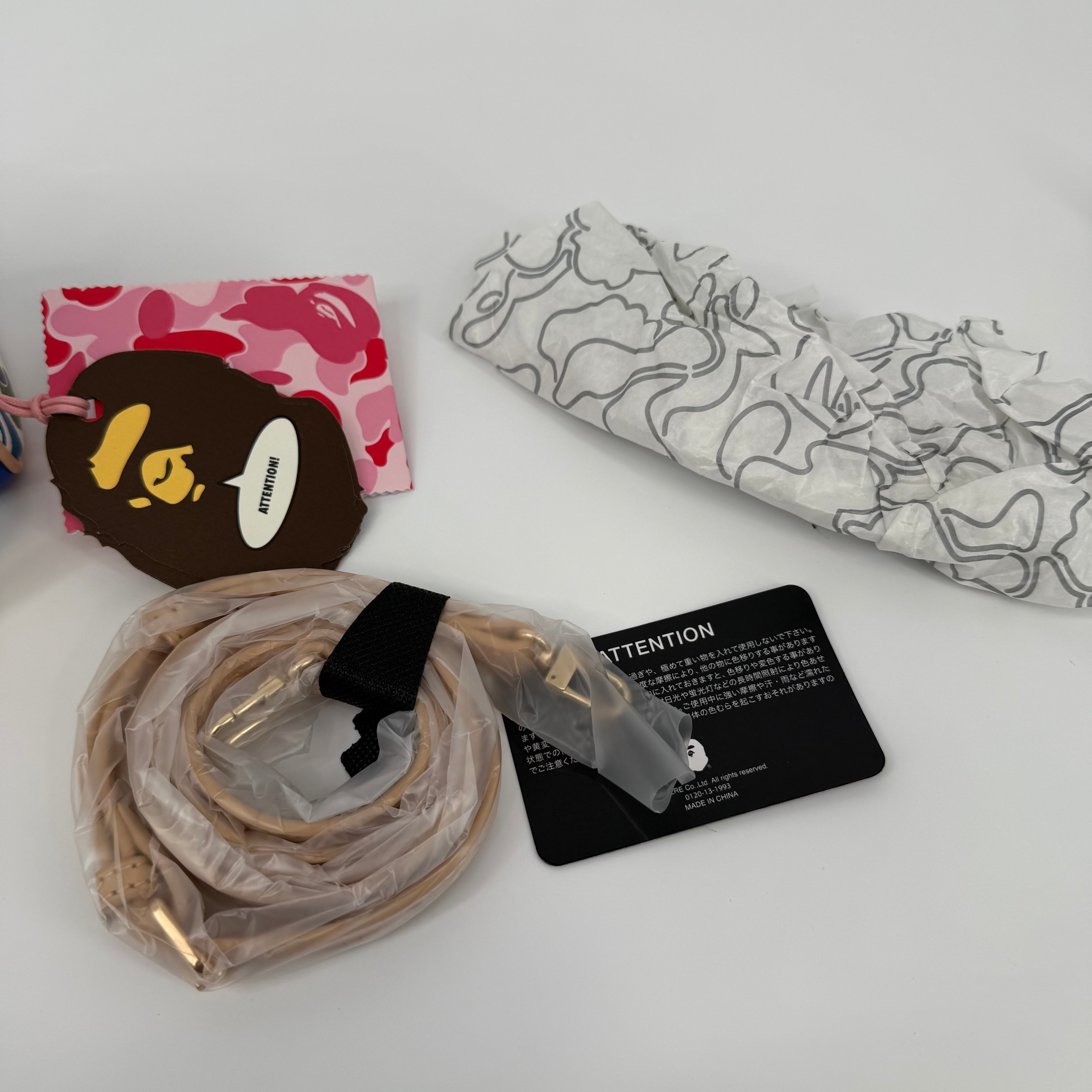 The A Bathing Ape (BAPE) Multi-Color Camo Mini Boston Bag is a vibrant statement piece that embodies the brand’s playful streetwear identity. Featuring BAPE’s signature camo motif in bold, multicolored hues and crafted from durable textured leather with natural leather handles, this compact bag balances fun design with functional luxury. Finished with gold-tone hardware and a signature BAPE padlock, it’s a standout collectible for any fashion enthusiast.