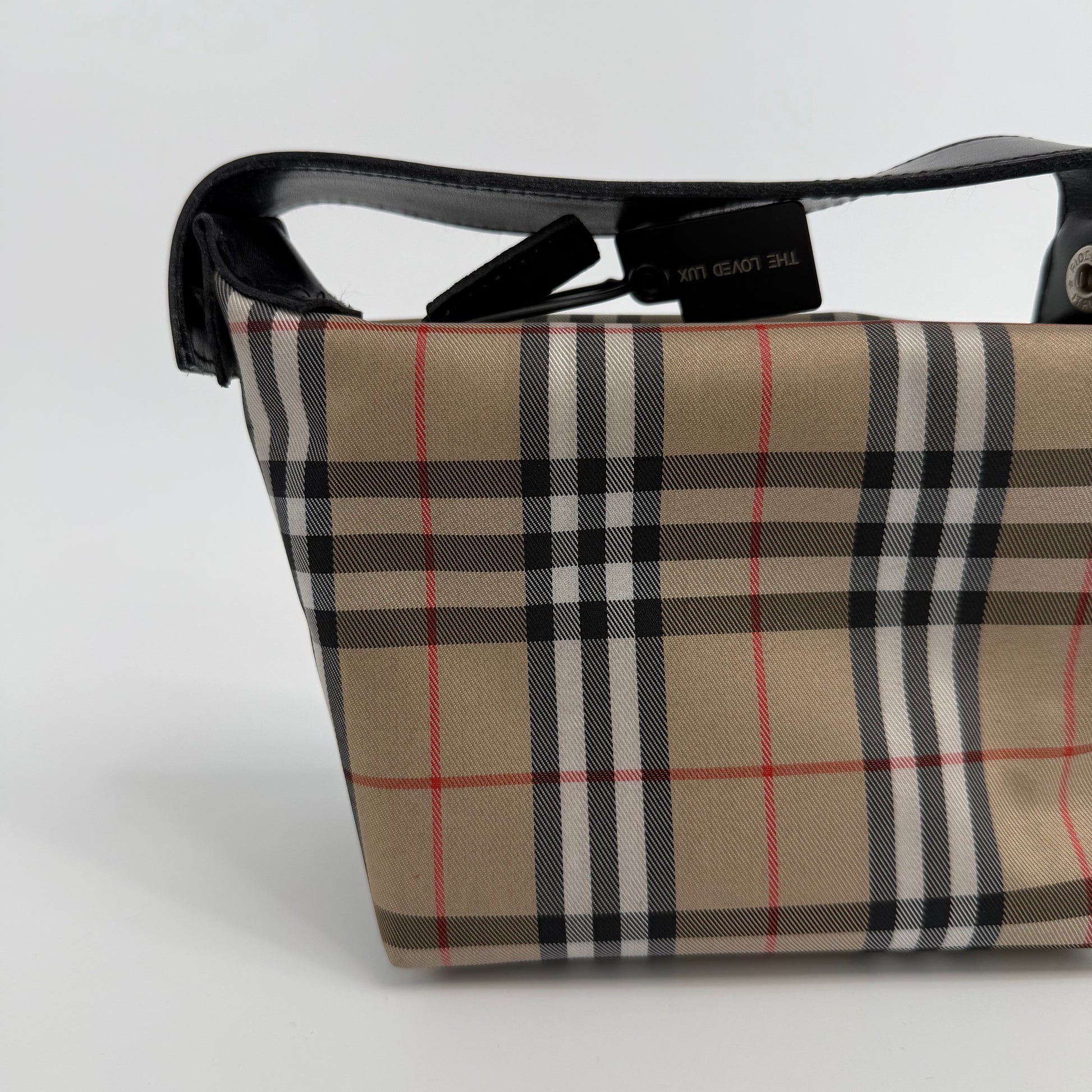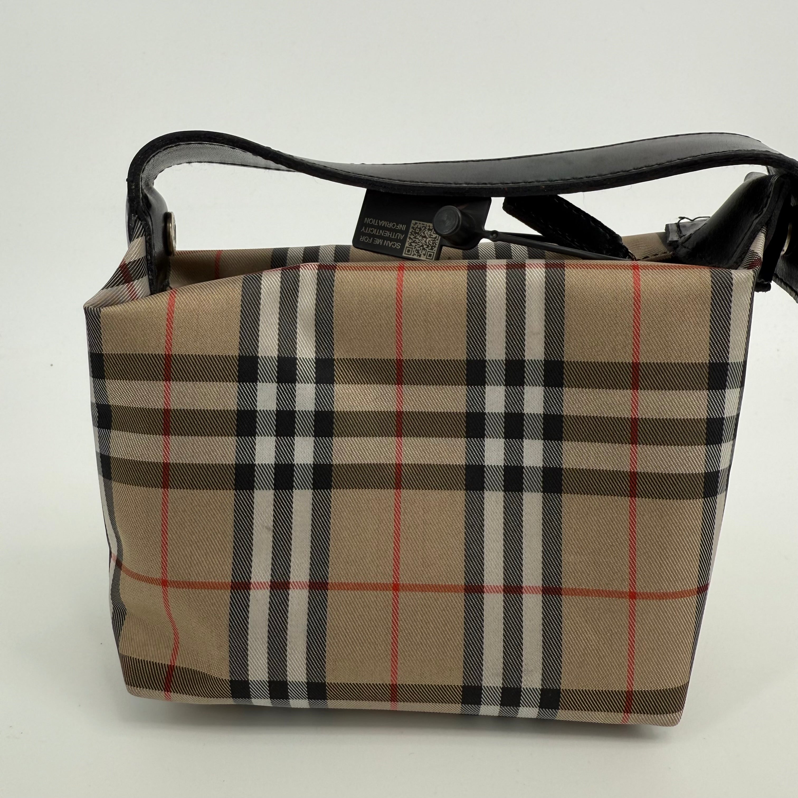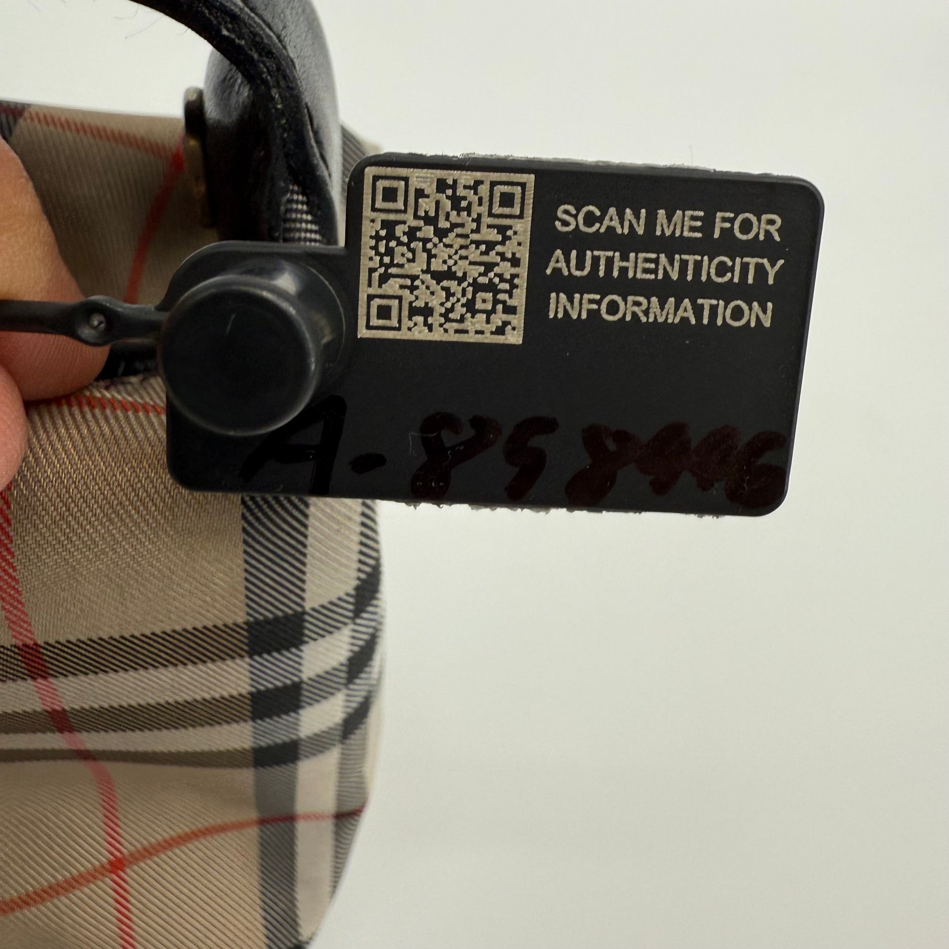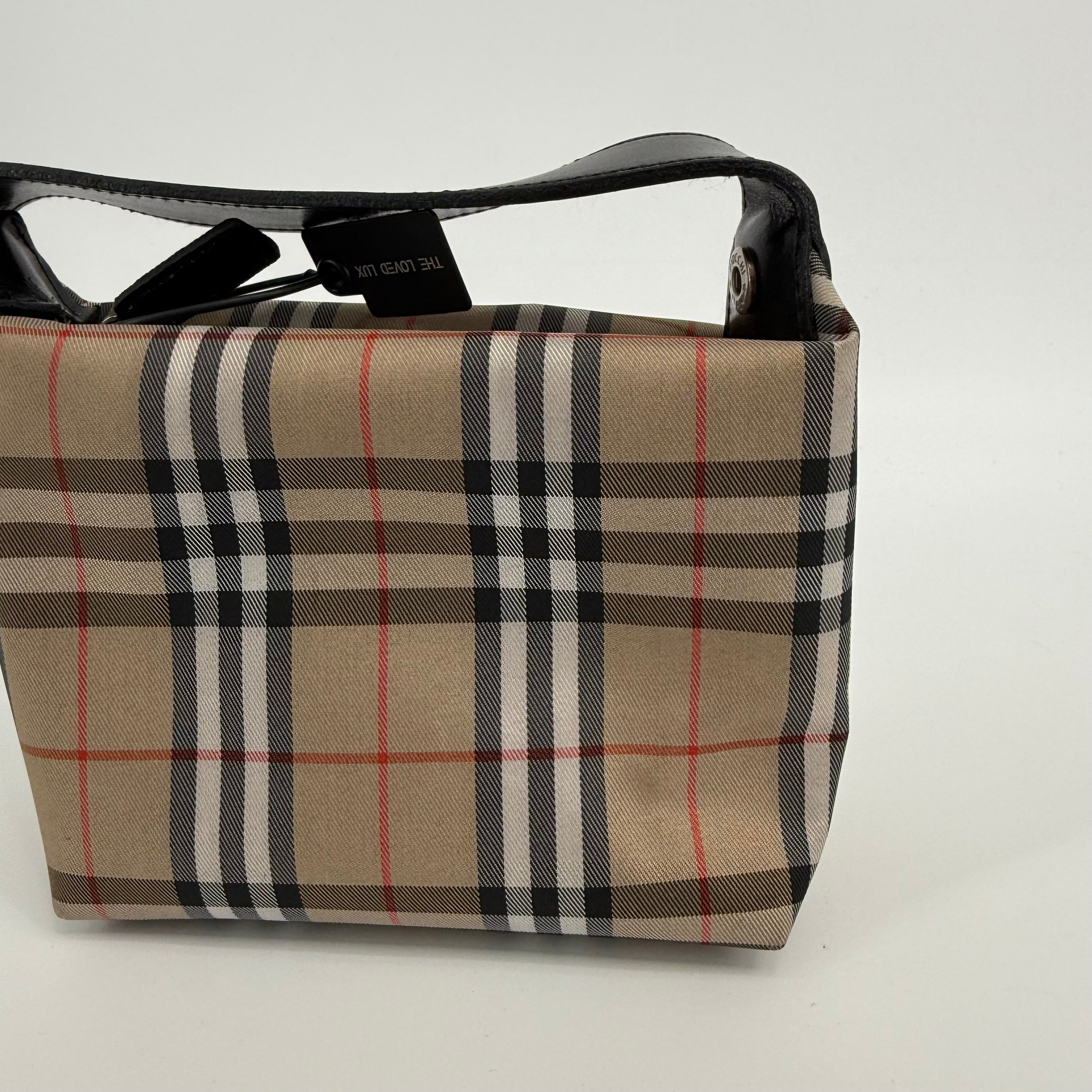 Compact yet unmistakably chic, this Burberry Mini Tote features the brand’s iconic beige, black, and red check pattern — a timeless design that never goes out of style. Crafted from durable coated canvas with black leather trim and handle, this structured piece is perfect for carrying your essentials with a touch of British elegance. Its petite silhouette makes it an ideal everyday companion or a stylish travel accessory.