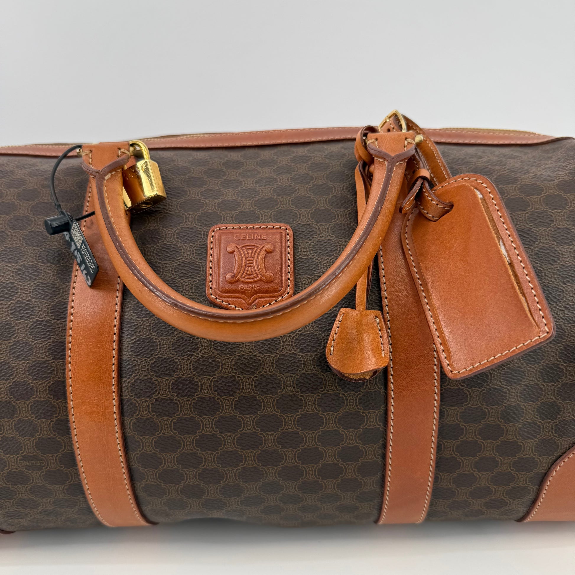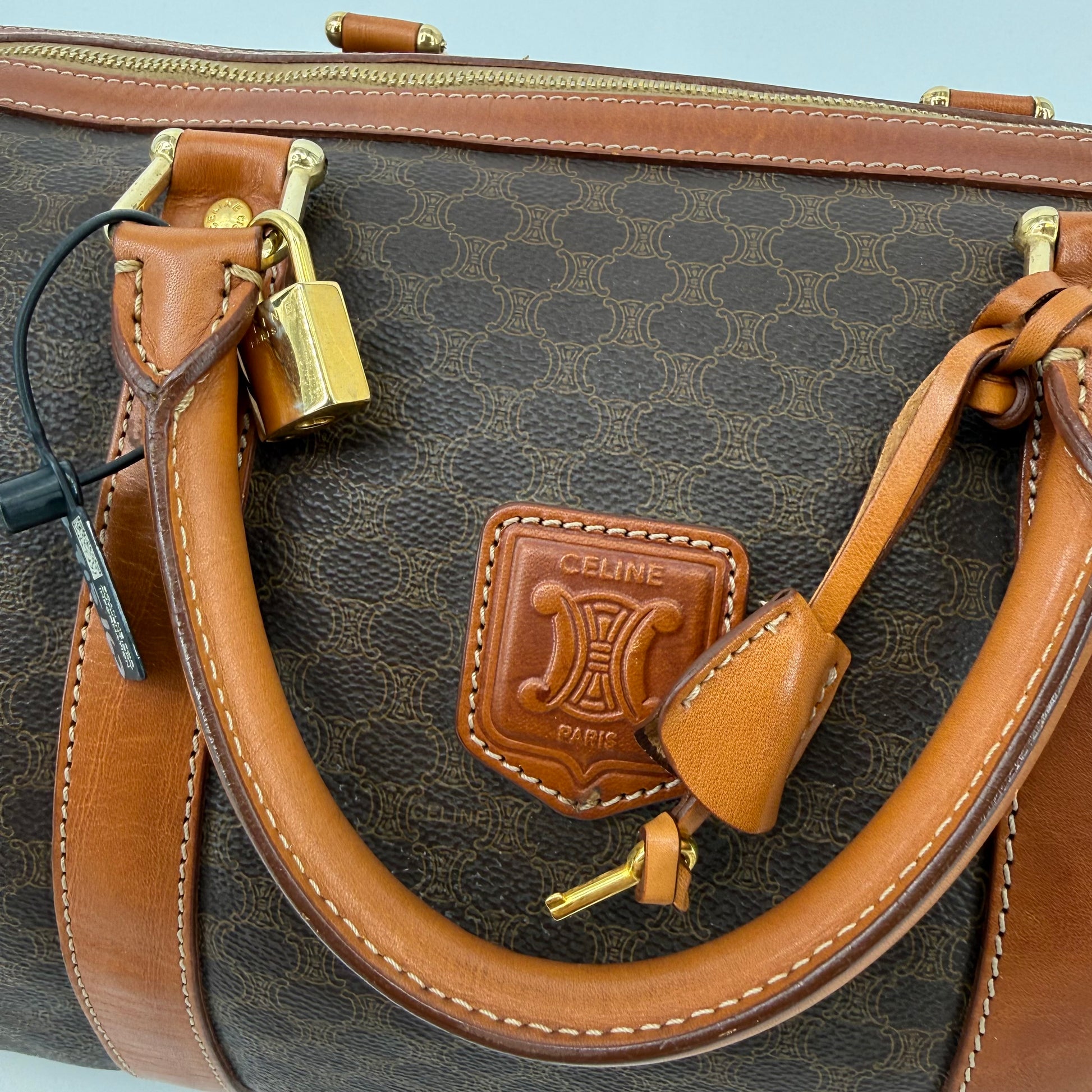 Celine Monogram Macadam Triomphe Boston 40 Bag With Lock & Key (915163)
