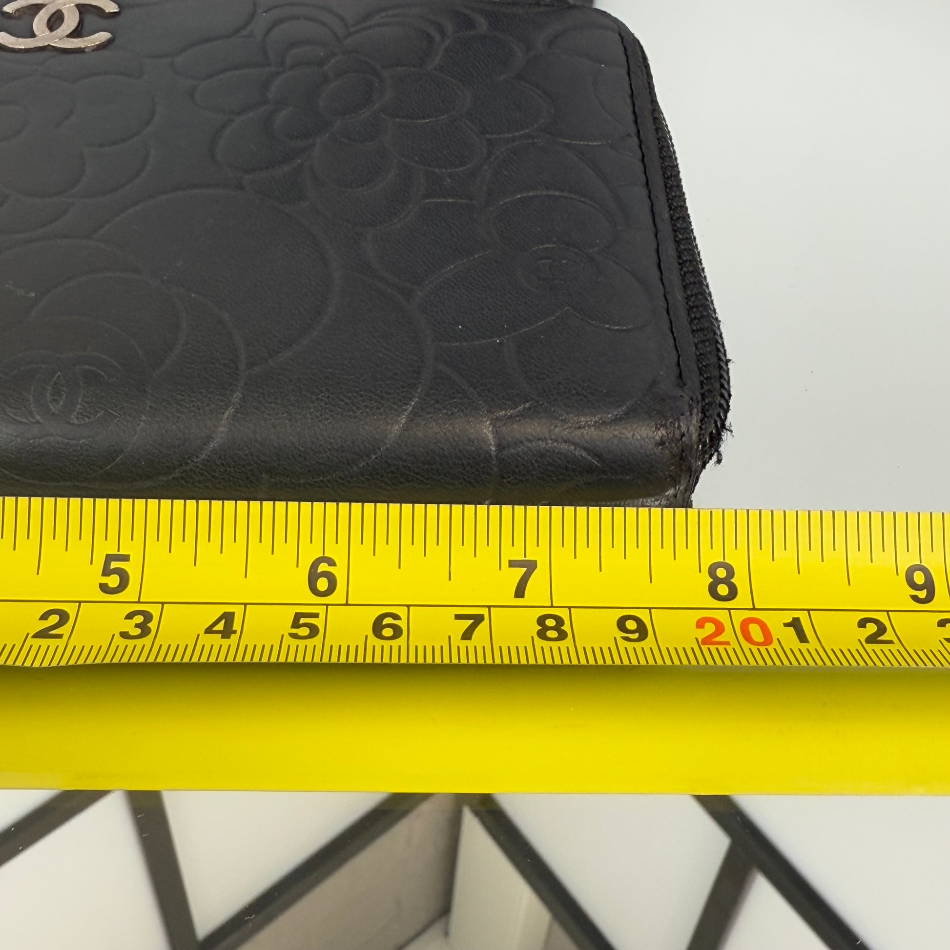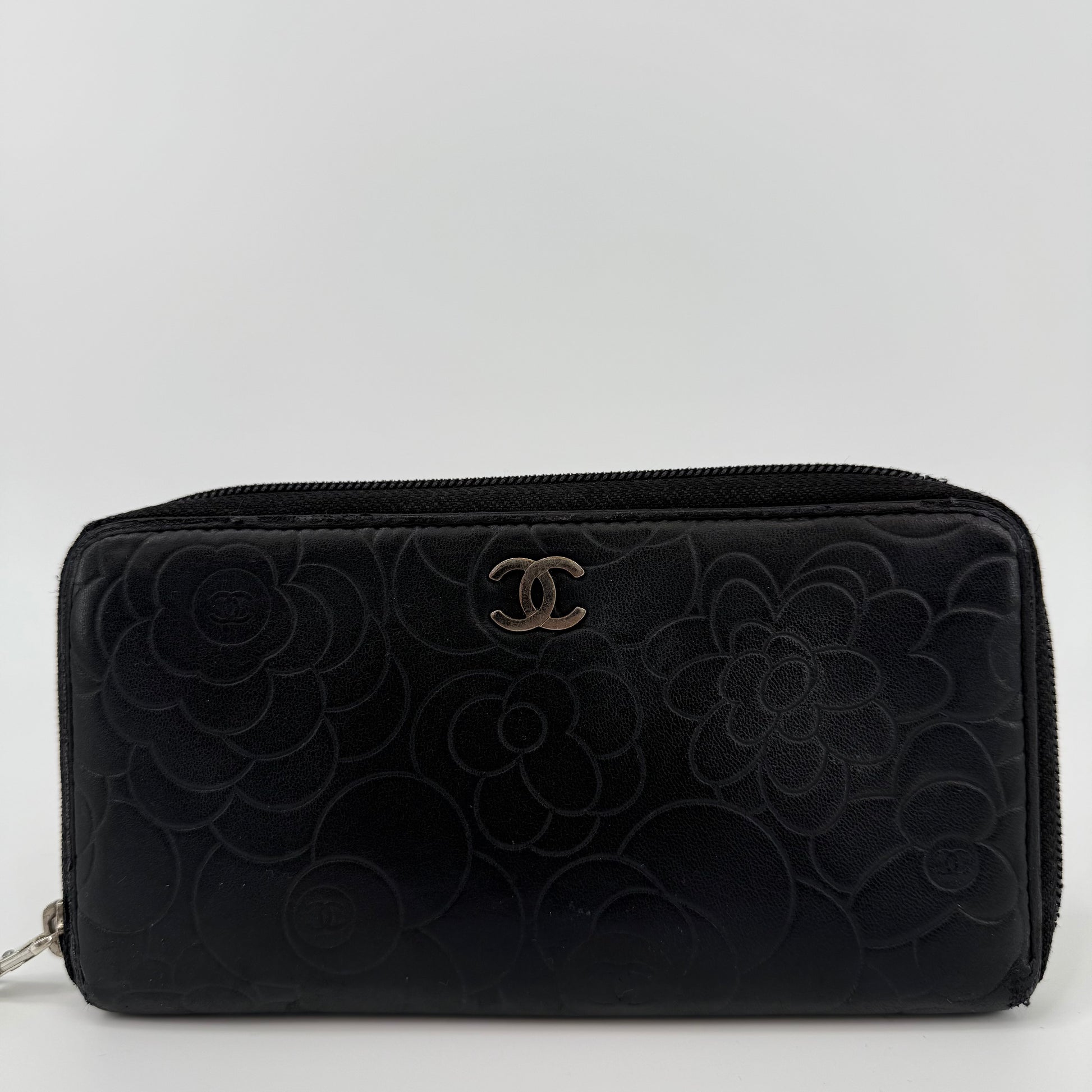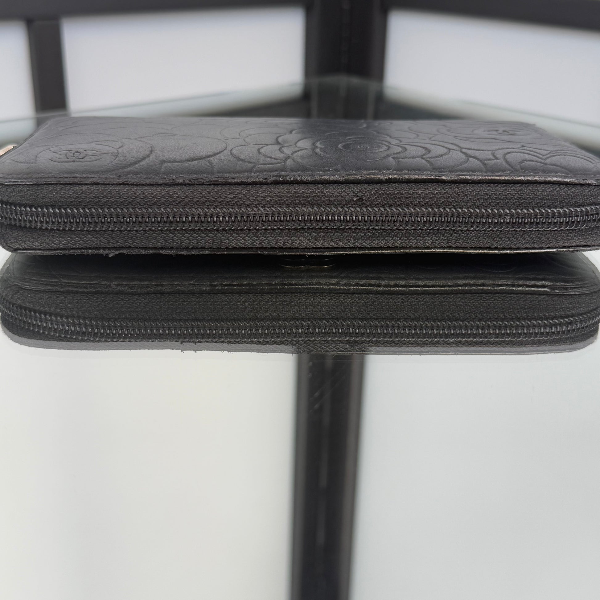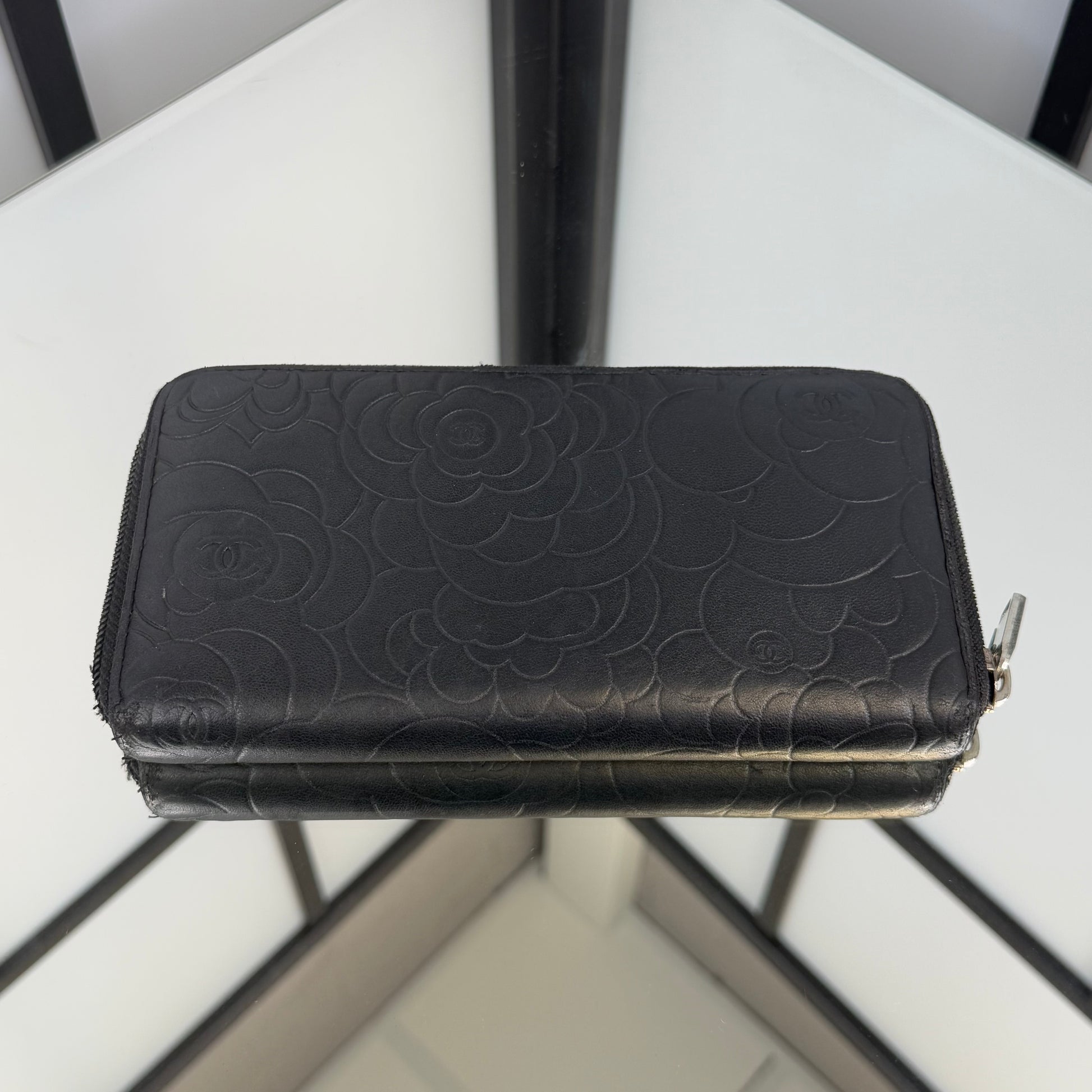 The CHANEL Black Camélia Zip Long Wallet is an exquisite blend of femininity and timeless design. Featuring the iconic Camélia flower motif embossed on supple black leather, this piece captures Chanel’s romantic elegance. With its practical zip-around closure and spacious interior, it’s both a statement of luxury and an everyday essential.