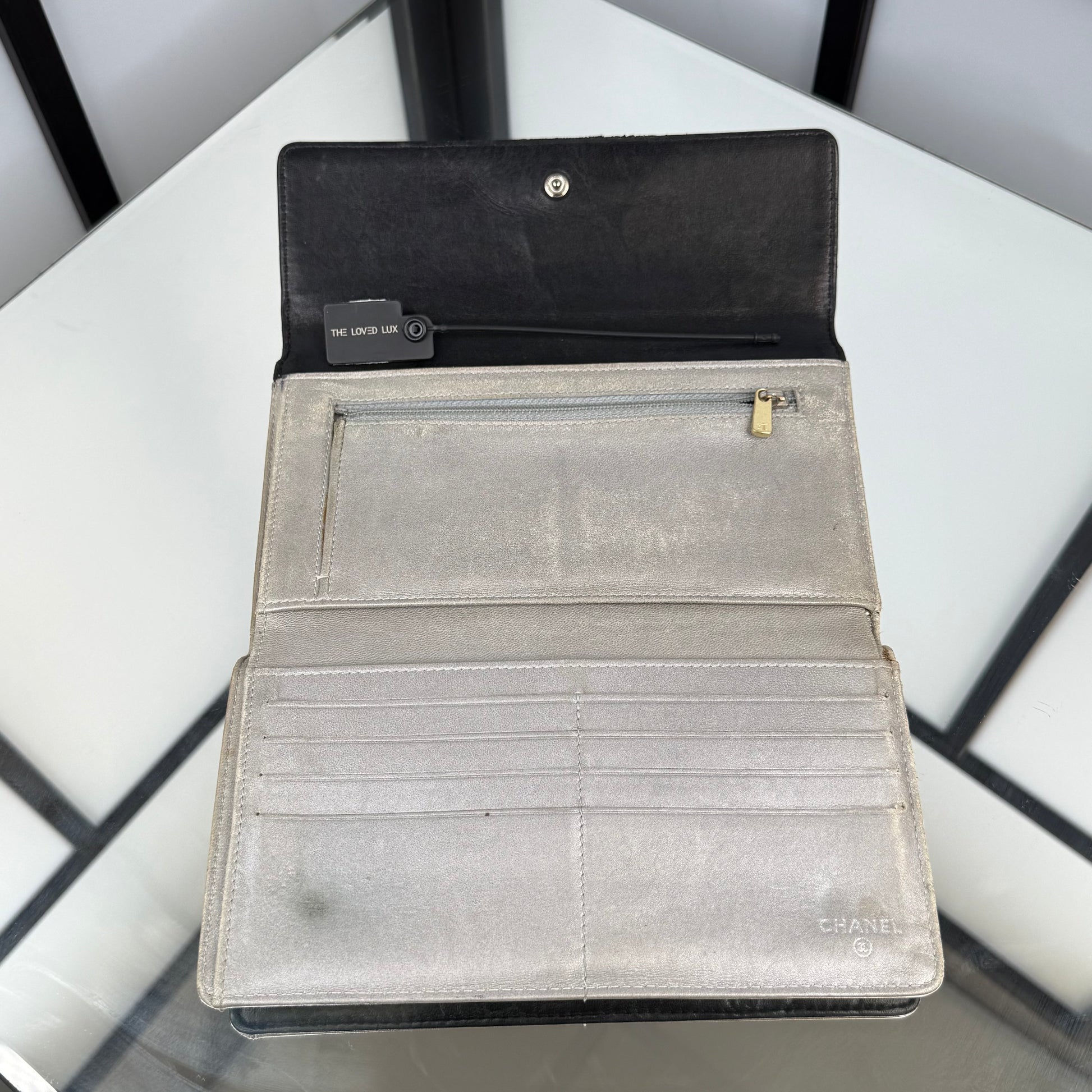 The Chanel Black Long Purse is a timeless emblem of sophistication and Parisian craftsmanship. Expertly crafted from luxurious black leather and adorned with the iconic CC logo, it combines elegance with everyday practicality. Designed with multiple compartments for cards, notes, and coins, this sleek wallet perfectly embodies Chanel’s enduring commitment to classic style and impeccable quality.