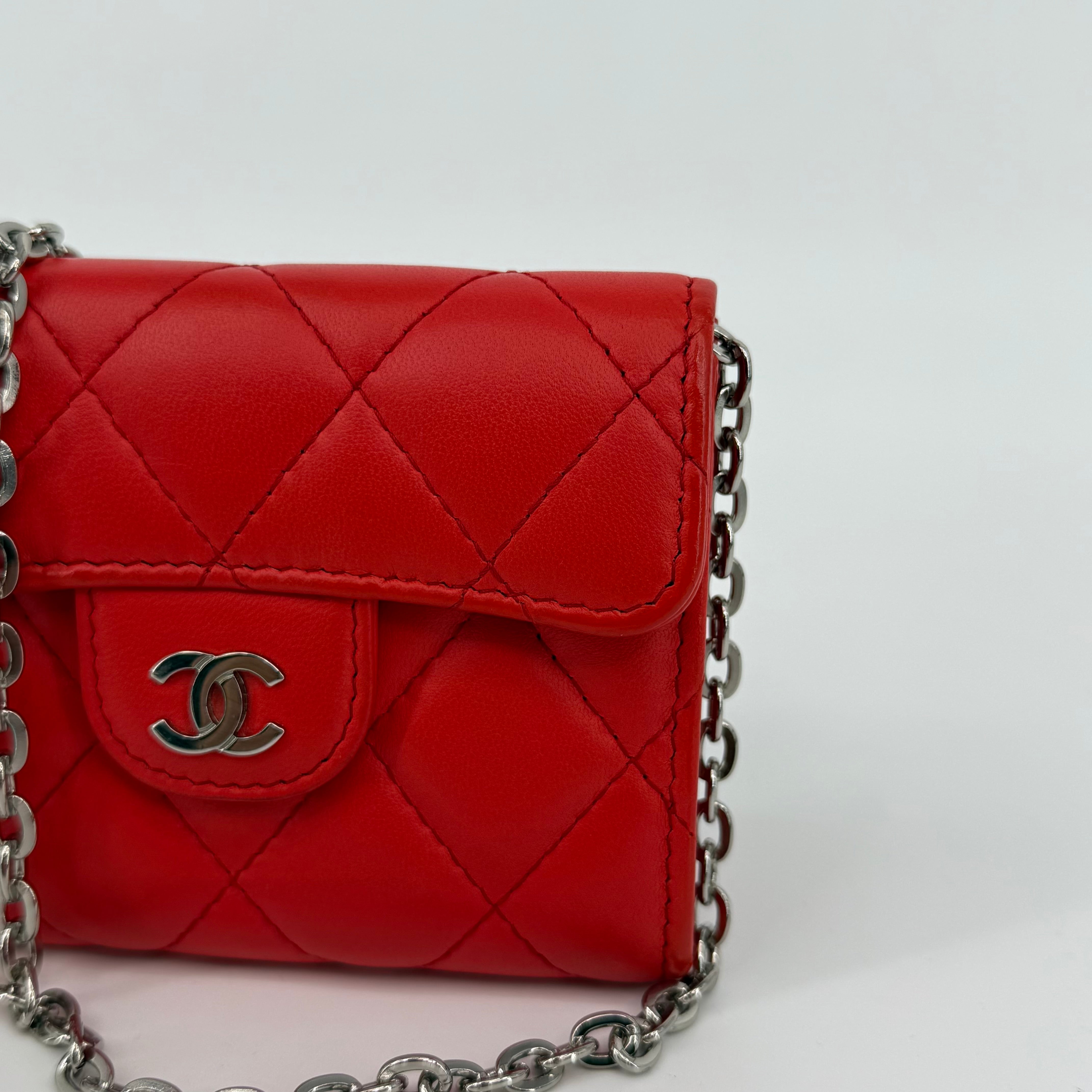 Chanel Quilted Red Classic Flap Mini WOC (L-141)