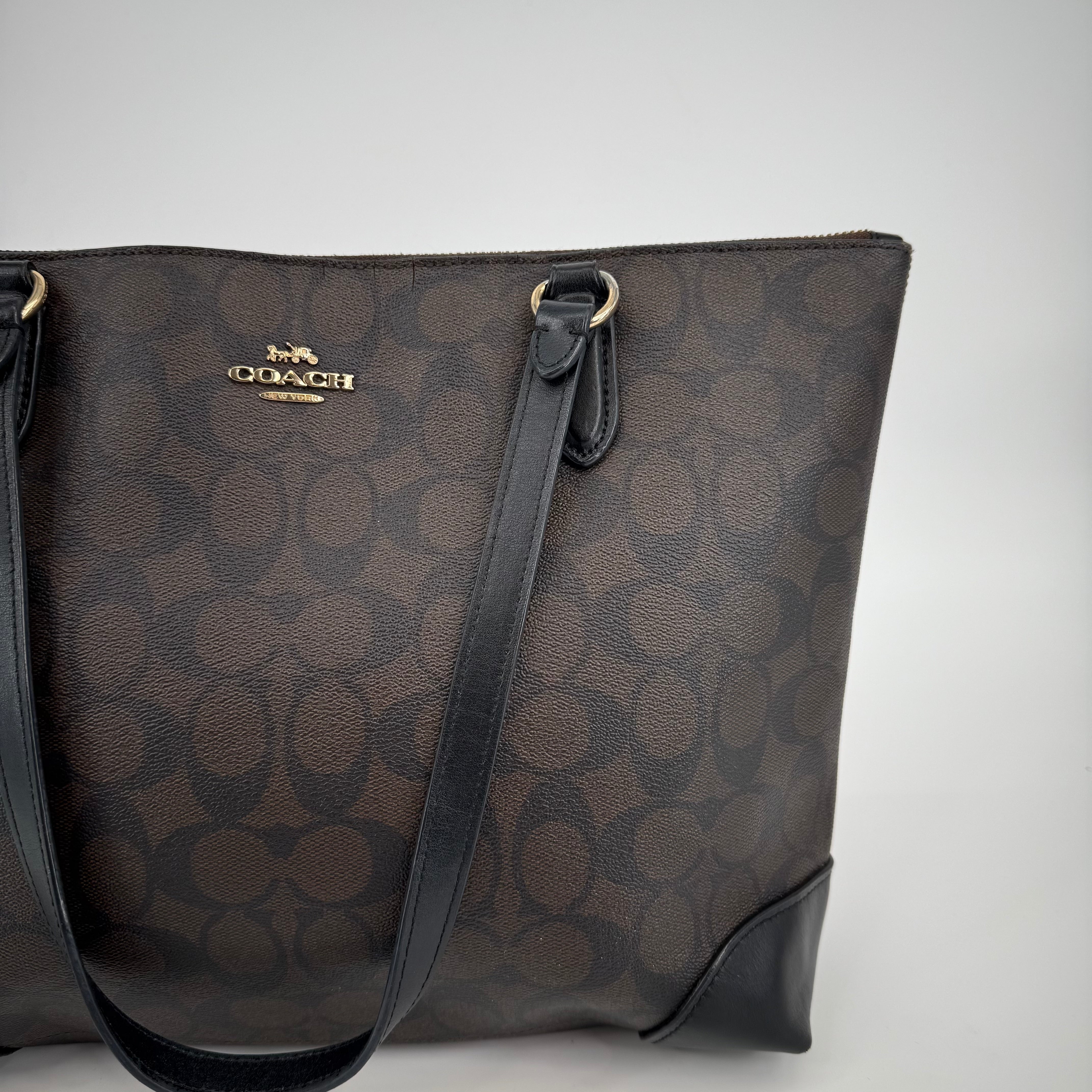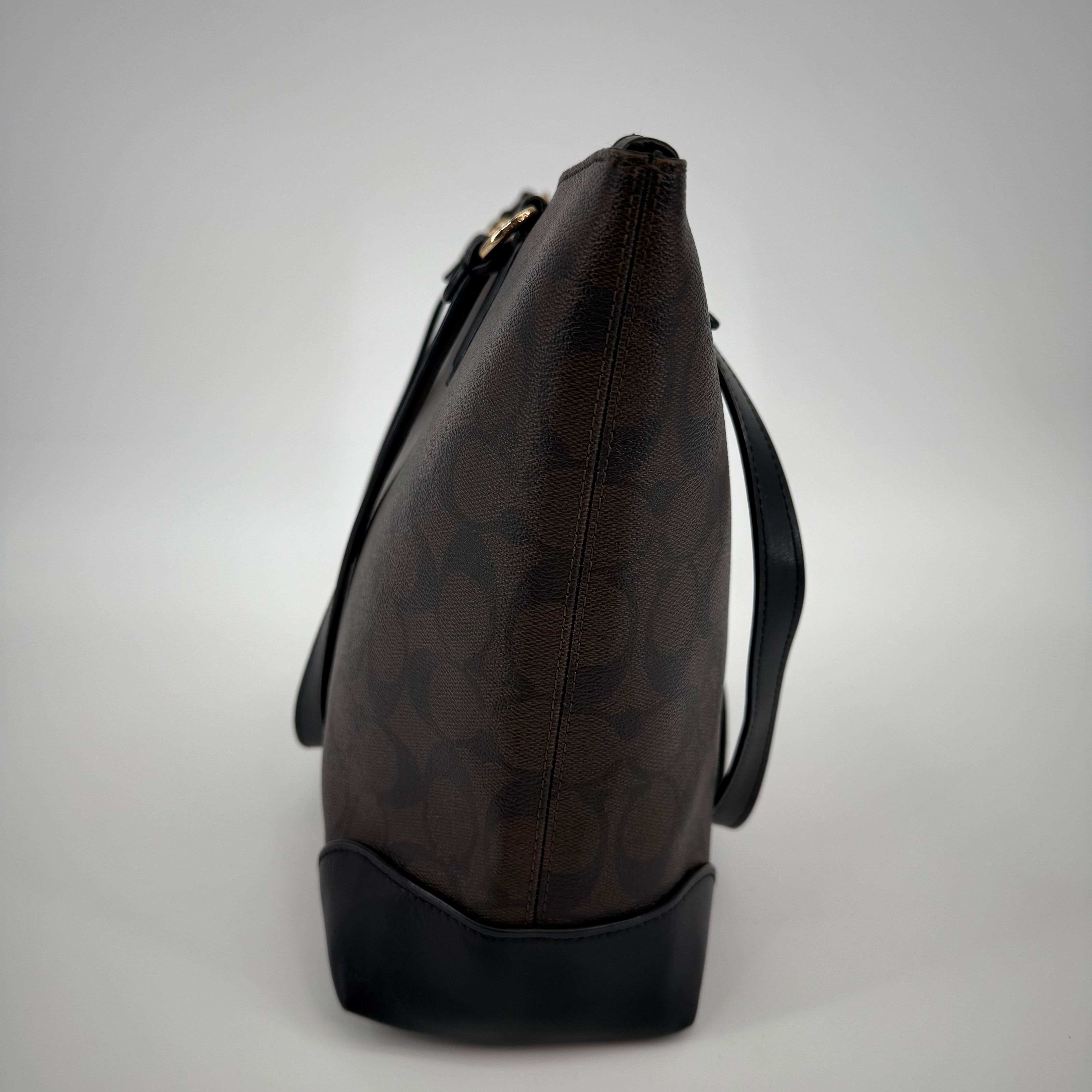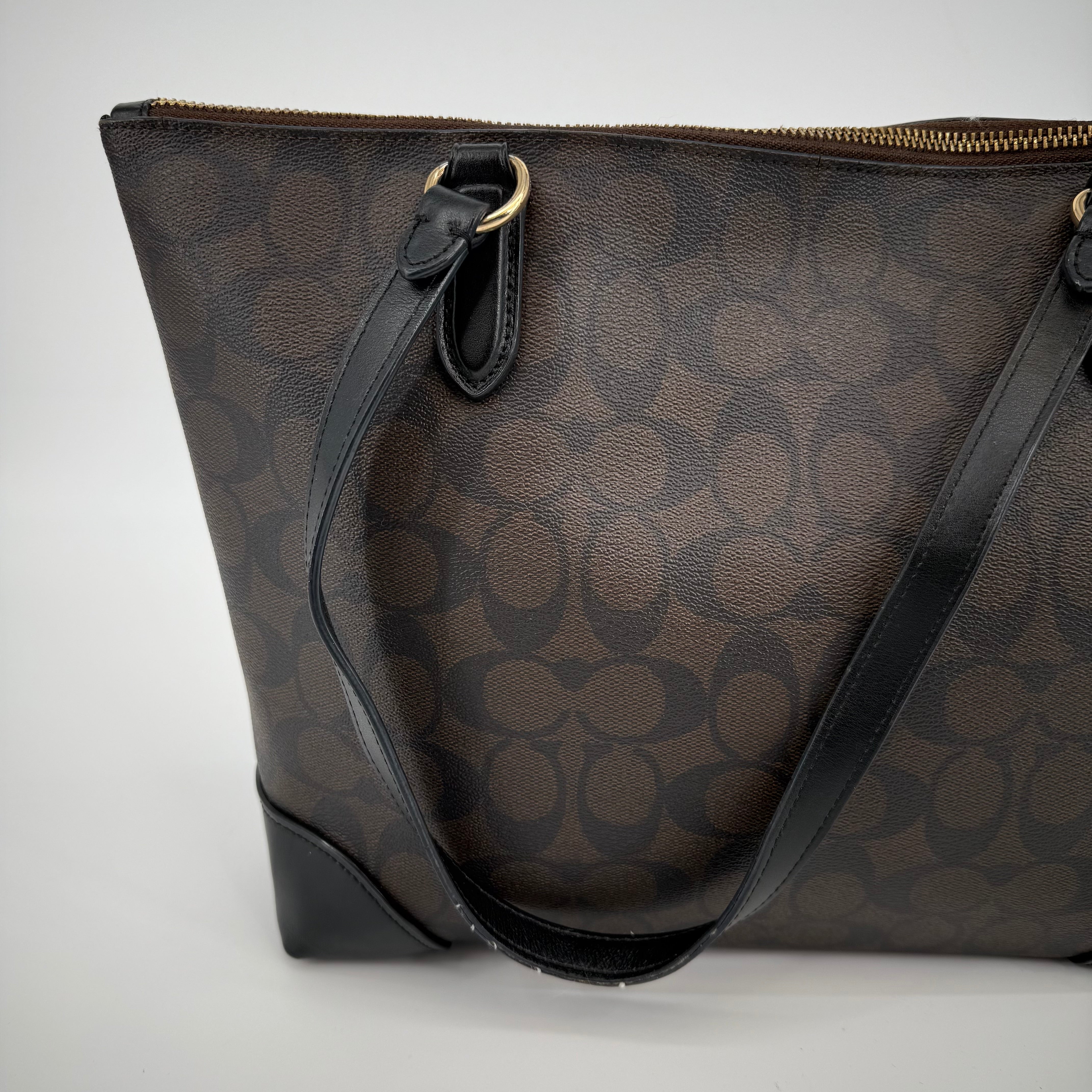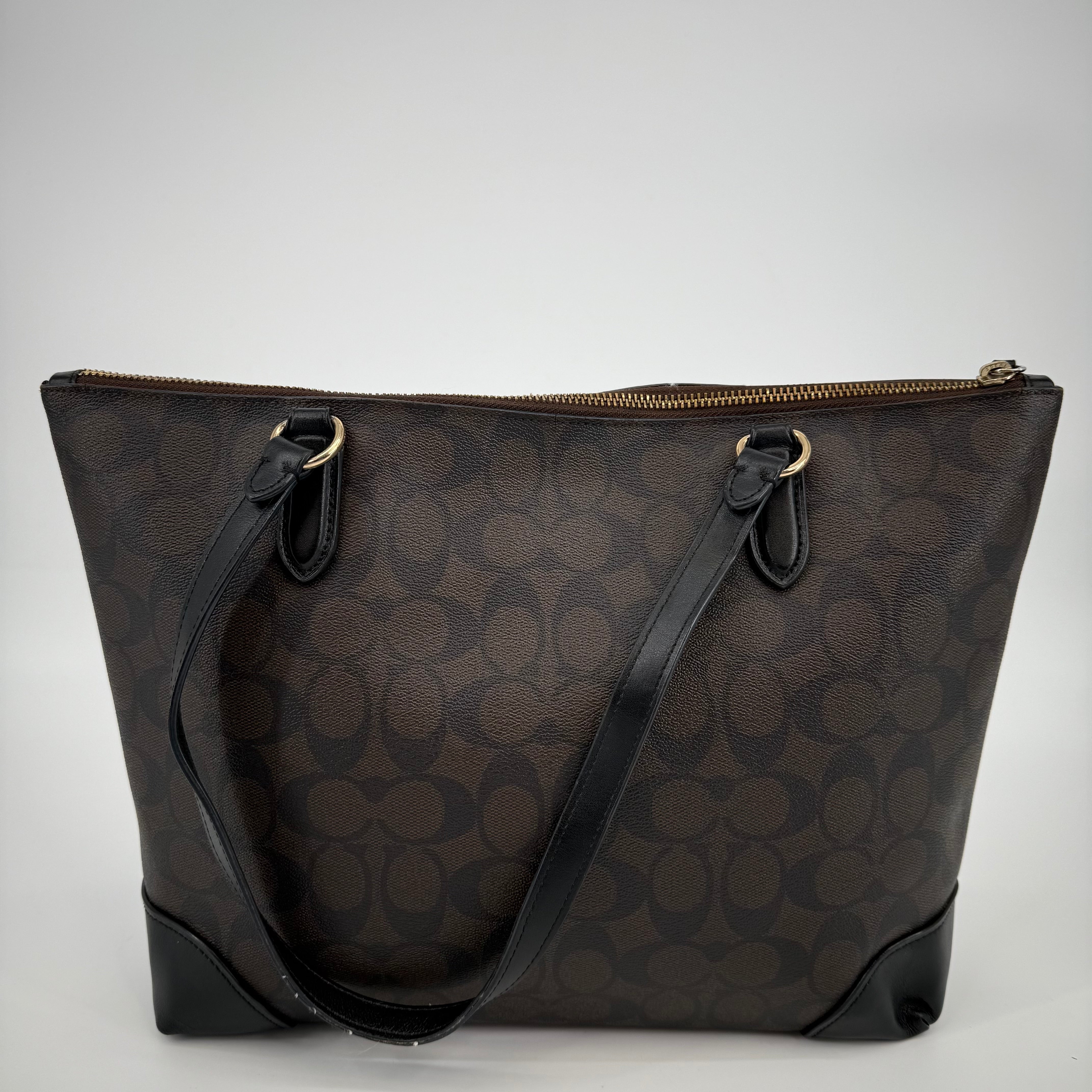 This Coach Monogram Brown Tote Bag is a timeless everyday essential crafted in the brand’s signature coated canvas. Featuring the classic brown monogram pattern with smooth black leather trim, this spacious tote is perfect for daily use, shopping, work, or travel. It includes comfortable dual top handles, a roomy open interior, and secure zip-top closure, making it both stylish and practical. A durable and lightweight design, ideal for carrying all your essentials with ease.