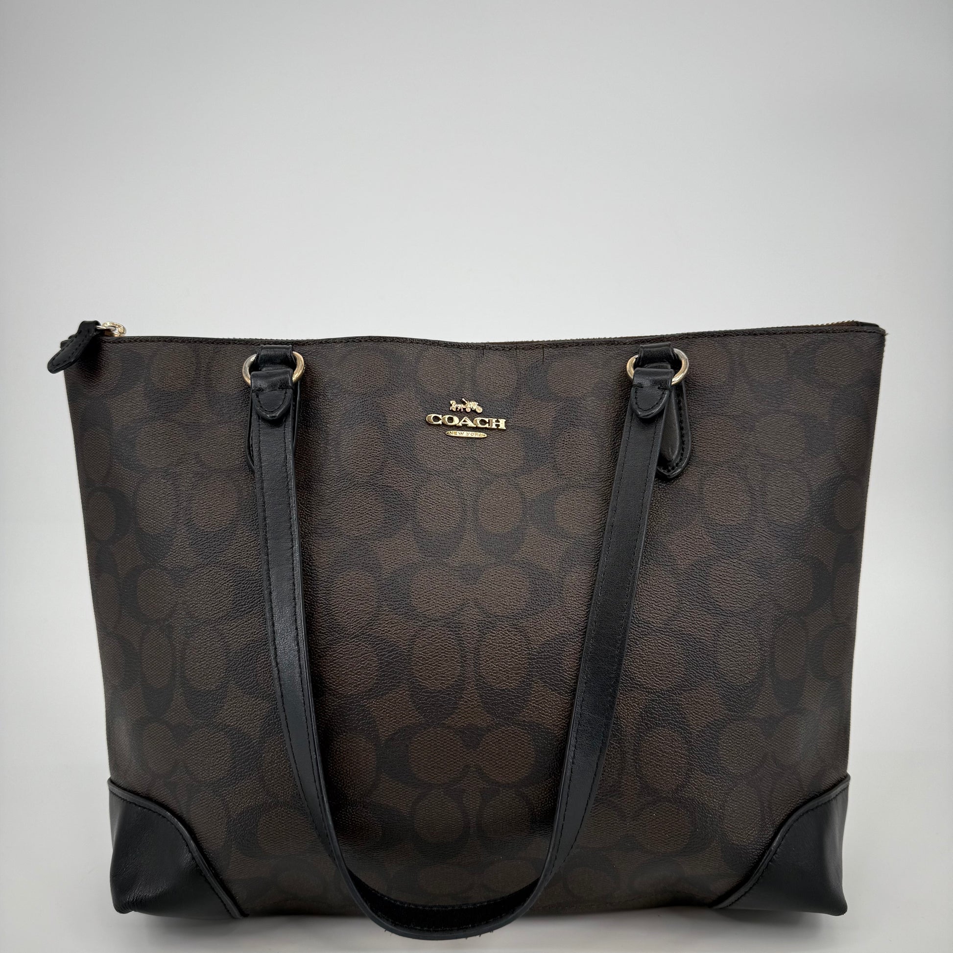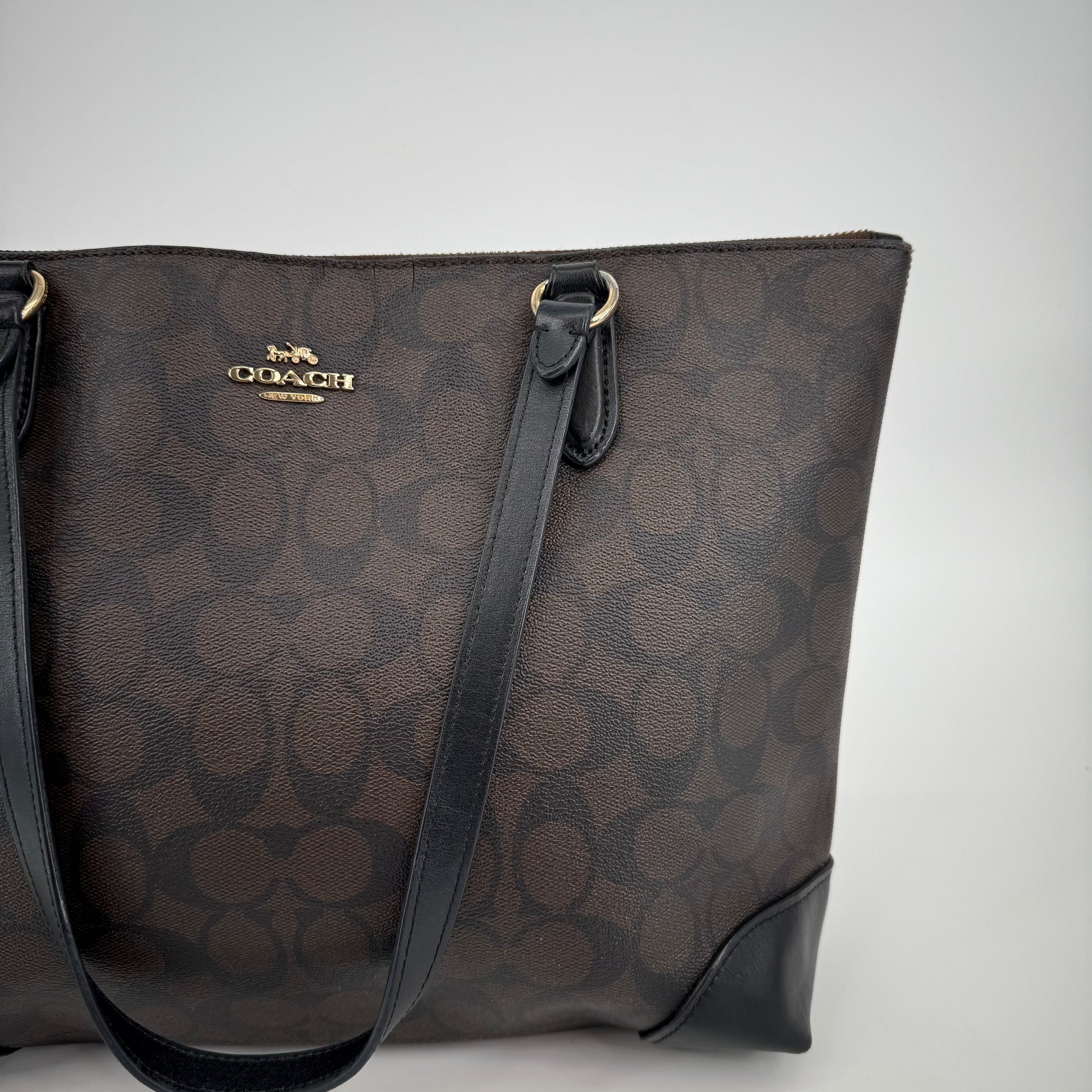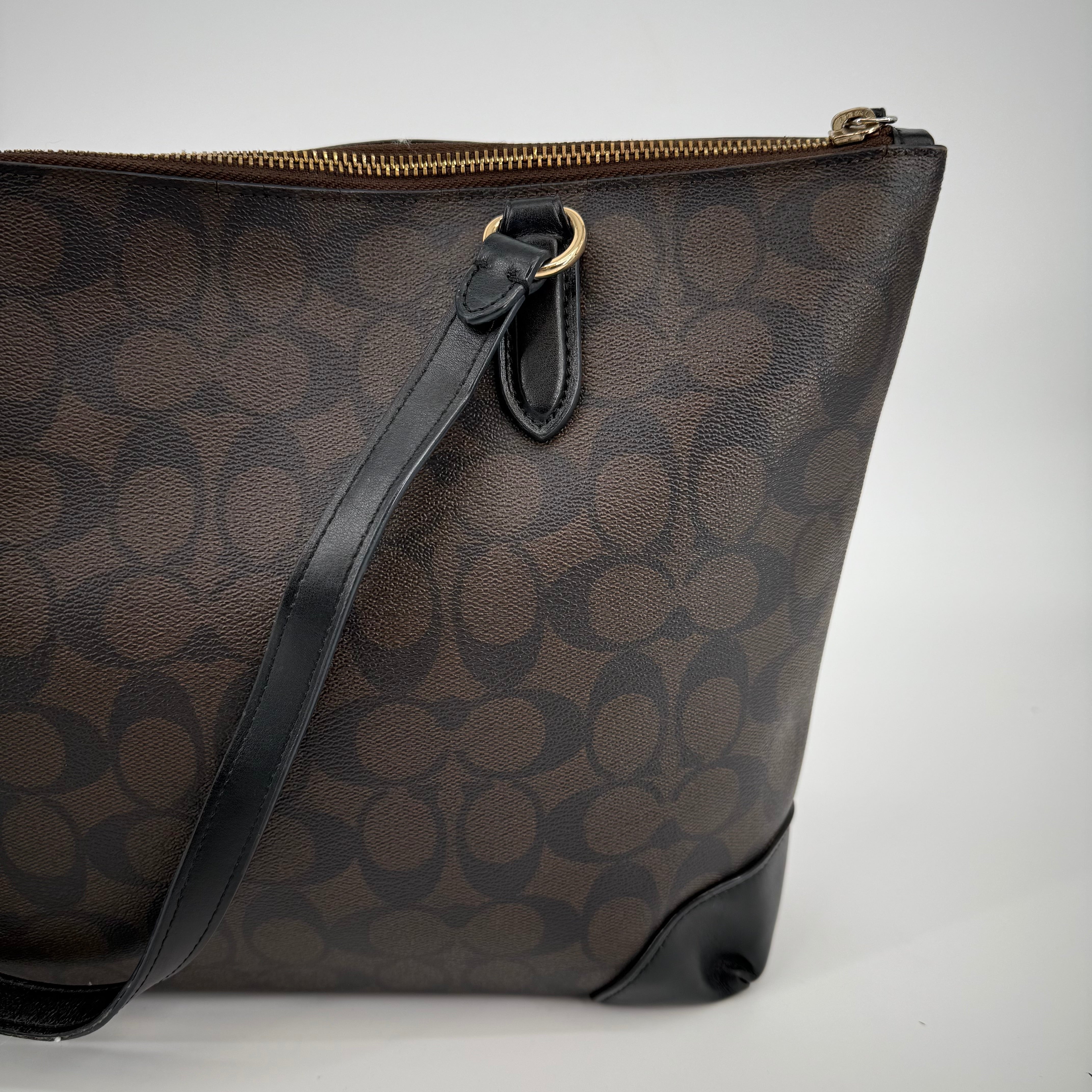This Coach Monogram Brown Tote Bag is a timeless everyday essential crafted in the brand’s signature coated canvas. Featuring the classic brown monogram pattern with smooth black leather trim, this spacious tote is perfect for daily use, shopping, work, or travel. It includes comfortable dual top handles, a roomy open interior, and secure zip-top closure, making it both stylish and practical. A durable and lightweight design, ideal for carrying all your essentials with ease.