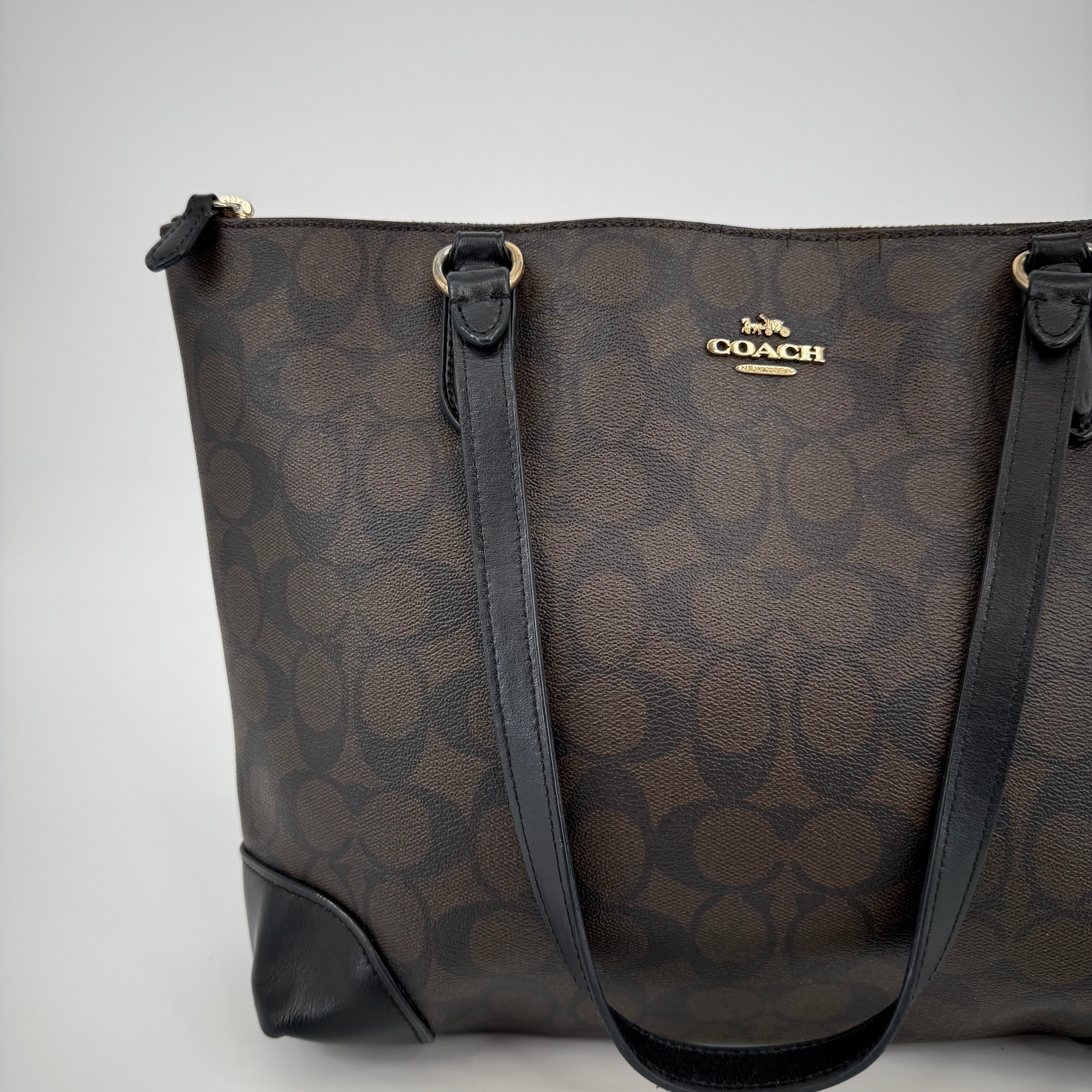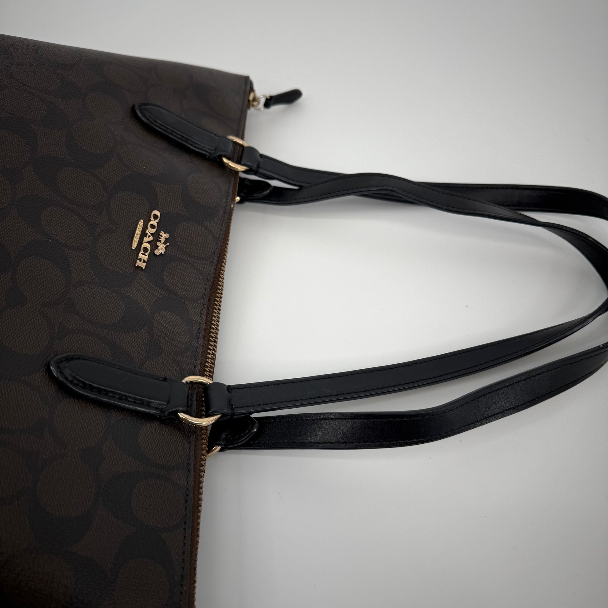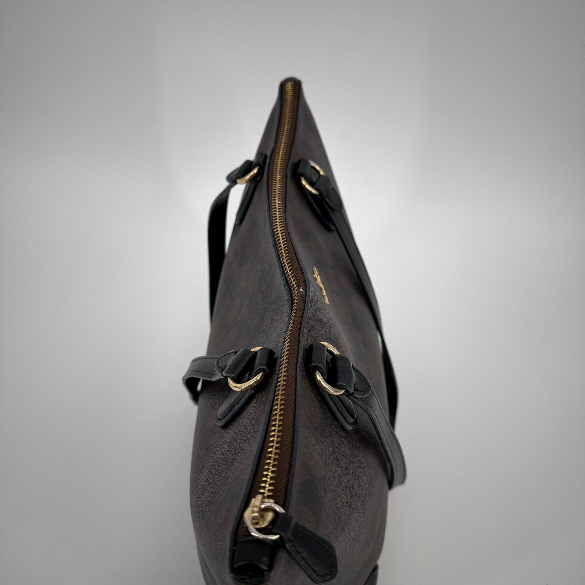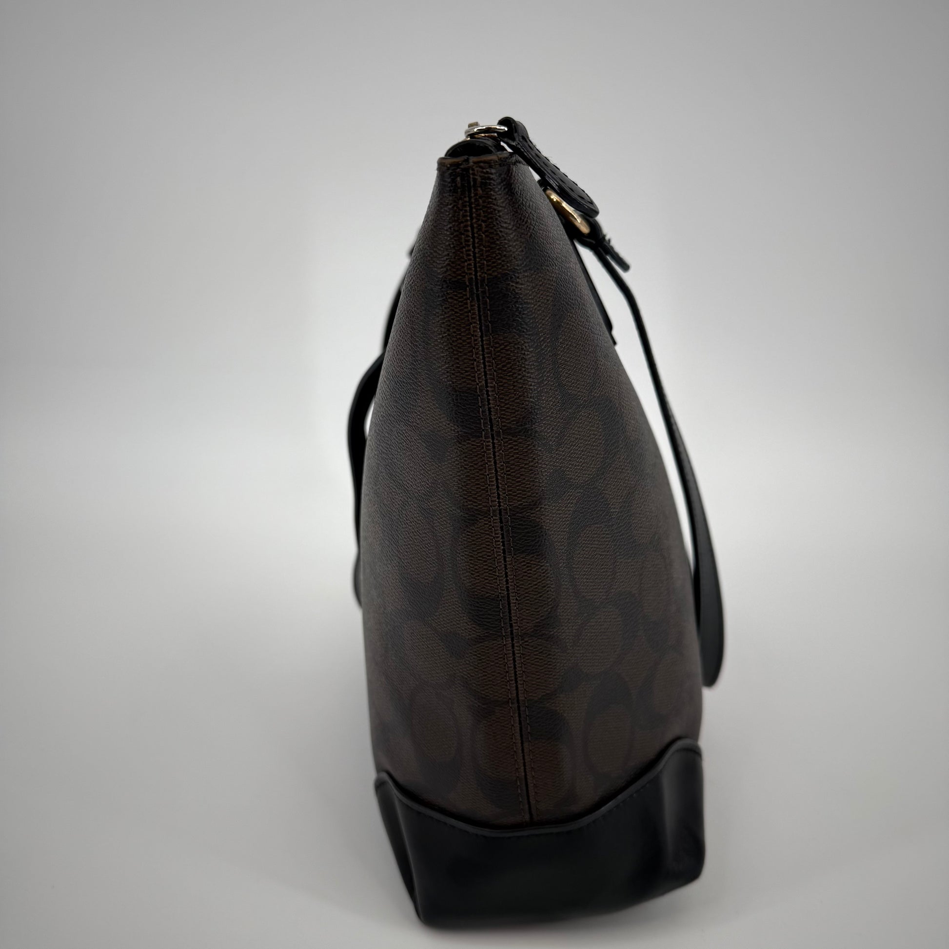 This Coach Monogram Brown Tote Bag is a timeless everyday essential crafted in the brand’s signature coated canvas. Featuring the classic brown monogram pattern with smooth black leather trim, this spacious tote is perfect for daily use, shopping, work, or travel. It includes comfortable dual top handles, a roomy open interior, and secure zip-top closure, making it both stylish and practical. A durable and lightweight design, ideal for carrying all your essentials with ease.