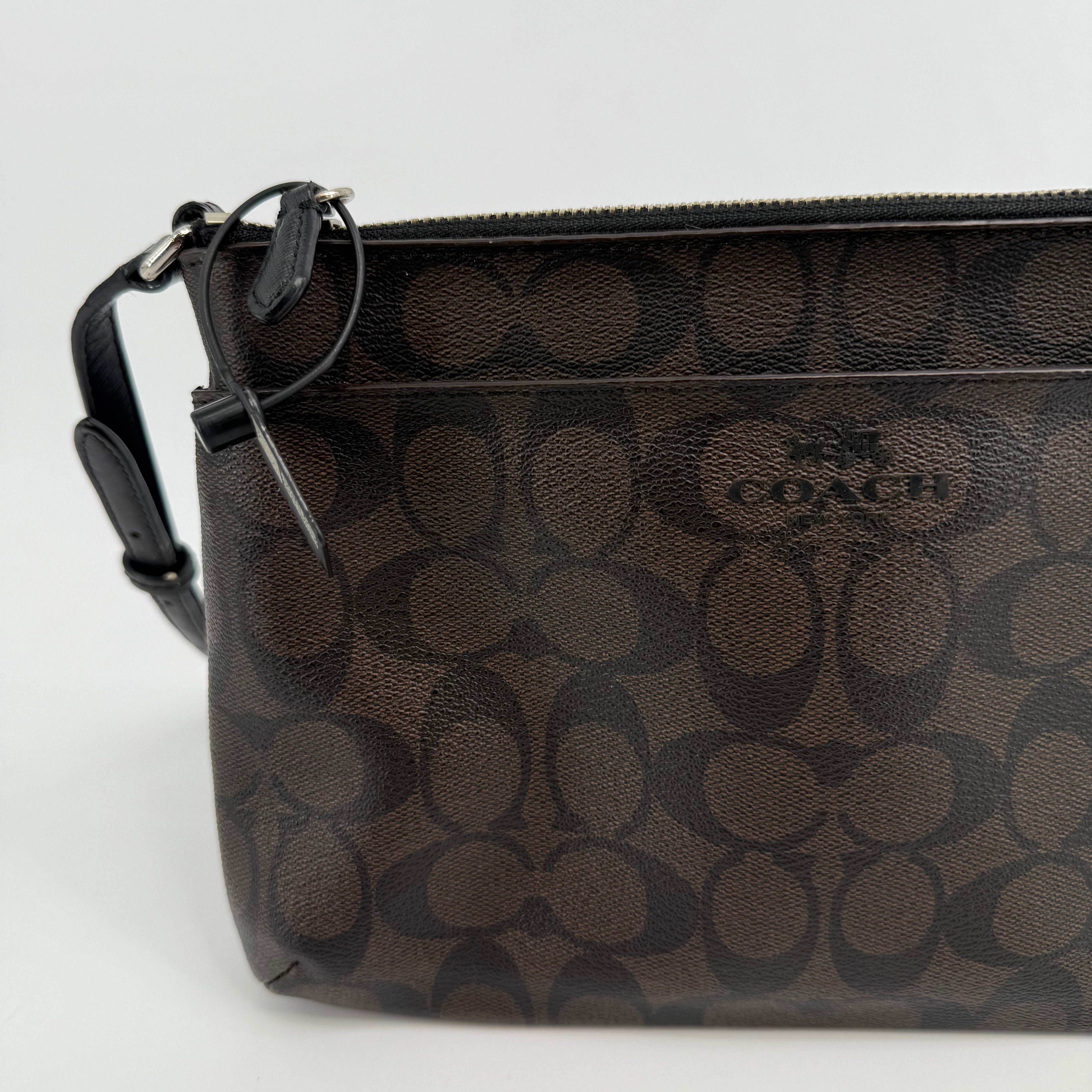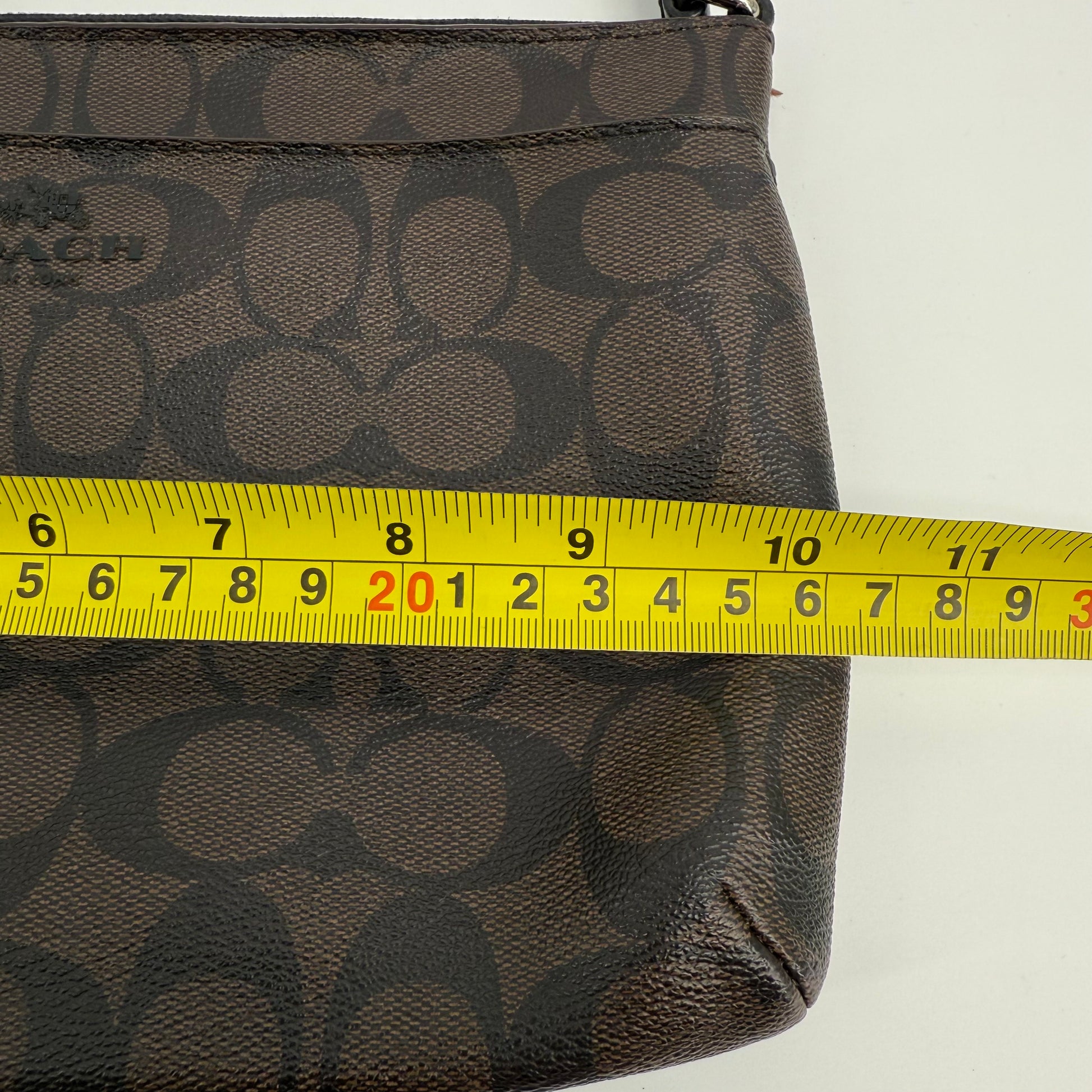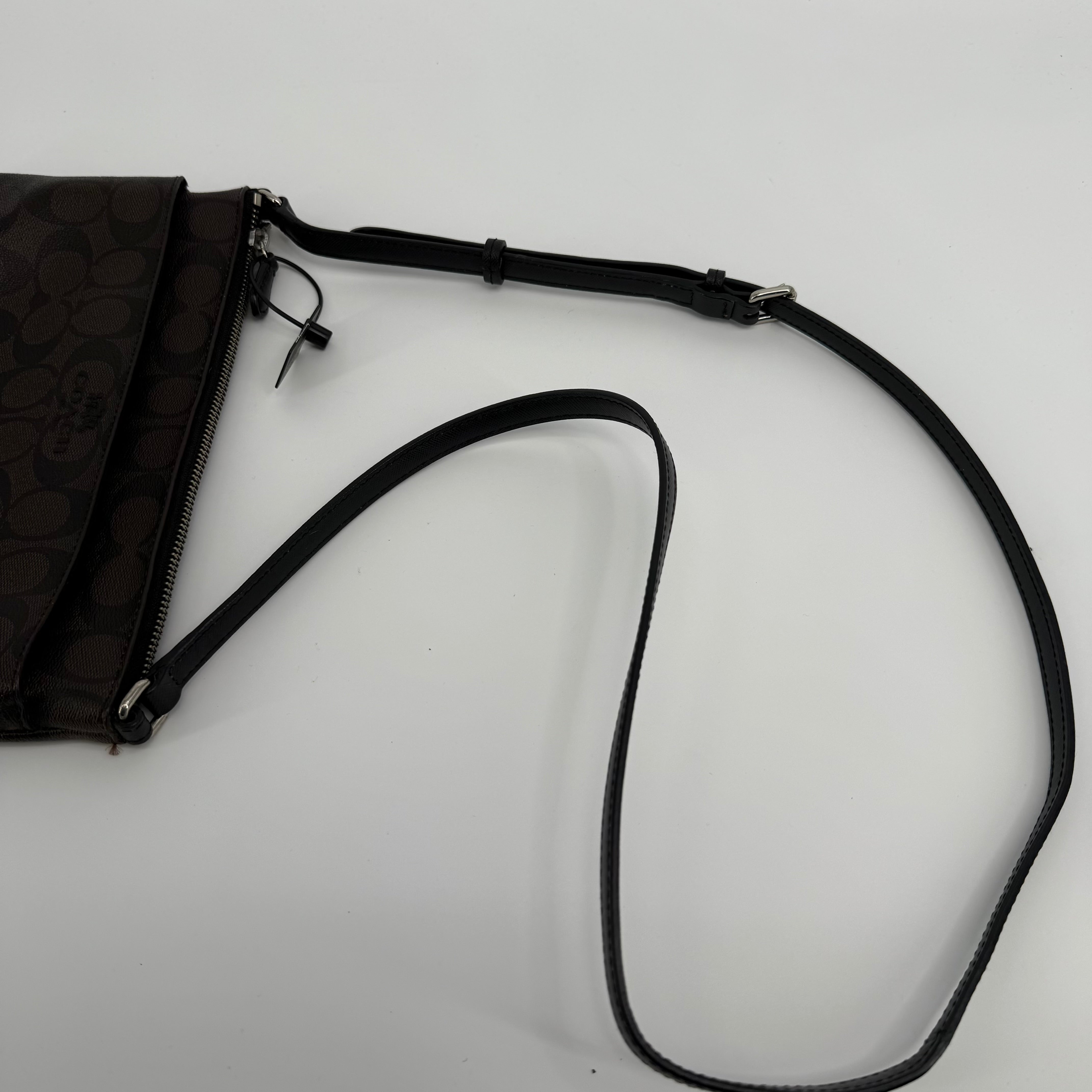 A sleek and practical piece from Coach, this Signature Crossbody Bag blends classic design with everyday function. Crafted in durable coated canvas featuring the iconic Coach monogram pattern, it’s accented with smooth black leather trim and silver-tone hardware. Perfectly sized for your daily essentials, this crossbody offers hands-free convenience and timeless appeal.