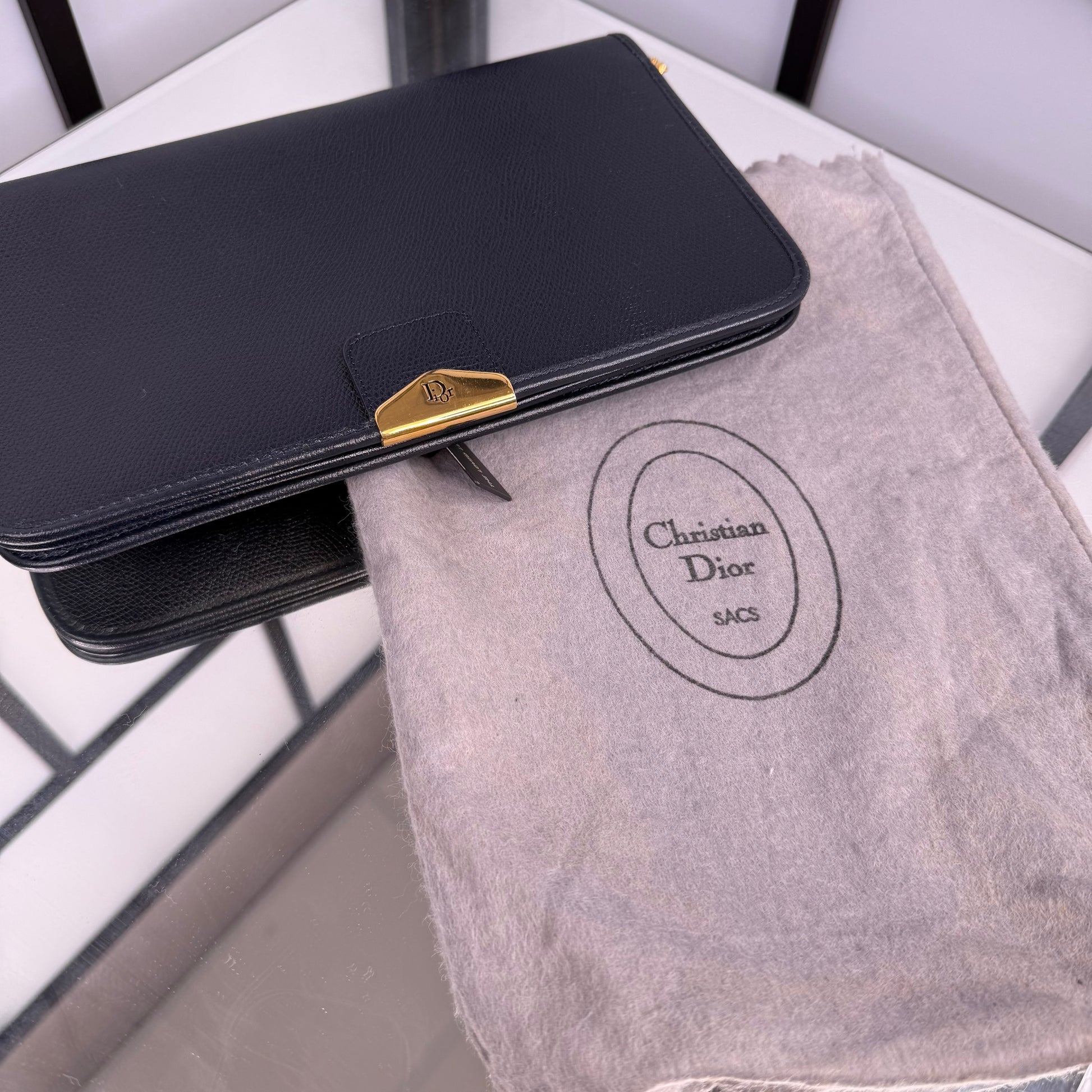 The Dior Monsieur Navy Gold Shoulder Bag Chain is an elegant vintage statement from the house of Dior. Crafted in rich navy leather with refined gold-tone hardware, it exudes understated sophistication. The structured silhouette and detachable chain strap make it versatile for both day and evening wear — a timeless piece that captures Dior’s signature blend of Parisian luxury and modern grace.