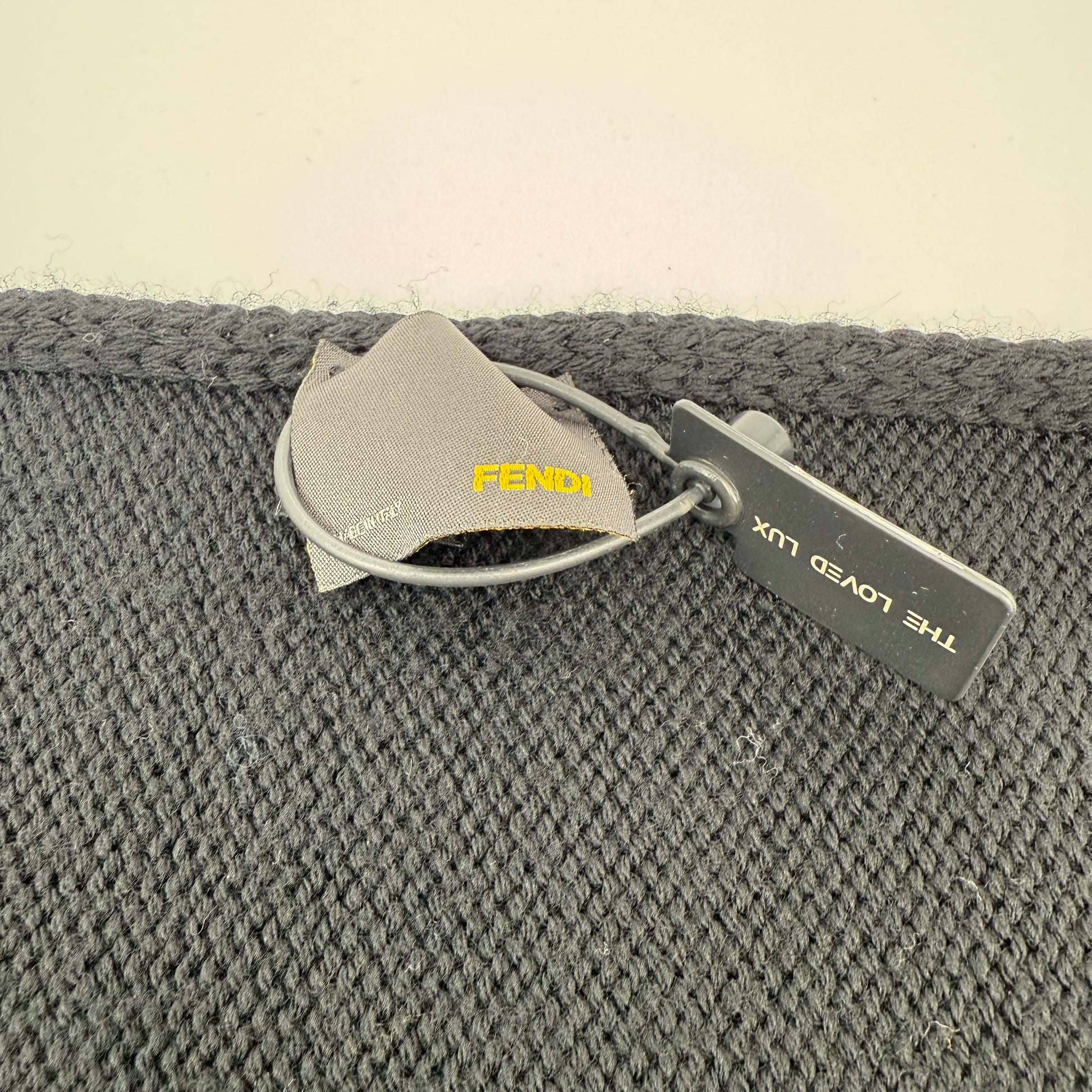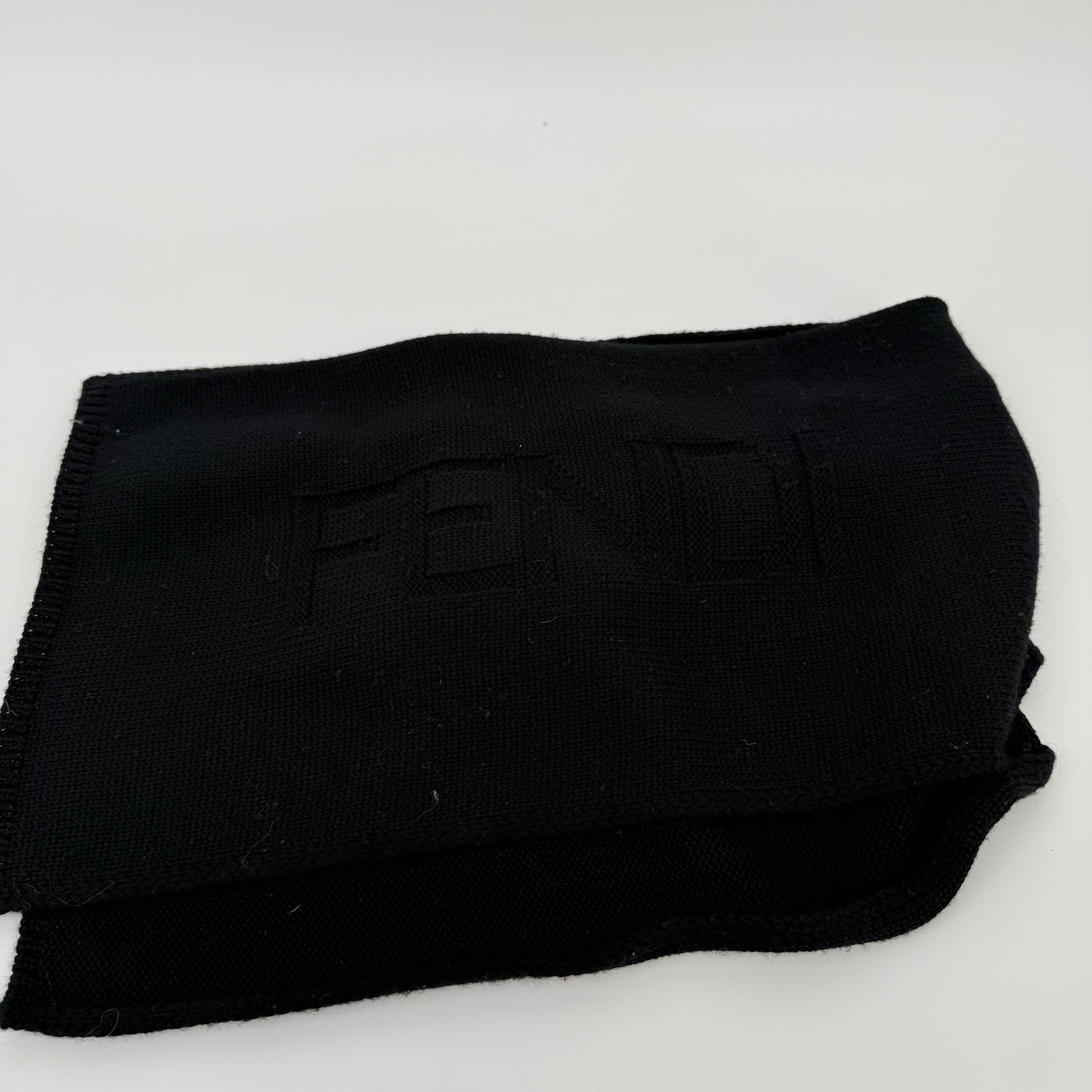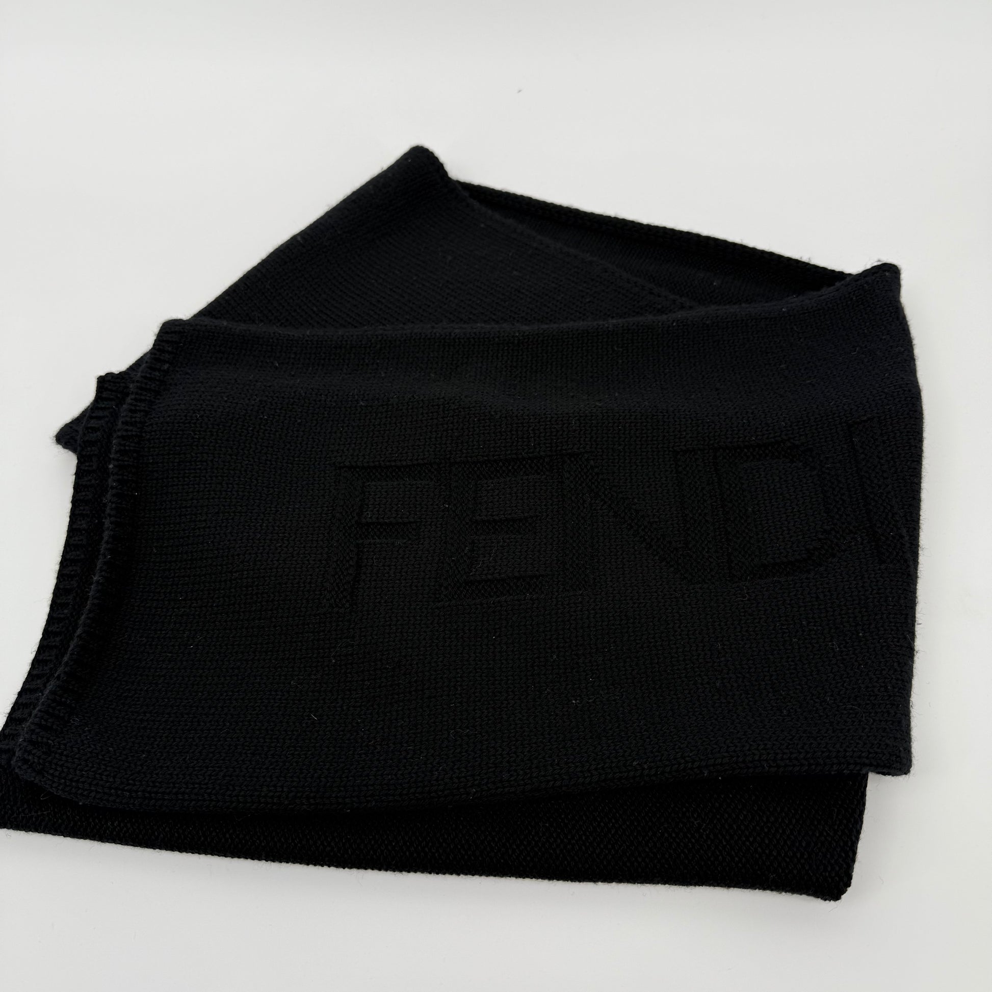 This Fendi black knit scarf showcases the brand’s refined minimalism and impeccable craftsmanship. Woven from soft, high-quality wool, it features a subtle tonal FENDI logo that adds understated luxury to its clean, modern design. Perfect for layering in cooler weather, this versatile piece delivers both warmth and sophistication — a timeless accessory that complements any wardrobe with quiet elegance.