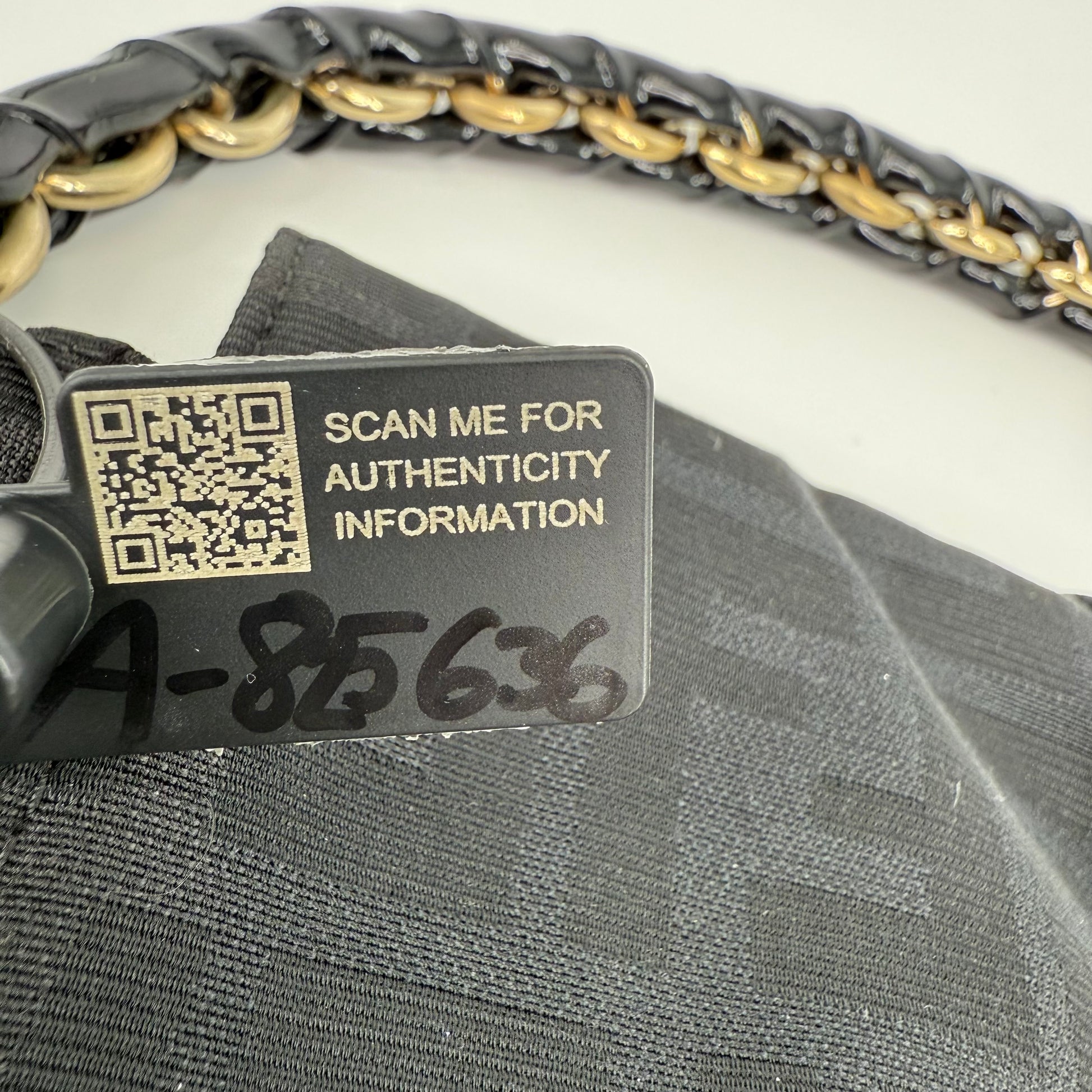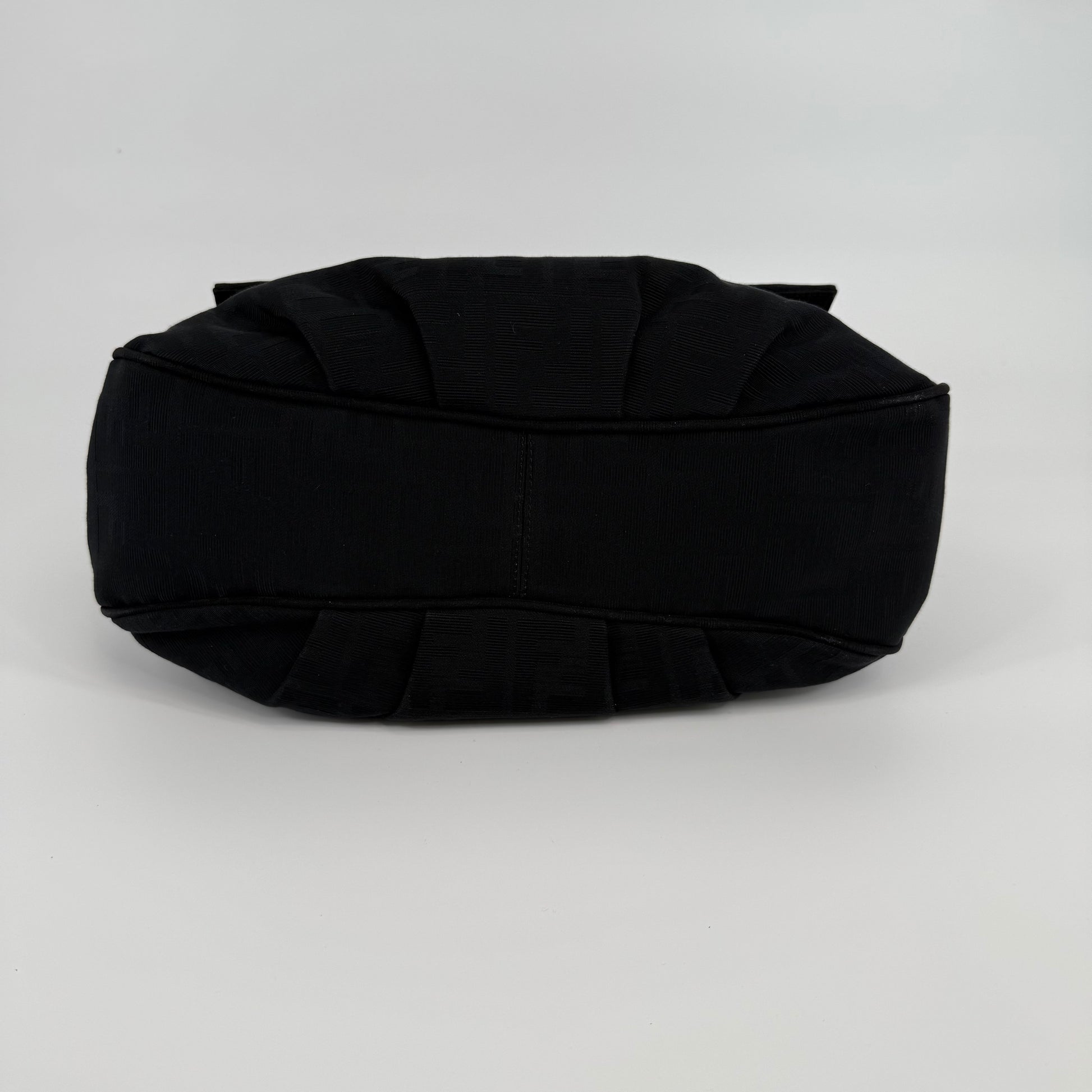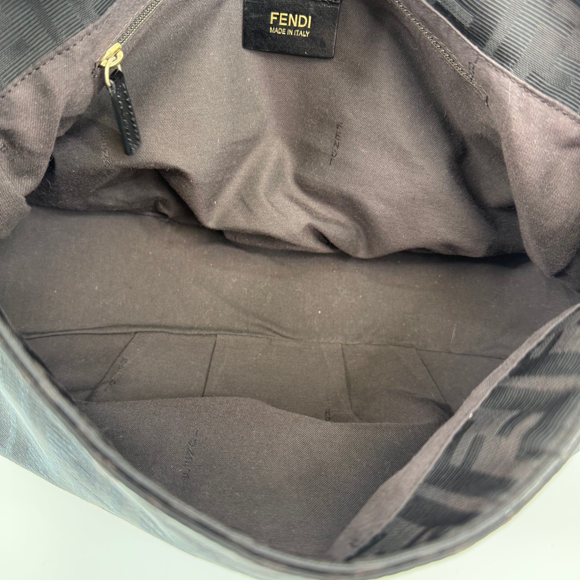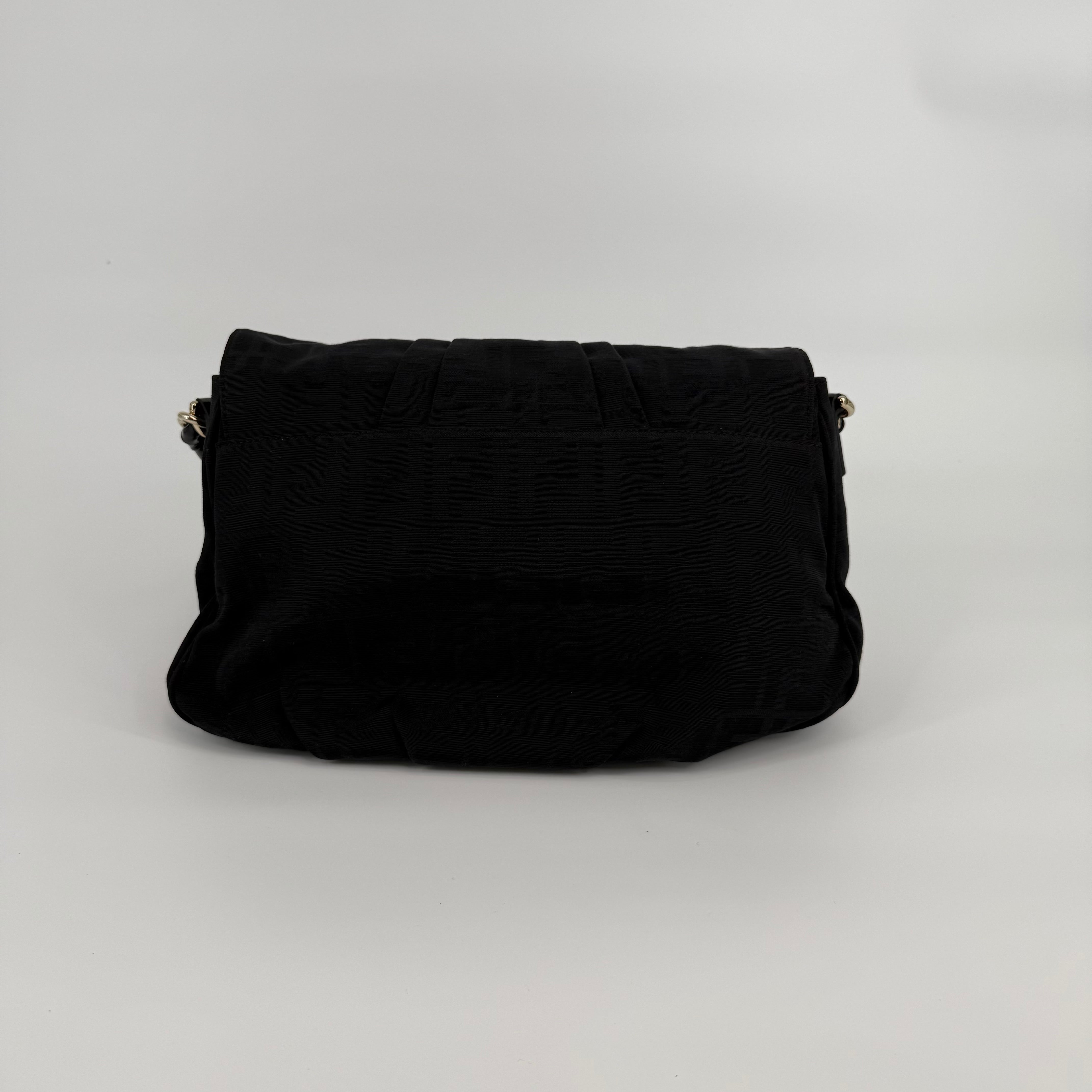 The Fendi Mia Flap Shoulder Bag in black Zucca fabric is a sophisticated evolution of the brand’s iconic monogram style. Crafted from jacquard canvas with the signature FF motif, it features a structured silhouette accented by a statement chain-link strap and a bold gold-tone logo clasp. The Mia embodies Fendi’s balance of femininity and edge — elegant enough for evening wear yet versatile for everyday sophistication. Its combination of texture, hardware, and timeless black finish makes it a standout addition to any modern luxury collection.