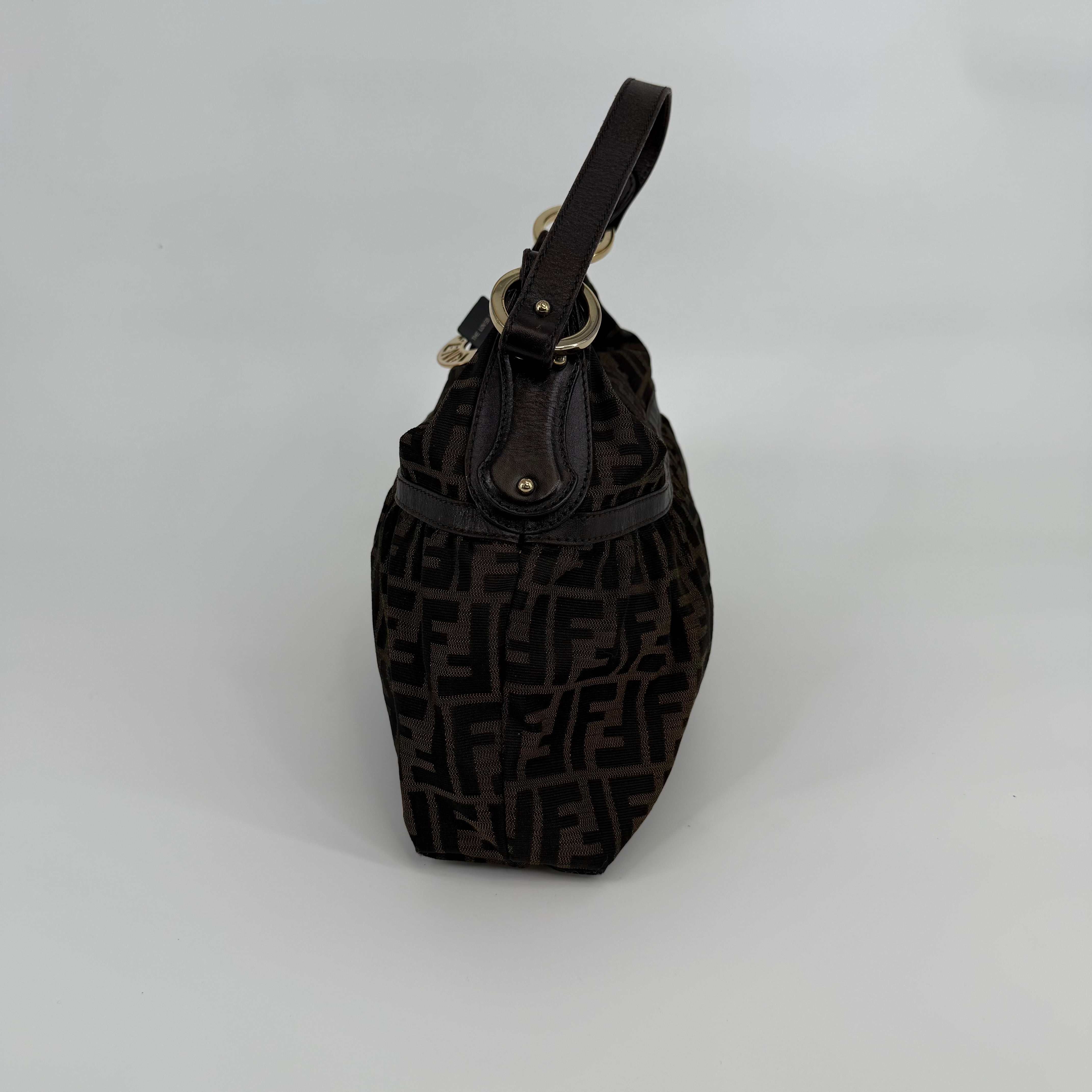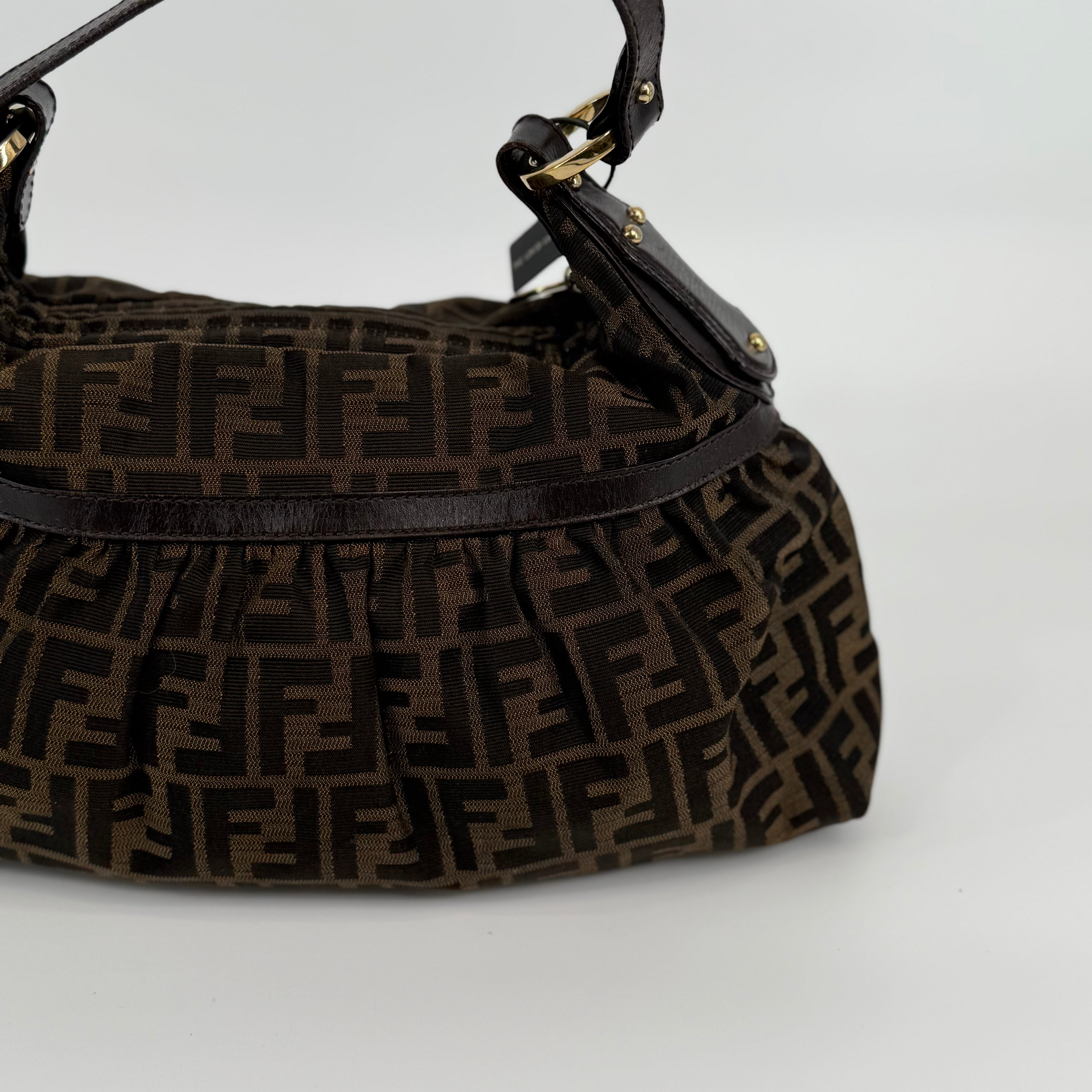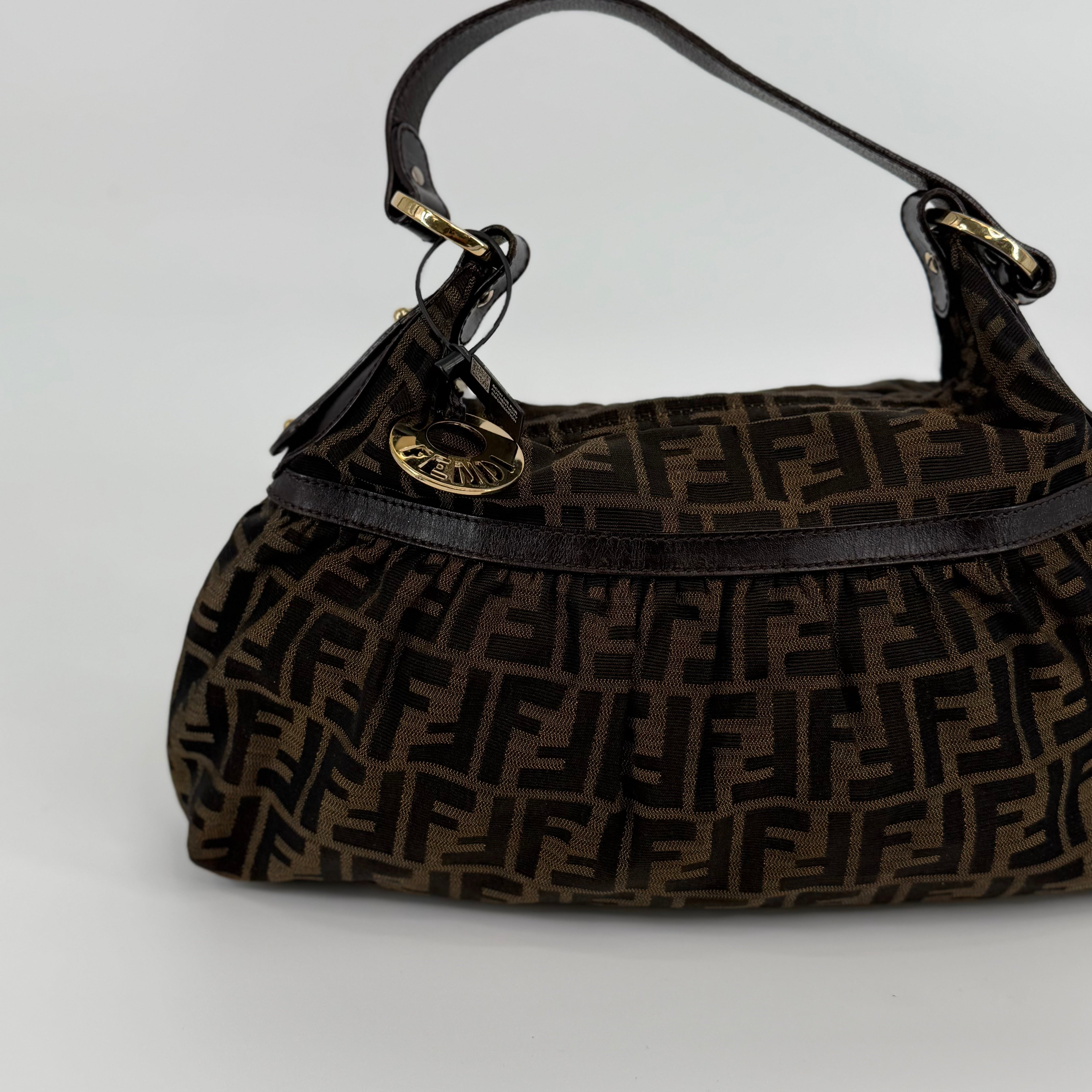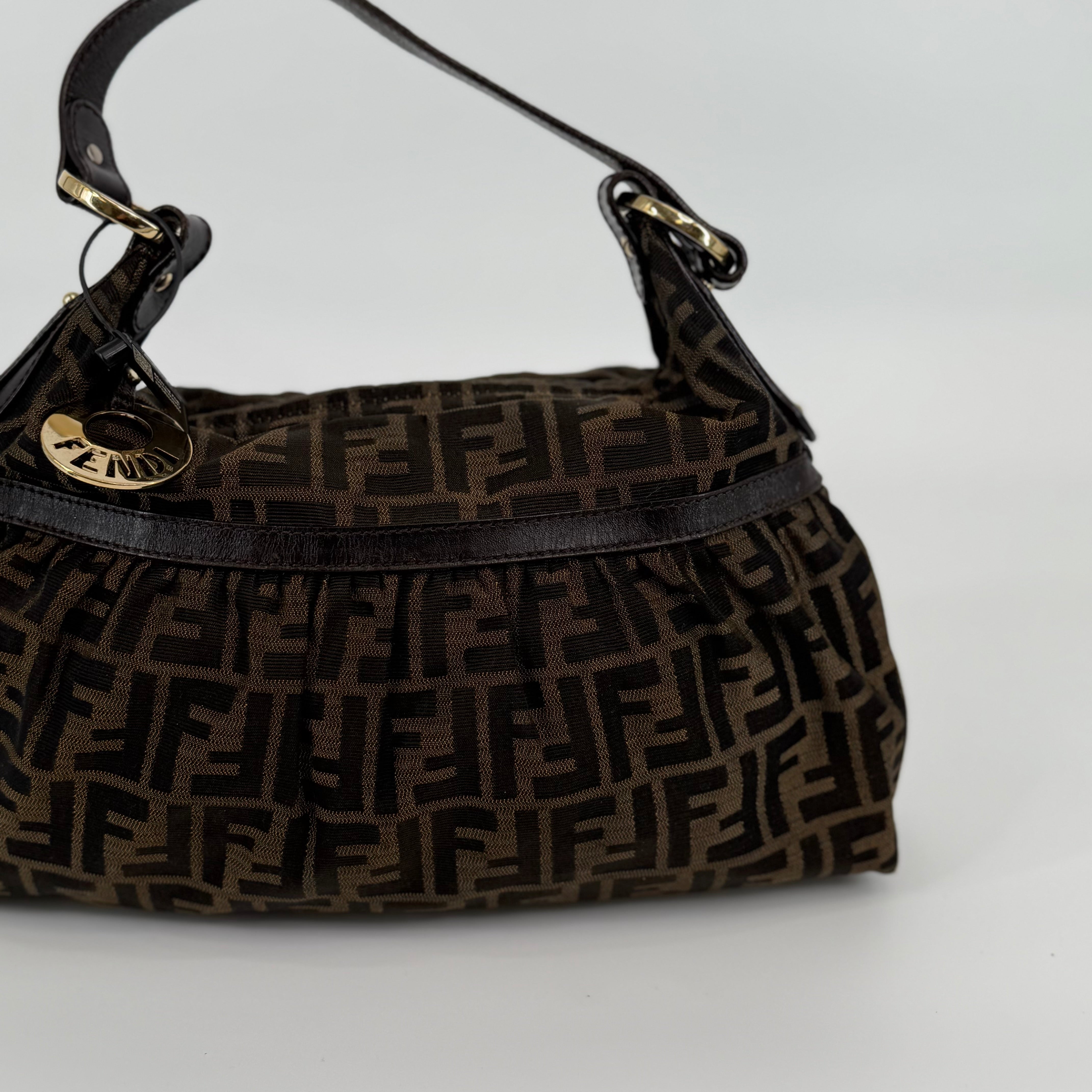 FENDI Brown Chef Zucca Logo Jacquard Handbag
