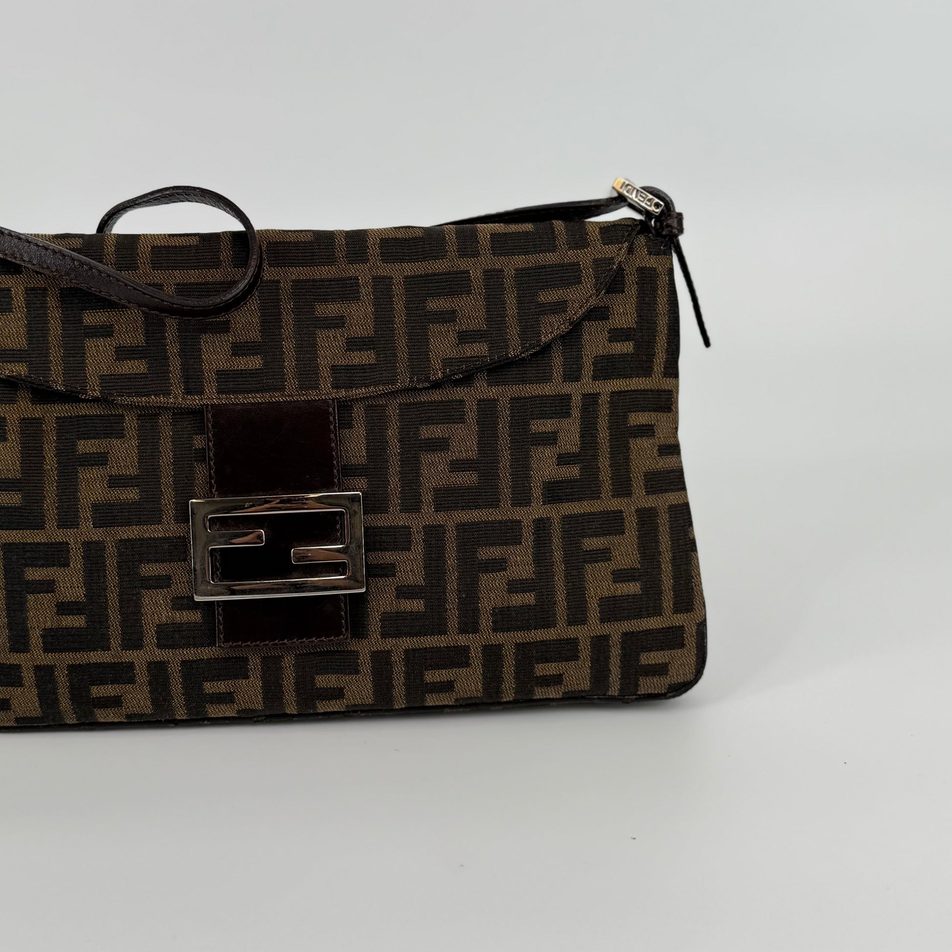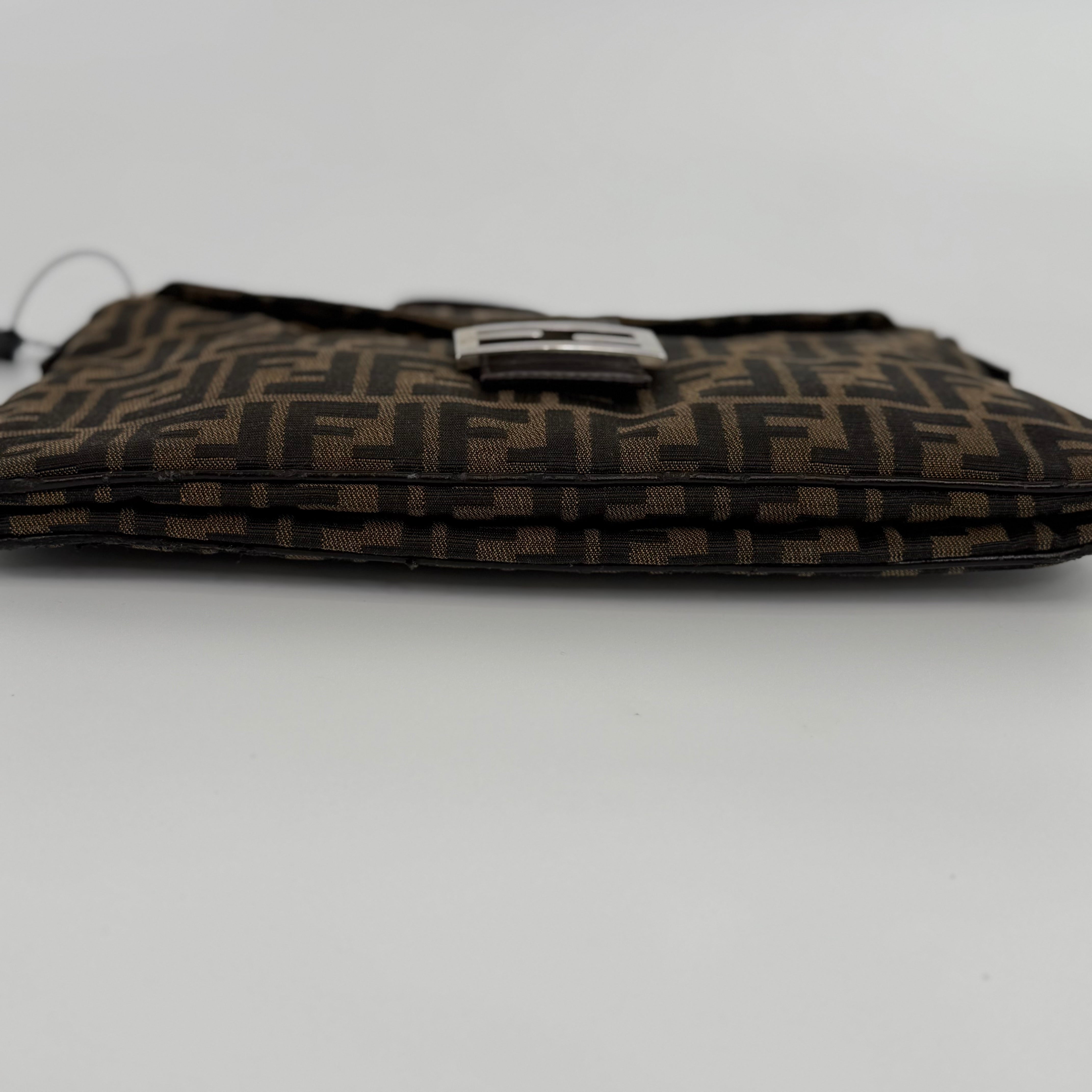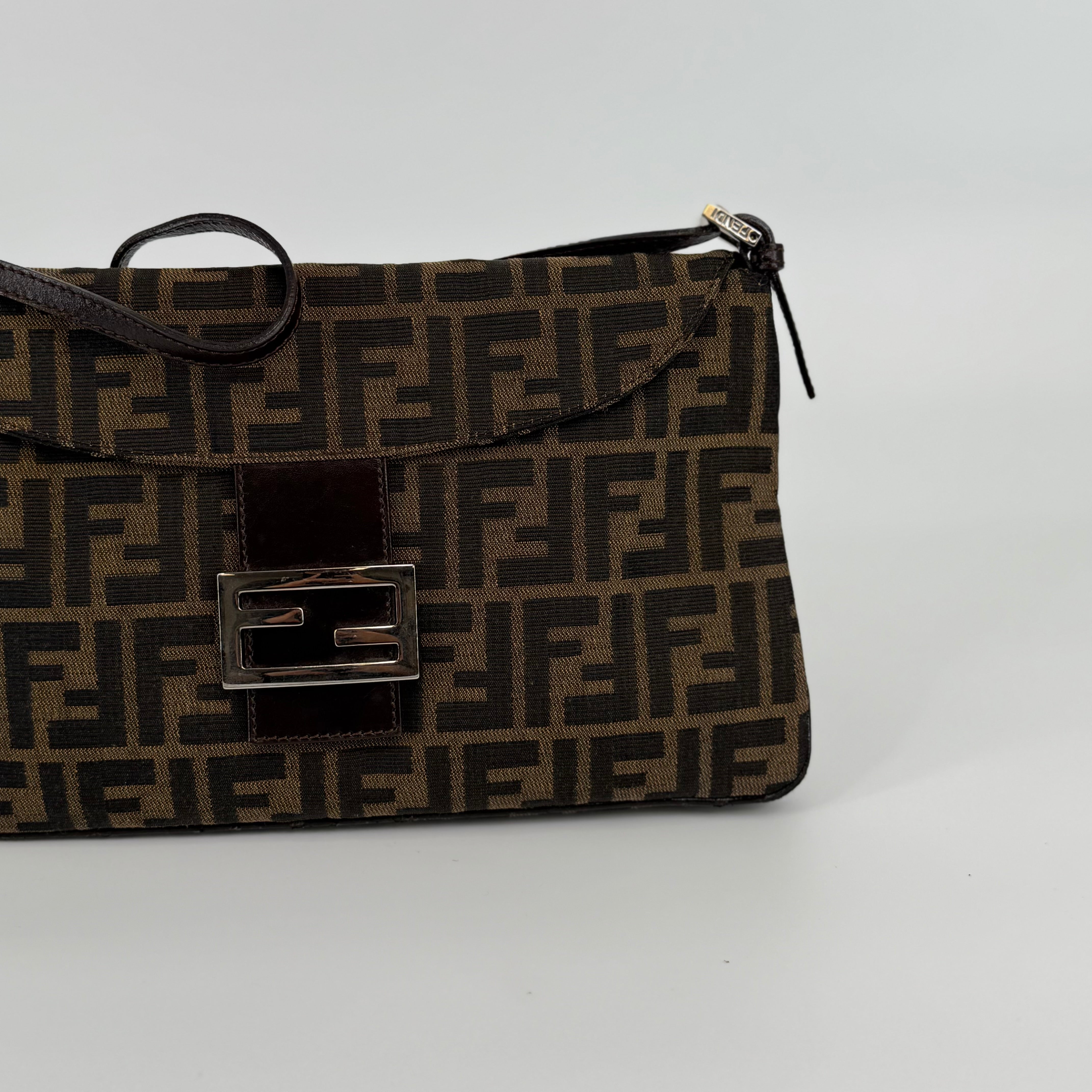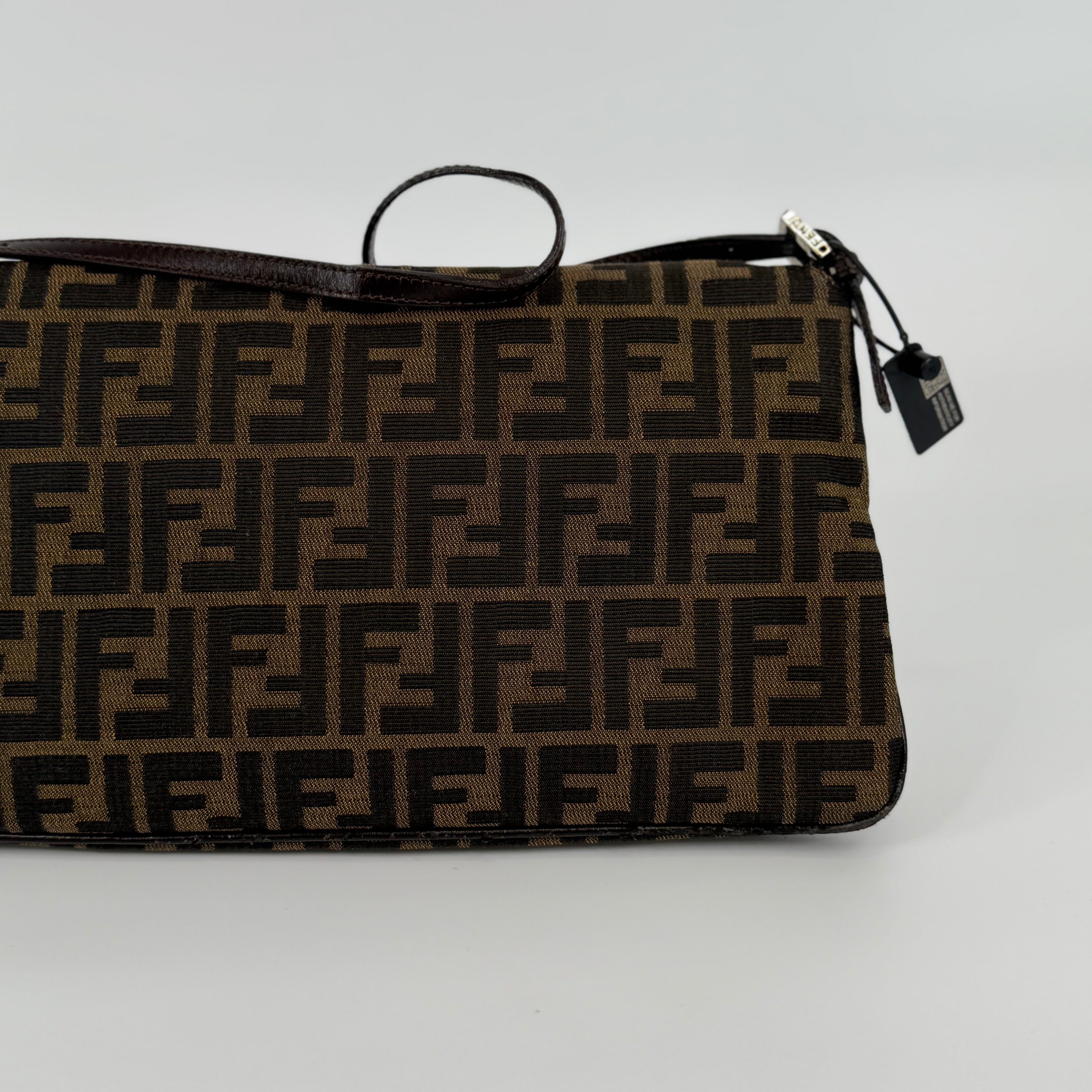 The Fendi FF Baguette Handbag in brown Zucca canvas is a true icon of Italian fashion and one of the most celebrated designs in modern handbag history. Introduced in 1997 by Silvia Venturini Fendi, the Baguette quickly became synonymous with effortless chic and individuality. Crafted from the brand’s signature FF monogram fabric with leather trim and the distinctive front flap closure, this piece exudes timeless sophistication. Compact yet statement-making, it perfectly captures Fendi’s blend of heritage craftsmanship and bold contemporary flair — the ultimate collectible for lovers of iconic luxury.