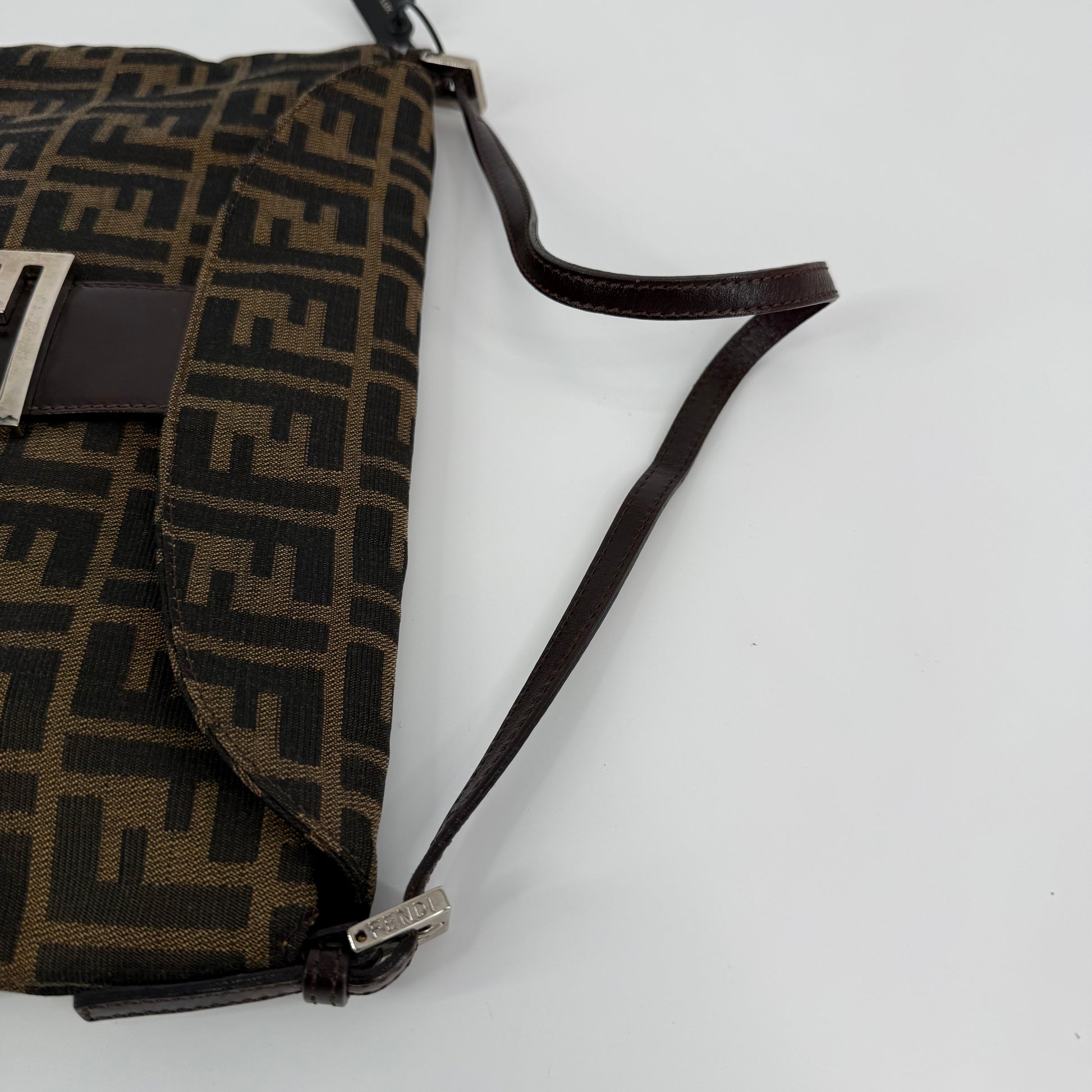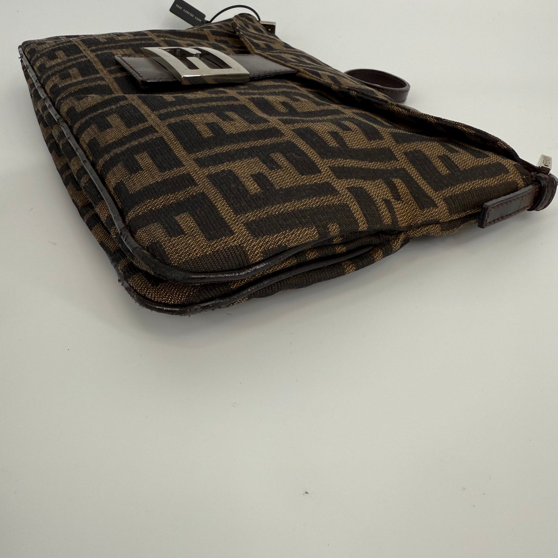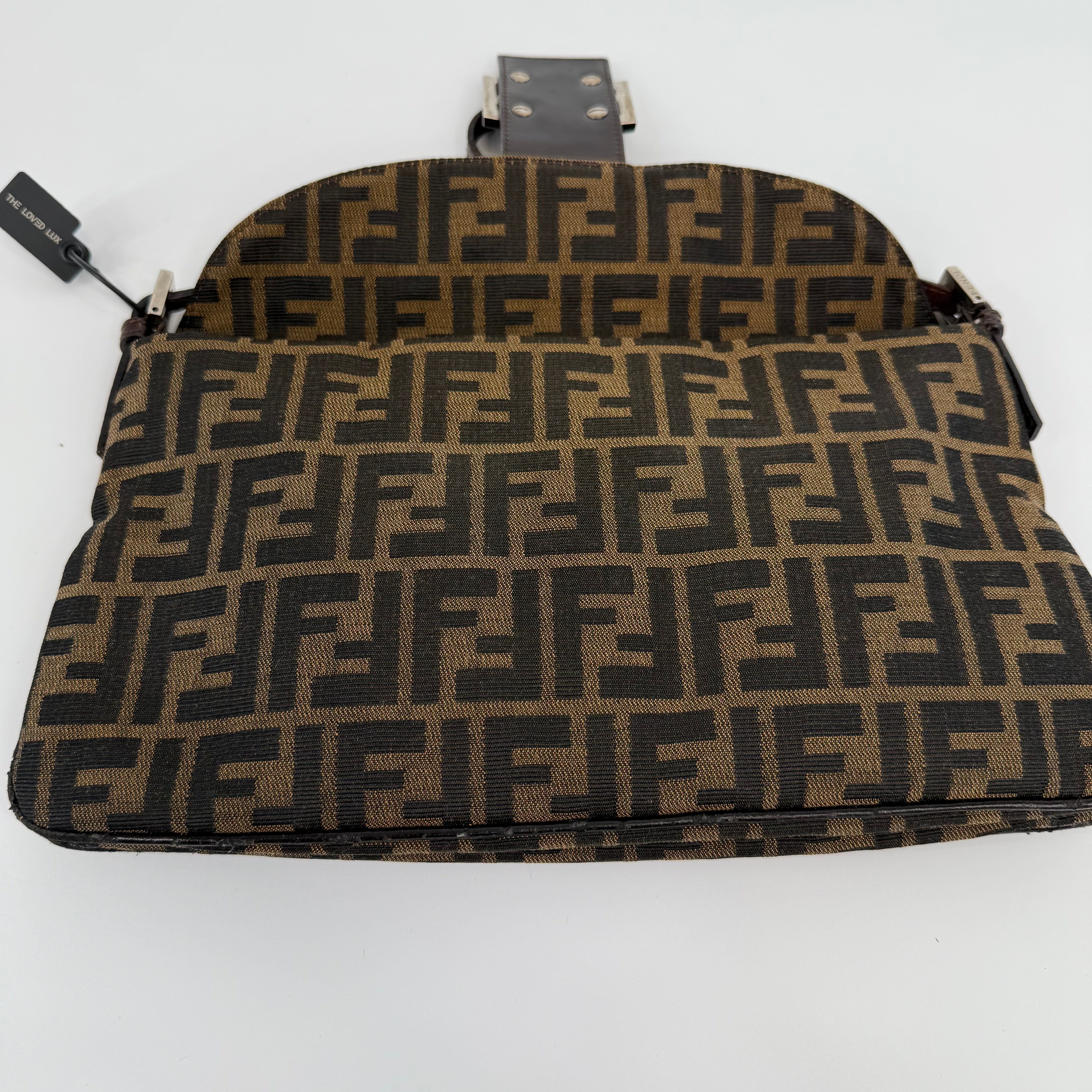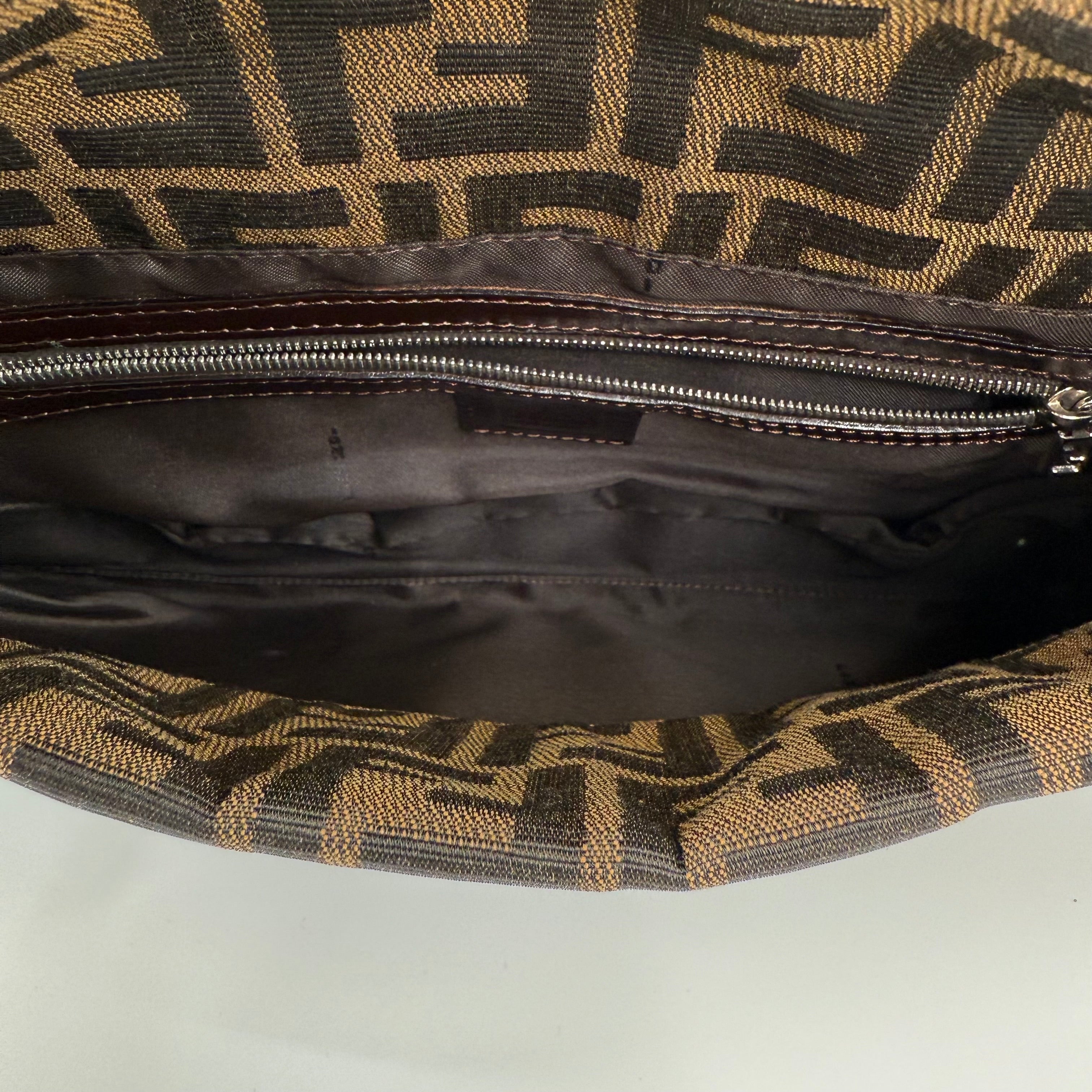 The Fendi FF Baguette Handbag in brown Zucca canvas is a true icon of Italian fashion and one of the most celebrated designs in modern handbag history. Introduced in 1997 by Silvia Venturini Fendi, the Baguette quickly became synonymous with effortless chic and individuality. Crafted from the brand’s signature FF monogram fabric with leather trim and the distinctive front flap closure, this piece exudes timeless sophistication. Compact yet statement-making, it perfectly captures Fendi’s blend of heritage craftsmanship and bold contemporary flair — the ultimate collectible for lovers of iconic luxury.