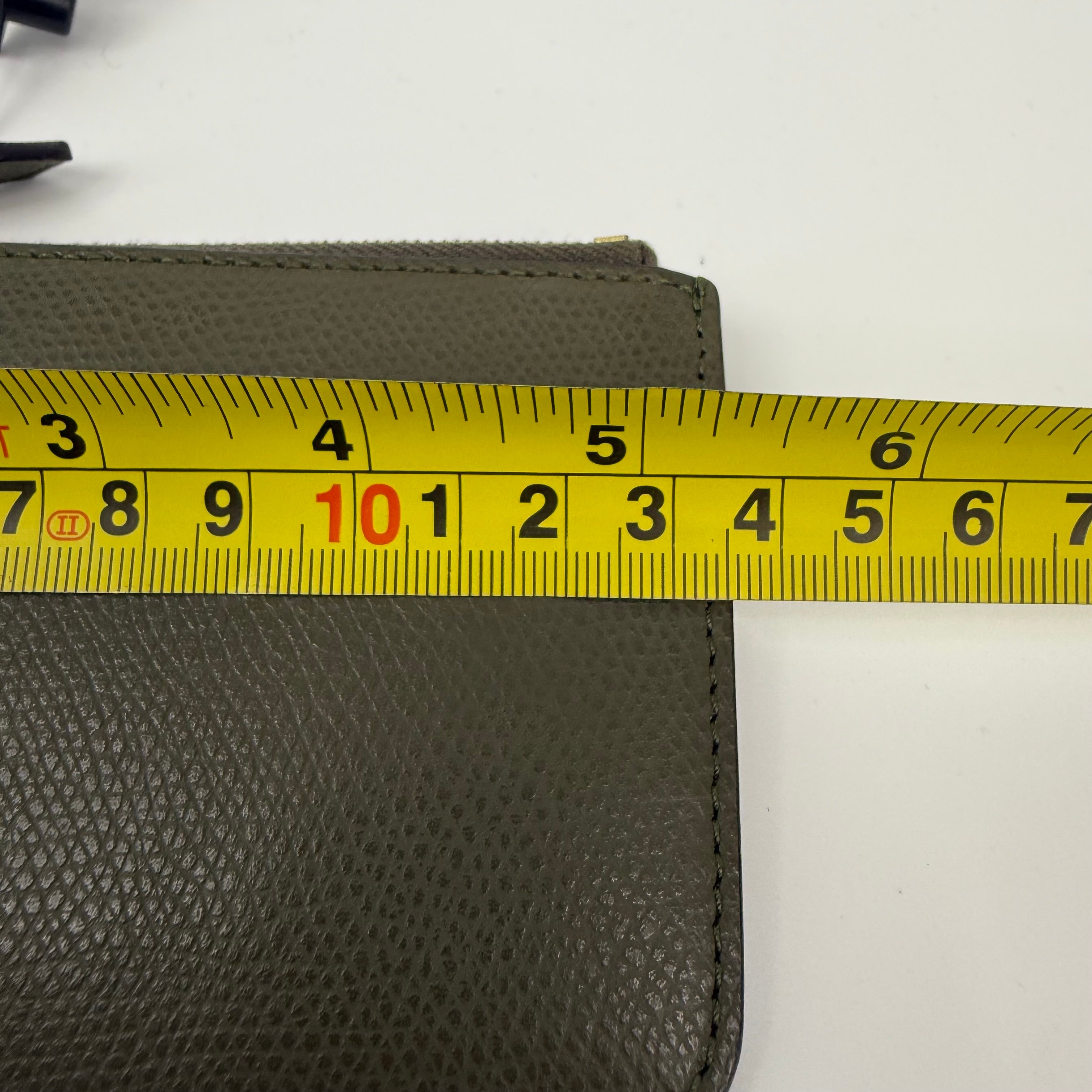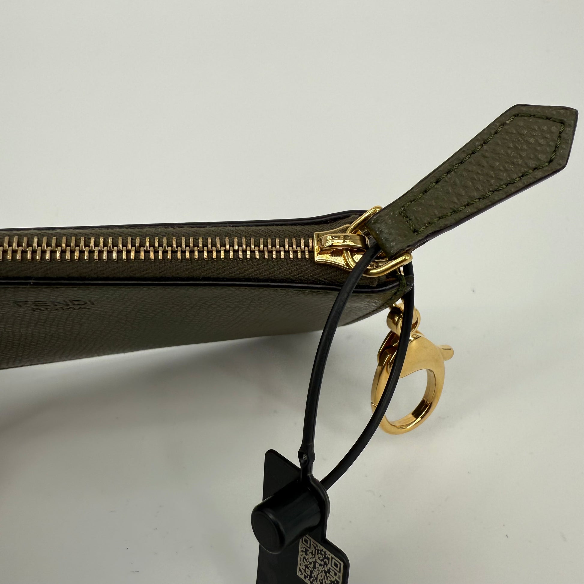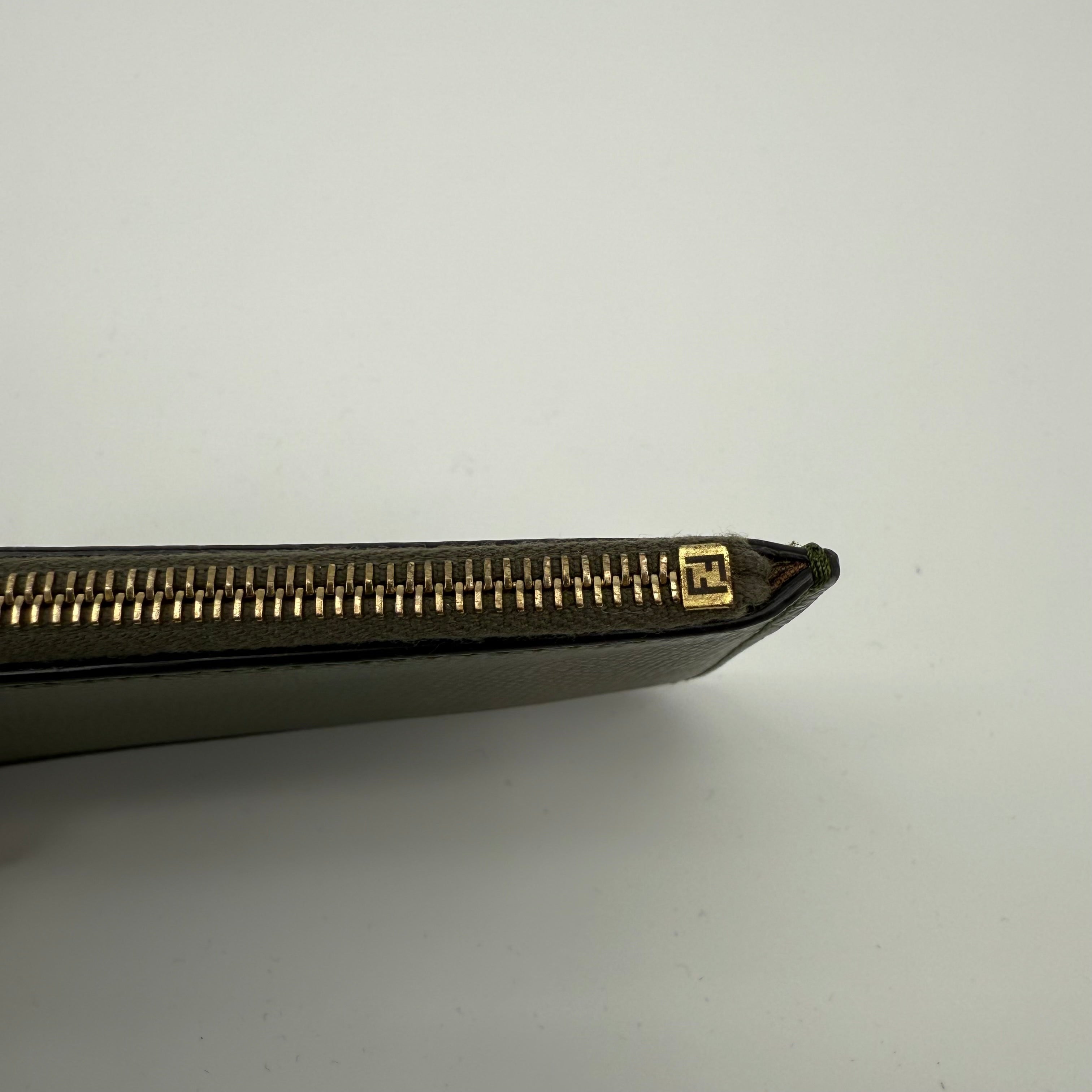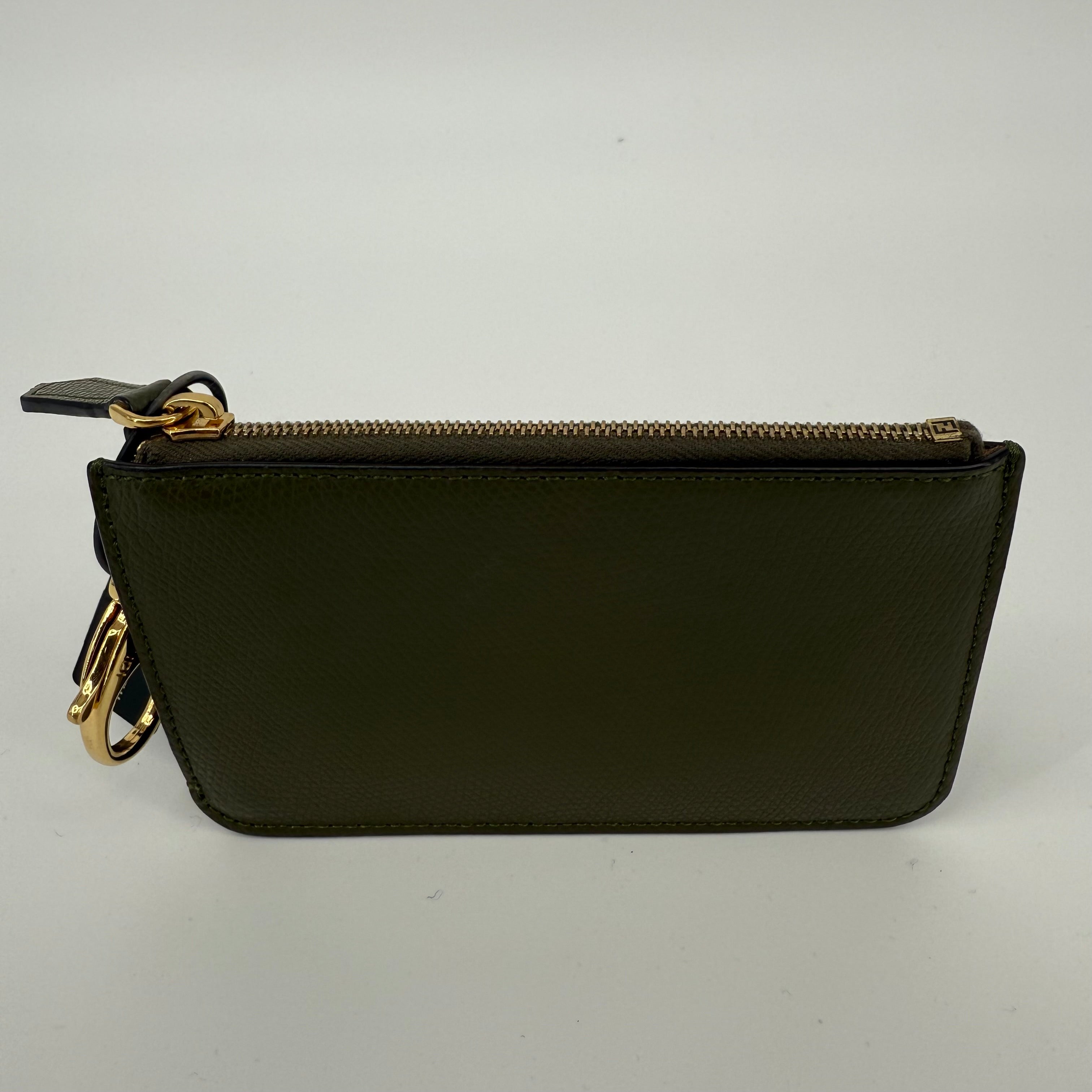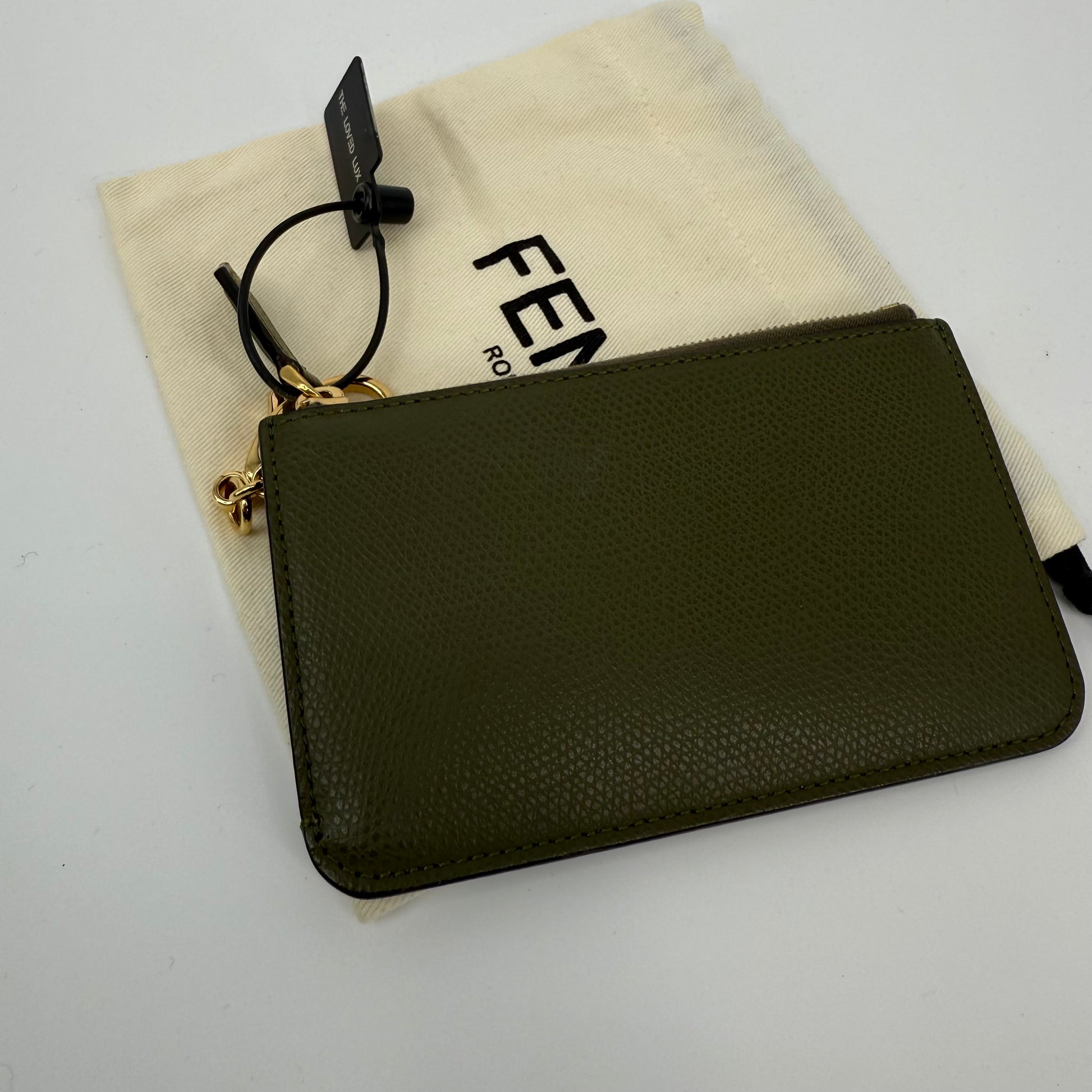 The Fendi Khaki Green Coin Pouch embodies understated luxury and everyday practicality. Crafted from durable khaki-toned material with refined leather details, it reflects Fendi’s clean, modern aesthetic. Compact yet versatile, it’s perfect for carrying coins, cards, or small essentials — a subtle accent piece that pairs functionality with timeless Italian style.