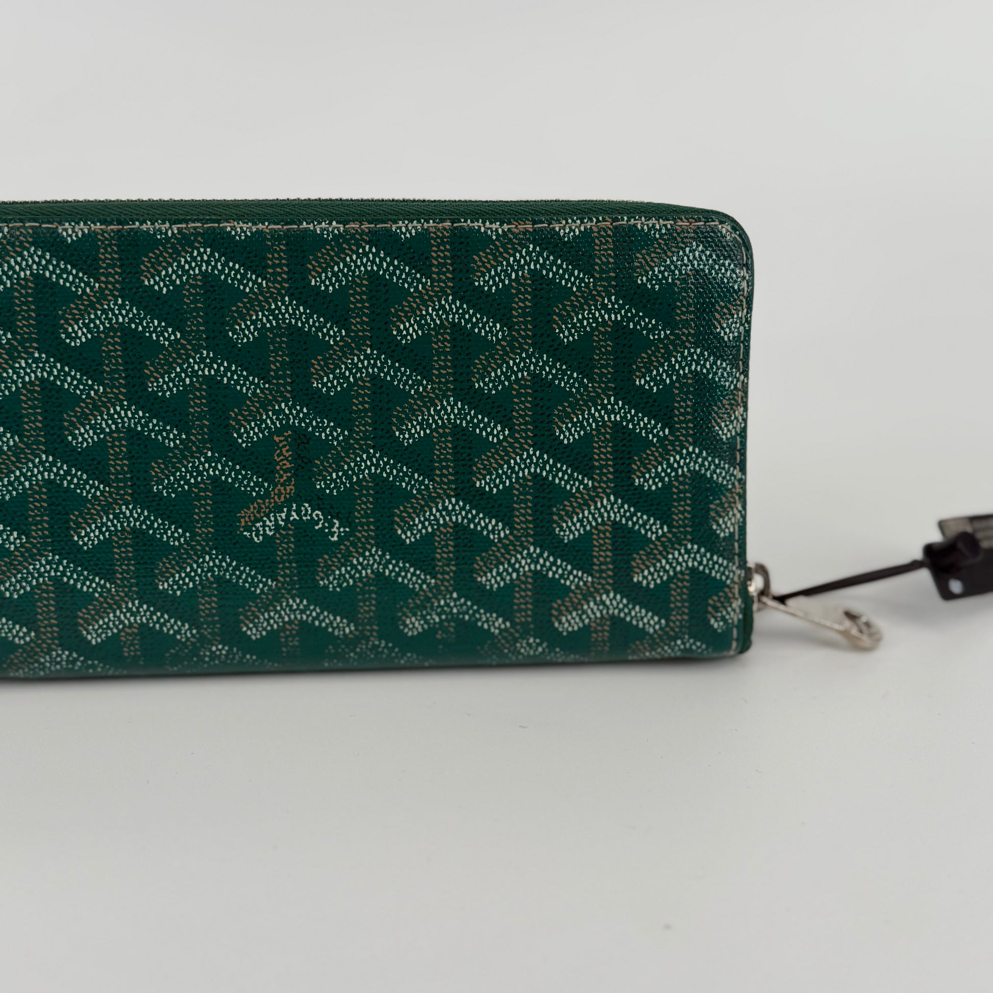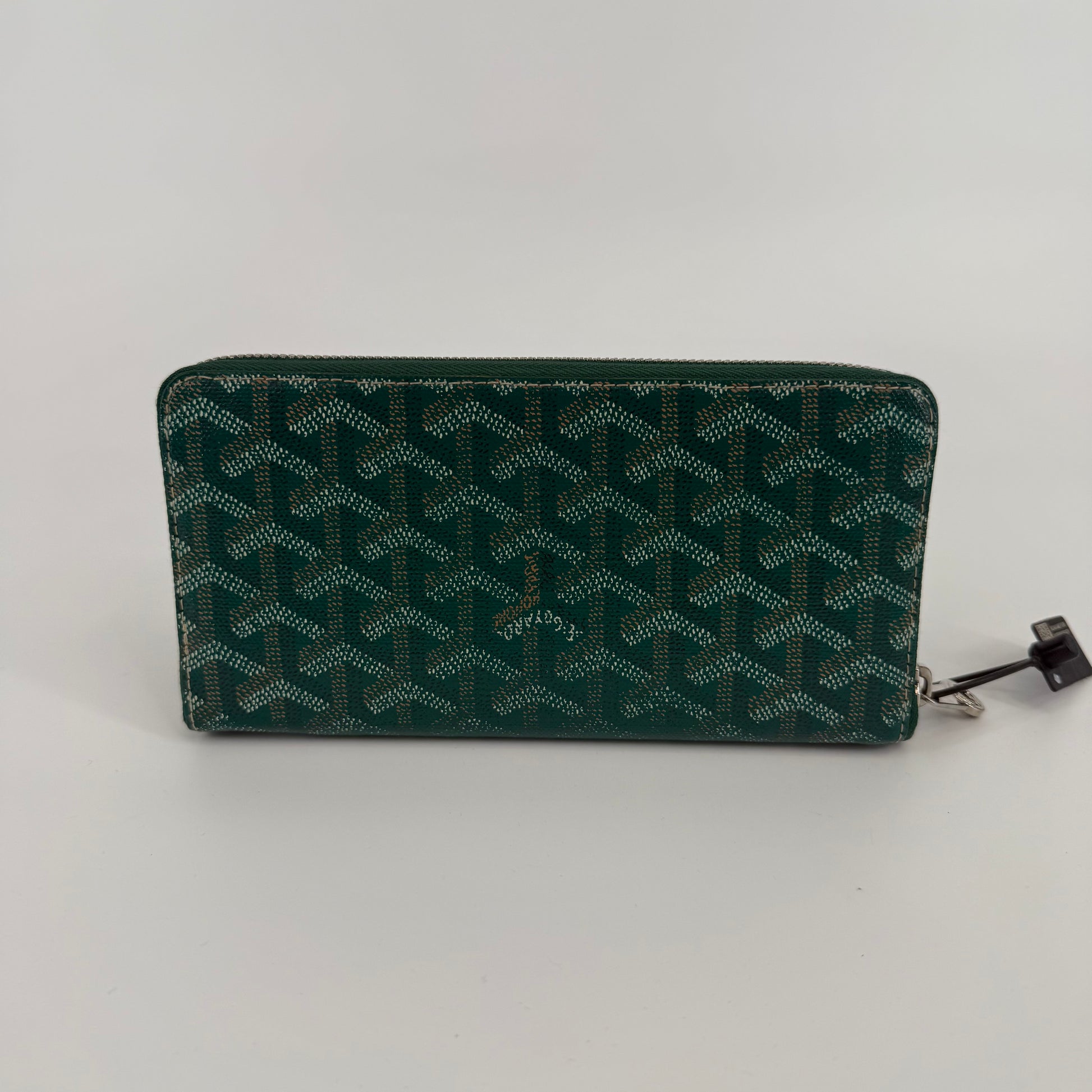 The Goyard Matignon Wallet GM exemplifies the Maison’s mastery of understated luxury and exceptional craftsmanship. Handcrafted in Goyard’s signature green Goyardine coated canvas and refined leather trim, this long zip-around wallet is both elegant and functional. The spacious interior features multiple card slots, bill compartments, and a central zip pocket for coins — perfect for everyday organization. Timeless and distinctive, the Matignon GM showcases Goyard’s artisanal heritage and dedication to discreet sophistication.