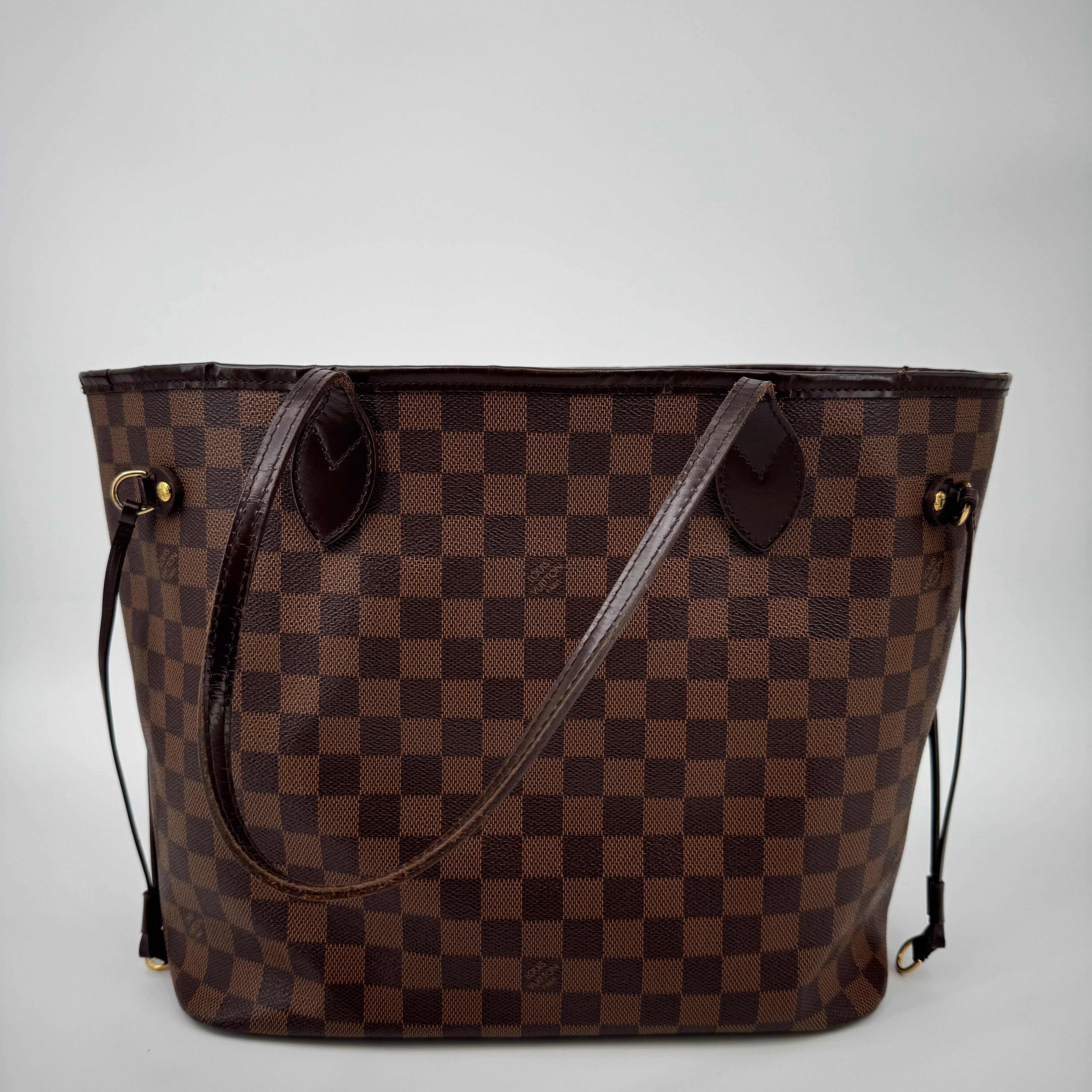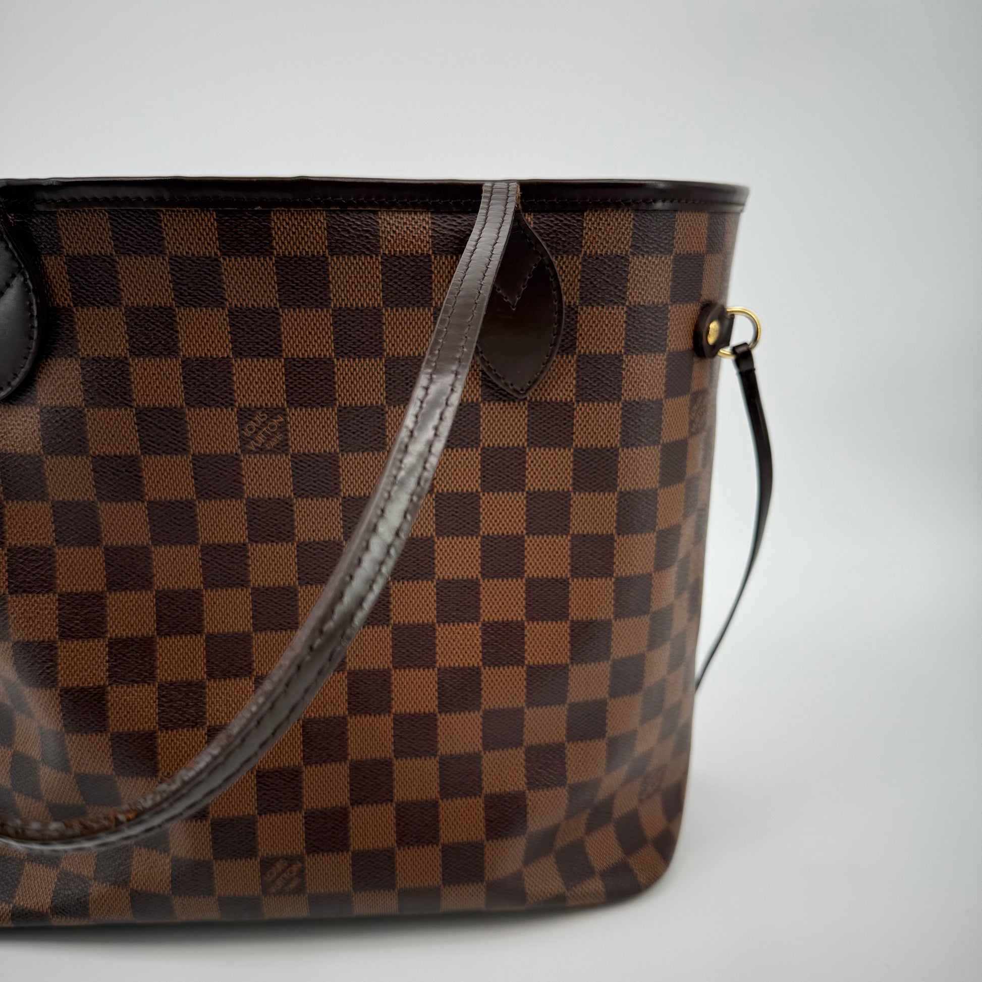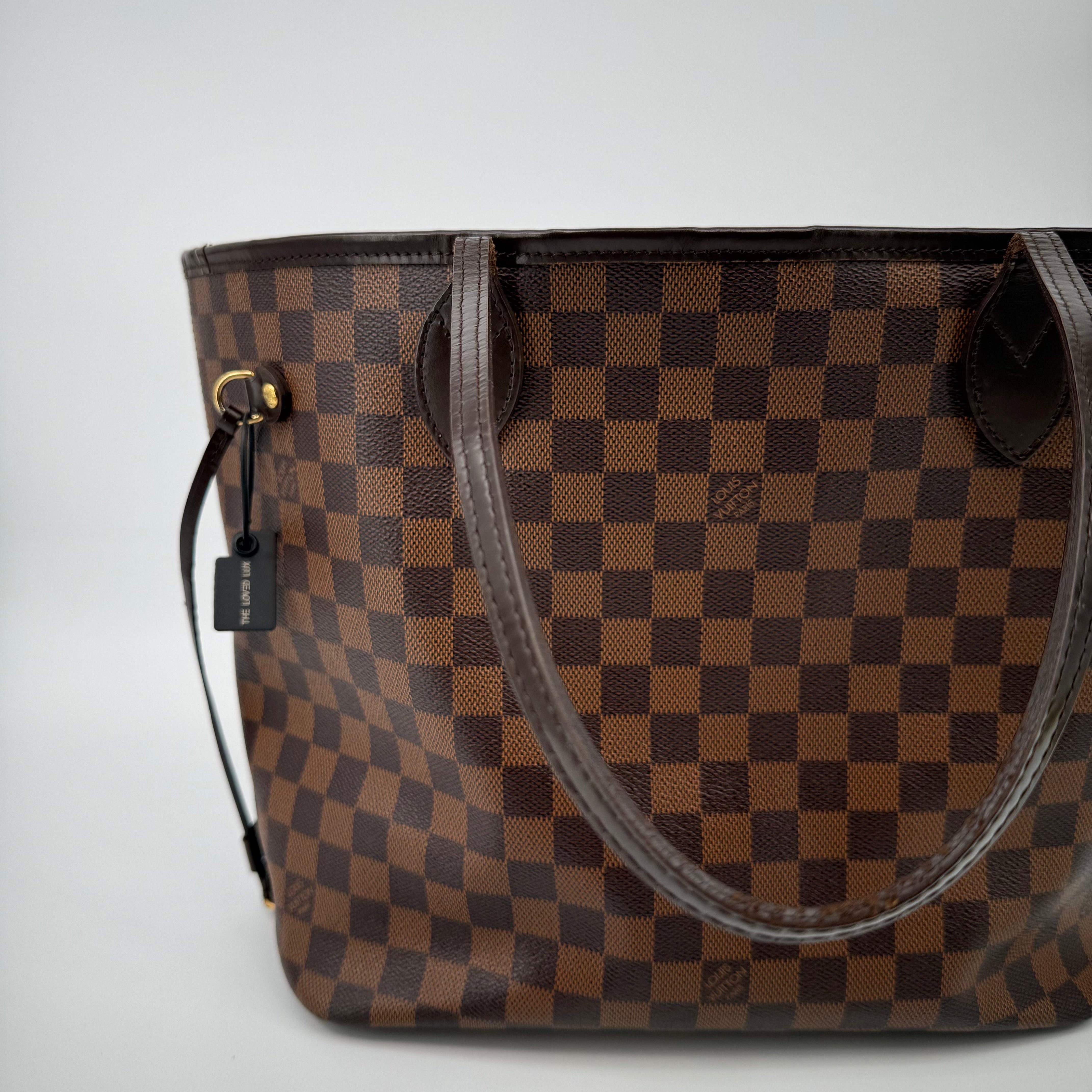 Crafted in Louis Vuitton’s signature Damier Ebene coated canvas, the Neverfull MM is a timeless and practical tote designed for modern life. With its spacious interior, slim leather straps, and adjustable side laces, it transitions seamlessly from city errands to weekend getaways. The chocolate-brown leather trim and gold-tone hardware elevate its classic silhouette, making it both durable and effortlessly elegant.