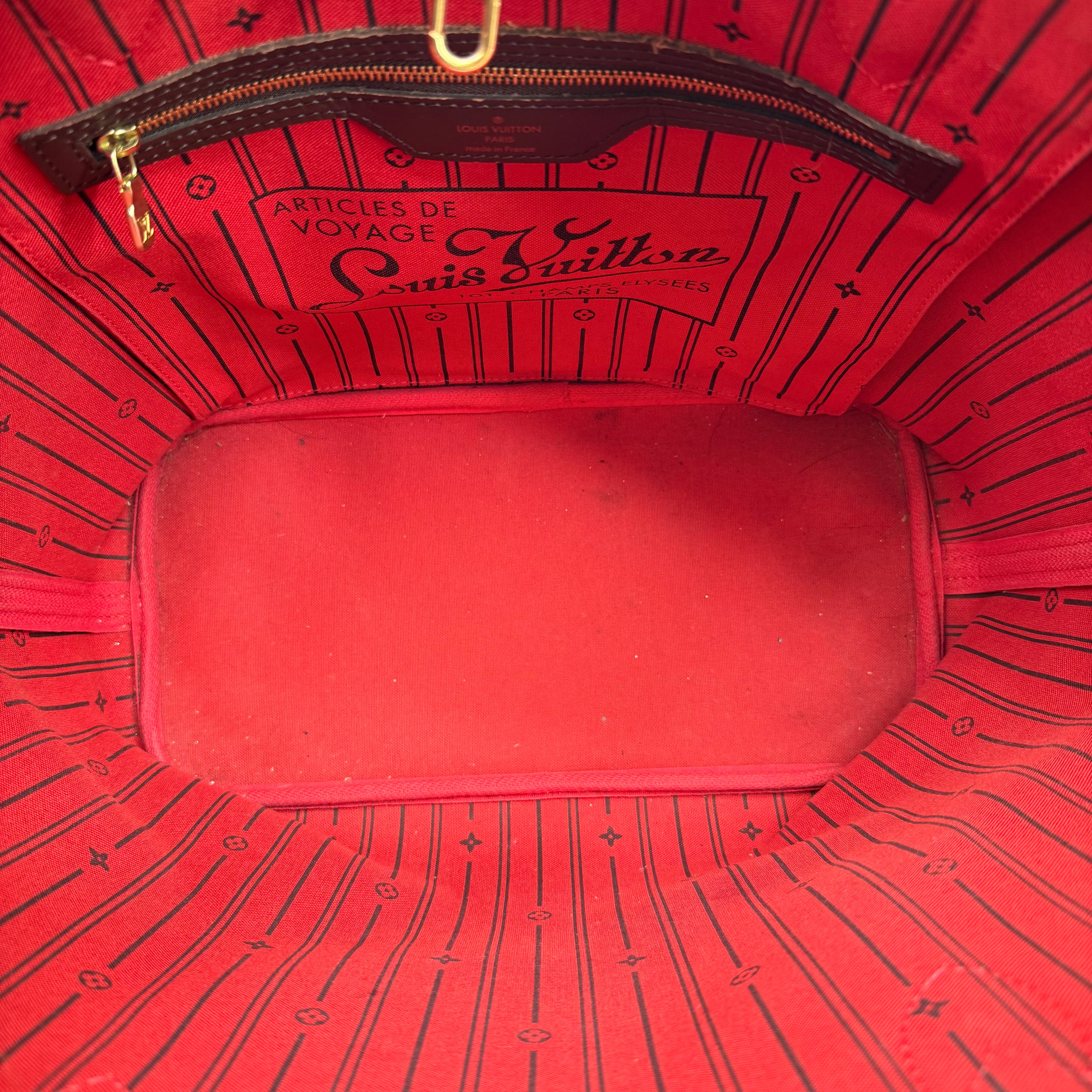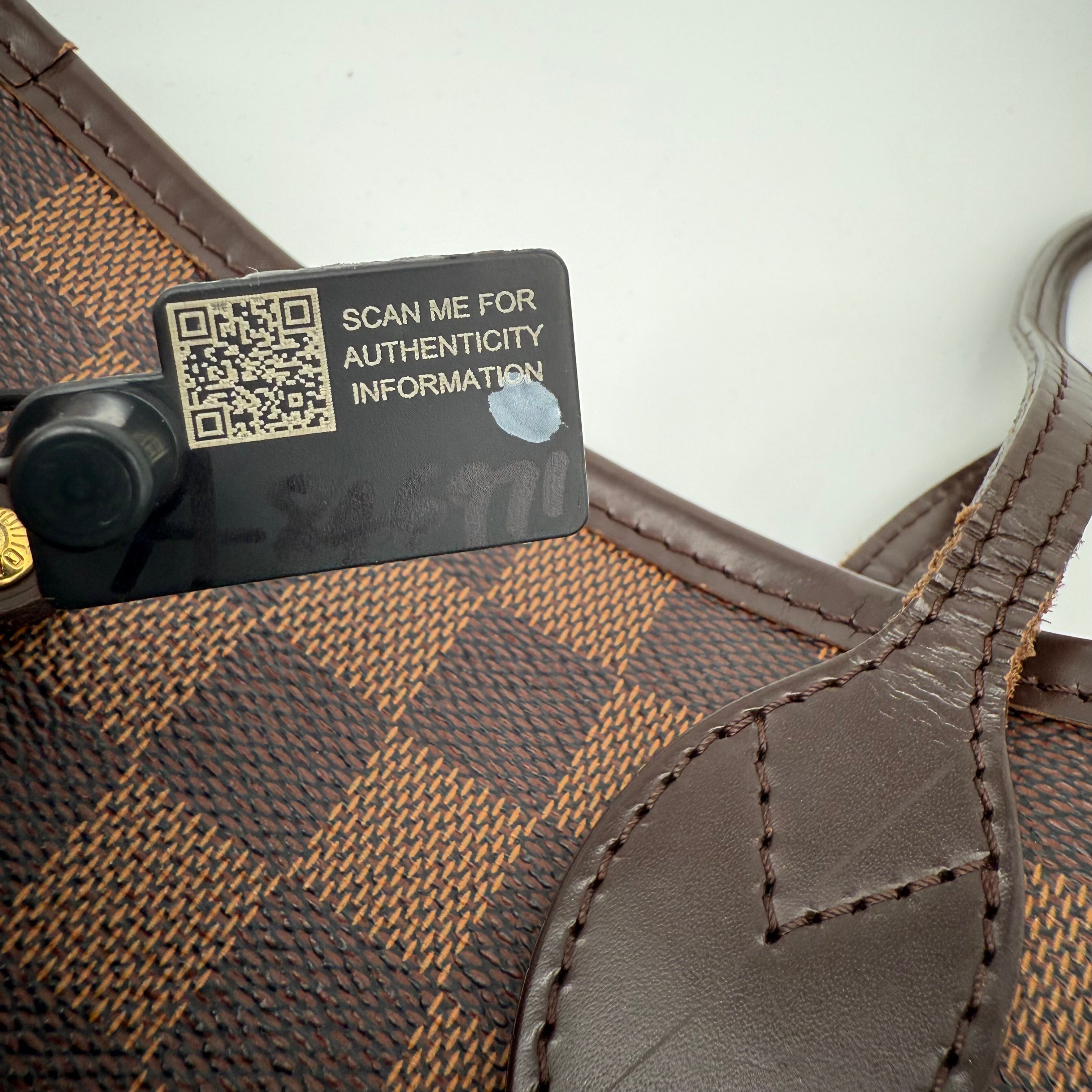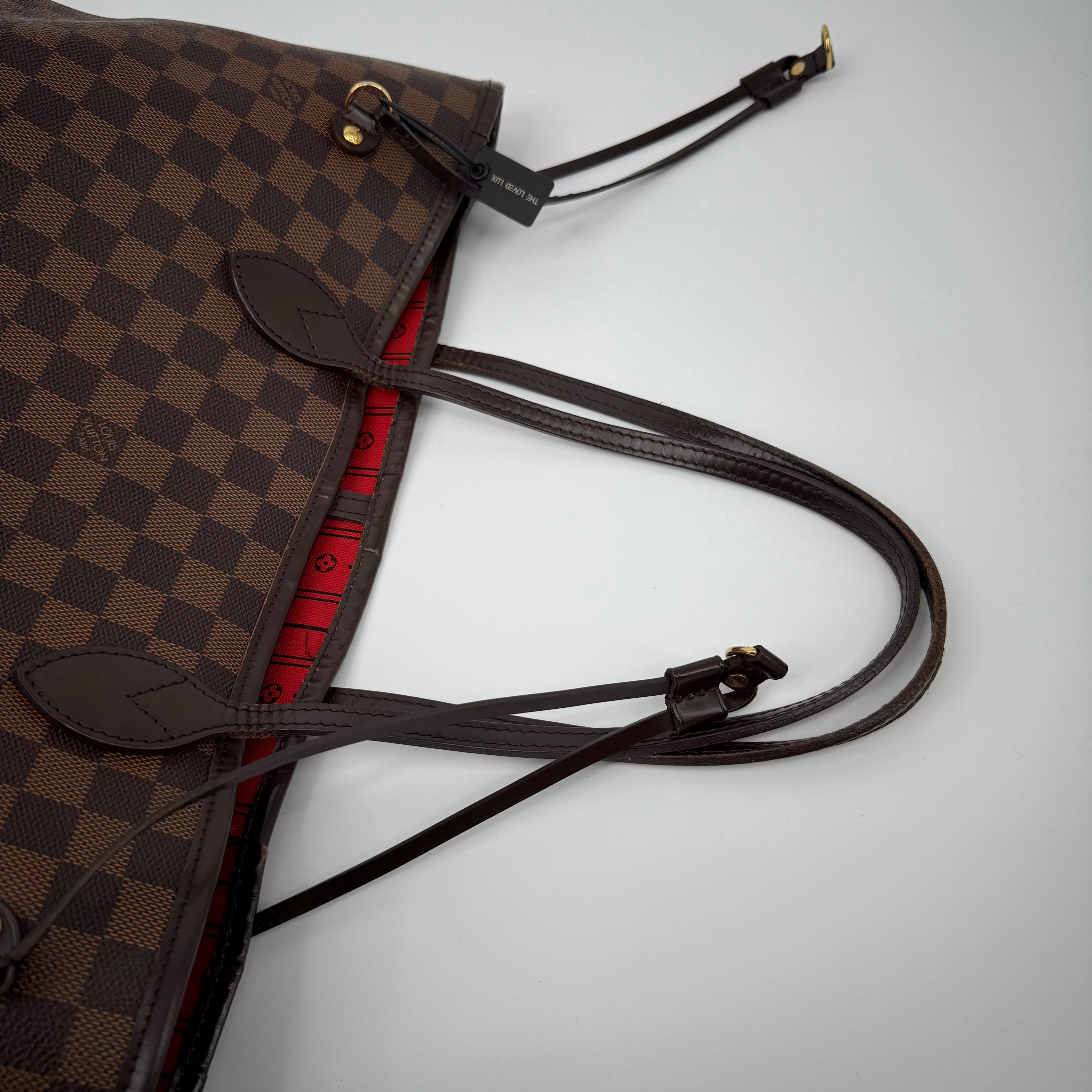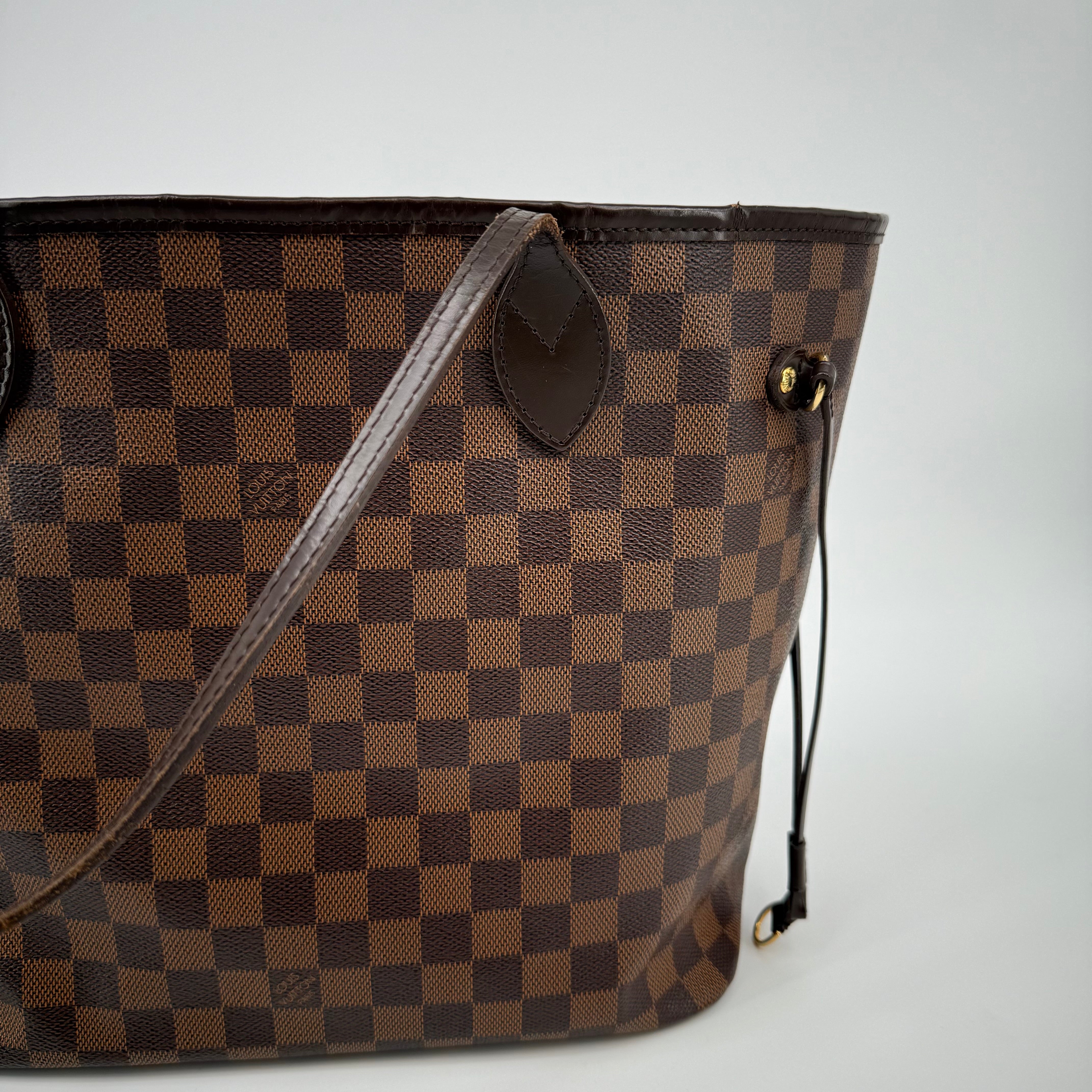 Crafted in Louis Vuitton’s signature Damier Ebene coated canvas, the Neverfull MM is a timeless and practical tote designed for modern life. With its spacious interior, slim leather straps, and adjustable side laces, it transitions seamlessly from city errands to weekend getaways. The chocolate-brown leather trim and gold-tone hardware elevate its classic silhouette, making it both durable and effortlessly elegant.