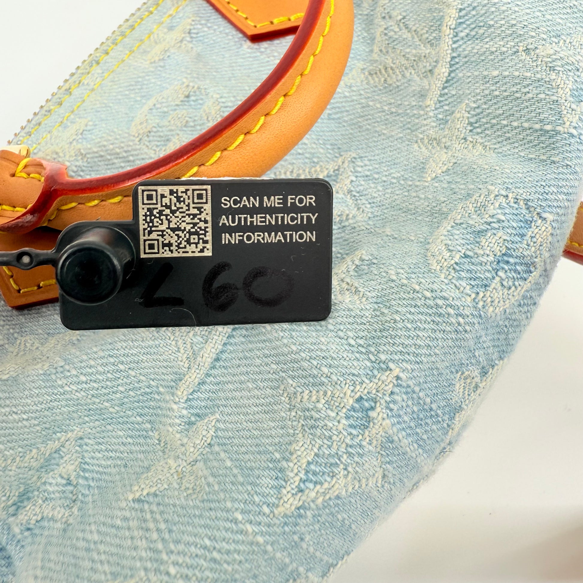The Louis Vuitton Denim Nano Speedy 16 captures the perfect balance of playful charm and timeless luxury. Crafted from soft Monogram denim in a washed sky-blue hue, this miniature version of the iconic Speedy showcases the Maison’s artistry and attention to detail. Natural cowhide leather handles and trim contrast beautifully against the faded denim, while the removable shoulder strap offers versatile styling options. Compact yet statement-making, the Nano Speedy is a collector’s favourite — effortlessly blending vintage flair with modern sophistication.