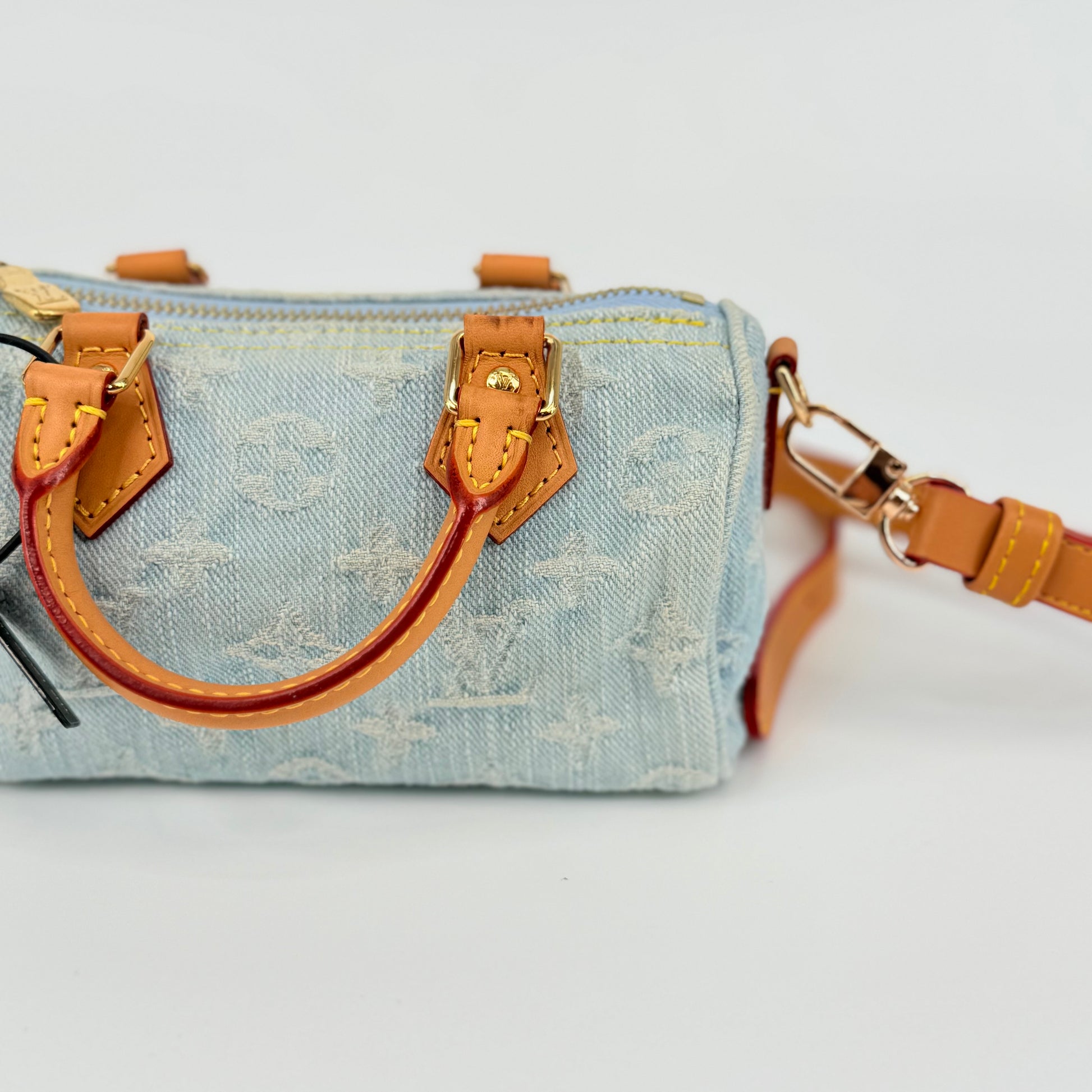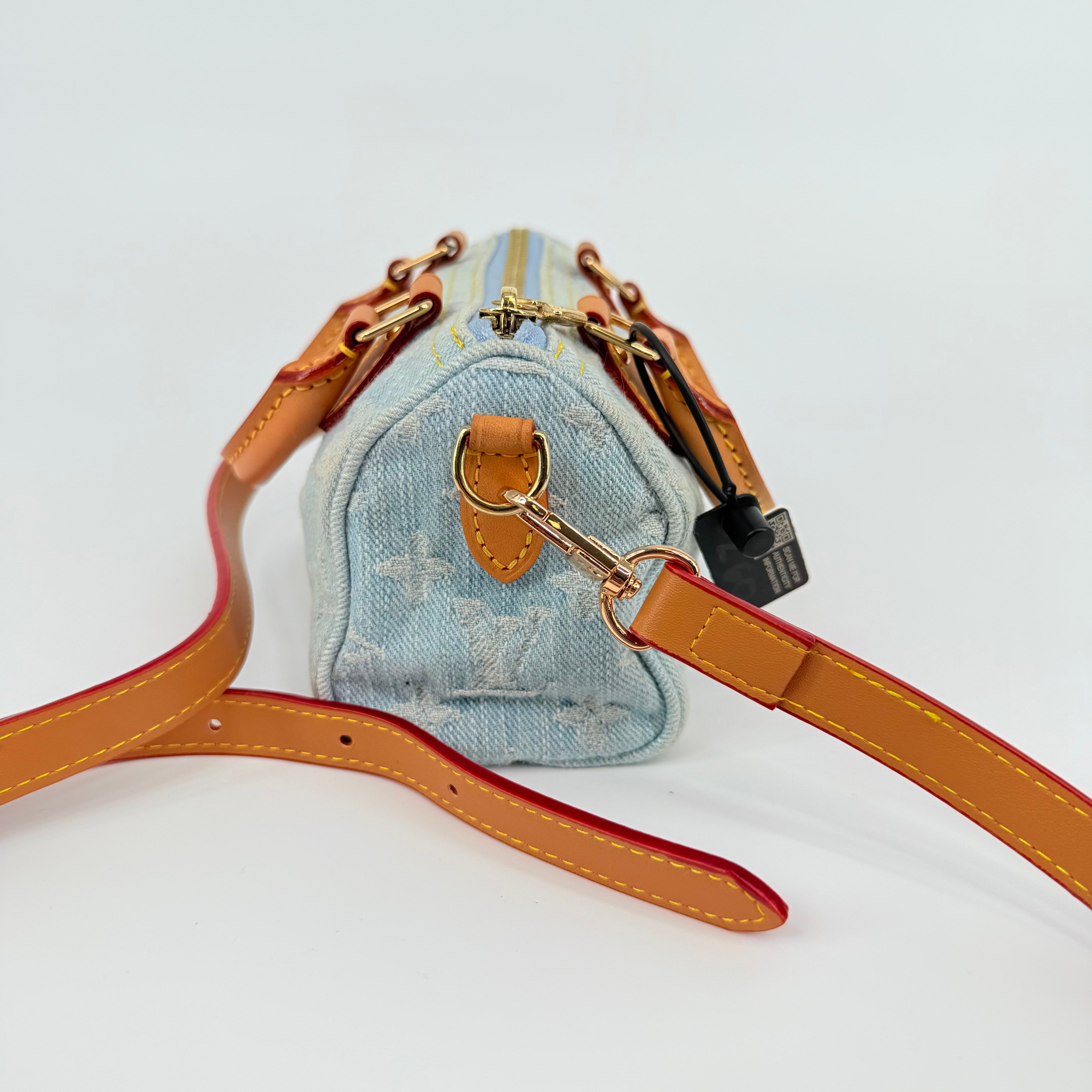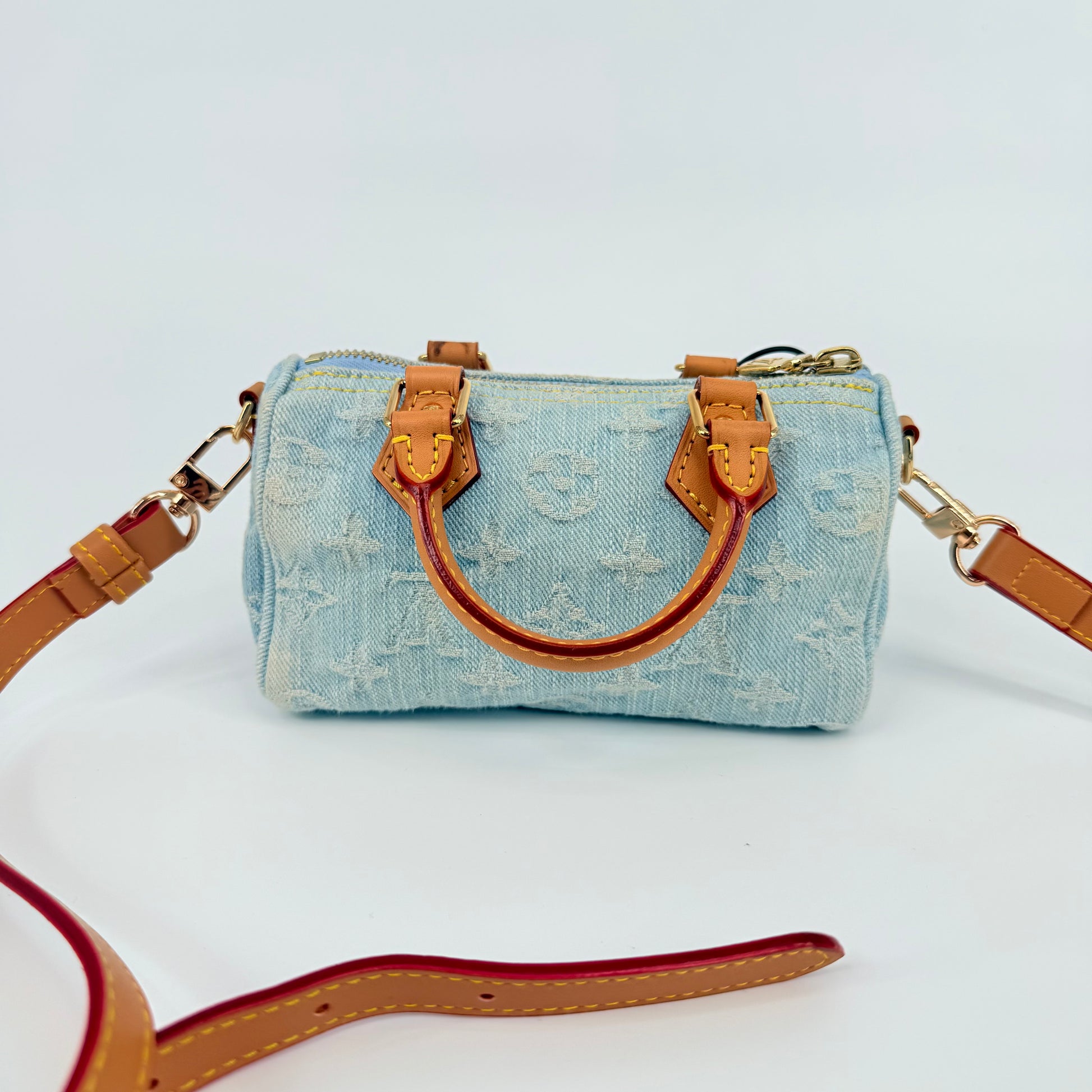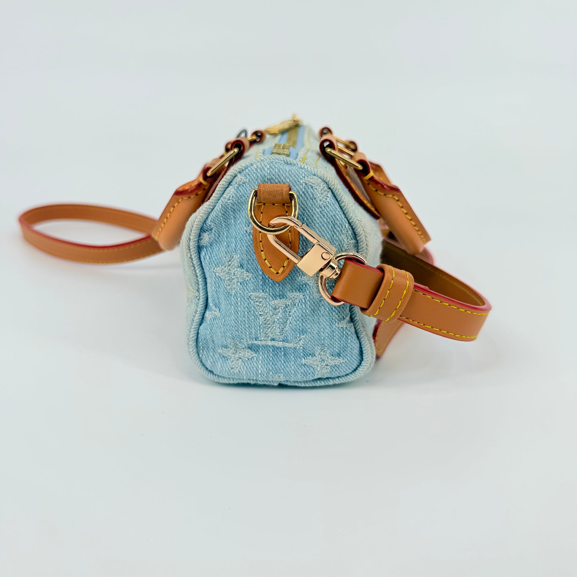 Louis Vuitton Denim Sky Blue Nano Speedy 16 With Strap