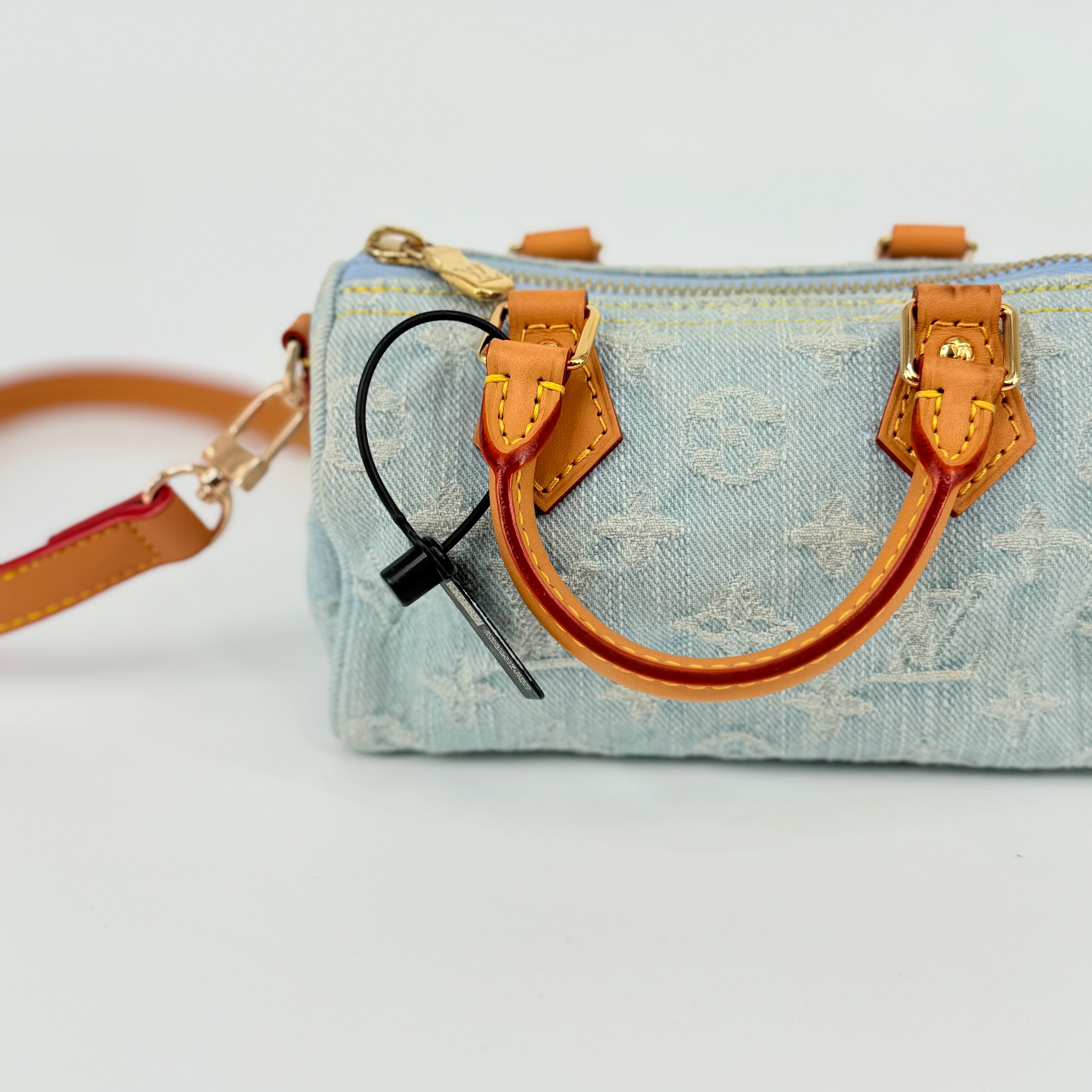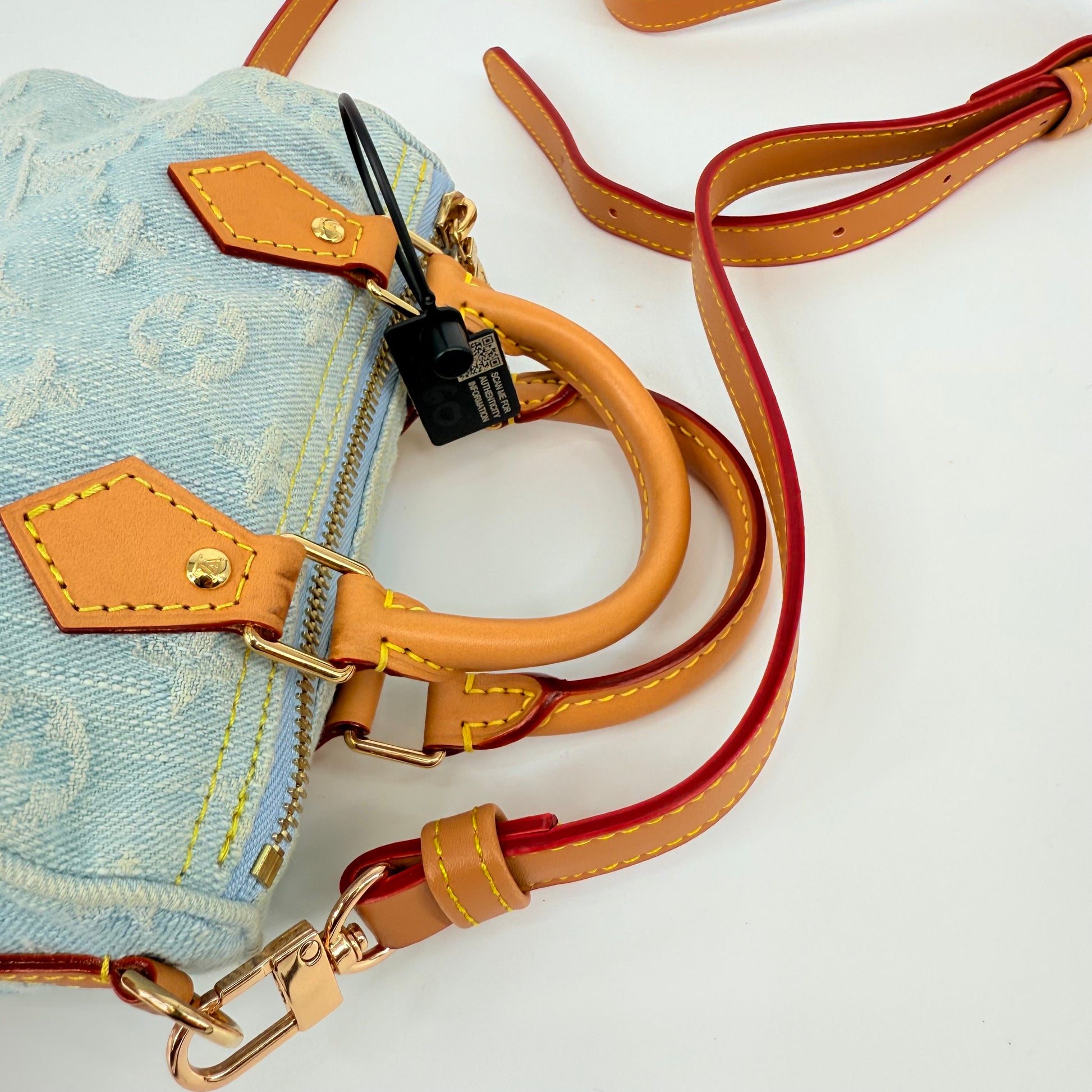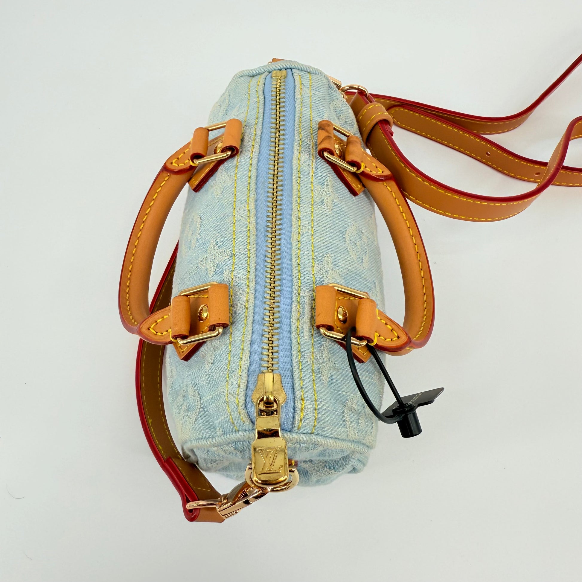 Louis Vuitton Denim Sky Blue Nano Speedy 16 With Strap