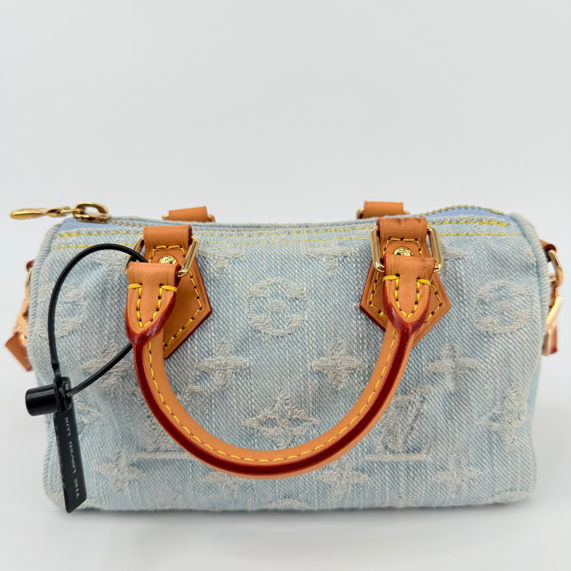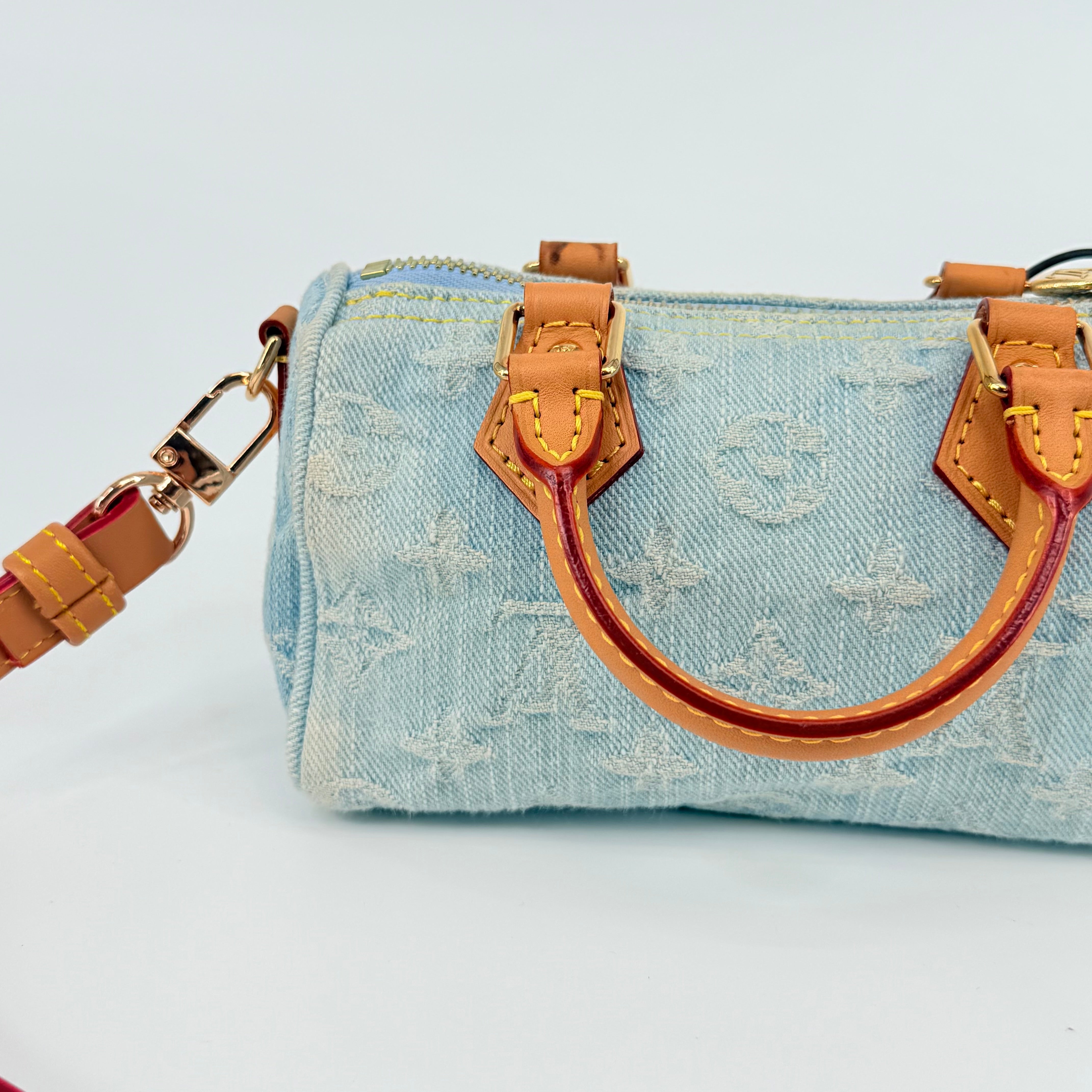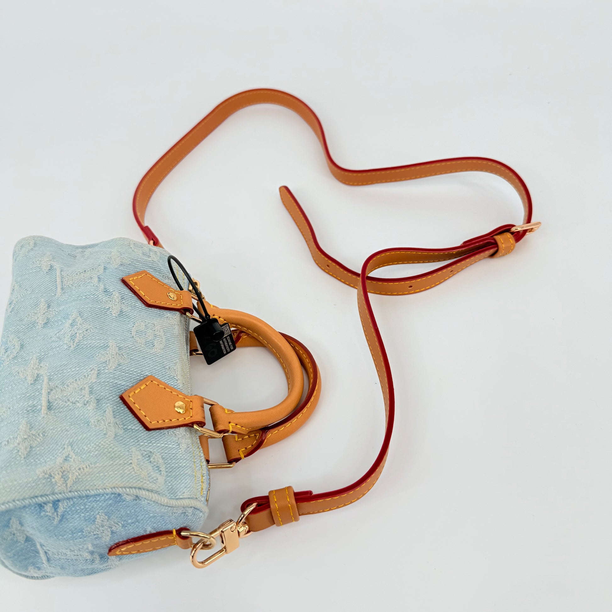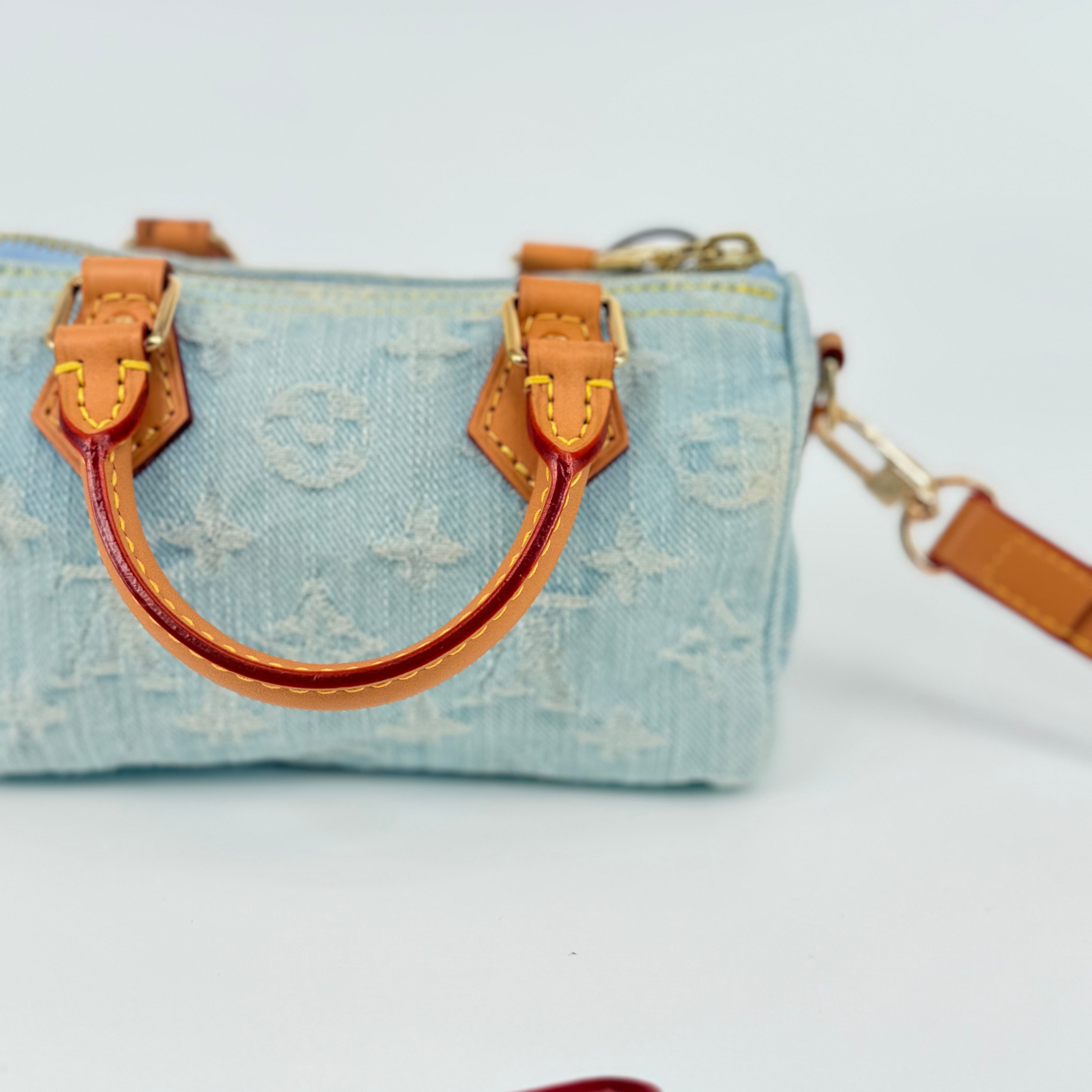 Louis Vuitton Denim Sky Blue Nano Speedy 16 With Strap