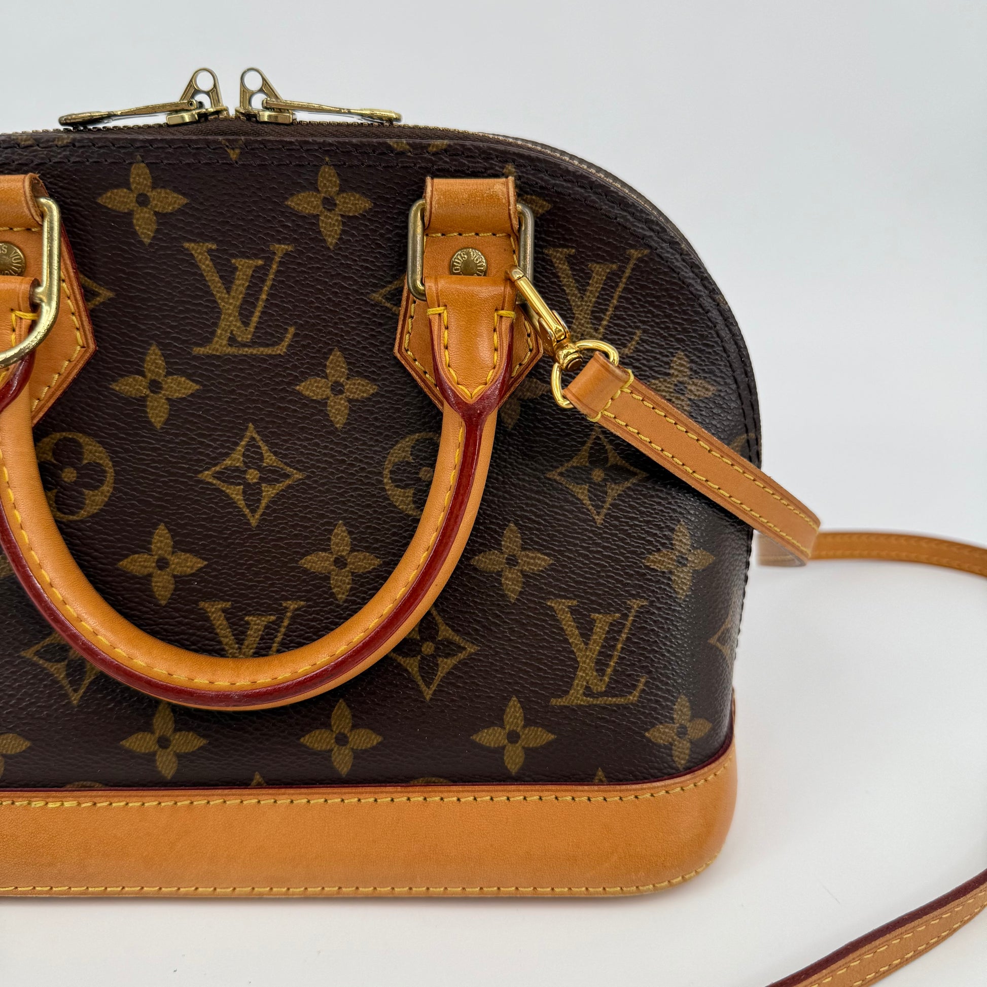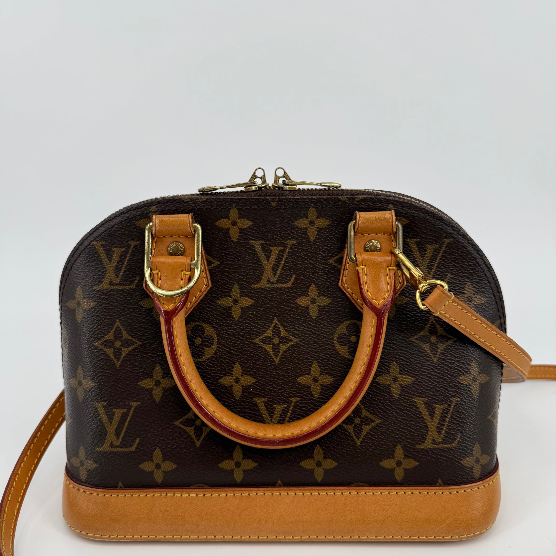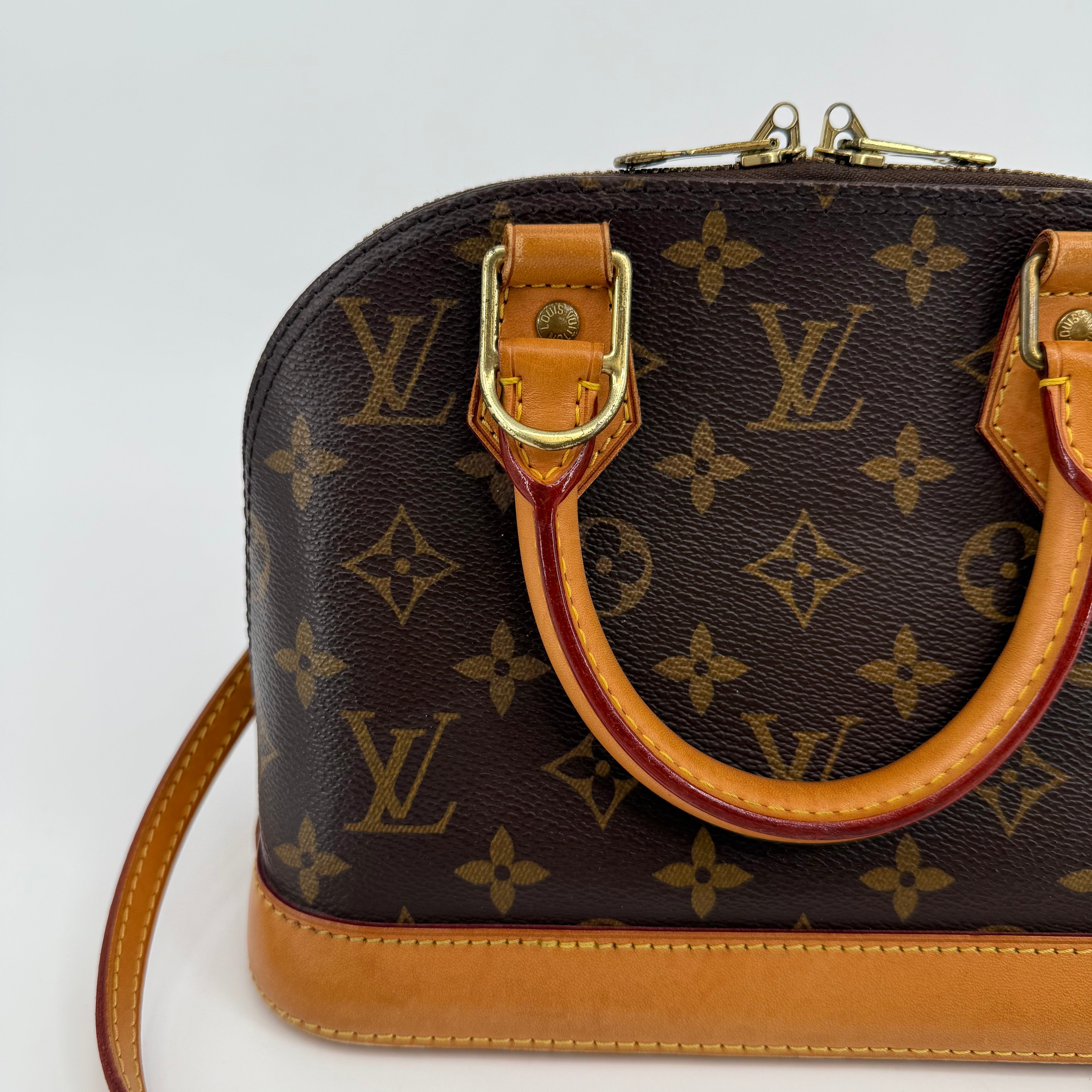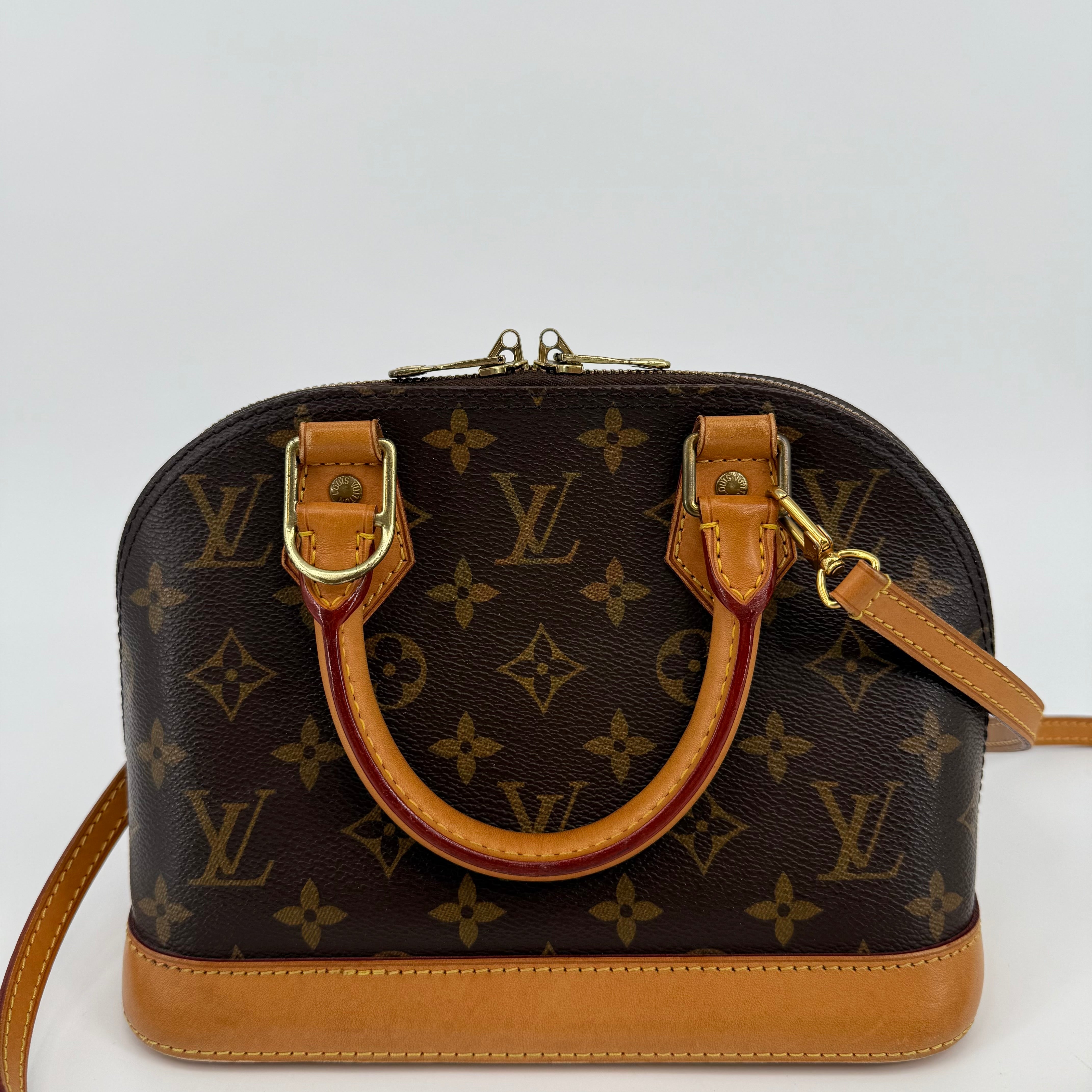 This Louis Vuitton Alma BB is a refined everyday icon, crafted in the house’s signature Monogram coated canvas with smooth natural Vachetta leather trim. Featuring the Alma’s instantly recognisable structured silhouette, it is finished with rolled leather top handles, a removable shoulder strap for versatile wear, and polished gold-tone hardware including a secure double zip closure and signature padlock. The compact yet well-organised interior makes it perfect for daily essentials while maintaining a chic, elegant profile. A timeless Louis Vuitton classic, the Alma BB delivers effortless sophistication with practical luxury appeal.