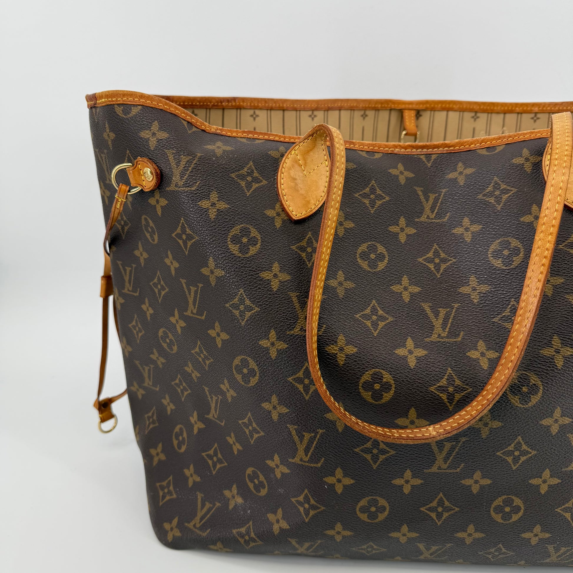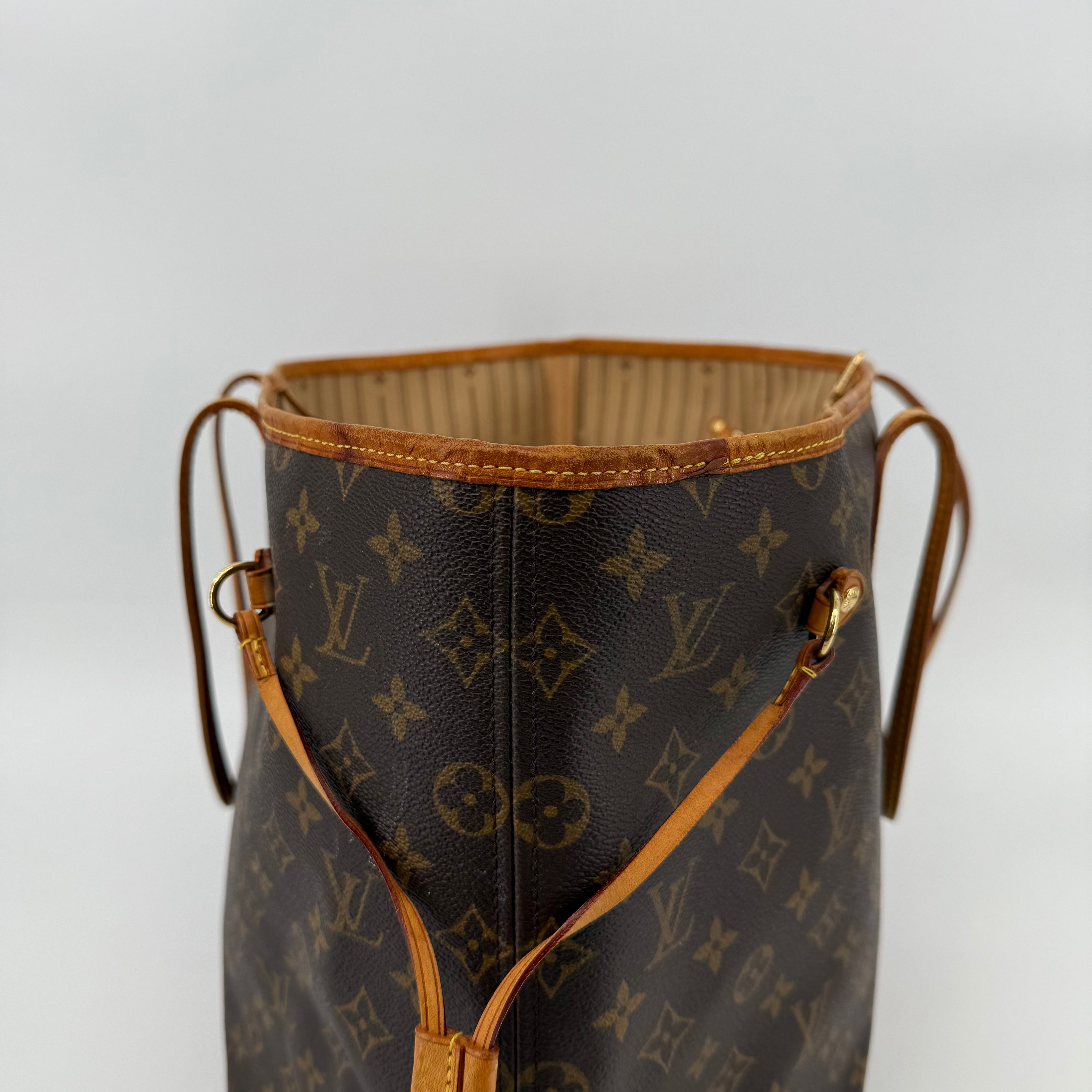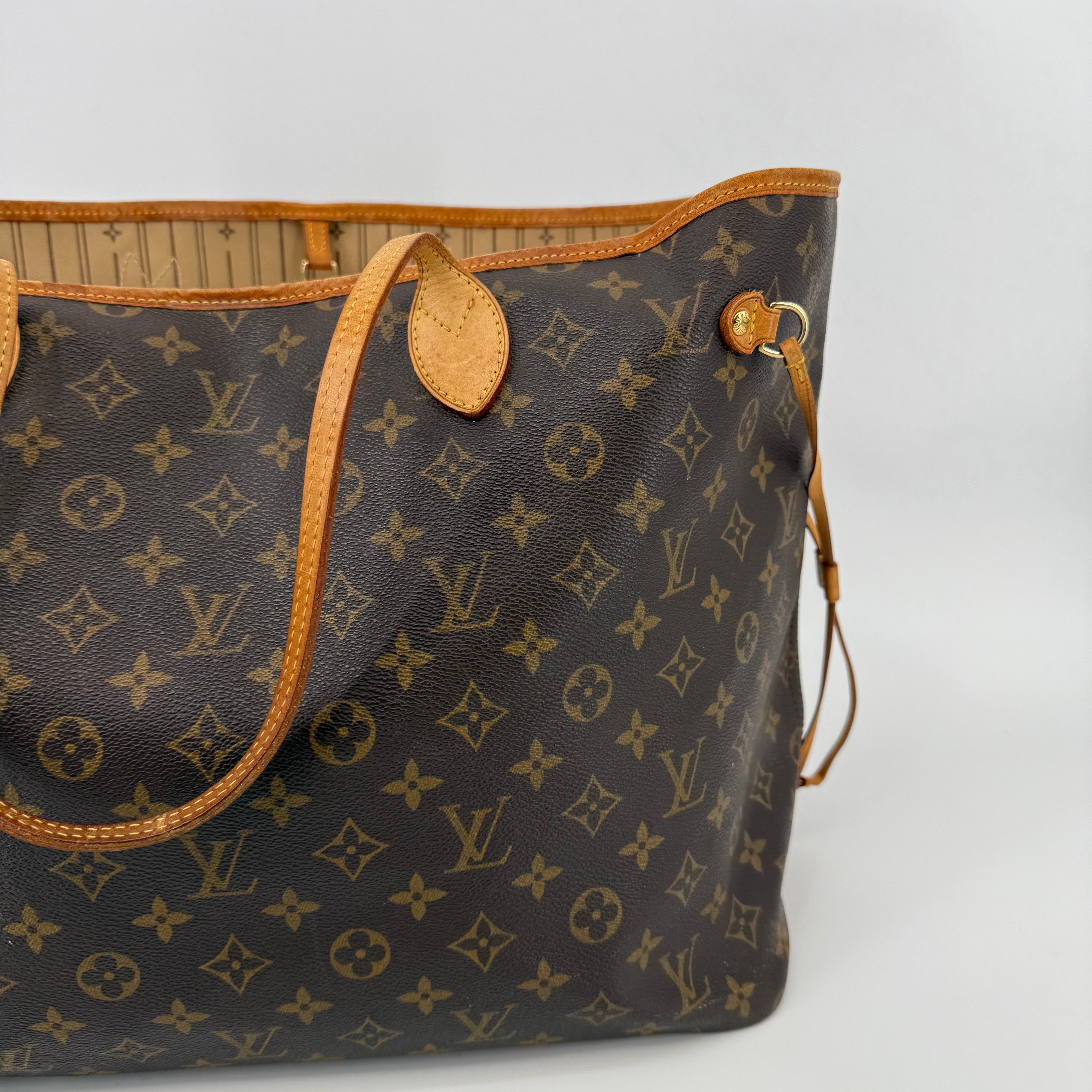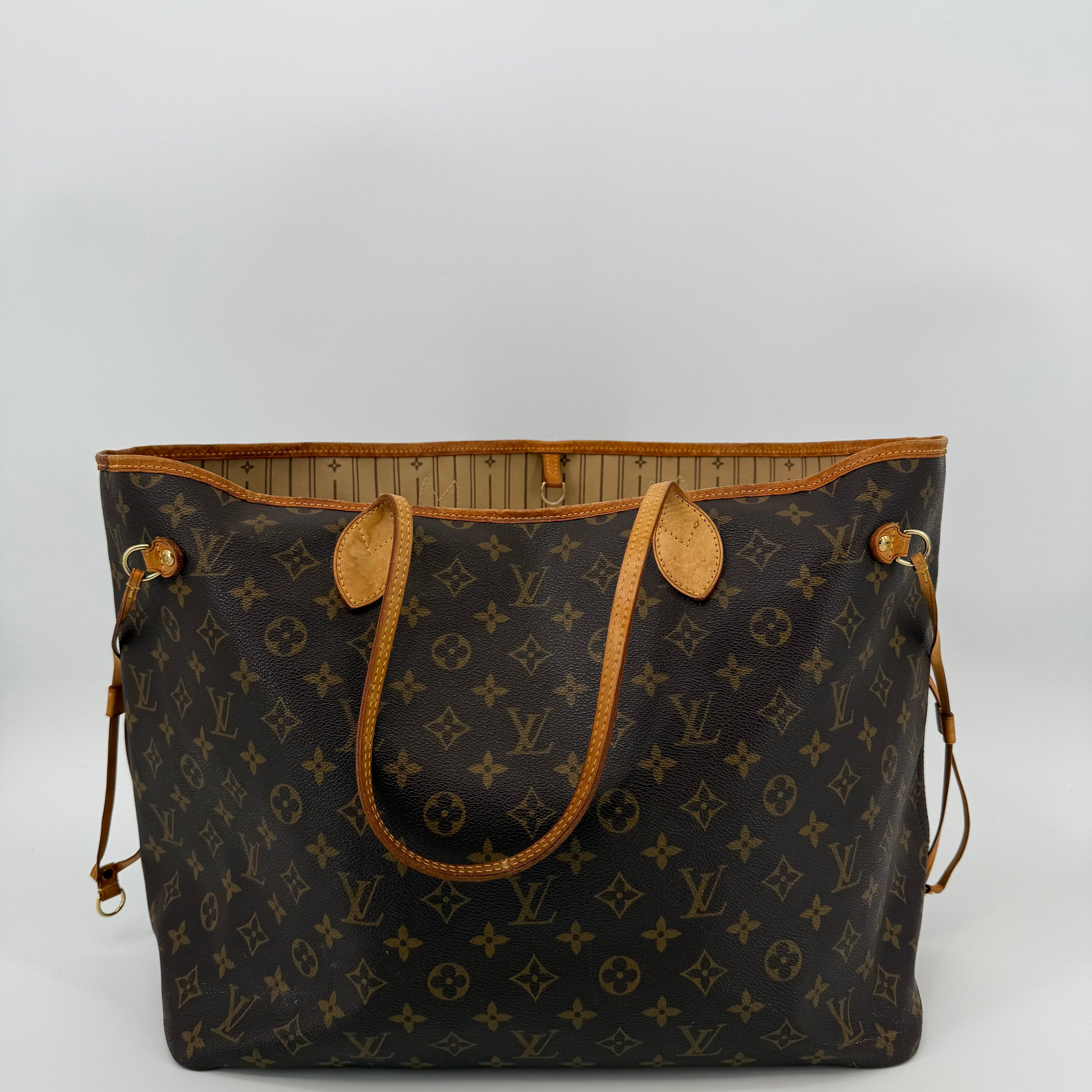 The Louis Vuitton Neverfull GM is the largest size in the Neverfull range, designed for those who need maximum space without compromising on style. Crafted from the same iconic Monogram canvas with vachetta leather detailing, the GM easily accommodates laptops, travel items, or all-day essentials. With its generous interior and classic silhouette, it’s the ultimate tote for work, travel, or busy lifestyles.