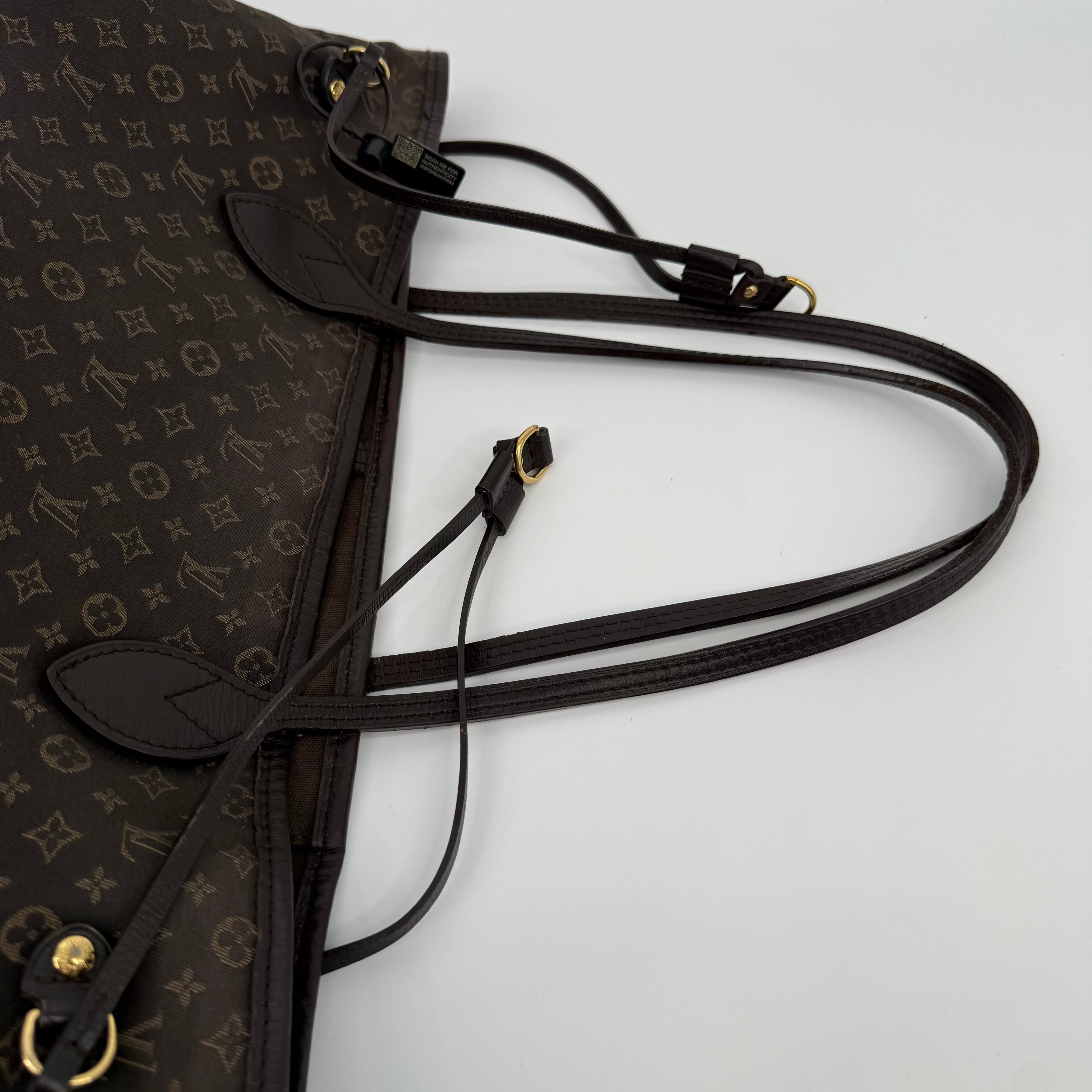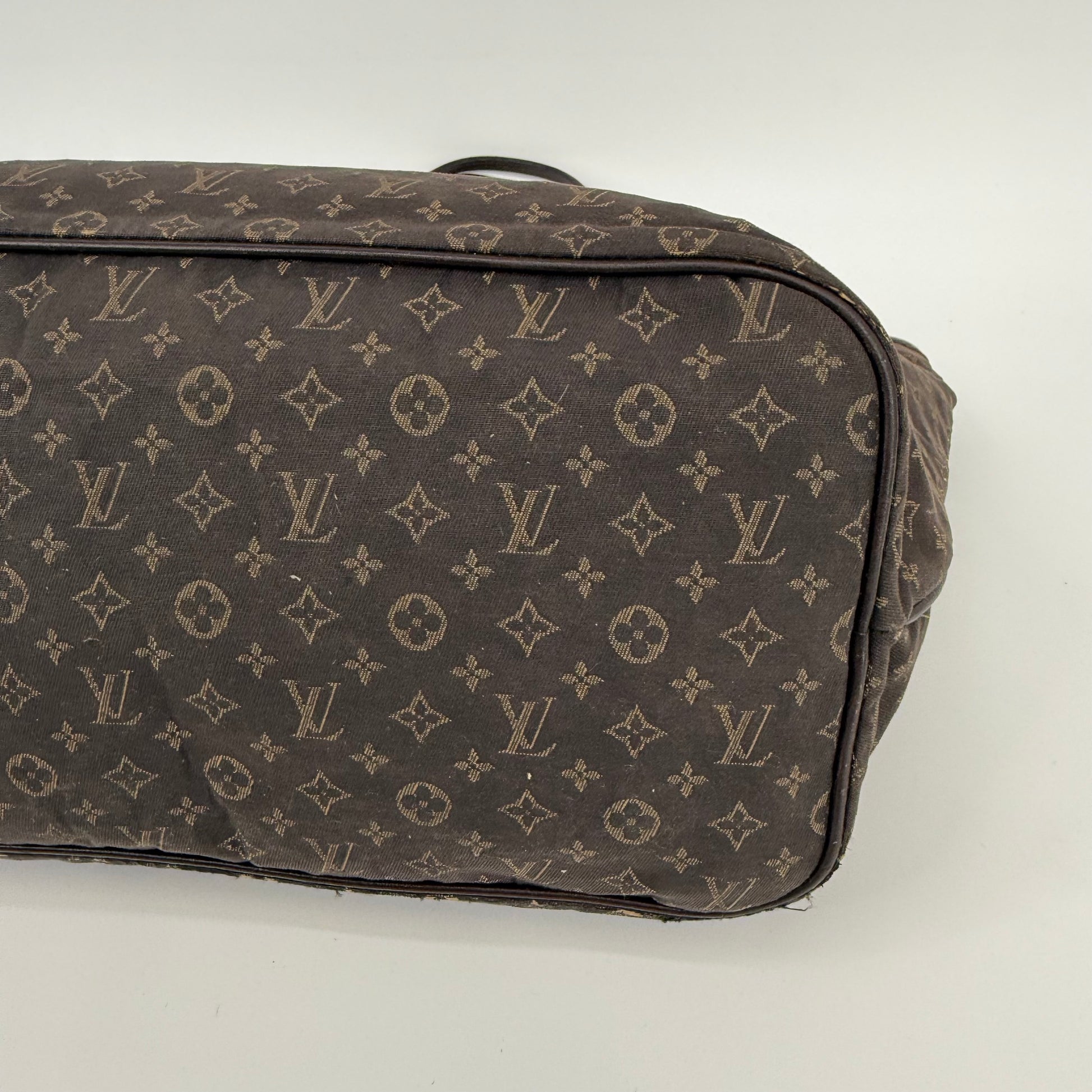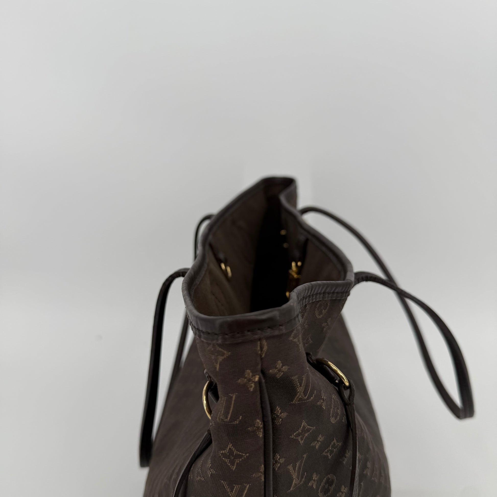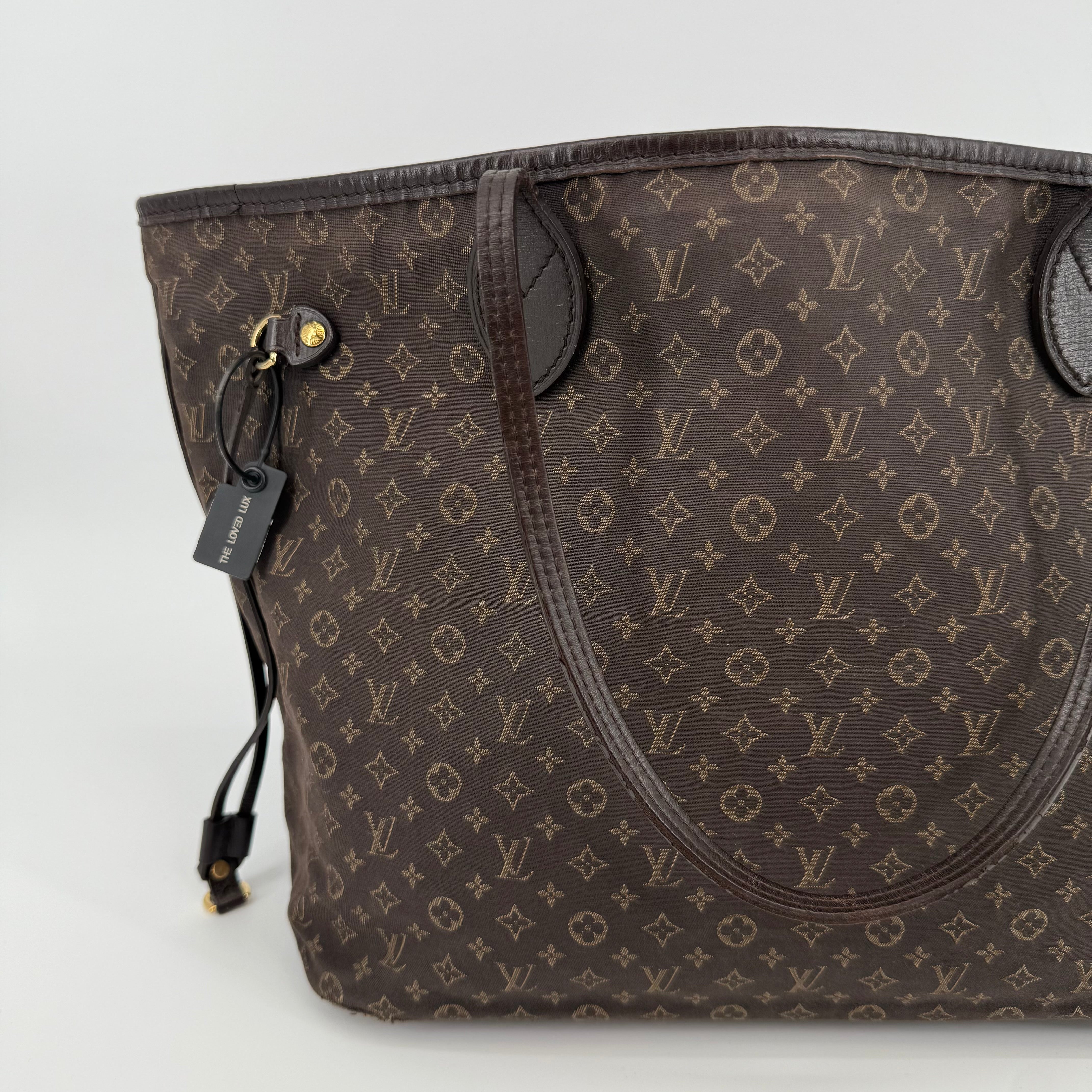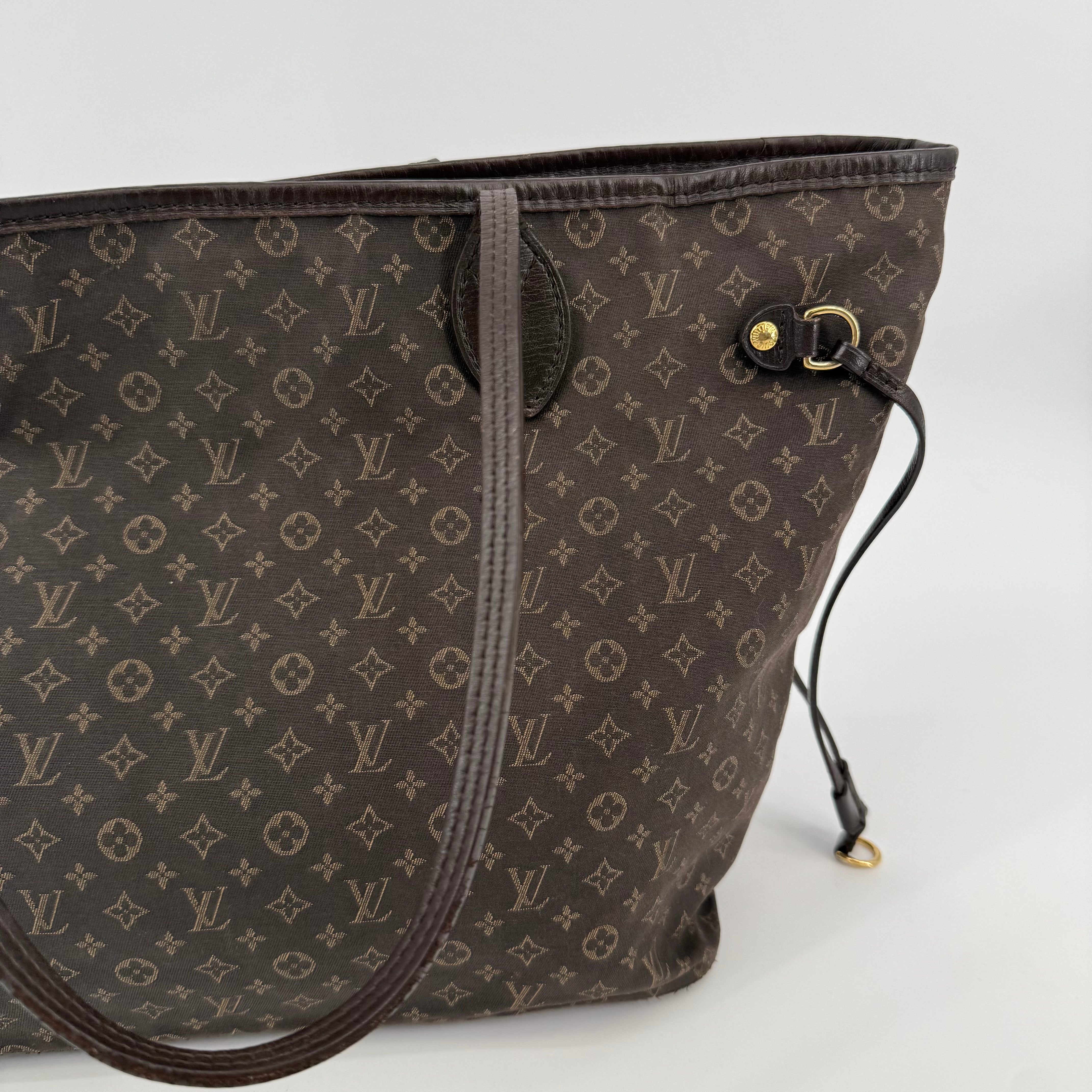 This Louis Vuitton Monogram Neverfull MM features the classic brown monogram canvas with dark brown leather trim and slim shoulder straps. The exterior shows gentle wear with a soft, relaxed shape typical of vintage Neverfulls, while still maintaining good structure. Side cinch cords and gold-tone hardware are intact. The interior is not shown in this specific image, so condition may need separate detailing if required. A timeless everyday tote in the highly sought-after MM size.