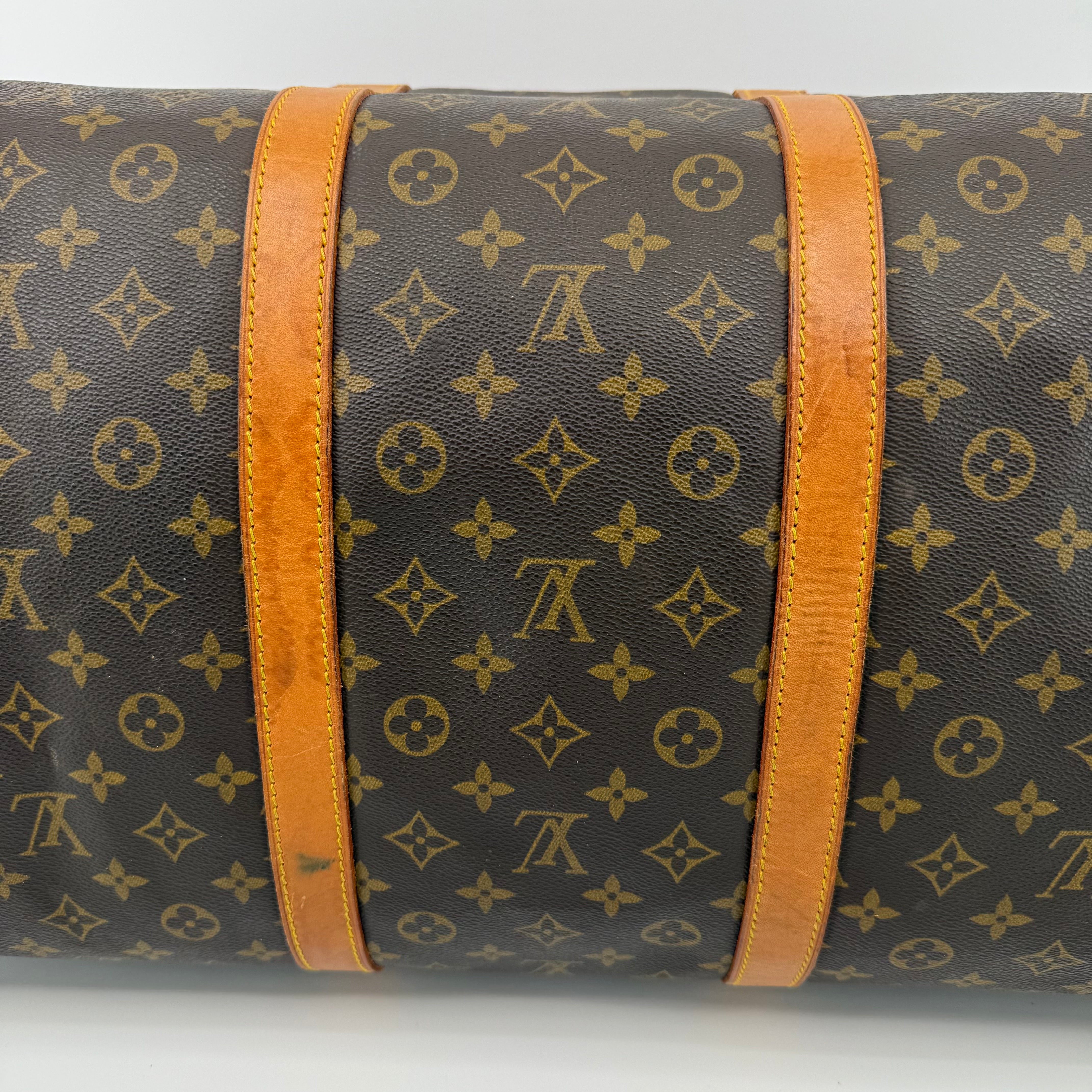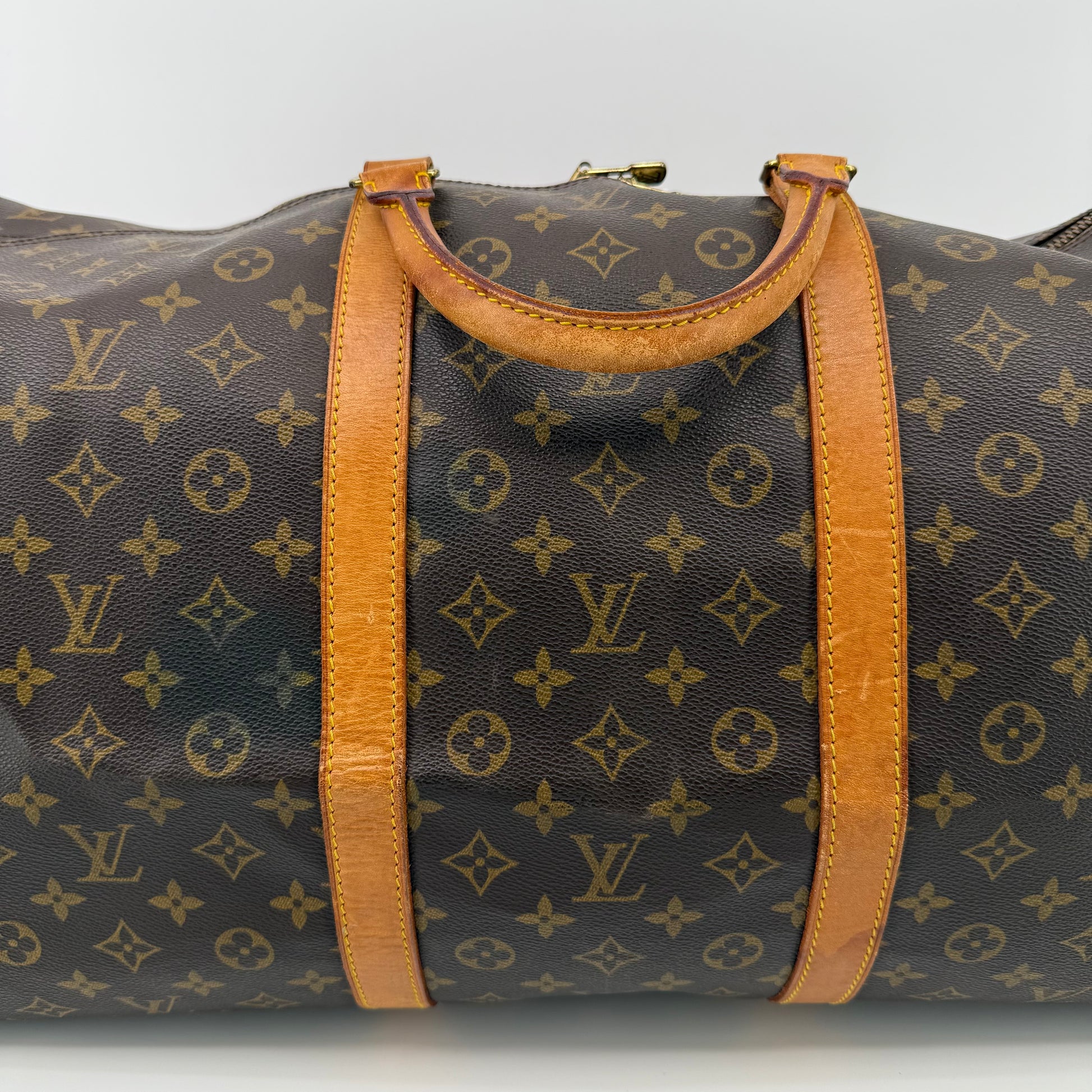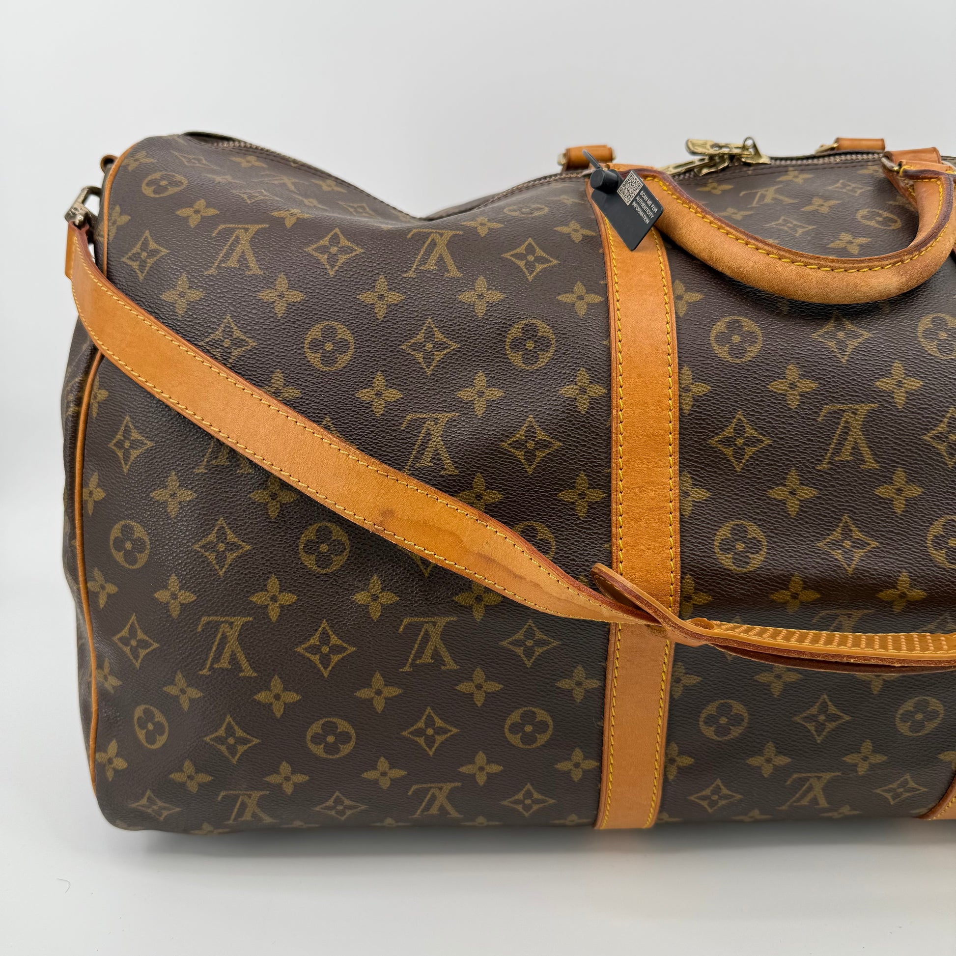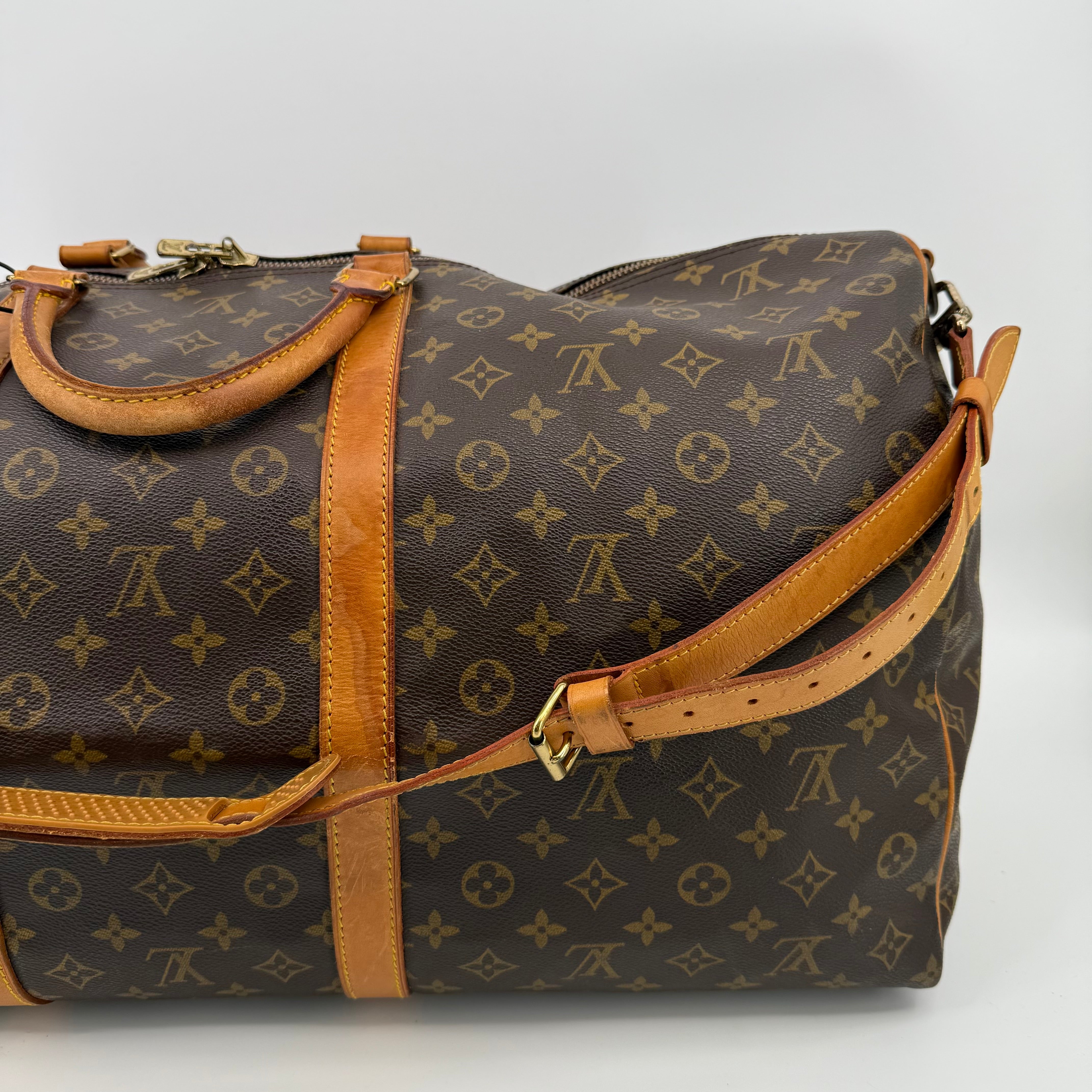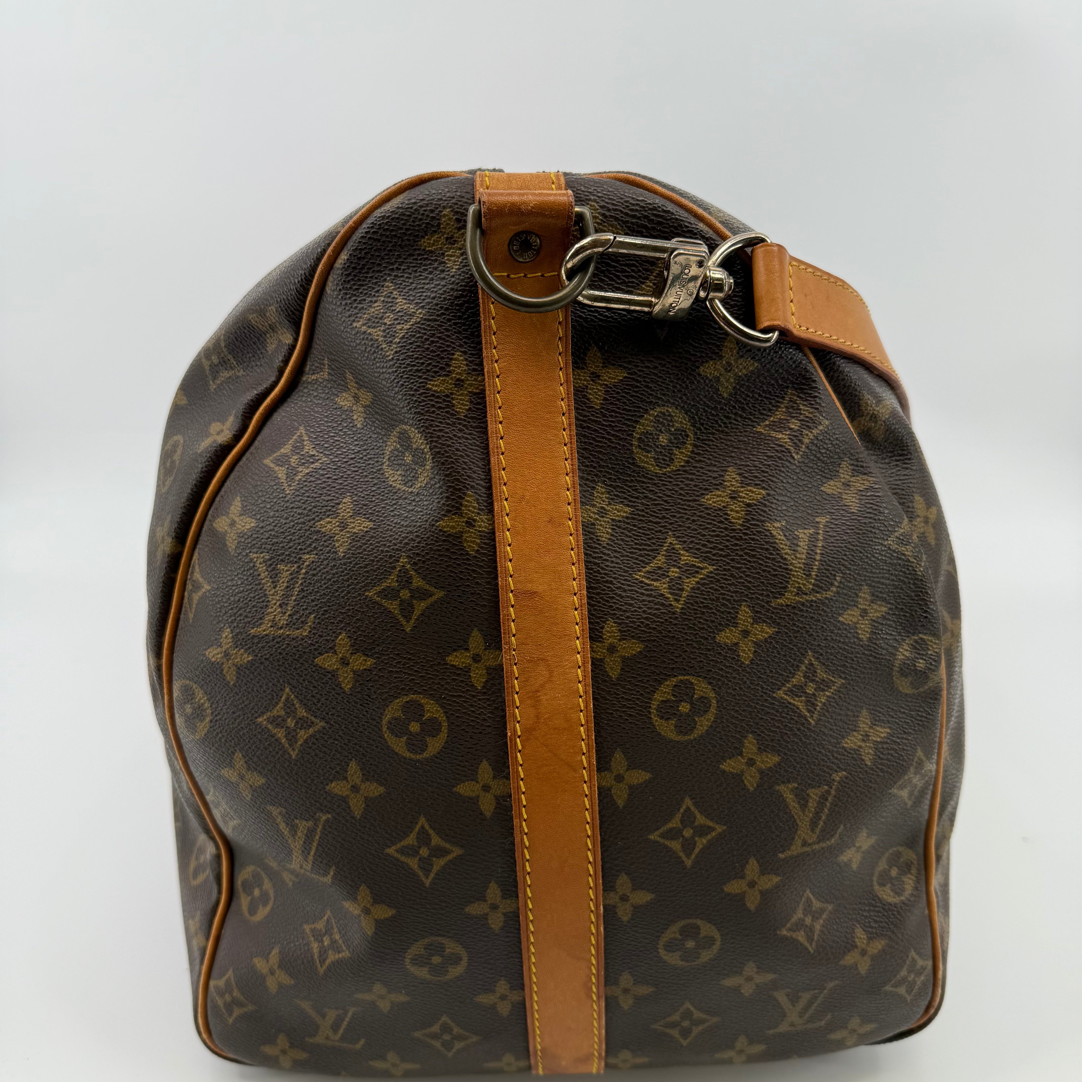 For the traveler who demands both elegance and practicality, the Louis Vuitton Keepall Bandoulière 60 is the ultimate statement piece. Constructed from Monogram coated canvas and vachetta leather trim with gold-tone hardware, it offers a spacious interior perfect for longer trips. The bag includes rolled leather handles, a detachable and adjustable shoulder strap, and signature Louis Vuitton detailing throughout — blending heritage craftsmanship with modern travel ease.