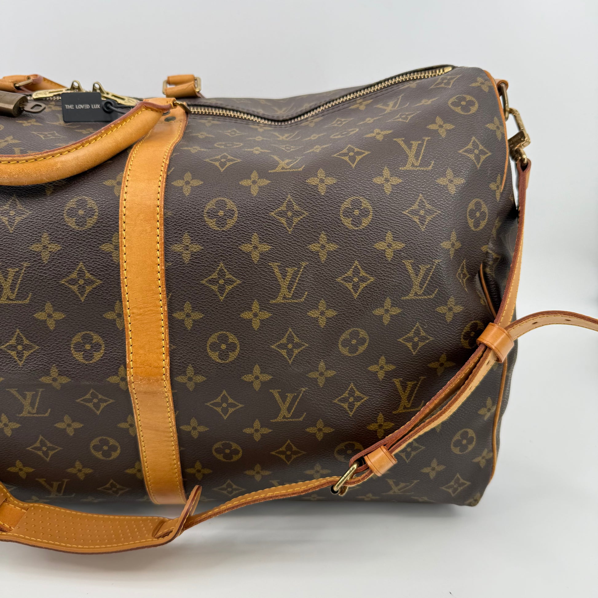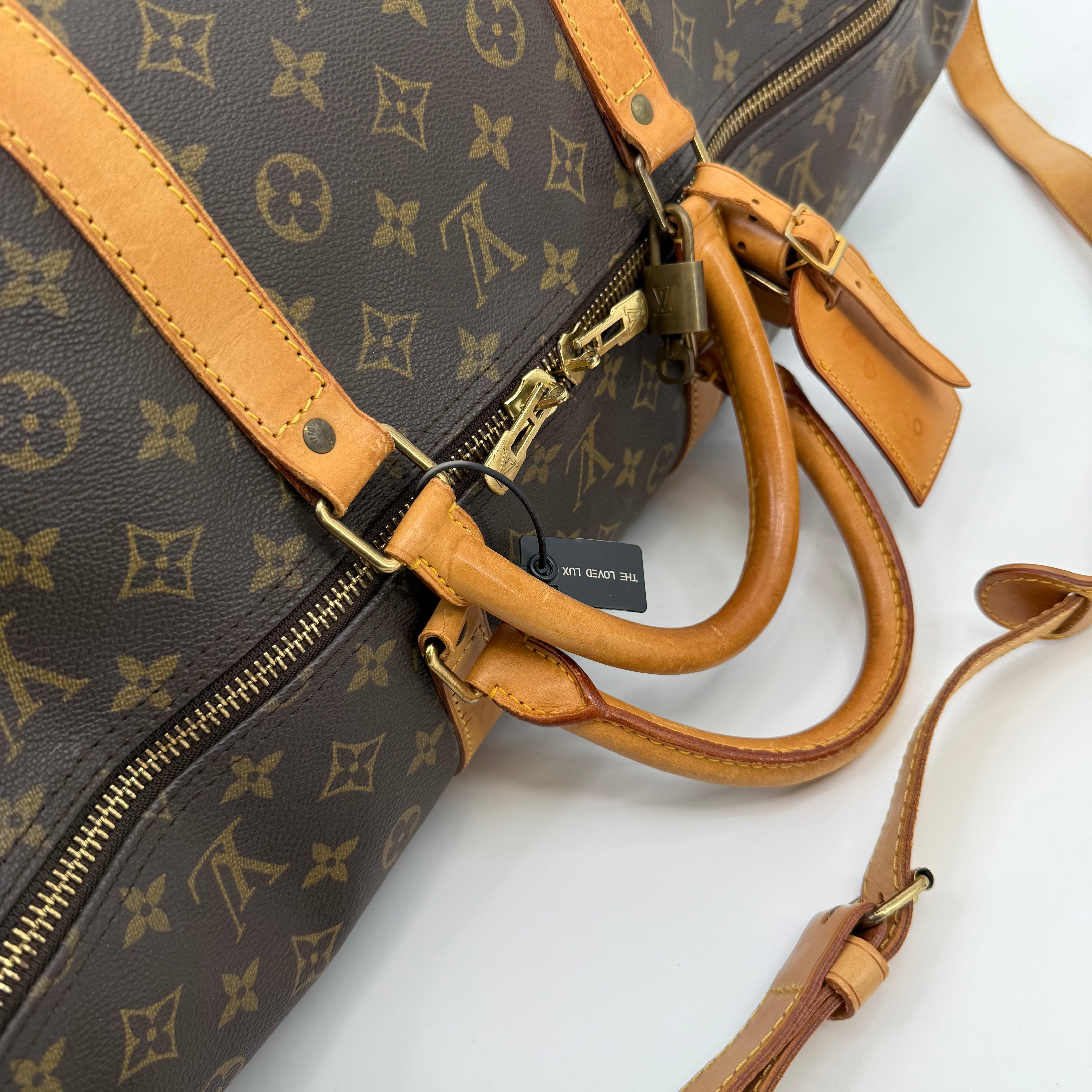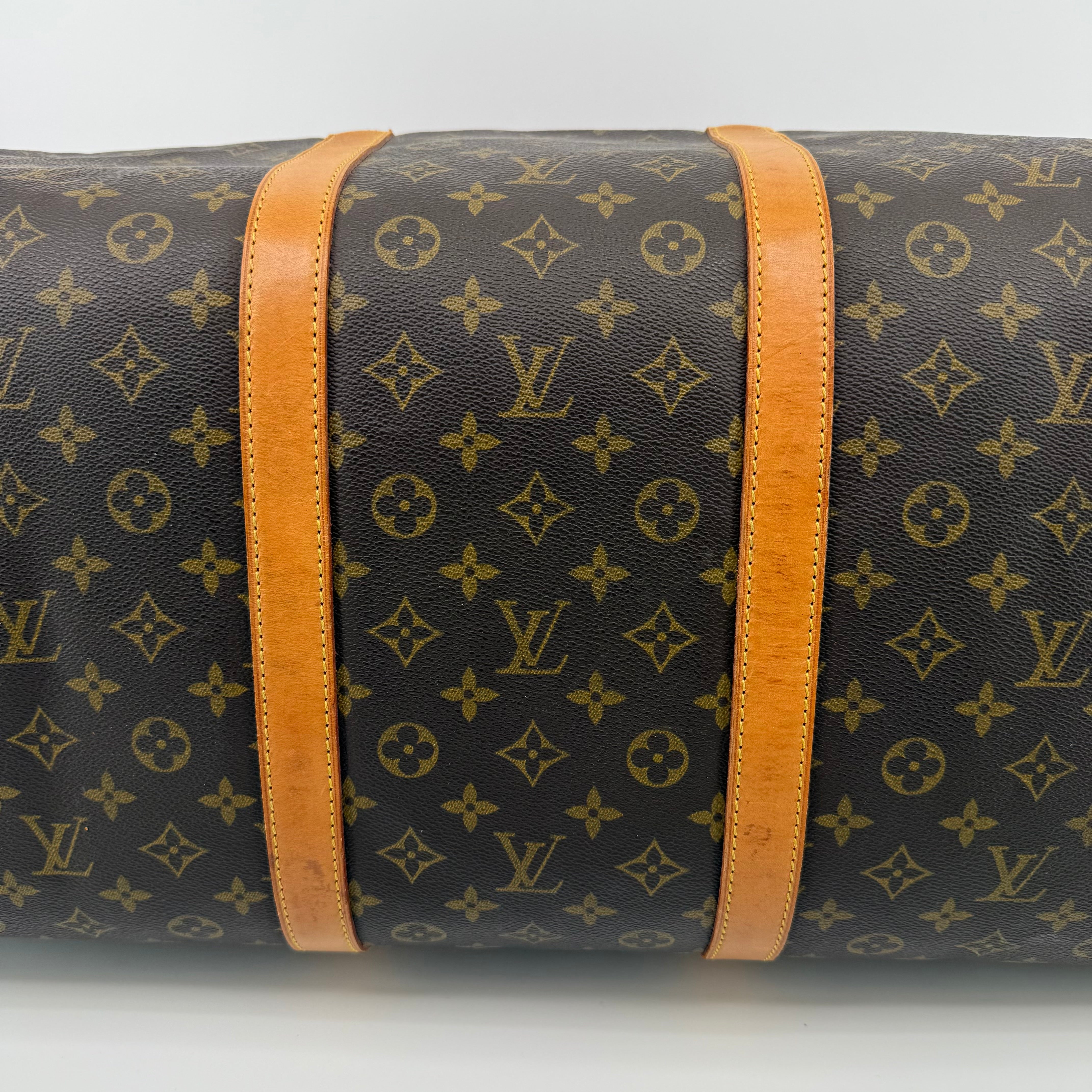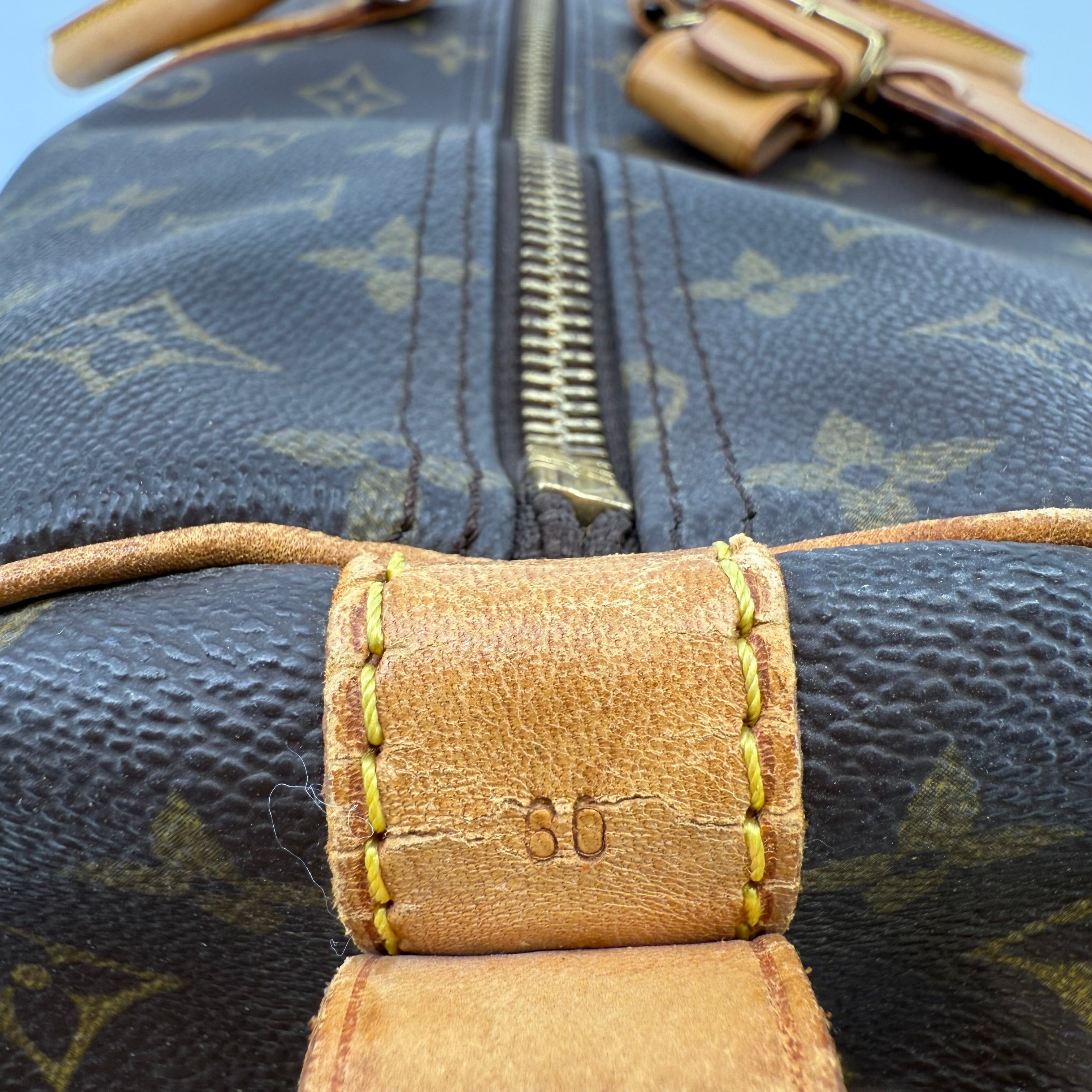 For the traveler who demands both elegance and practicality, the Louis Vuitton Keepall Bandoulière 60 is the ultimate statement piece. Constructed from Monogram coated canvas and vachetta leather trim with gold-tone hardware, it offers a spacious interior perfect for longer trips. The bag includes rolled leather handles, a detachable and adjustable shoulder strap, and signature Louis Vuitton detailing throughout — blending heritage craftsmanship with modern travel ease.