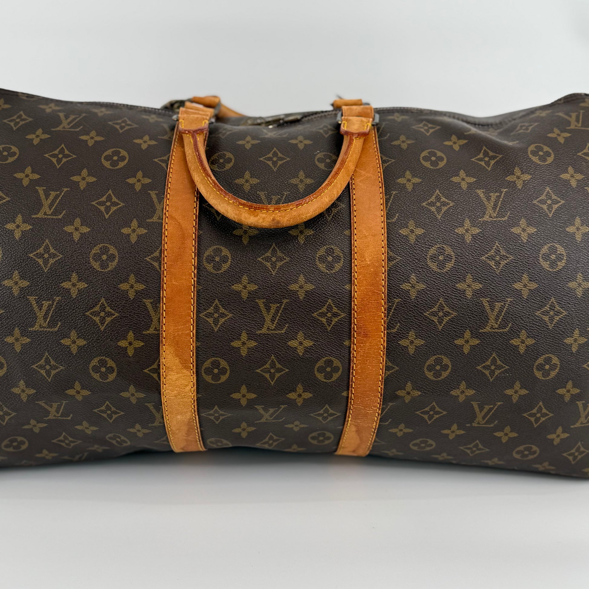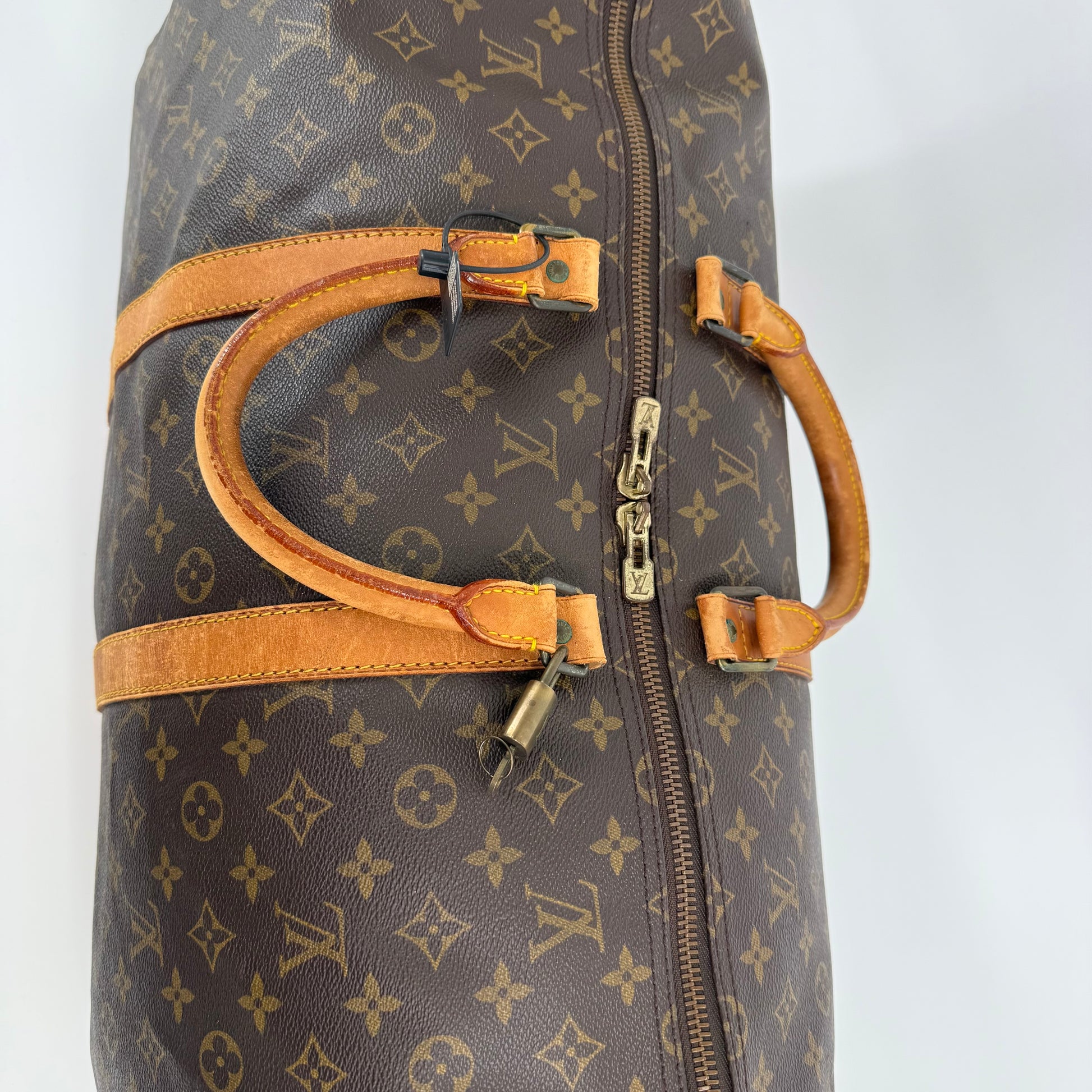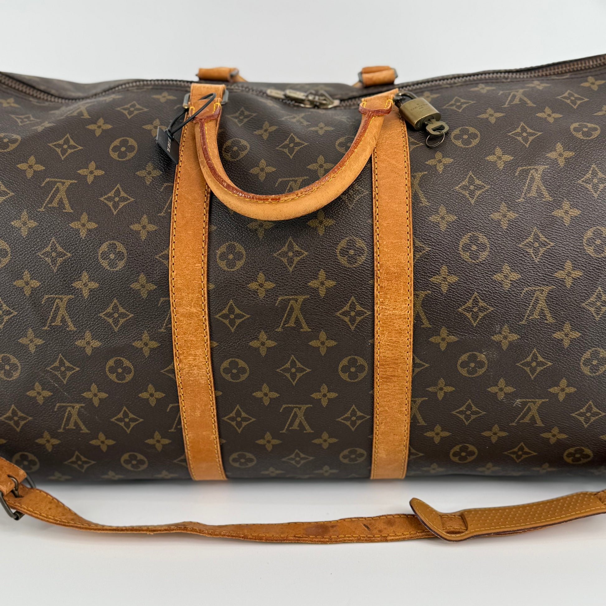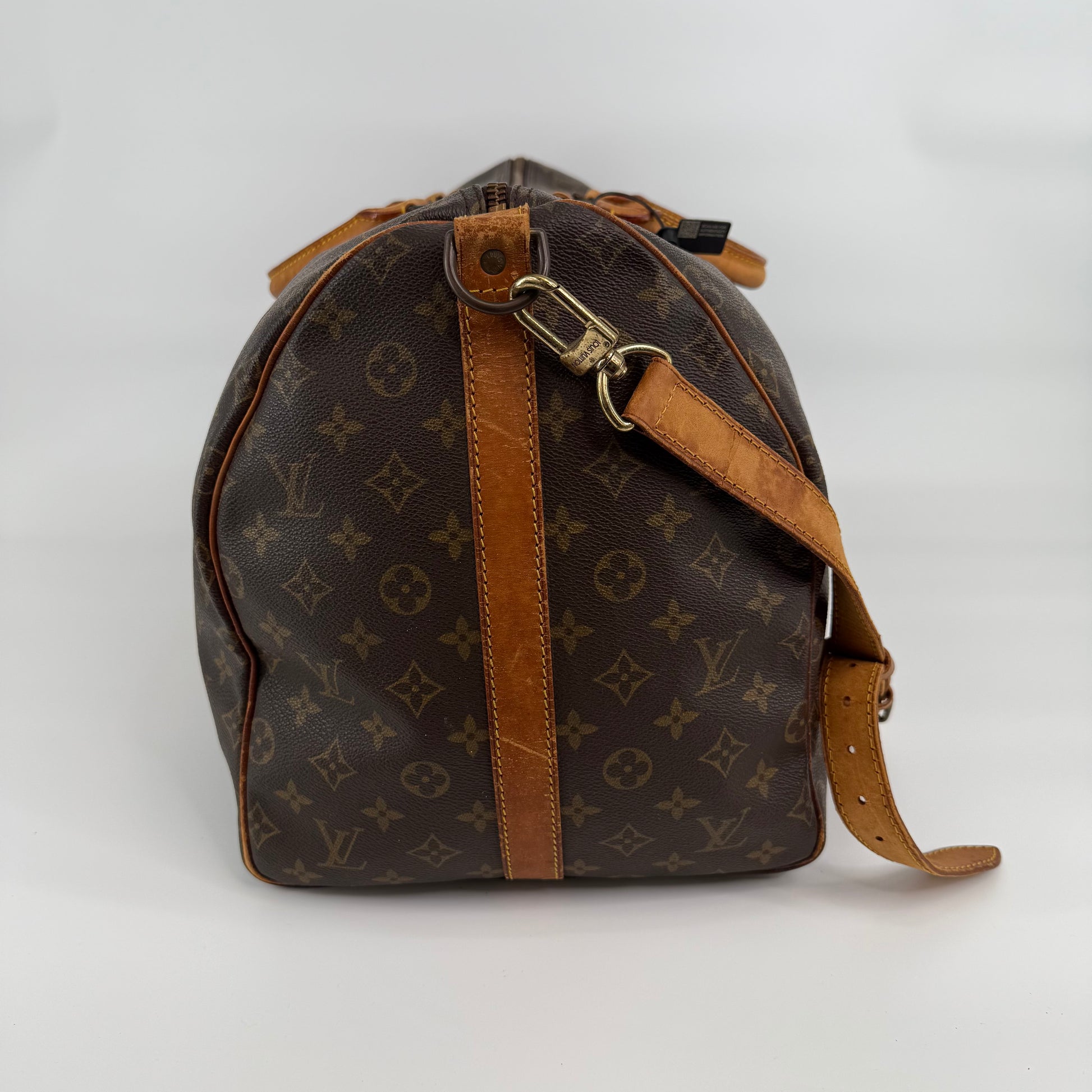 The Louis Vuitton Keepall Bandoulière 55 Monogram Canvas is a quintessential travel icon, representing both heritage and functionality. Crafted from the House’s durable Monogram coated canvas with natural Vachetta leather accents, this spacious duffel embodies effortless sophistication. The addition of the adjustable shoulder strap (“Bandoulière”) offers enhanced comfort and versatility, making it ideal for modern travel. With its generous capacity and classic design, the Keepall 55 remains a timeless companion for journeys both near and far — a true symbol of Louis Vuitton’s legacy of luxury travel.