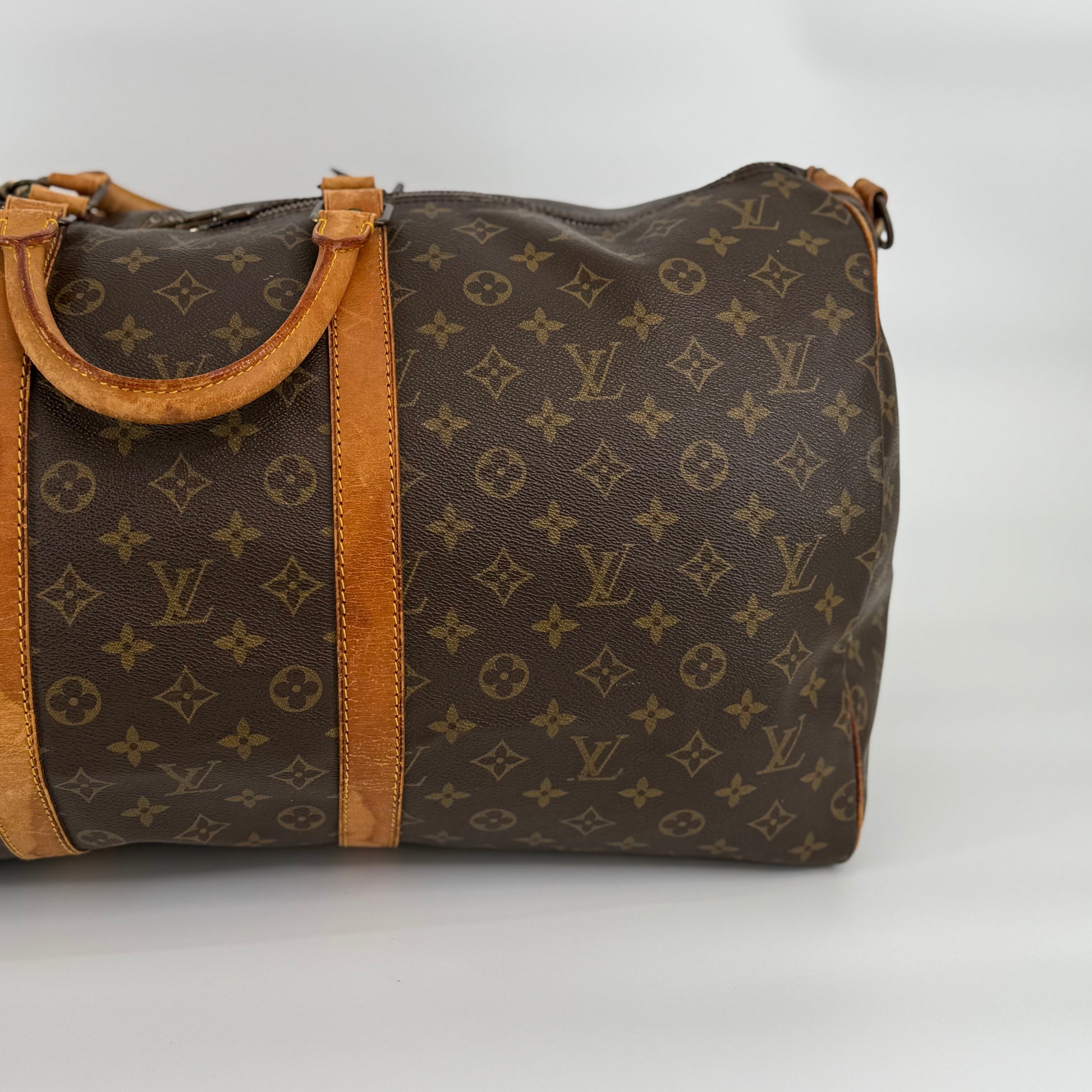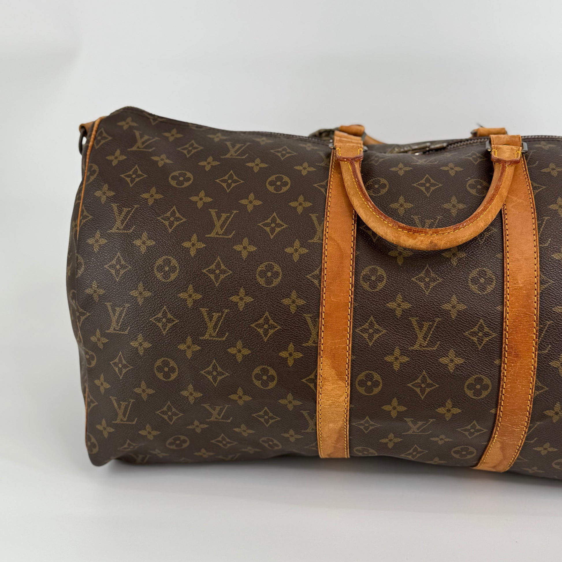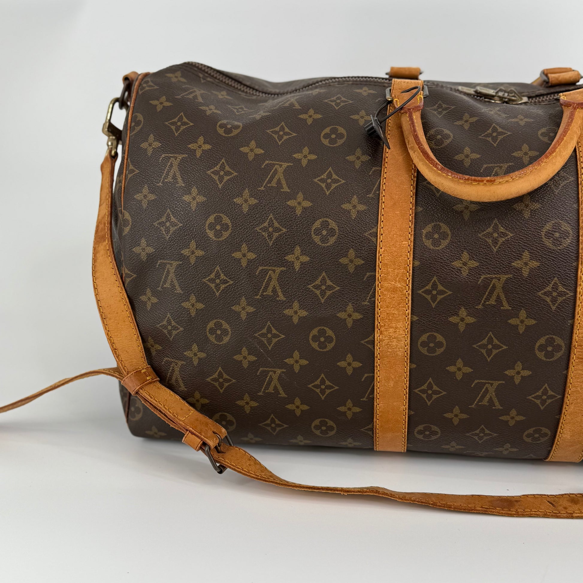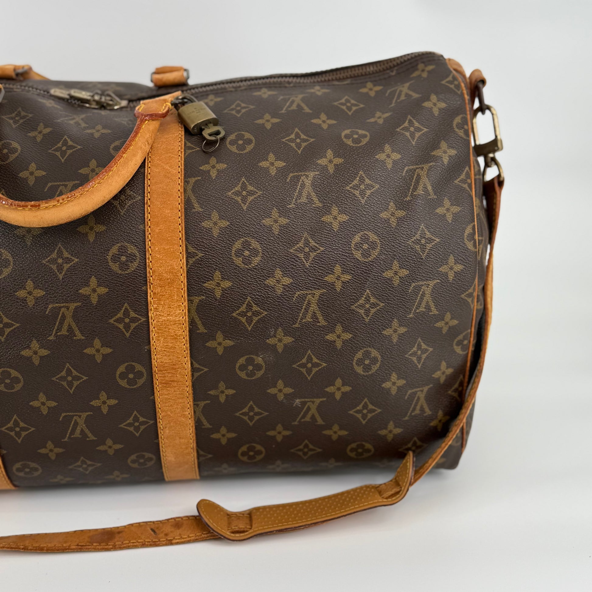 The Louis Vuitton Keepall Bandoulière 55 Monogram Canvas is a quintessential travel icon, representing both heritage and functionality. Crafted from the House’s durable Monogram coated canvas with natural Vachetta leather accents, this spacious duffel embodies effortless sophistication. The addition of the adjustable shoulder strap (“Bandoulière”) offers enhanced comfort and versatility, making it ideal for modern travel. With its generous capacity and classic design, the Keepall 55 remains a timeless companion for journeys both near and far — a true symbol of Louis Vuitton’s legacy of luxury travel.