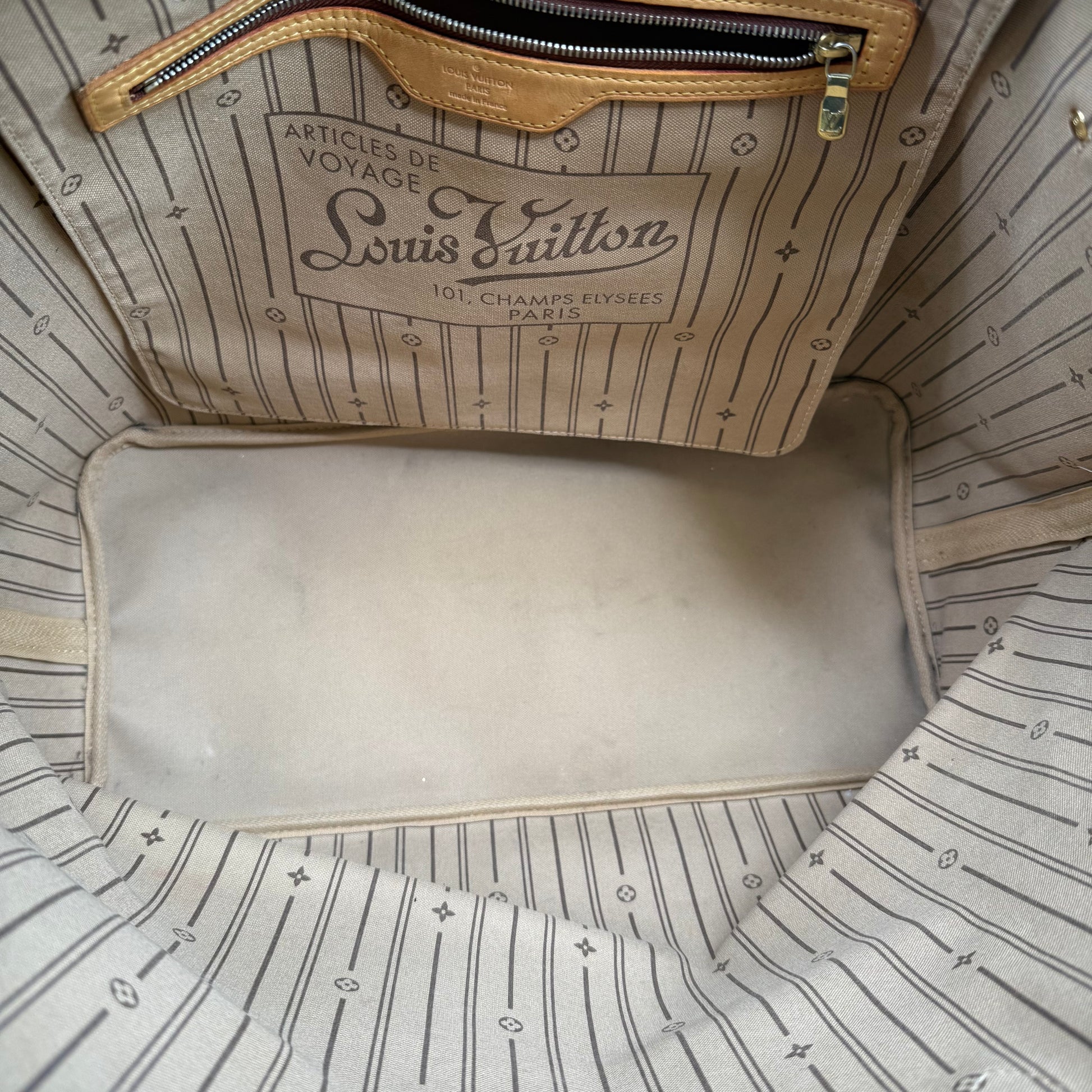 The Louis Vuitton Neverfull GM in Monogram canvas is the ultimate everyday tote — elegant, lightweight, and endlessly versatile. Crafted from the house’s signature coated canvas with natural cowhide leather trim, this spacious model combines style and practicality. Adjustable side laces allow for a sleeker silhouette, while the roomy interior easily accommodates your daily essentials, travel items, or work necessities. A timeless Louis Vuitton classic that lives up to its name — never full.