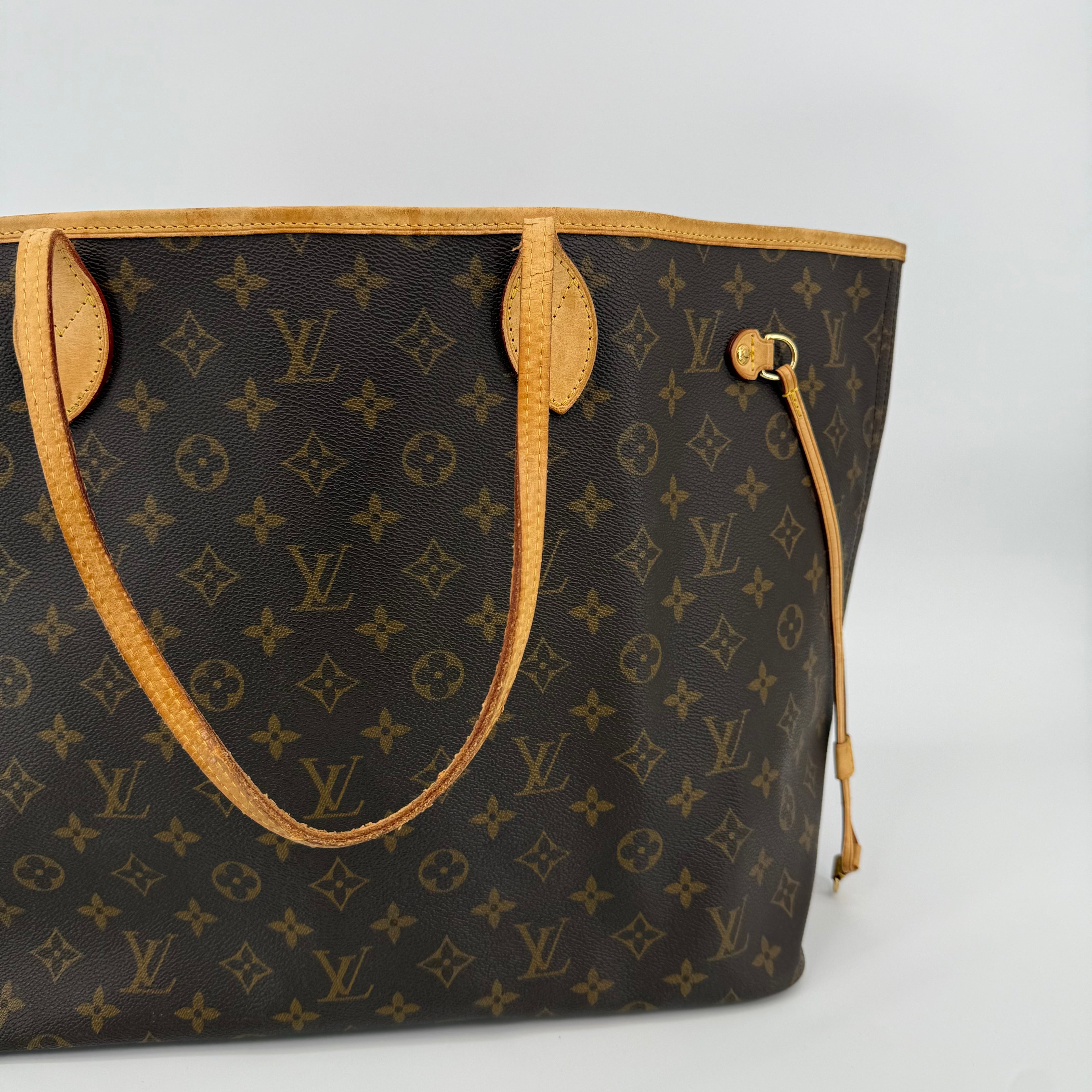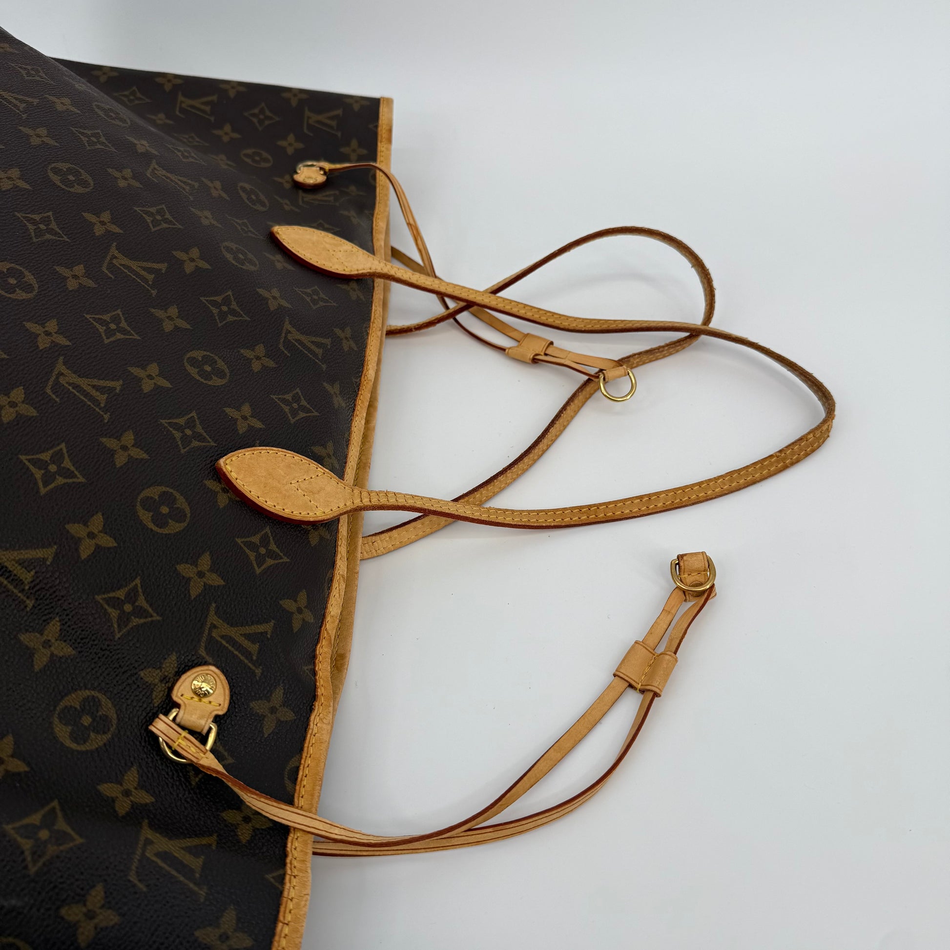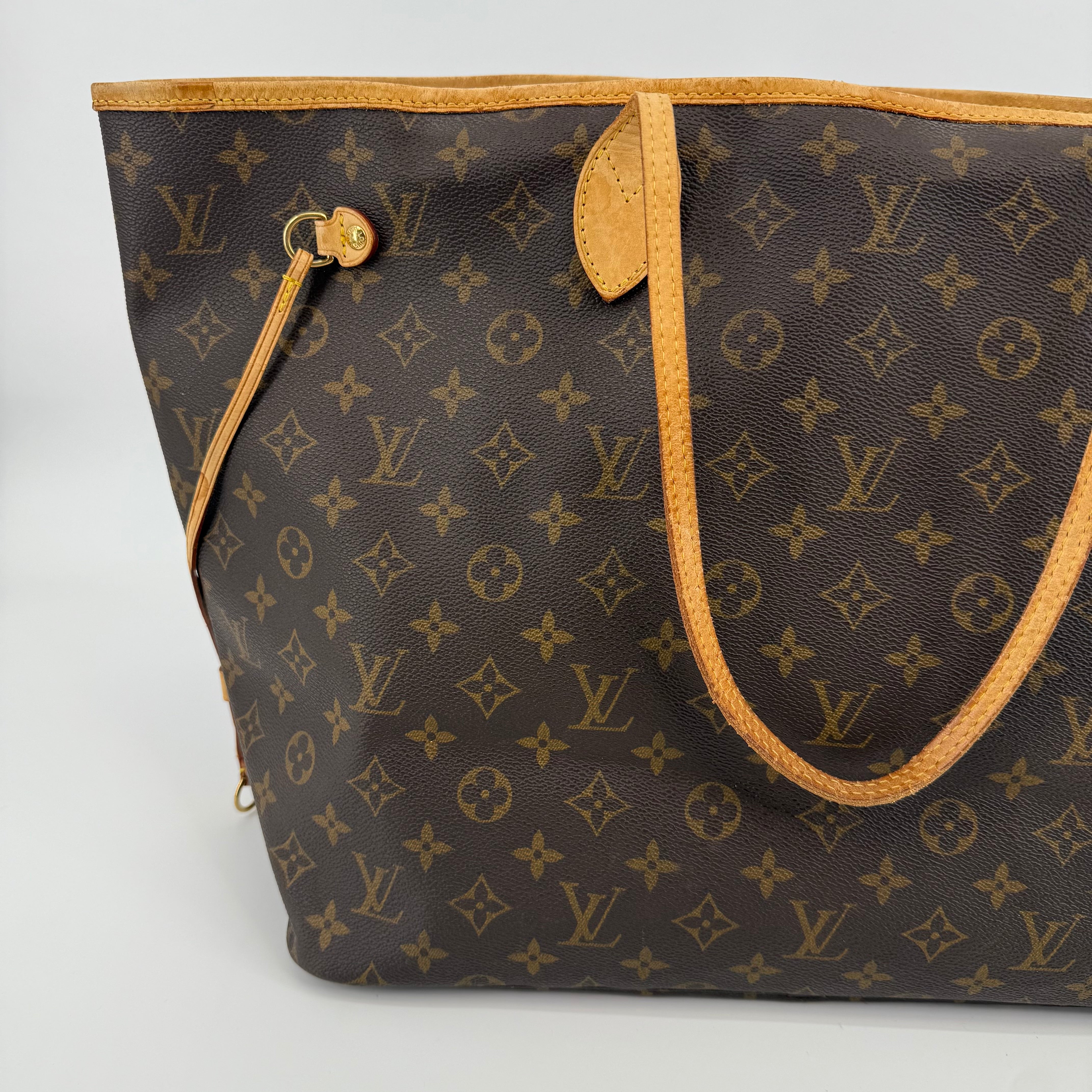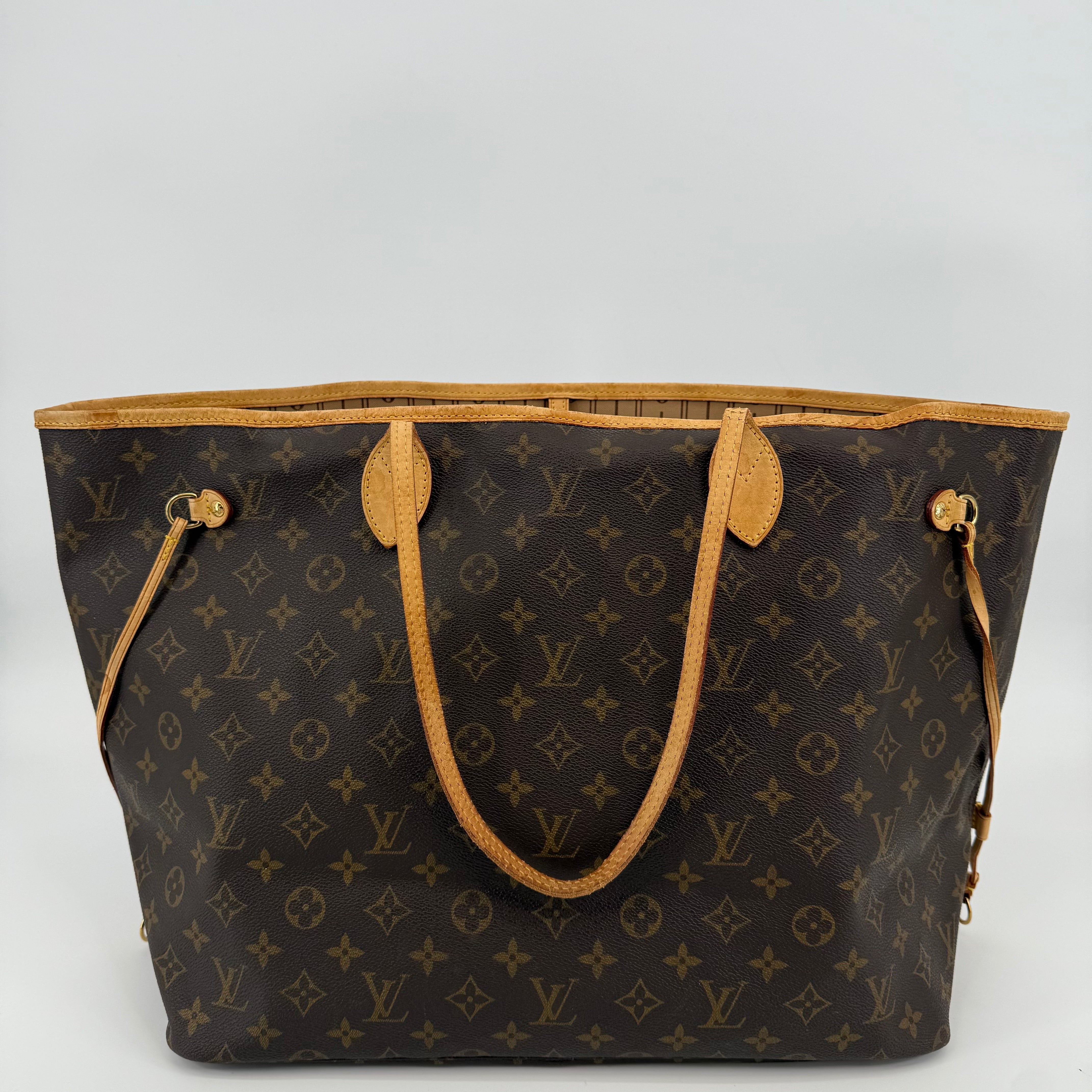 The Louis Vuitton Monogram Neverfull GM is the largest size in the iconic Neverfull lineup—perfect for travel, work, or everyday carry. Crafted from the signature LV monogram coated canvas with natural leather trim, this spacious tote features side drawstrings that allow you to adjust the shape and capacity. The wide shoulder straps offer comfortable wear, and the open-top design provides easy access to your belongings. A timeless and versatile luxury staple.