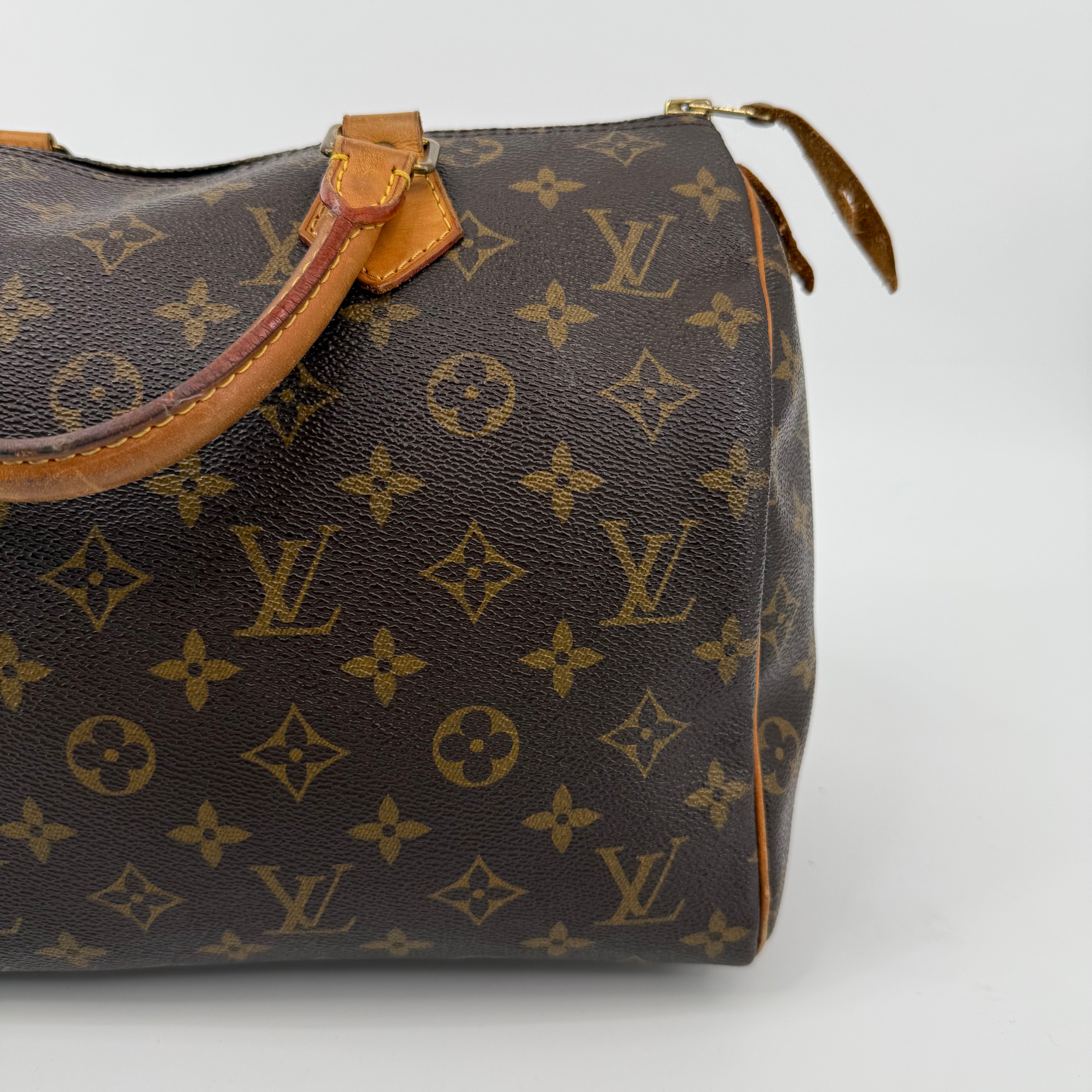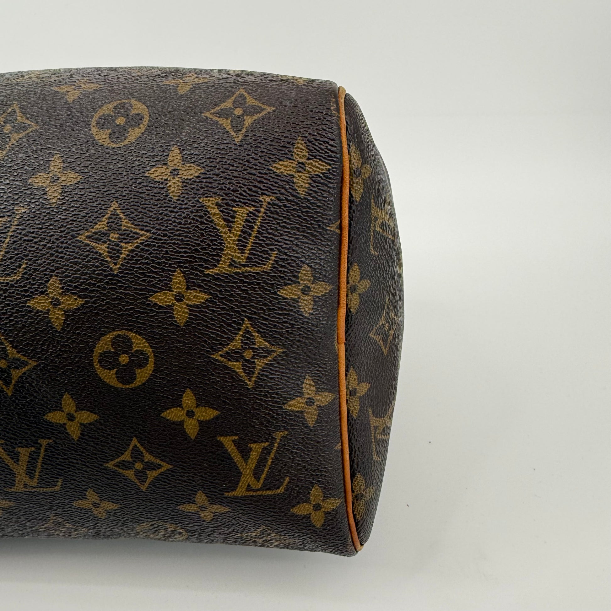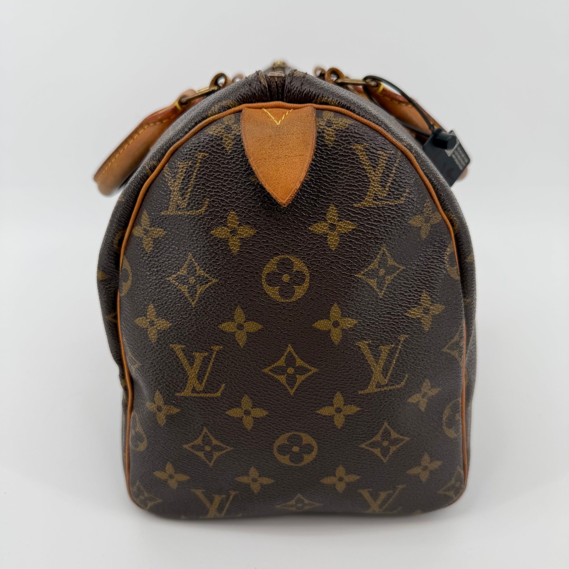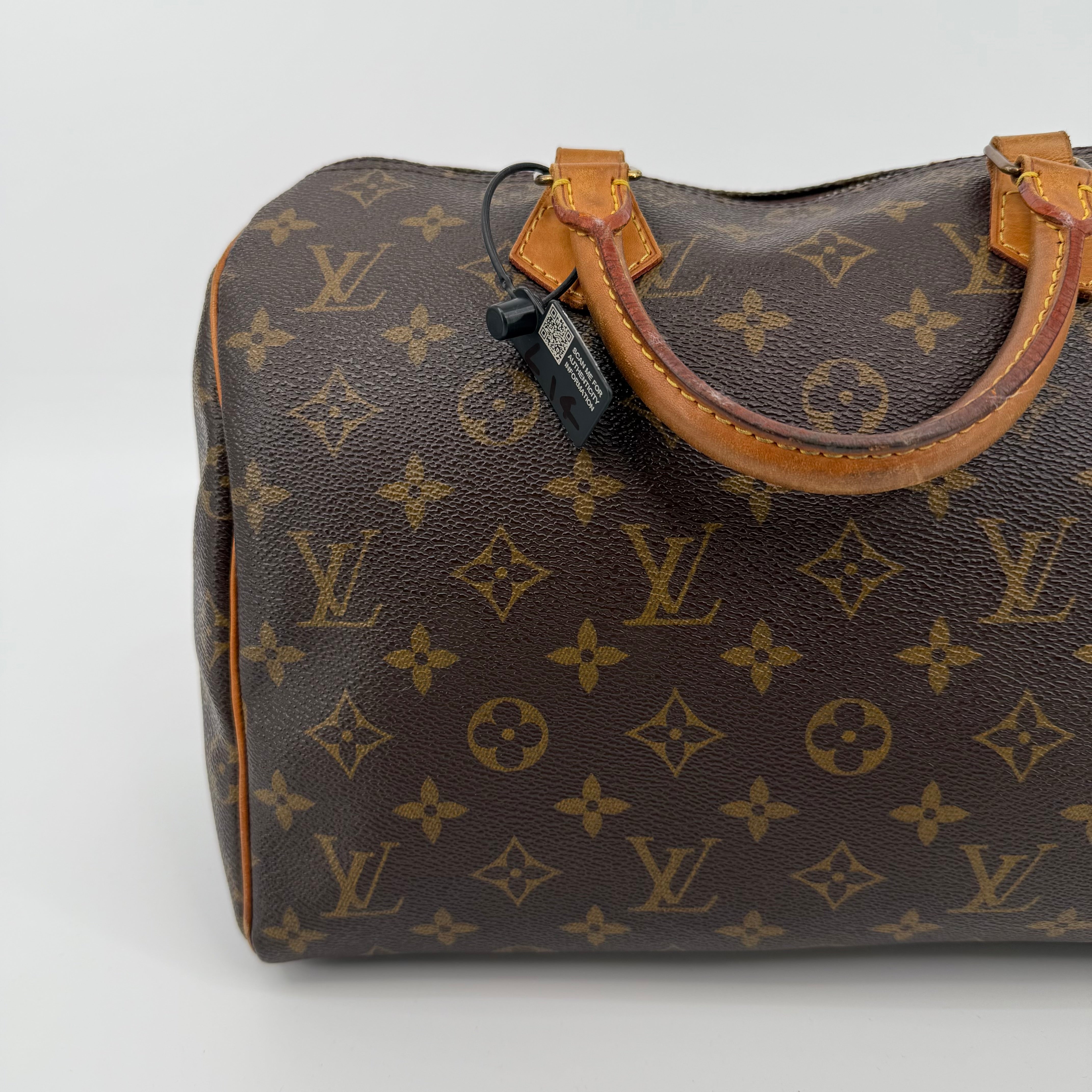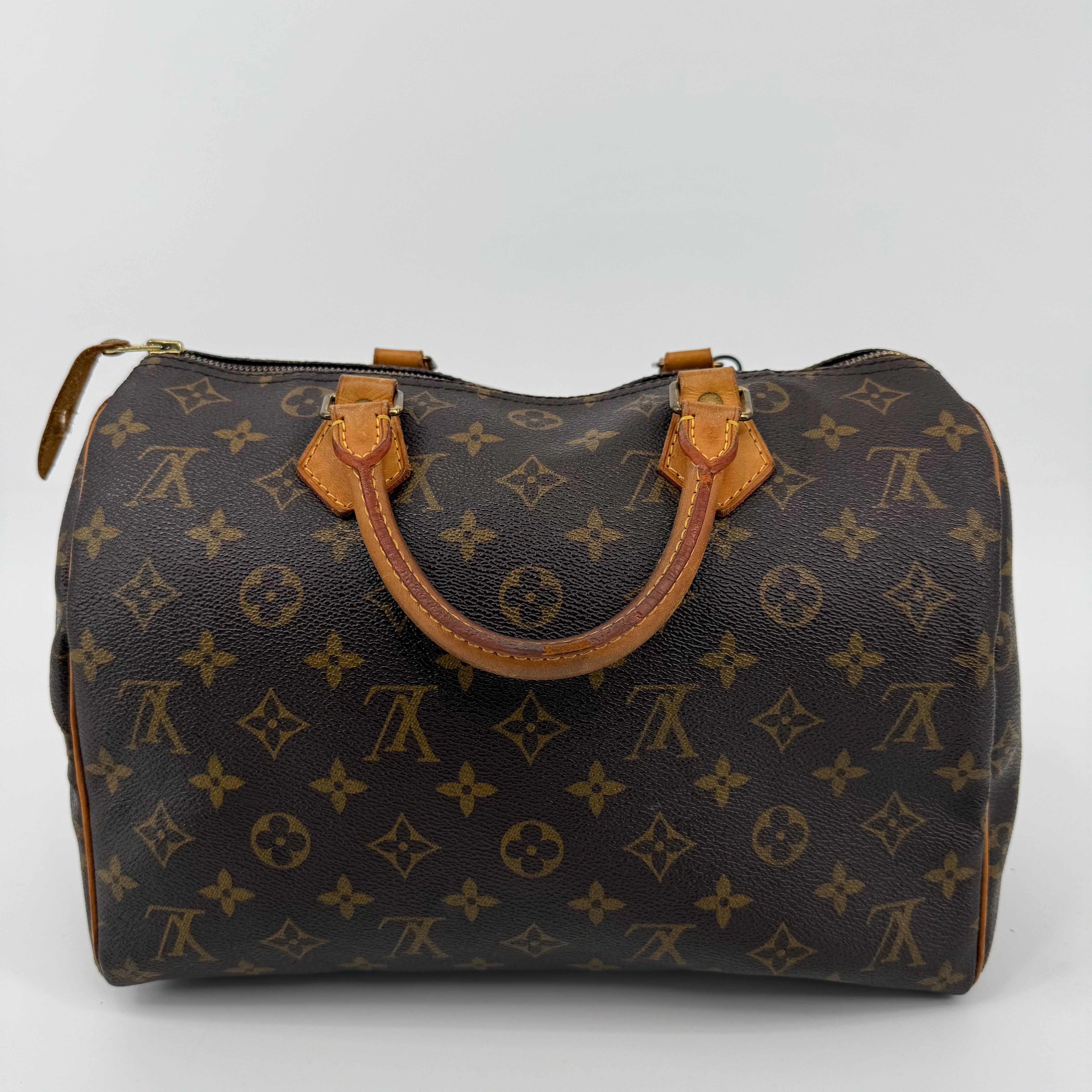 The Louis Vuitton Speedy 30 Monogram Canvas is an enduring icon of the Maison, first designed in the 1930s as a compact version of the Keepall travel bag. Crafted from the signature Monogram coated canvas with natural Vachetta leather handles and trim, it represents effortless Parisian elegance. The structured yet supple silhouette, gold-tone hardware, and secure zip closure make it a timeless everyday companion. A true heritage piece, the Speedy 30 captures the essence of Louis Vuitton’s craftsmanship and travel-inspired spirit.