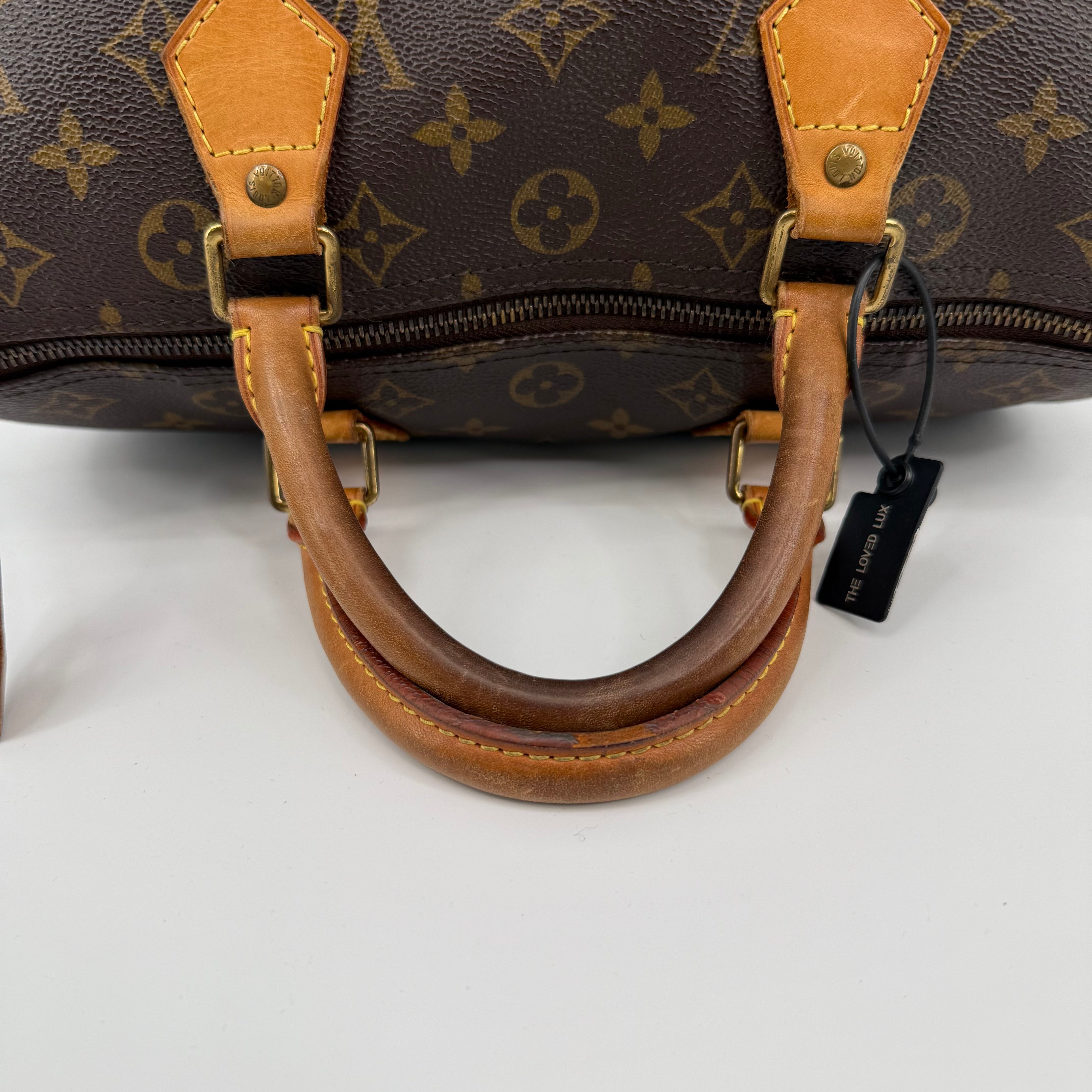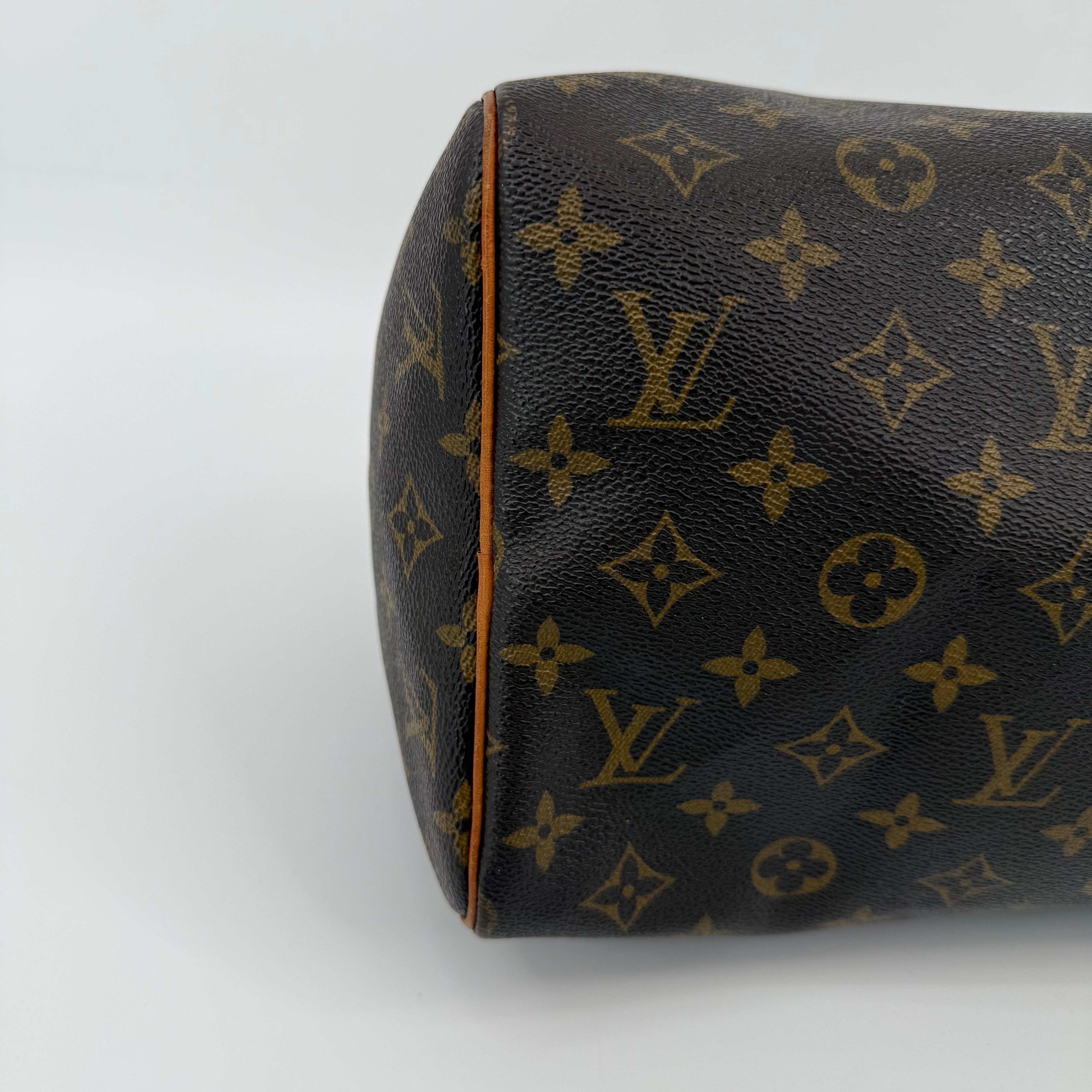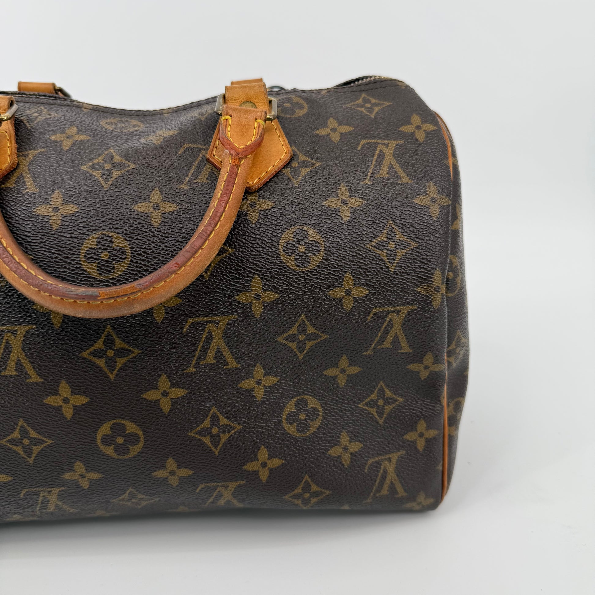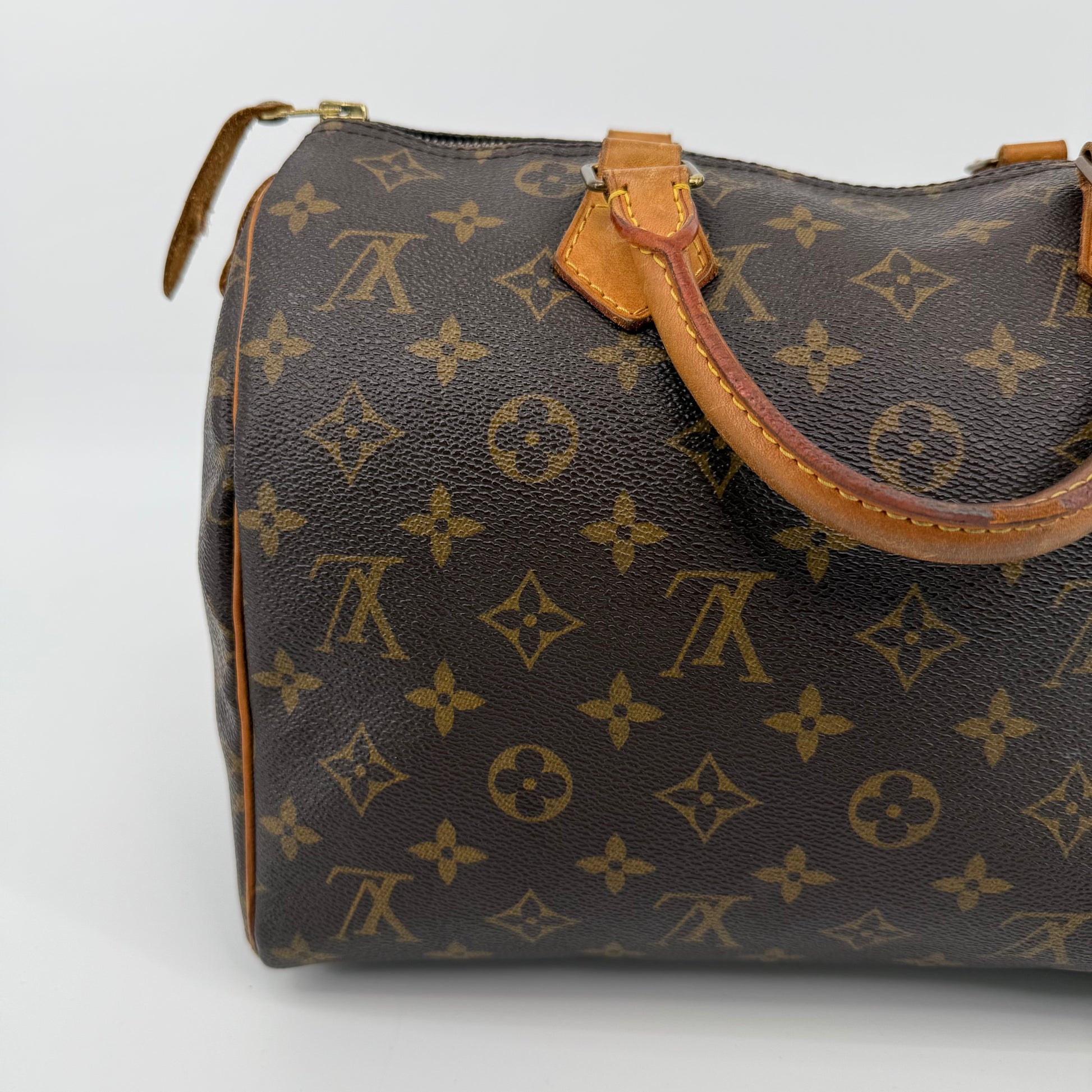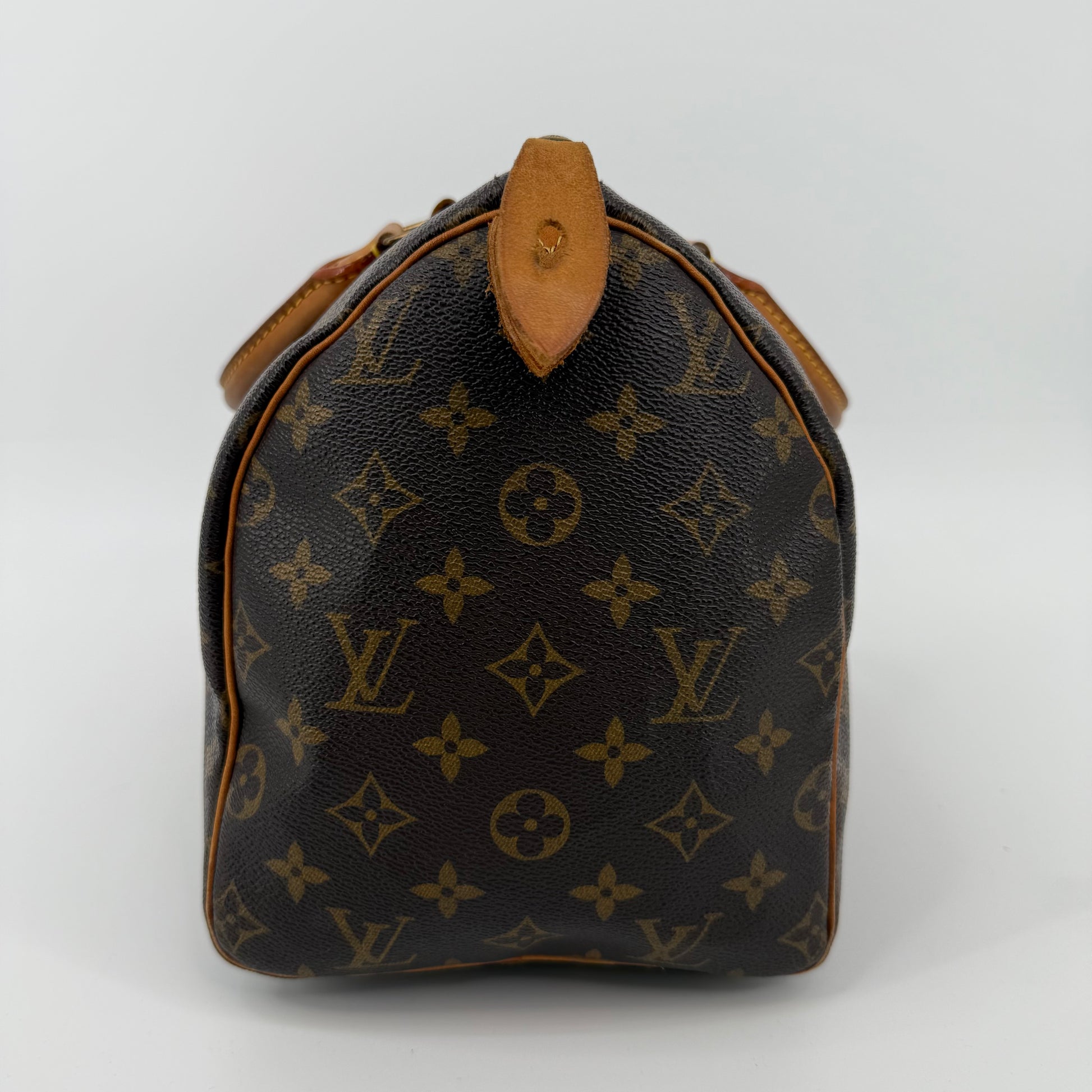 The Louis Vuitton Speedy 30 Monogram Canvas is an enduring icon of the Maison, first designed in the 1930s as a compact version of the Keepall travel bag. Crafted from the signature Monogram coated canvas with natural Vachetta leather handles and trim, it represents effortless Parisian elegance. The structured yet supple silhouette, gold-tone hardware, and secure zip closure make it a timeless everyday companion. A true heritage piece, the Speedy 30 captures the essence of Louis Vuitton’s craftsmanship and travel-inspired spirit.
