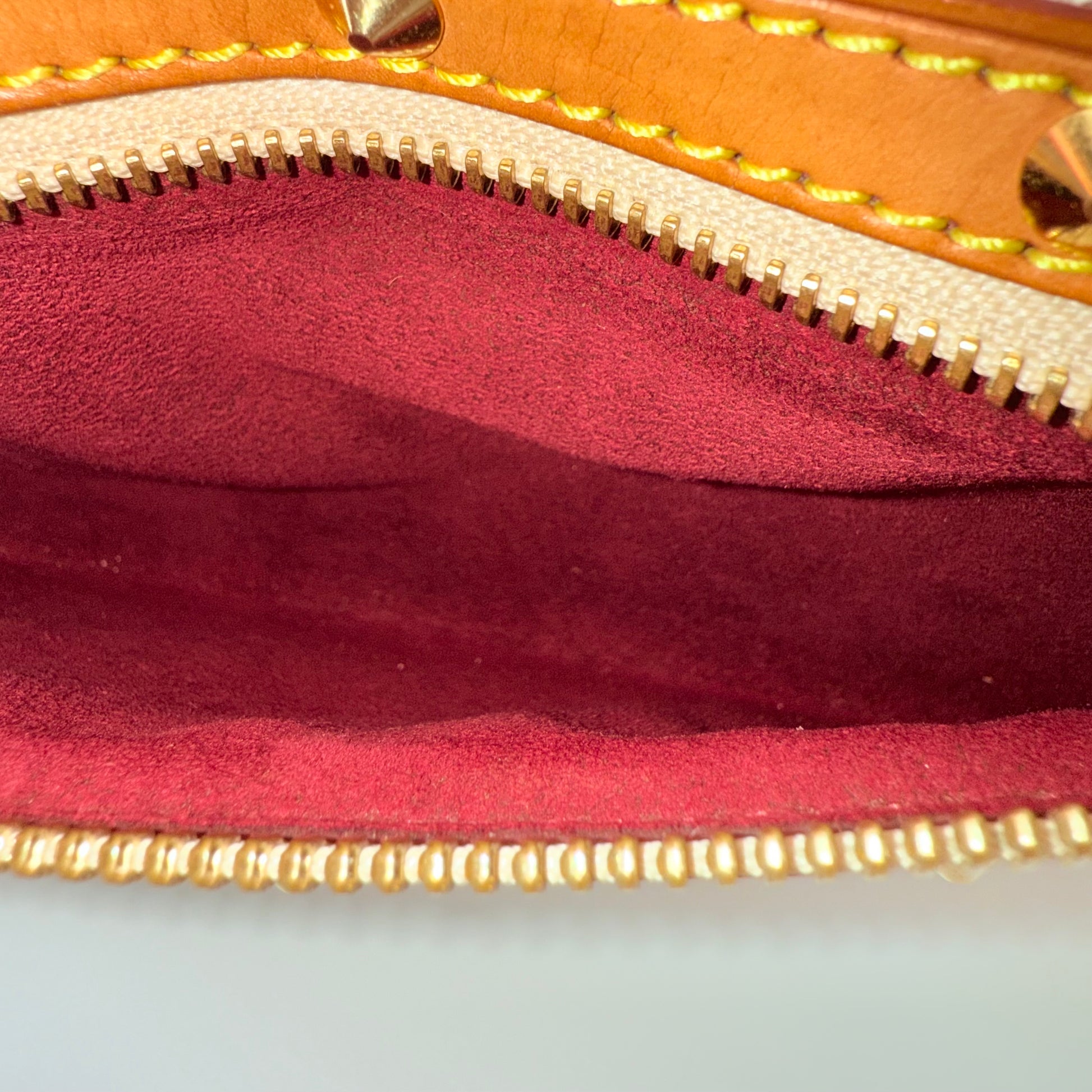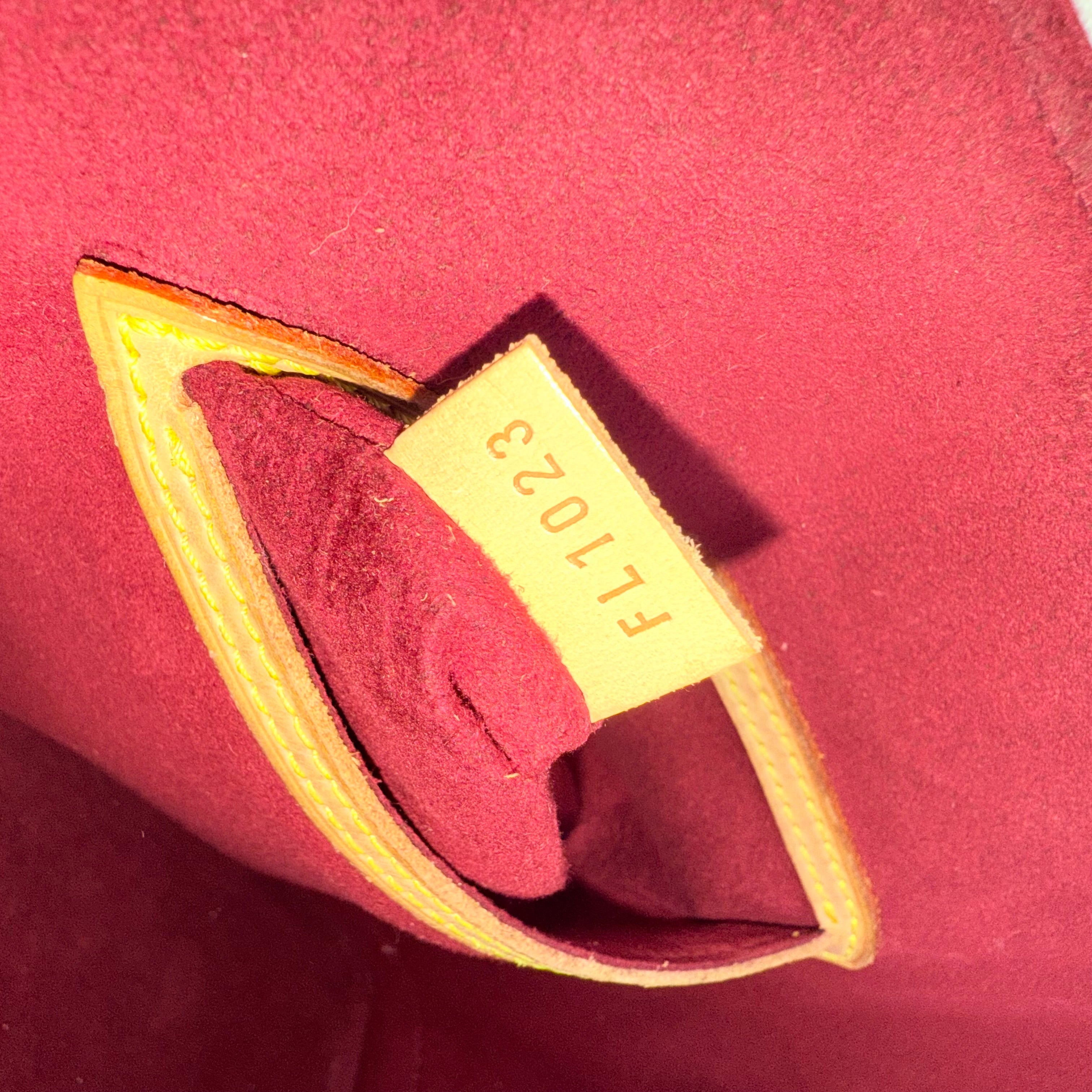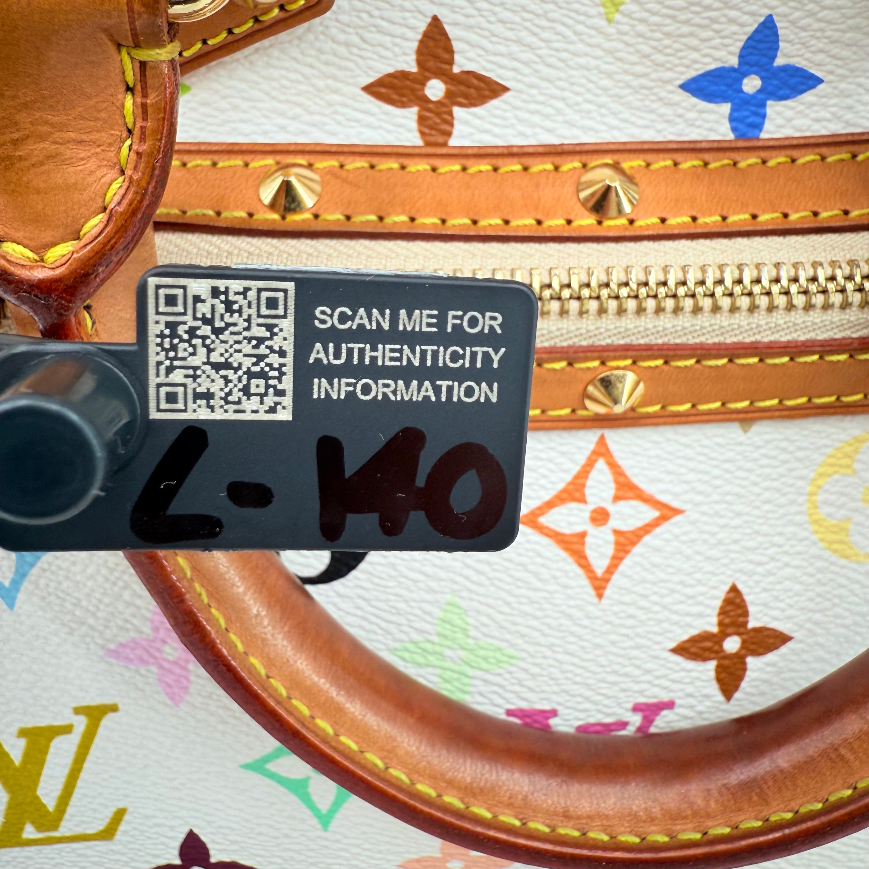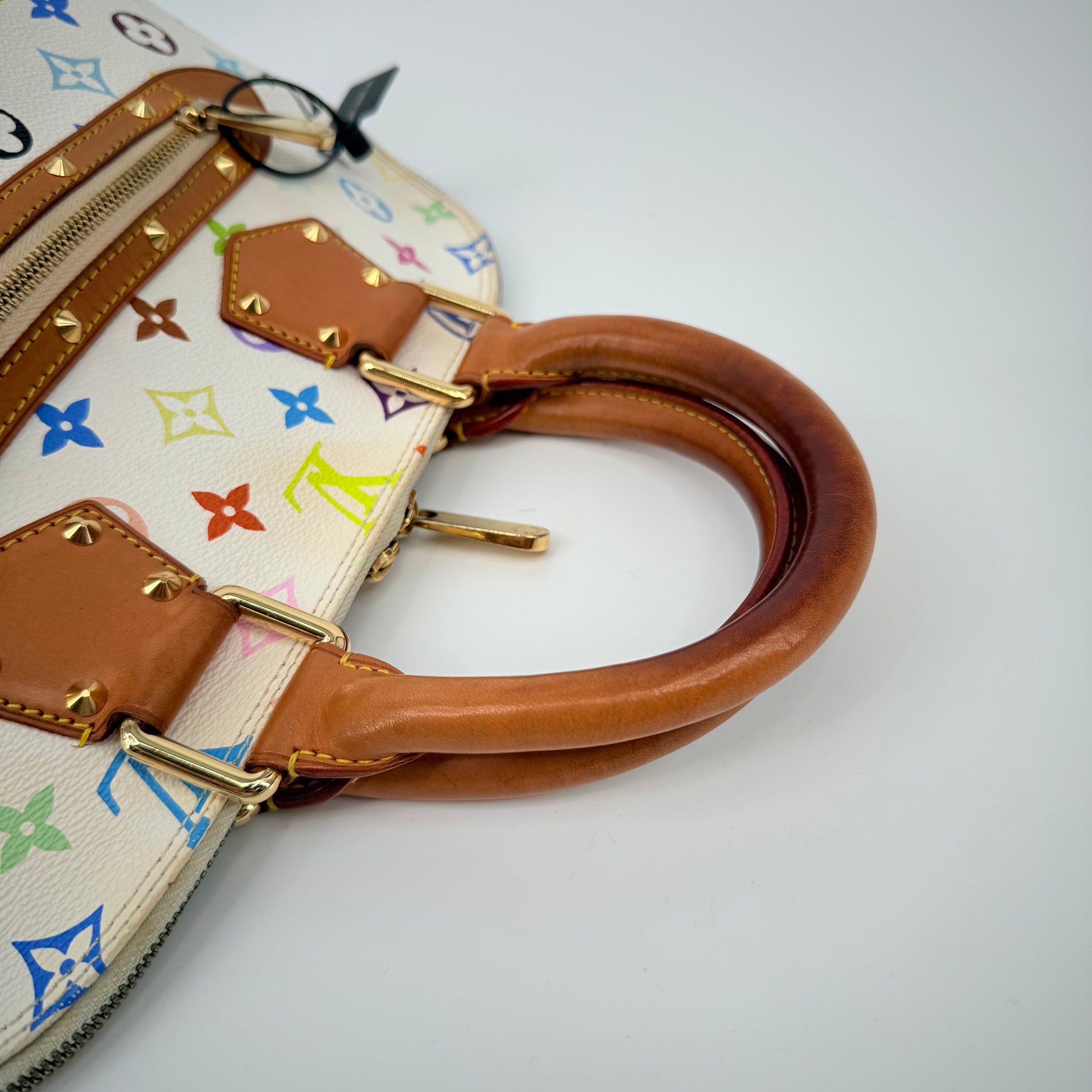 The Louis Vuitton Alma Multicolore in Blanc, from the celebrated Takashi Murakami collaboration, is a vibrant expression of artistry and luxury. Crafted from white monogram canvas adorned with Murakami’s iconic rainbow motif, it’s beautifully contrasted with natural vachetta leather and gold-tone stud detailing. This statement piece blends playful creativity with timeless Louis Vuitton craftsmanship — a collector’s favourite that perfectly embodies the spirit of early 200