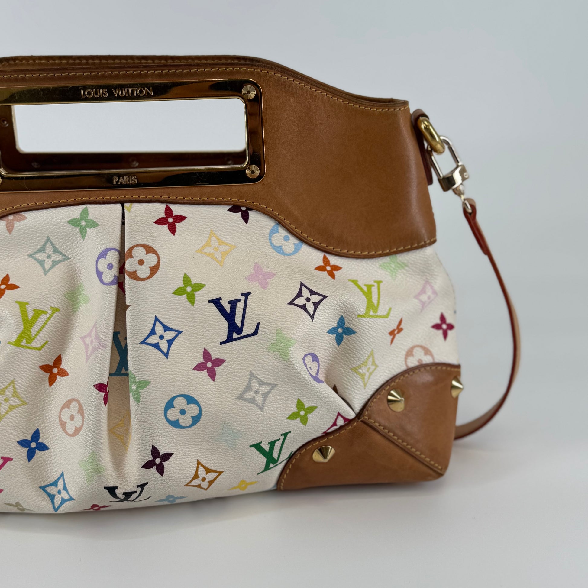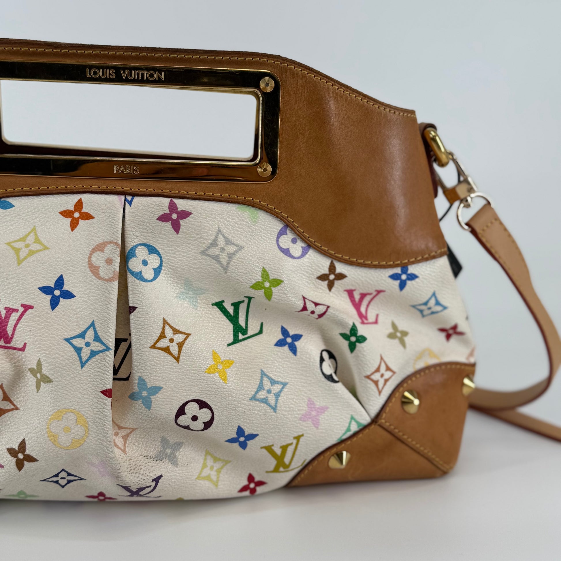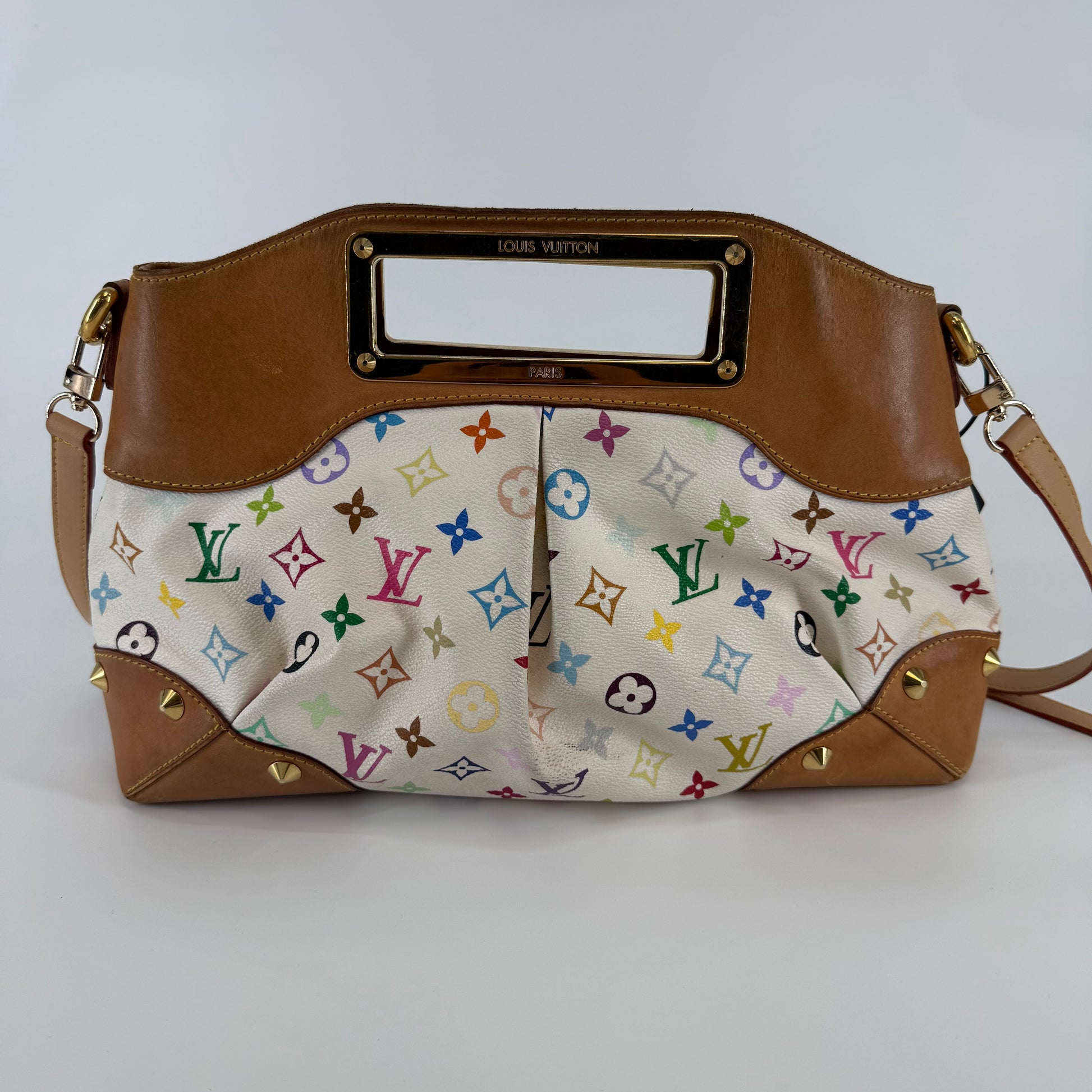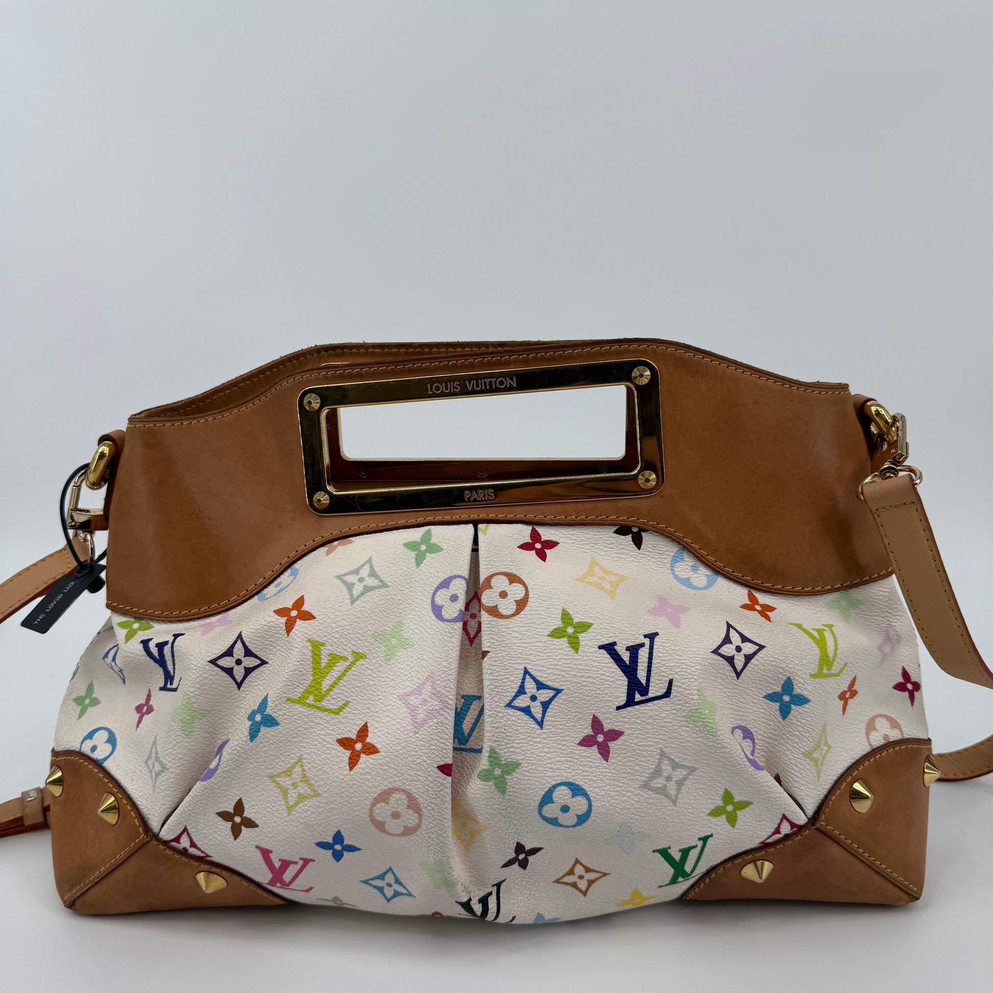 The Louis Vuitton Takashi Murakami Judy Handbag is a standout collaboration between Louis Vuitton and the celebrated Japanese artist Takashi Murakami. Adorned with the iconic Multicolore Monogram canvas, this design blends artistic whimsy with timeless luxury. The structured gold-tone frame and supple leather trim add polish to its playful aesthetic — a vibrant collector’s piece that captures the bold, creative spirit of early-2000s Louis Vuitton.