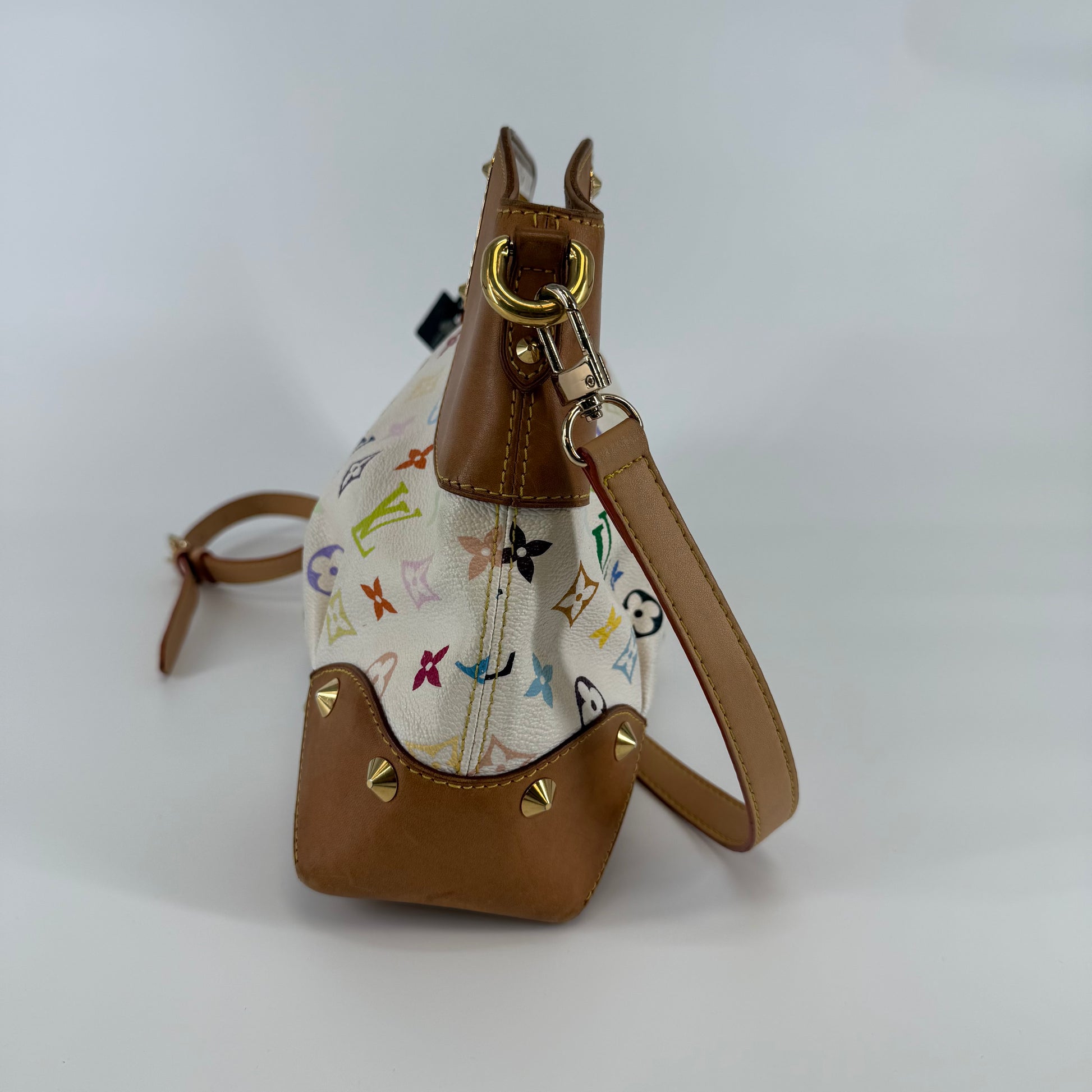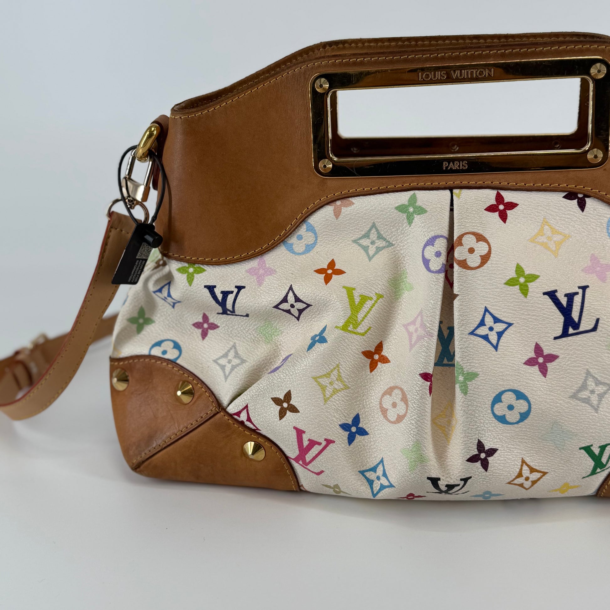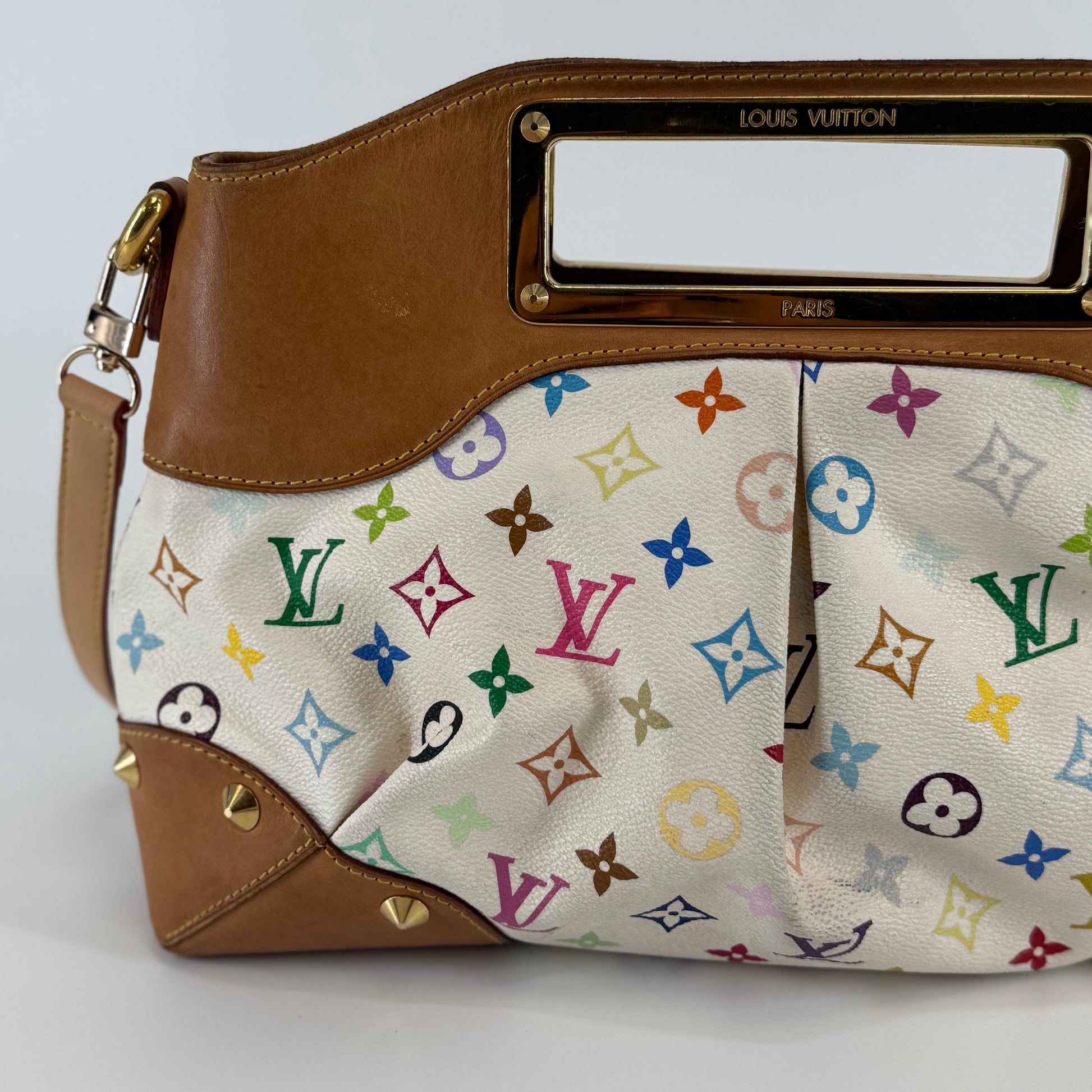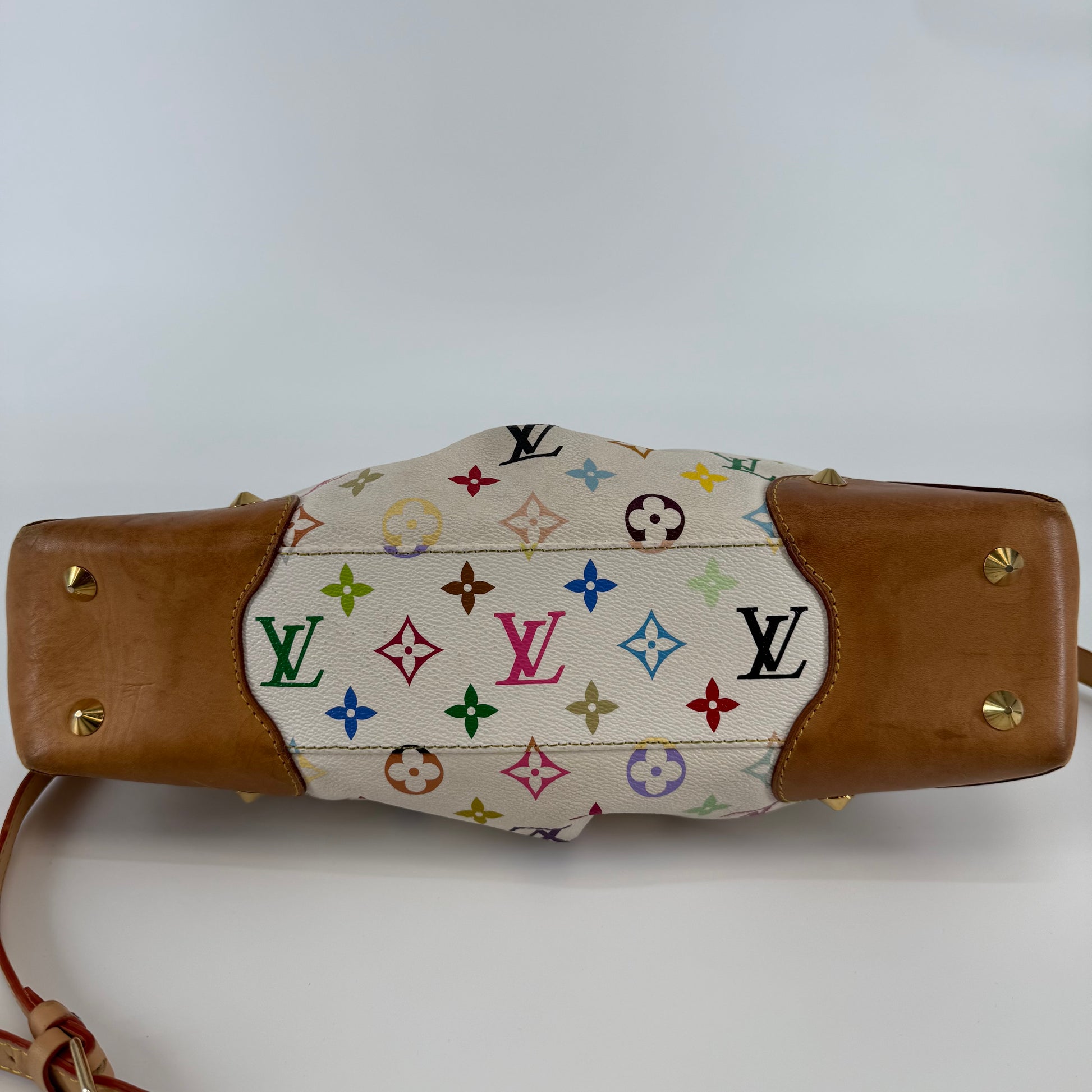 The Louis Vuitton Takashi Murakami Judy Handbag is a standout collaboration between Louis Vuitton and the celebrated Japanese artist Takashi Murakami. Adorned with the iconic Multicolore Monogram canvas, this design blends artistic whimsy with timeless luxury. The structured gold-tone frame and supple leather trim add polish to its playful aesthetic — a vibrant collector’s piece that captures the bold, creative spirit of early-2000s Louis Vuitton.