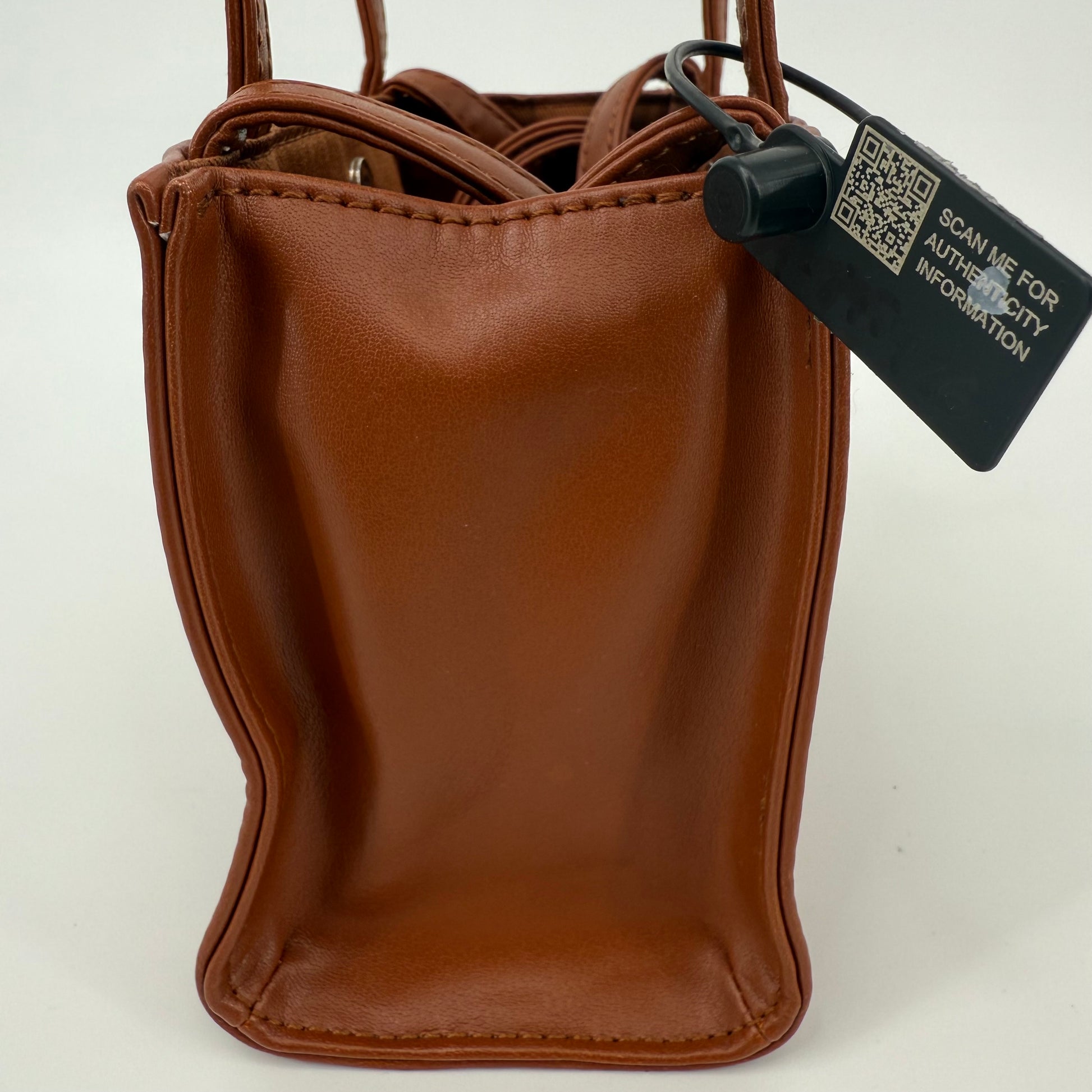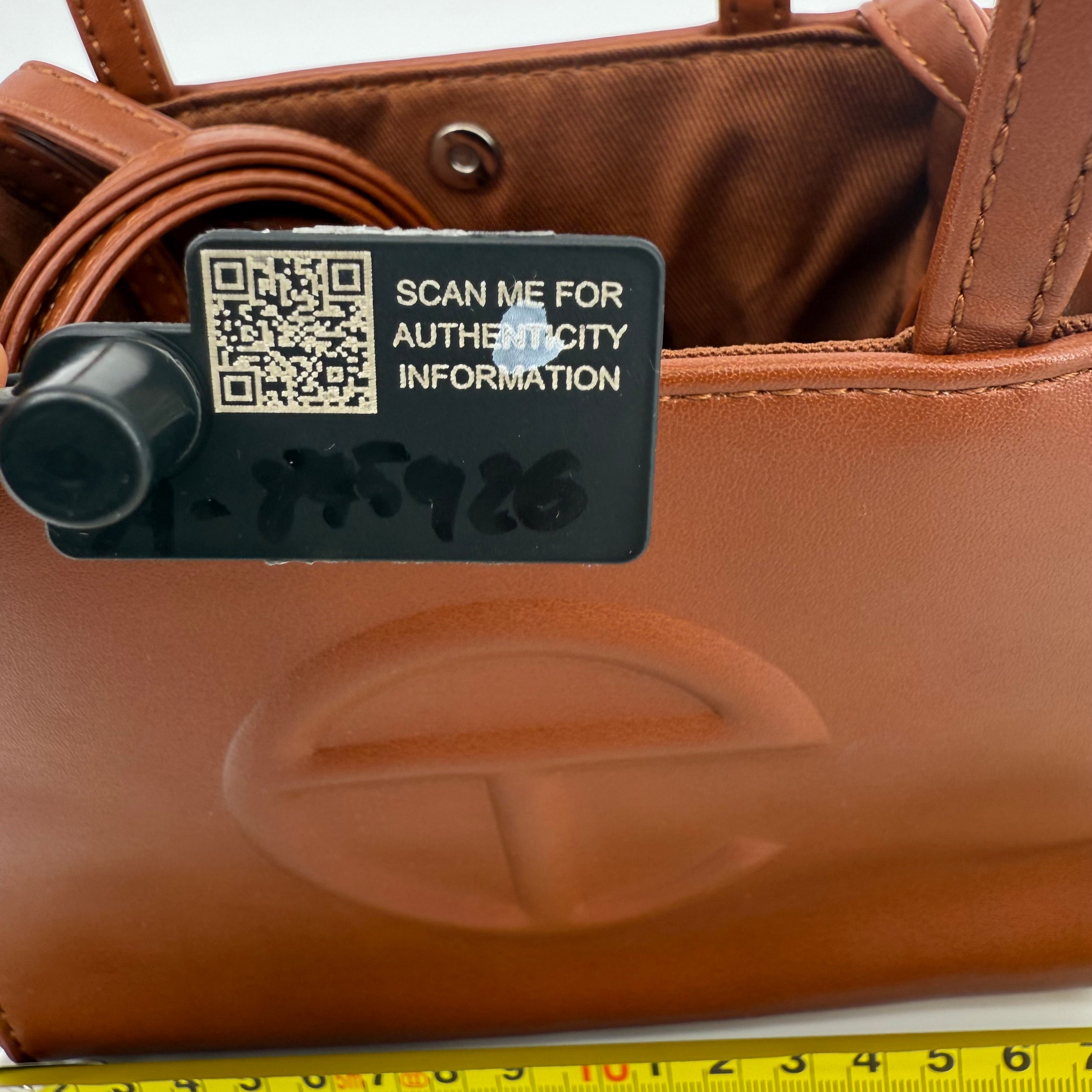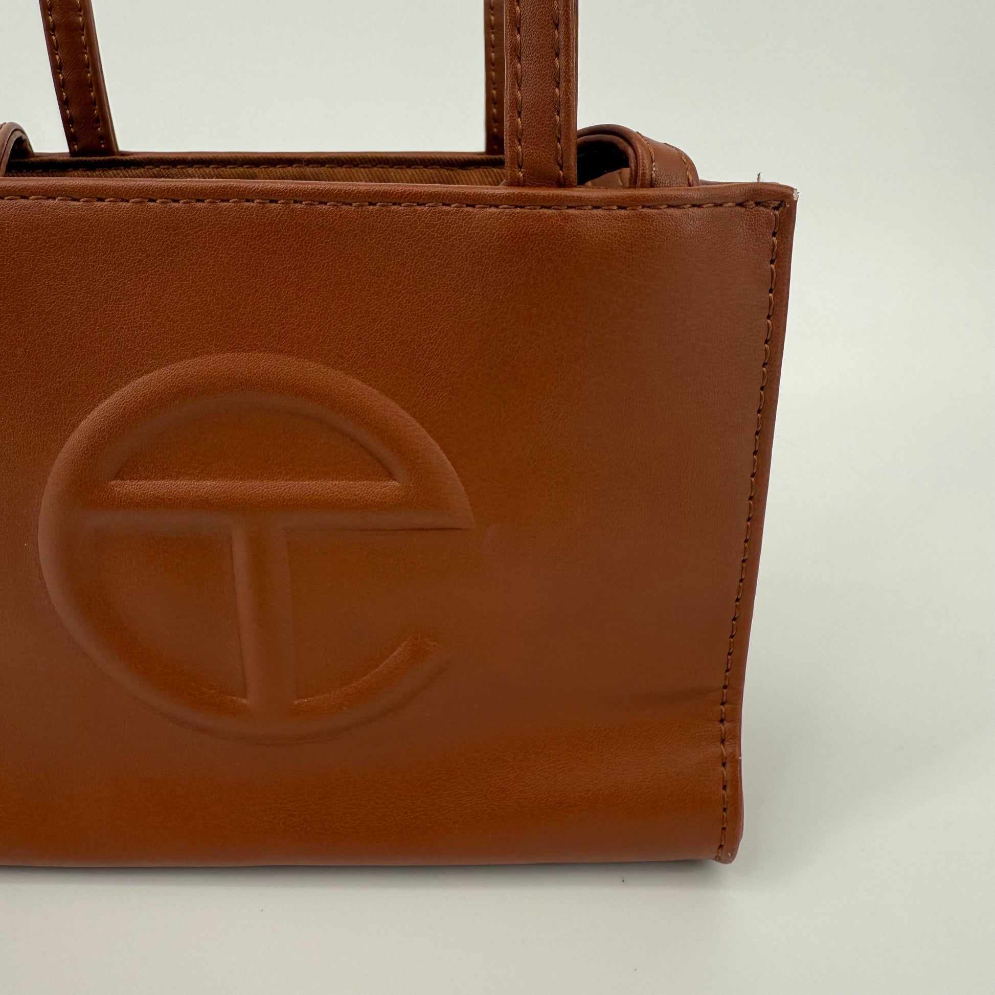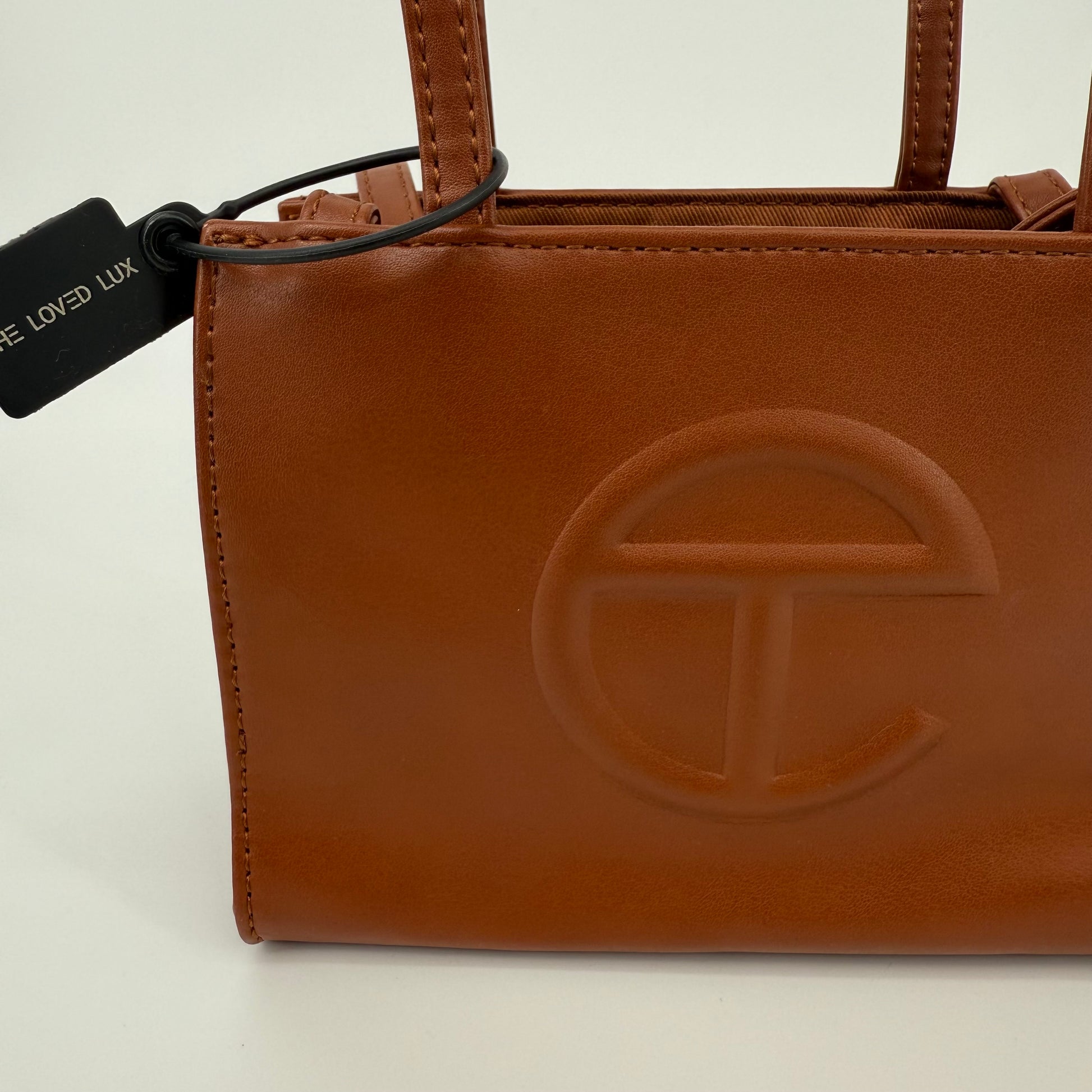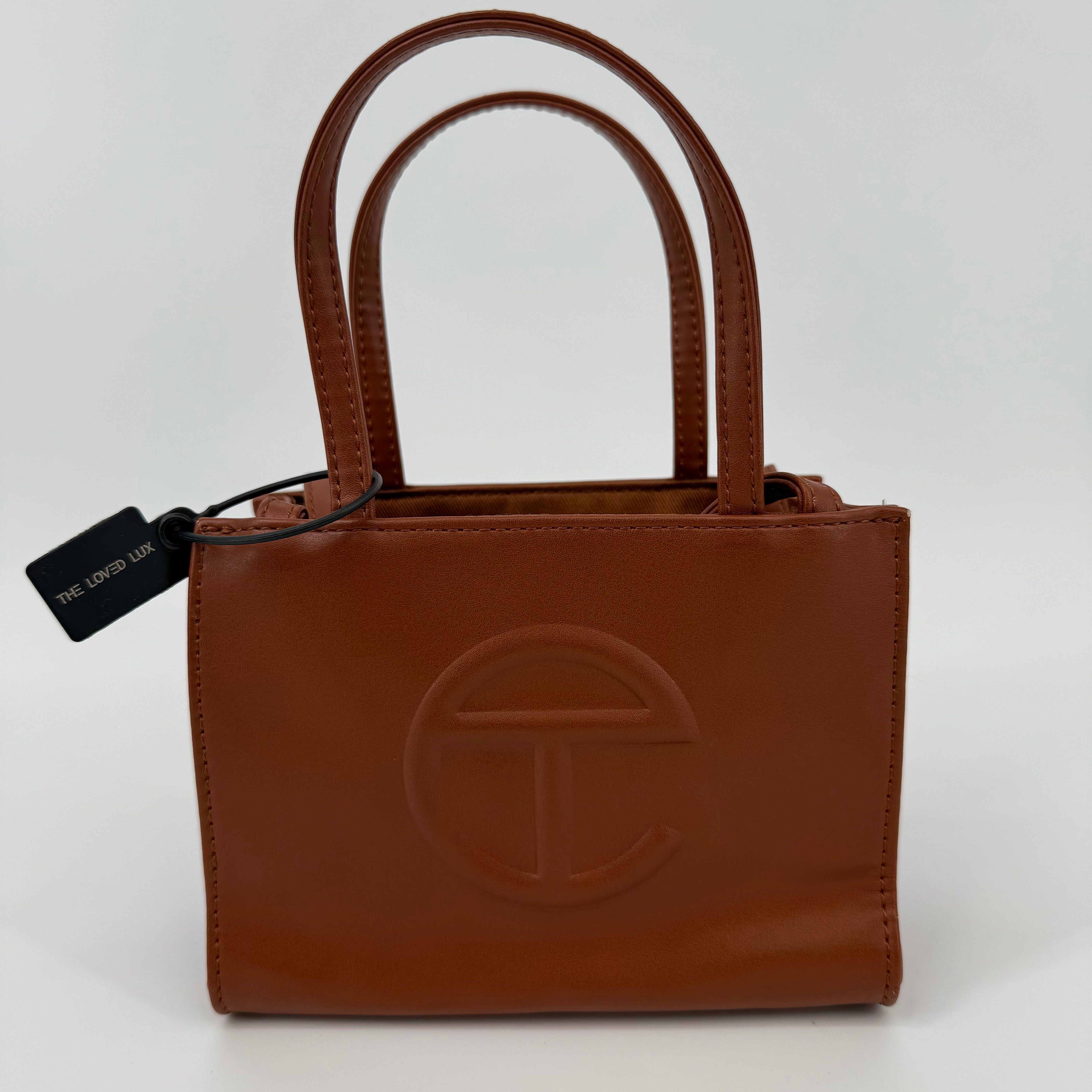 The Telfar Small Shopping Bag in Cognac is a modern classic that redefines accessible luxury. Crafted from smooth vegan leather in a rich cognac tone, it features the signature embossed “T” logo and dual top handles with a removable crossbody strap for versatile wear. Compact yet functional, this cult-favorite “Bushwick Birkin” is the perfect blend of style, practicality, and cultural relevance — a true statement of contemporary fashion.