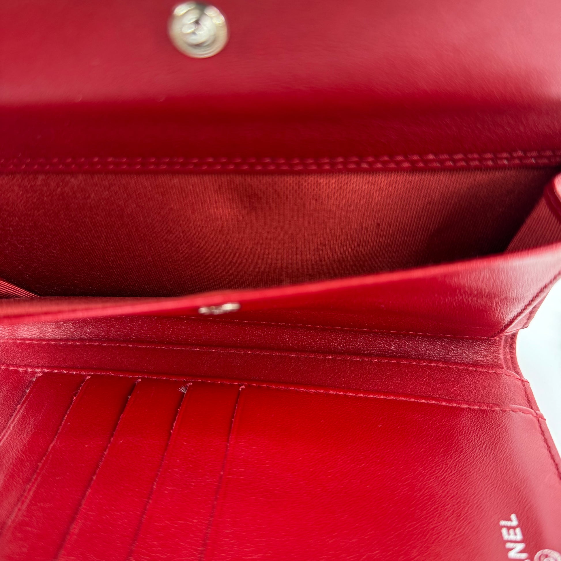 CHANEL Quilted Red Leather Classic Flap WOC (L-127)